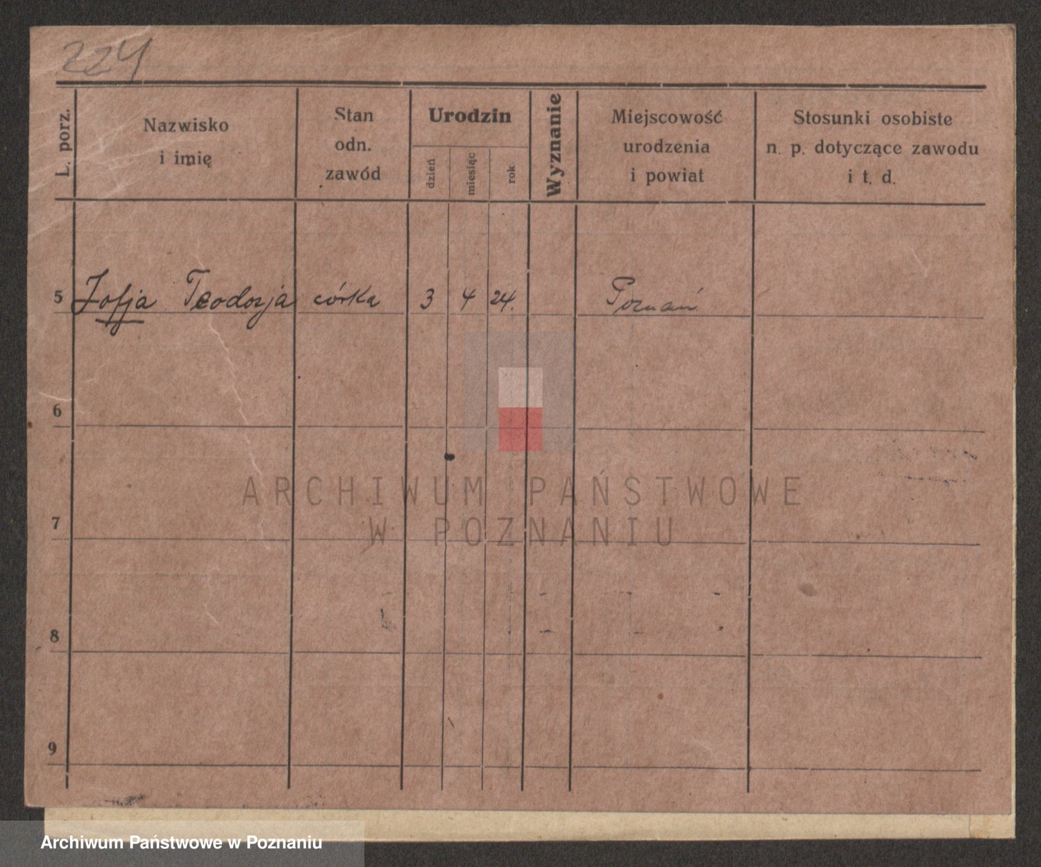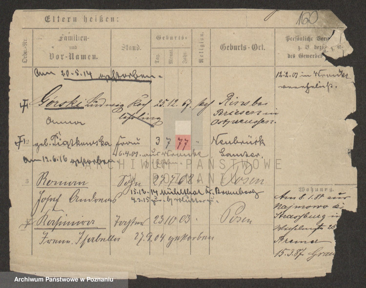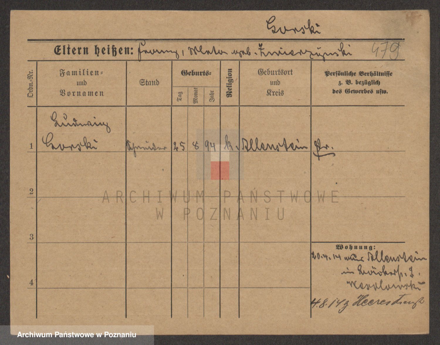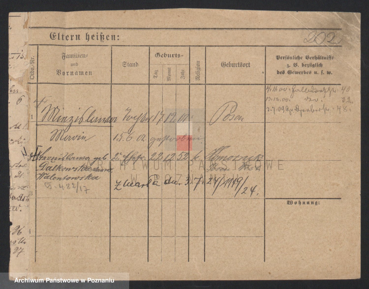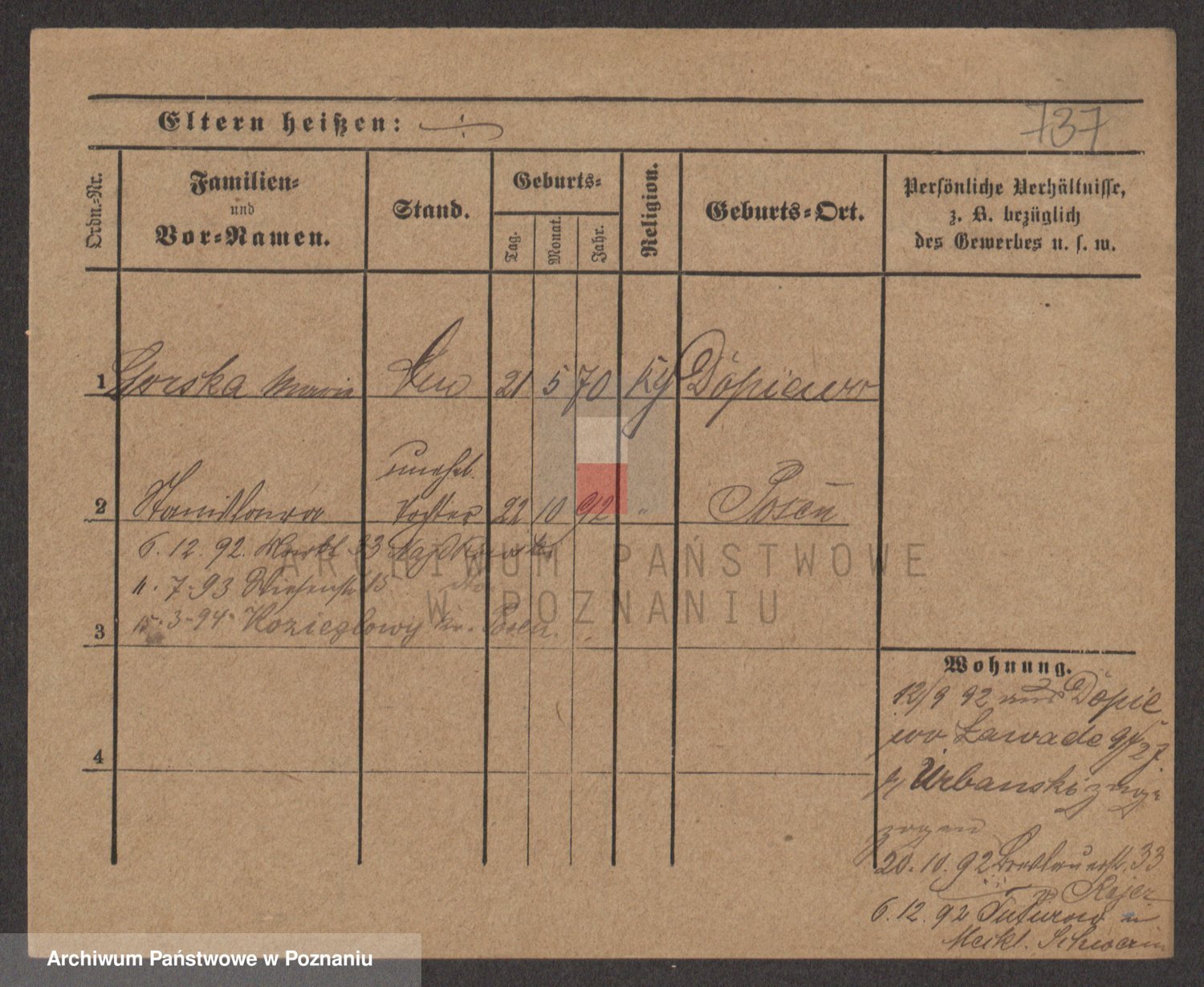 Podgląd karty osobowej dostępny jest po kliknięciu na nazwisko lub ikonkę karty. Można dokonywać powiększenia (ikony na górze) lub przechodzić między kolejnymi skanami (strzałki po bokach).