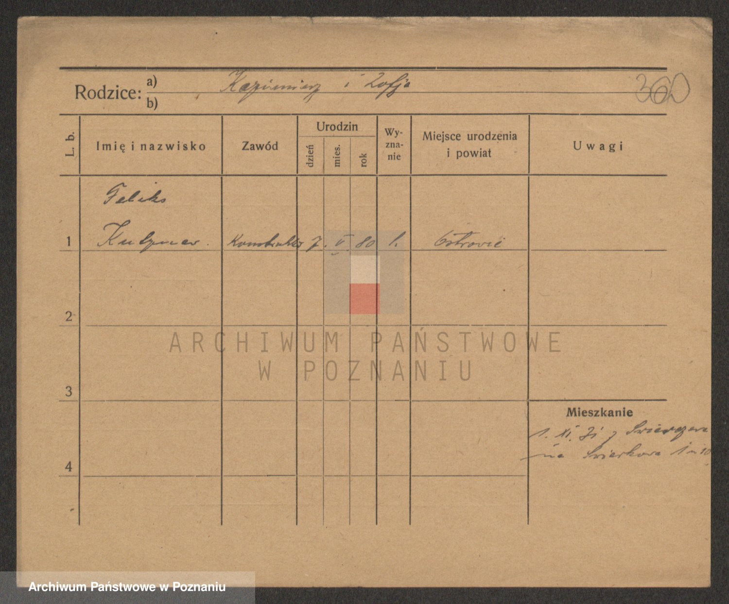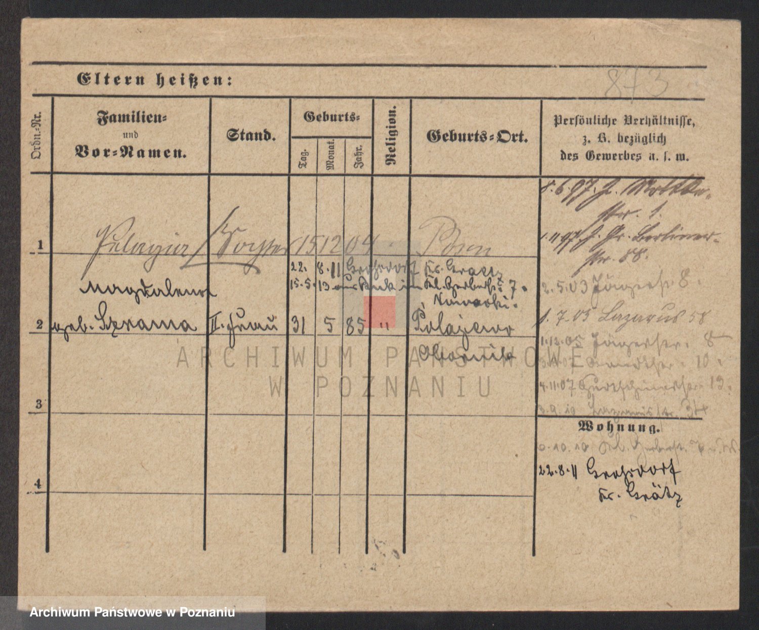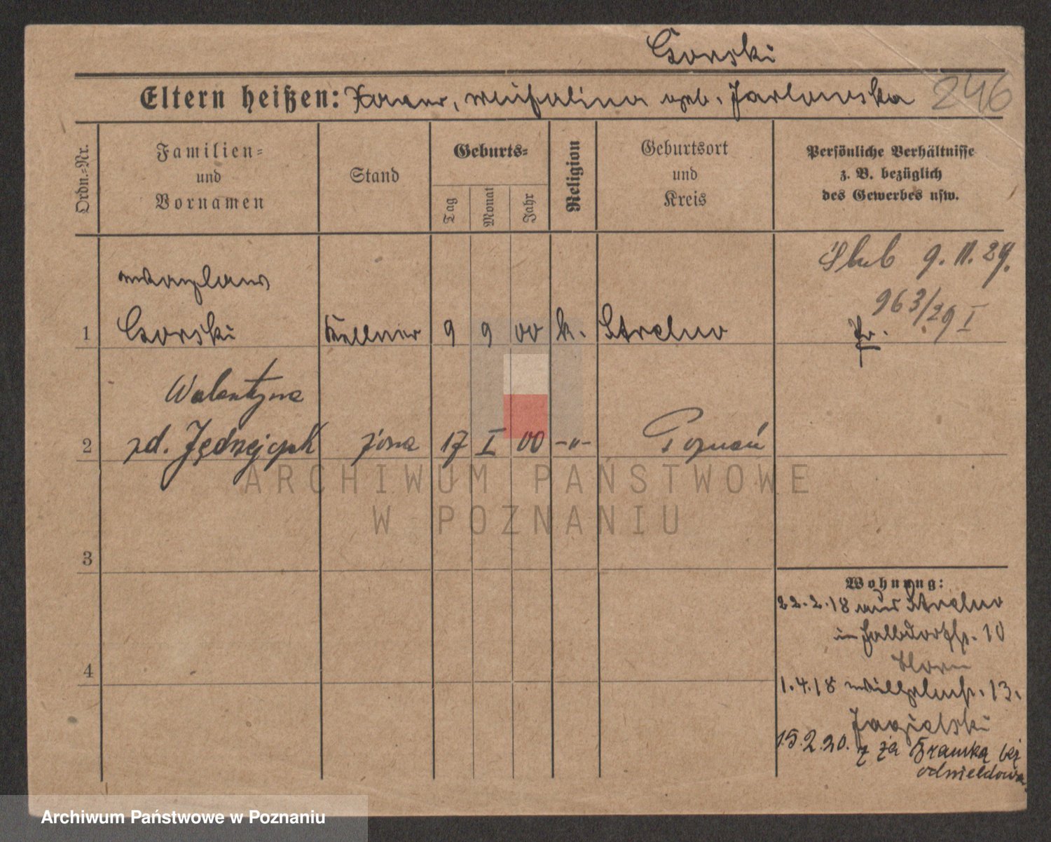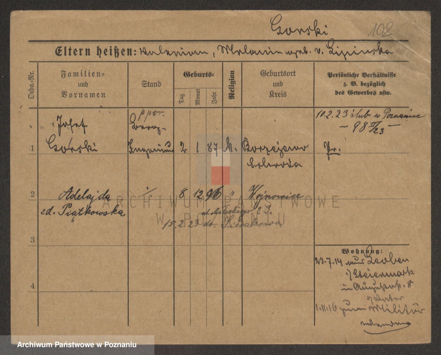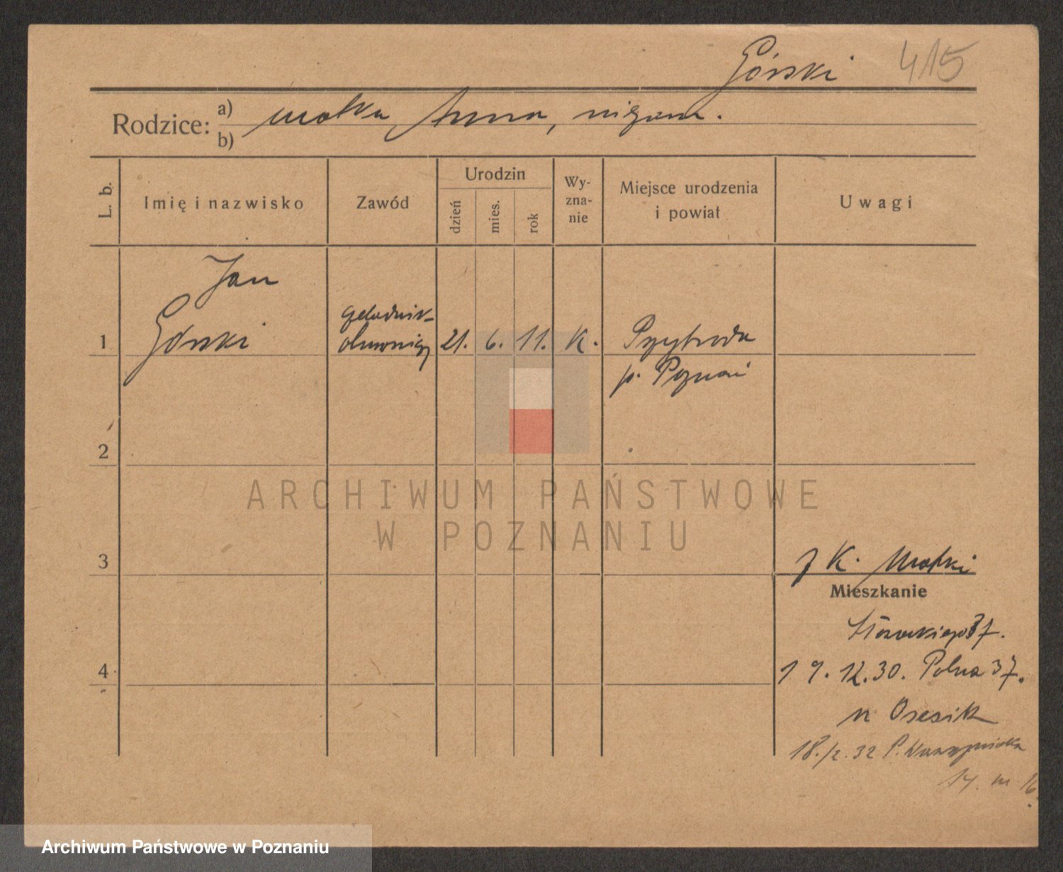 Podgląd karty osobowej dostępny jest po kliknięciu na nazwisko lub ikonkę karty. Można dokonywać powiększenia (ikony na górze) lub przechodzić między kolejnymi skanami (strzałki po bokach).