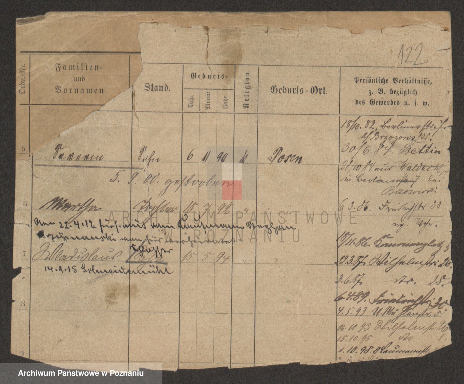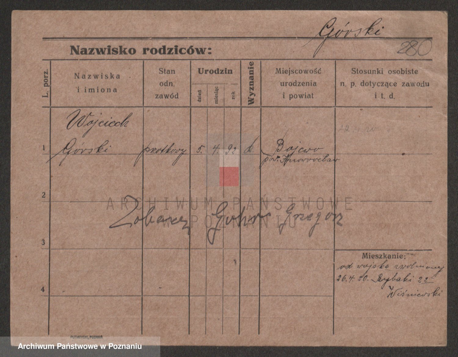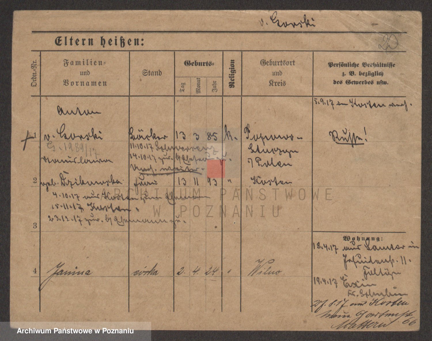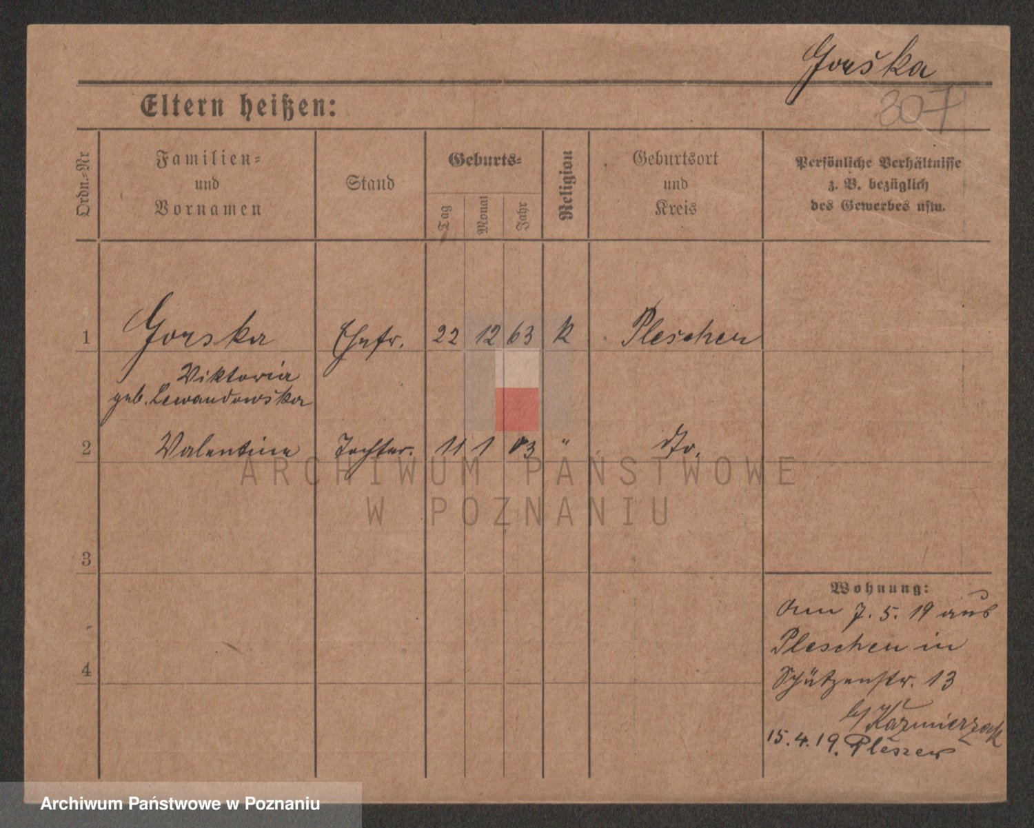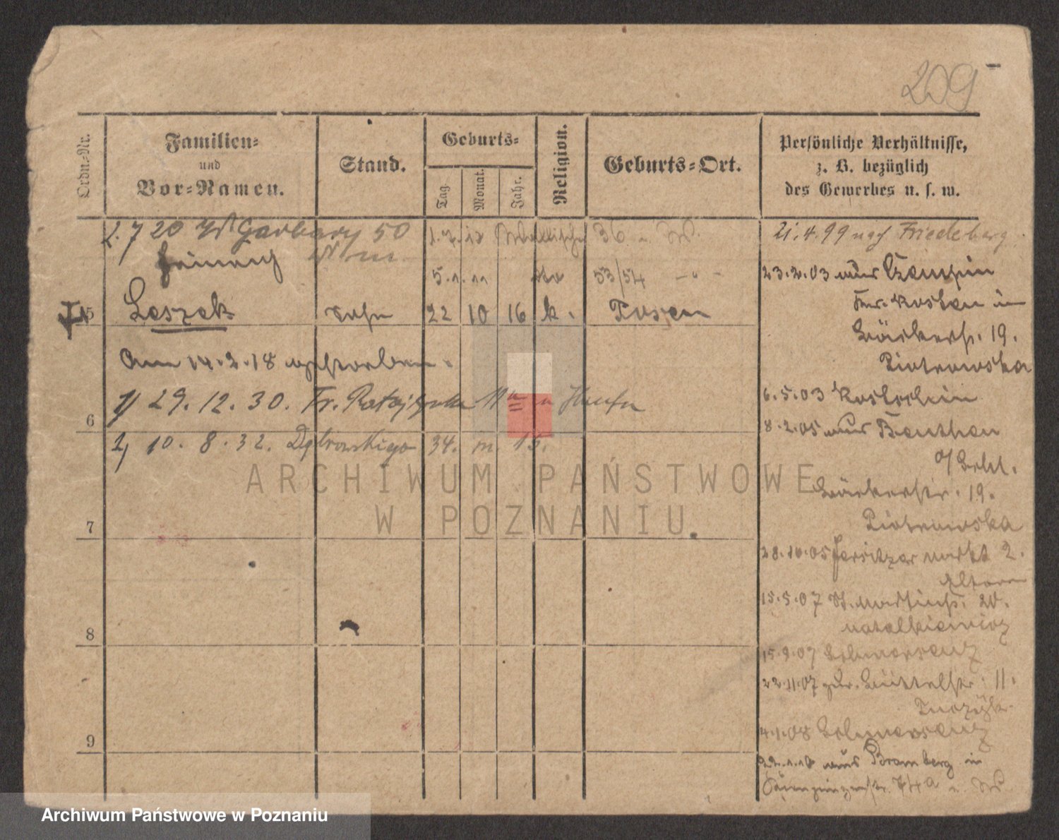 Podgląd karty osobowej dostępny jest po kliknięciu na nazwisko lub ikonkę karty. Można dokonywać powiększenia (ikony na górze) lub przechodzić między kolejnymi skanami (strzałki po bokach).