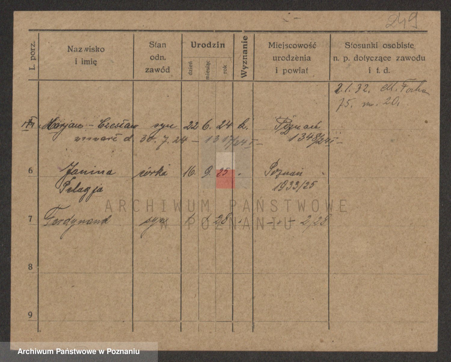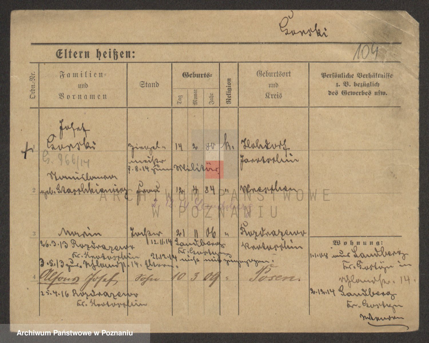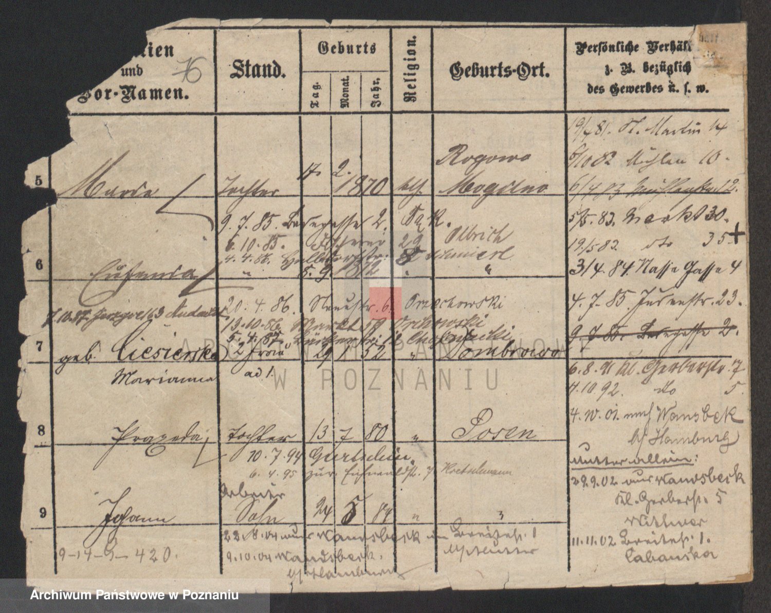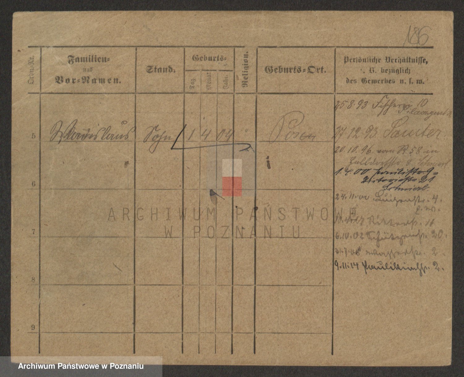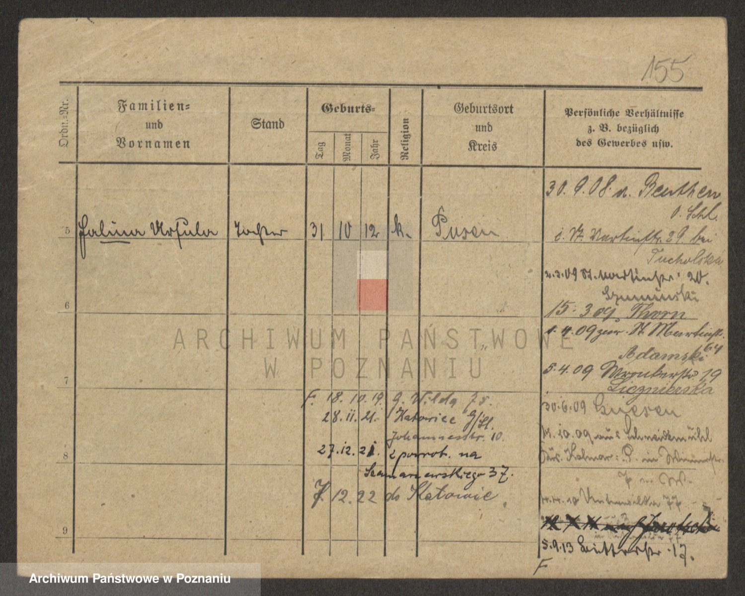 Podgląd karty osobowej dostępny jest po kliknięciu na nazwisko lub ikonkę karty. Można dokonywać powiększenia (ikony na górze) lub przechodzić między kolejnymi skanami (strzałki po bokach).