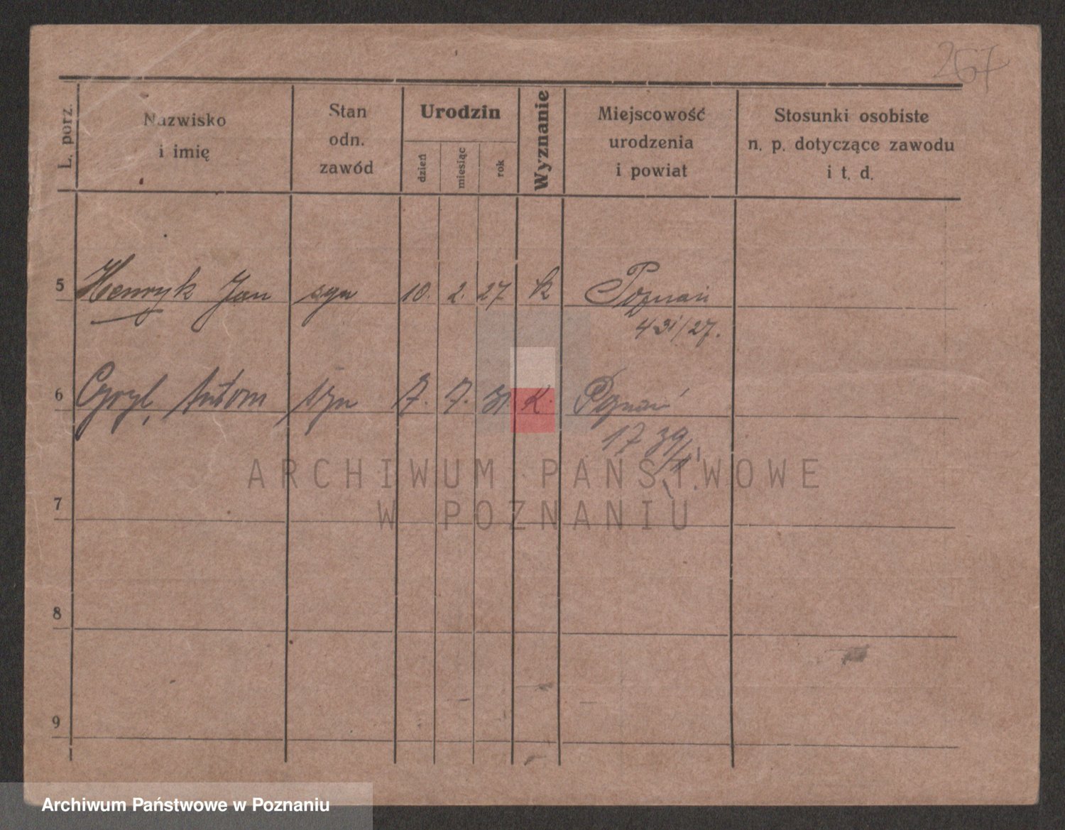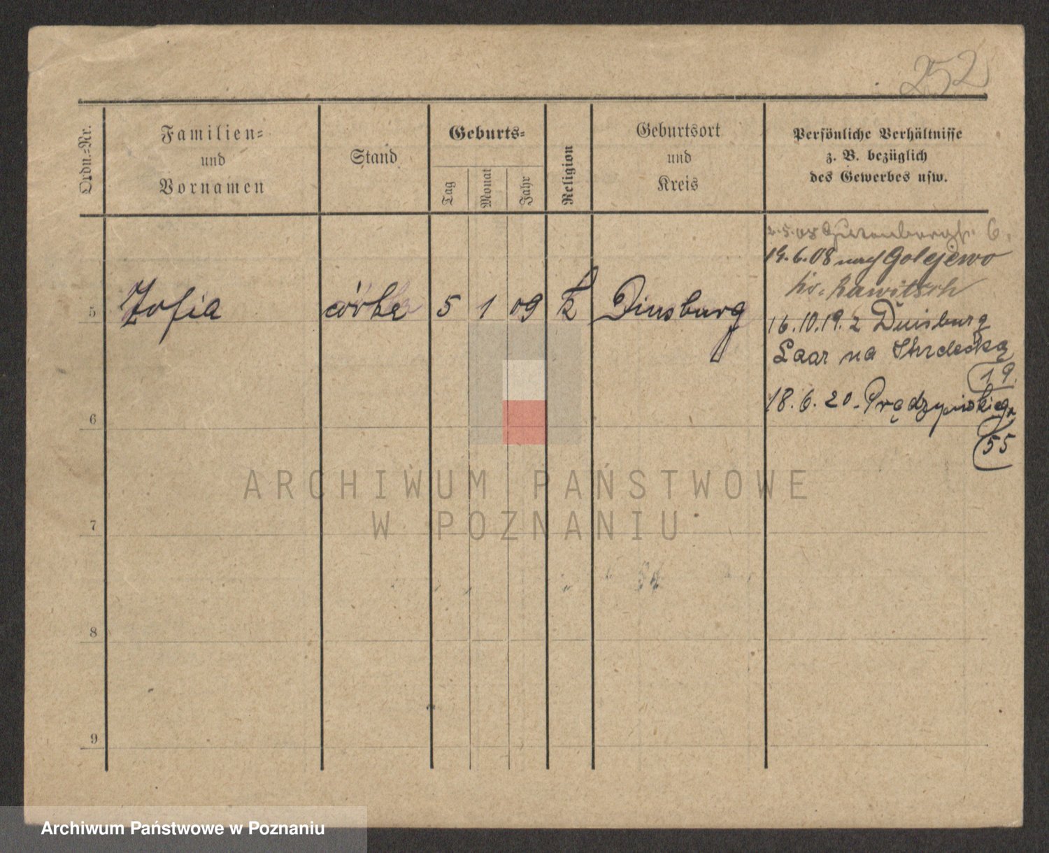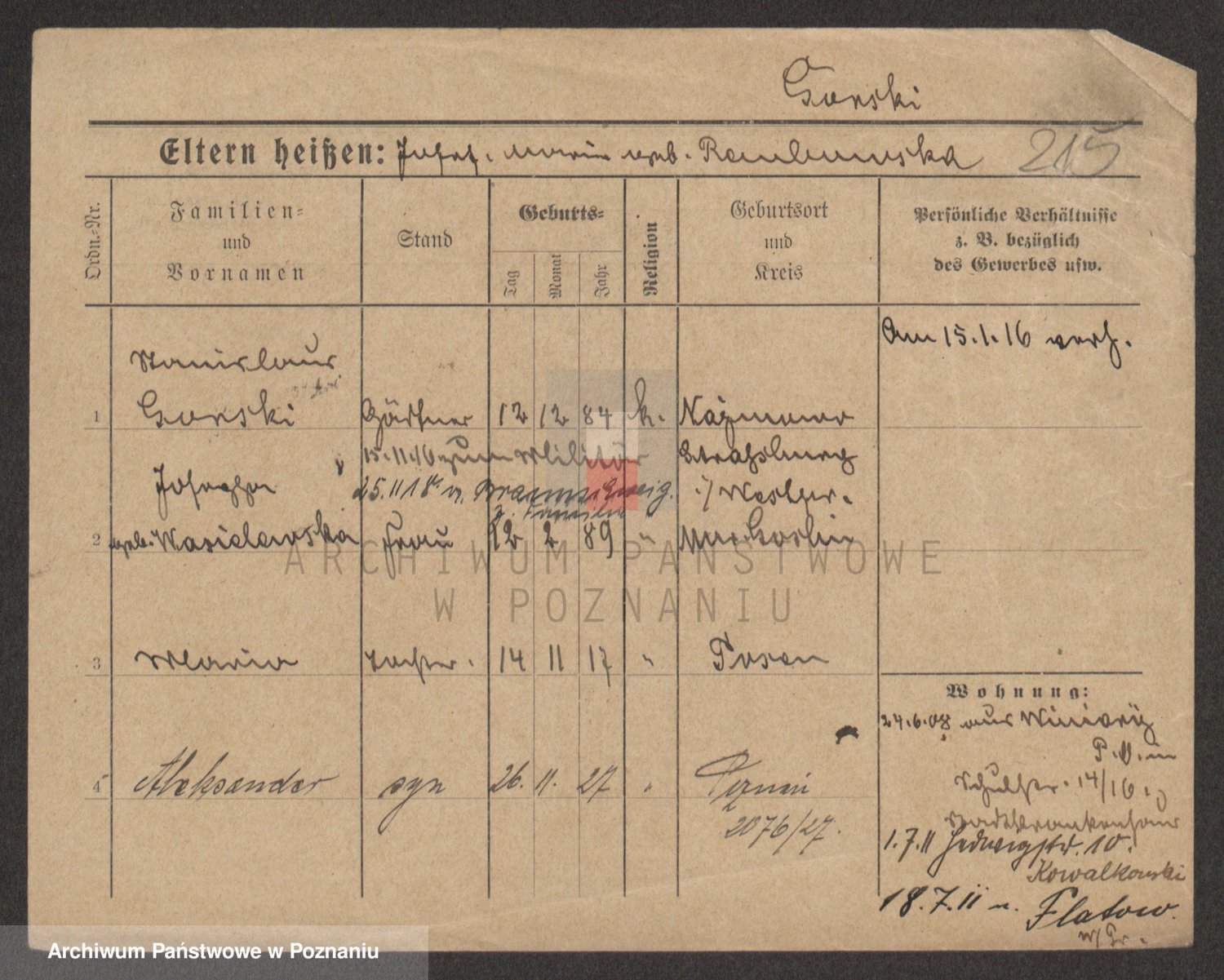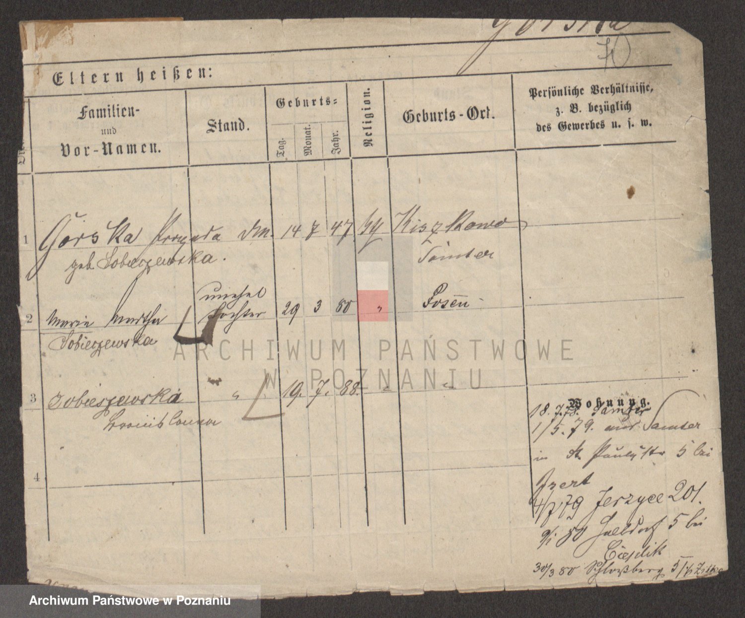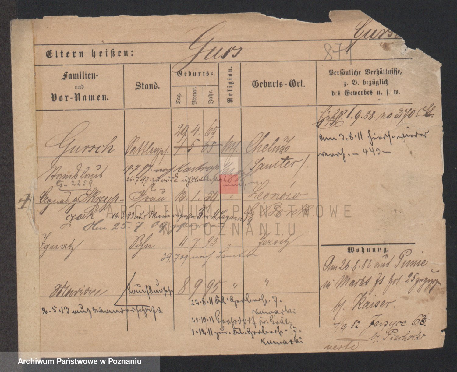 Podgląd karty osobowej dostępny jest po kliknięciu na nazwisko lub ikonkę karty. Można dokonywać powiększenia (ikony na górze) lub przechodzić między kolejnymi skanami (strzałki po bokach).