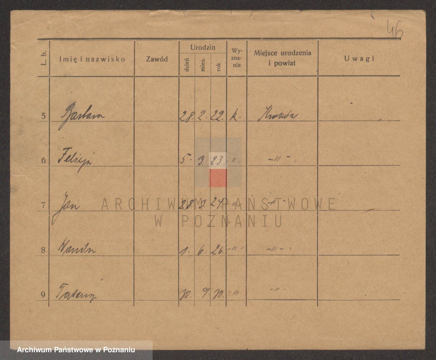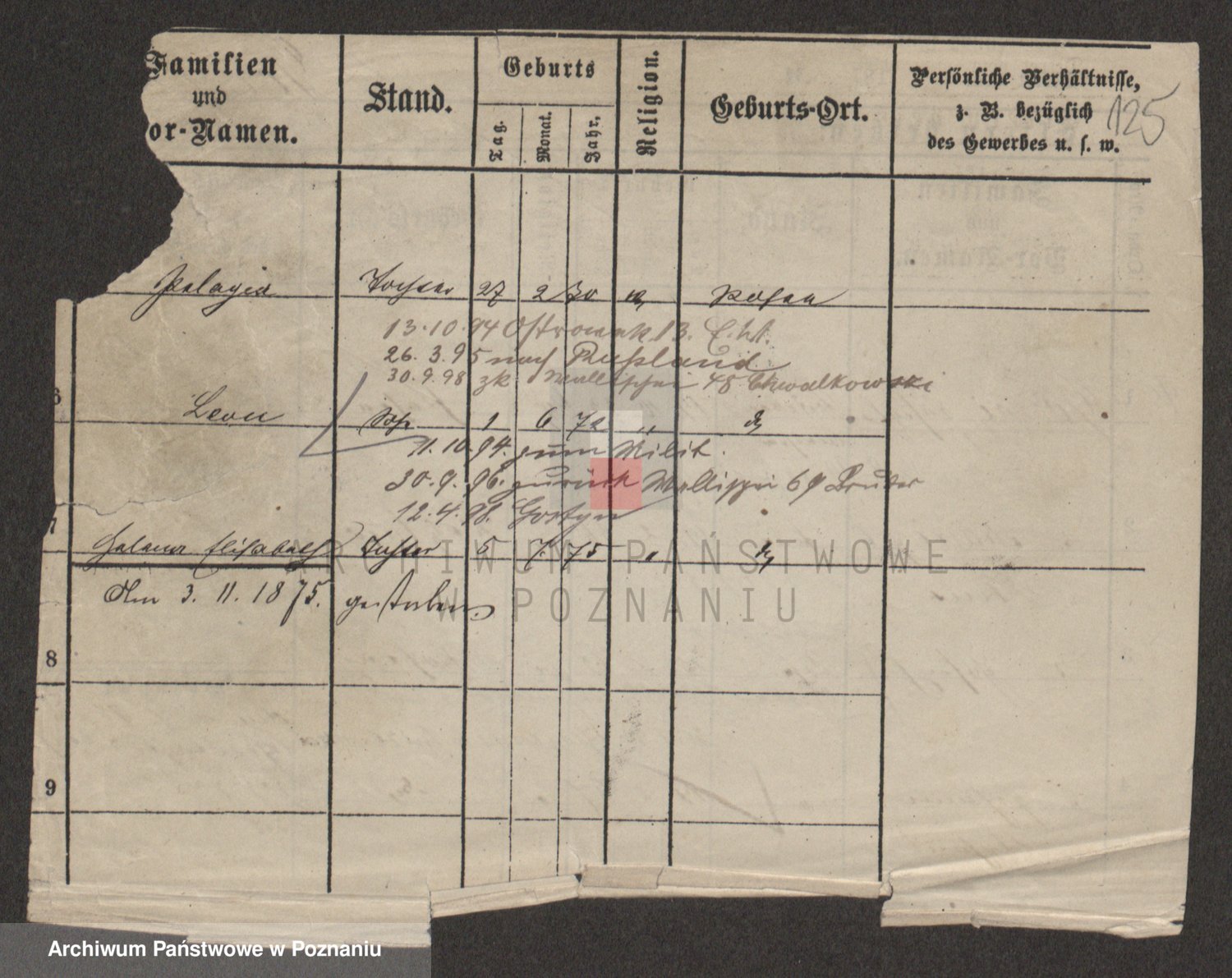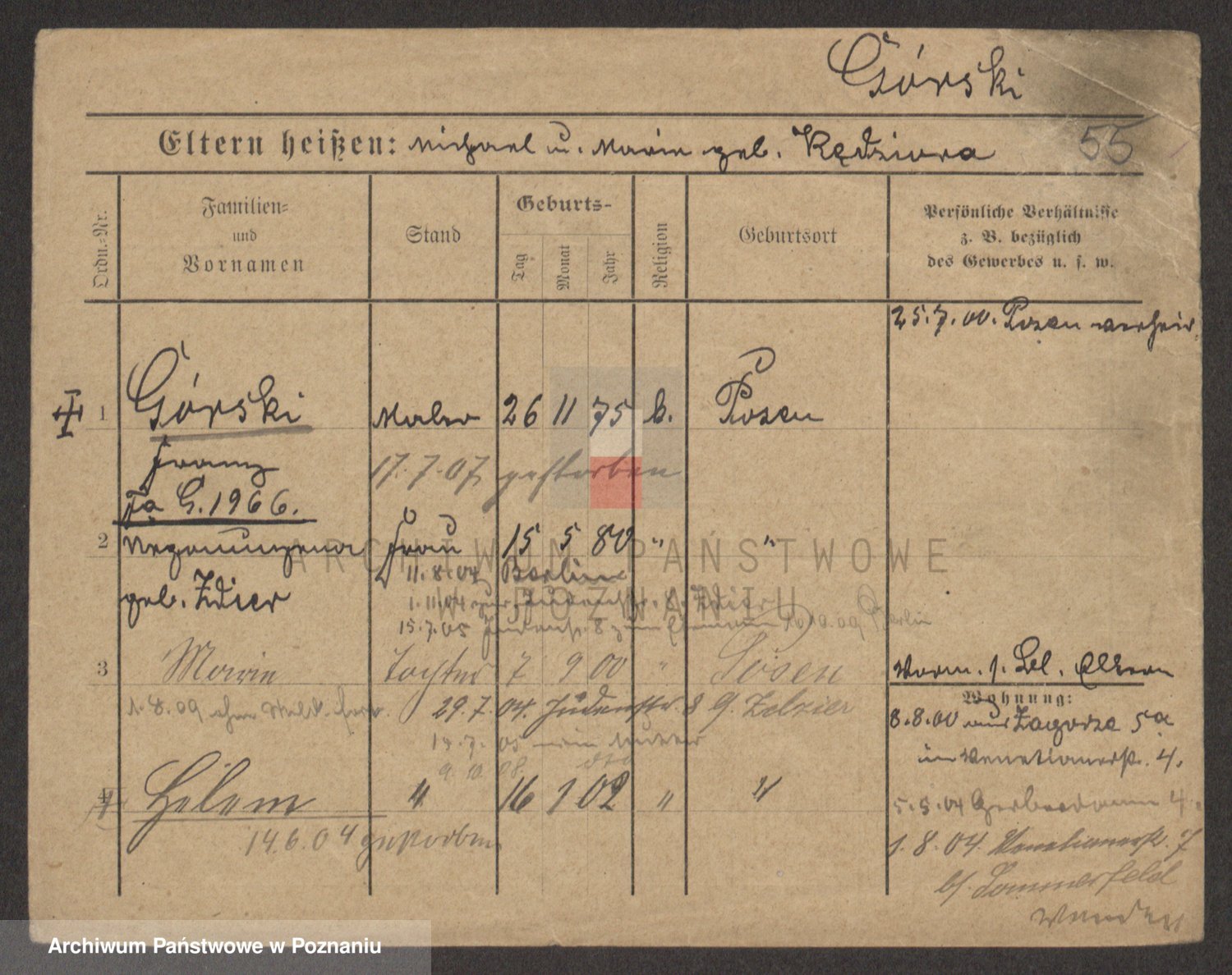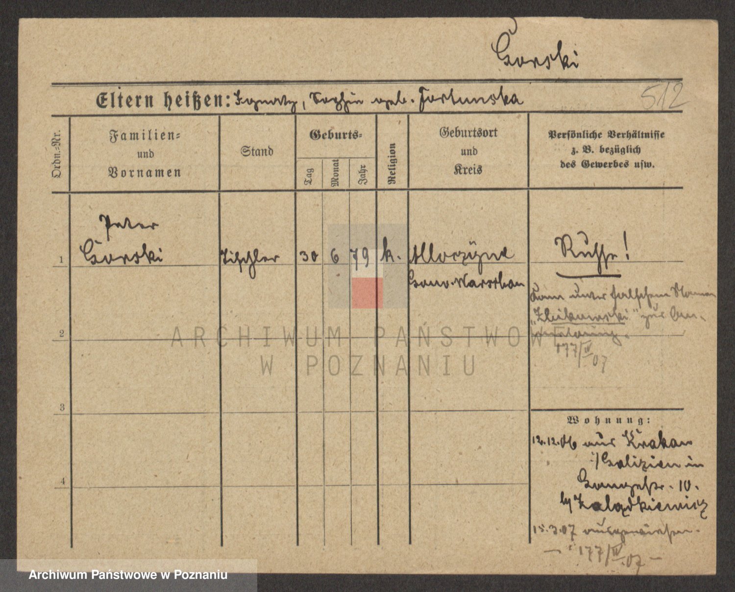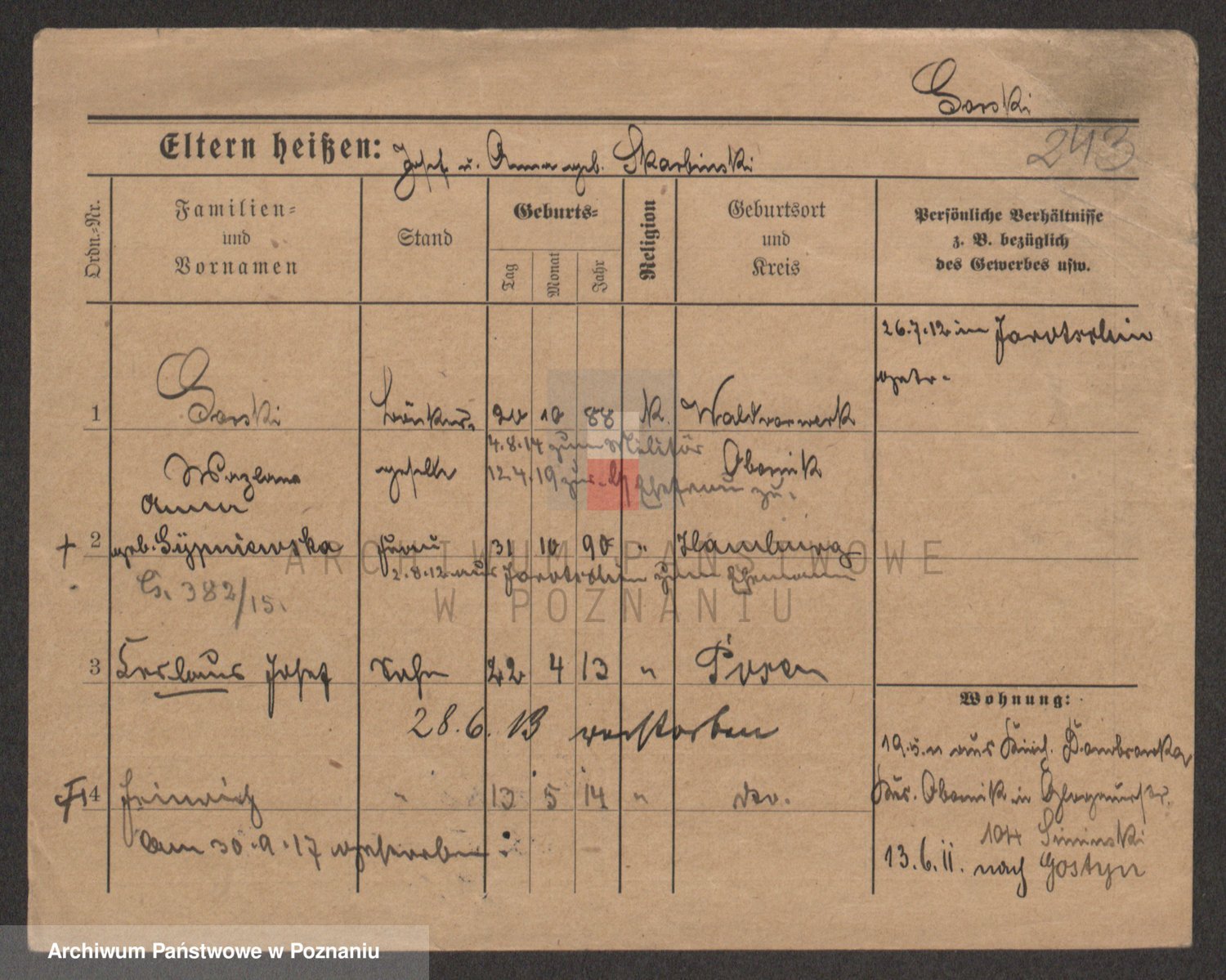 Podgląd karty osobowej dostępny jest po kliknięciu na nazwisko lub ikonkę karty. Można dokonywać powiększenia (ikony na górze) lub przechodzić między kolejnymi skanami (strzałki po bokach).