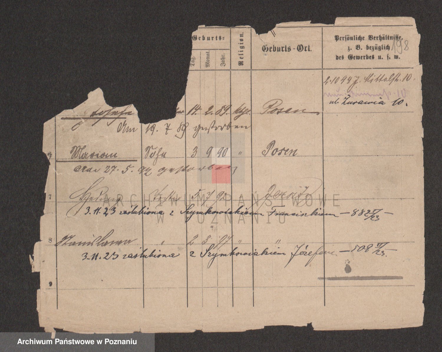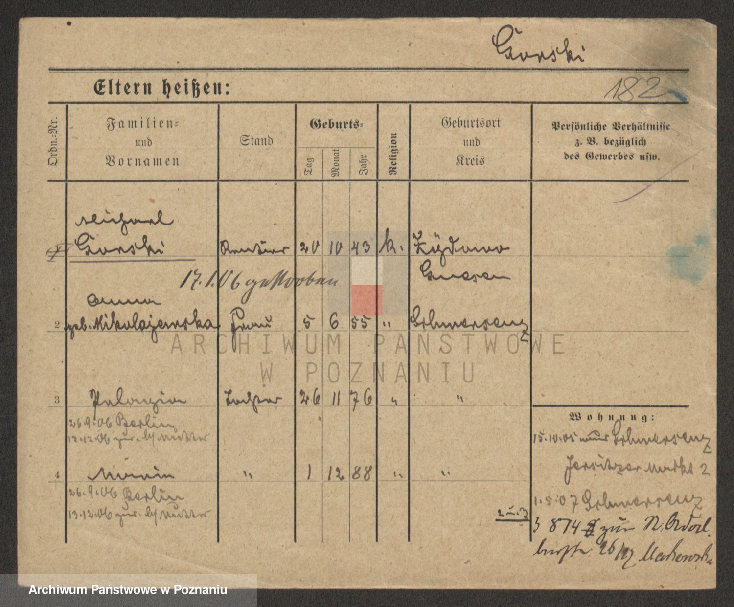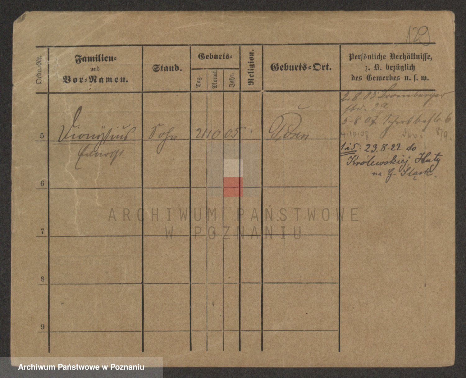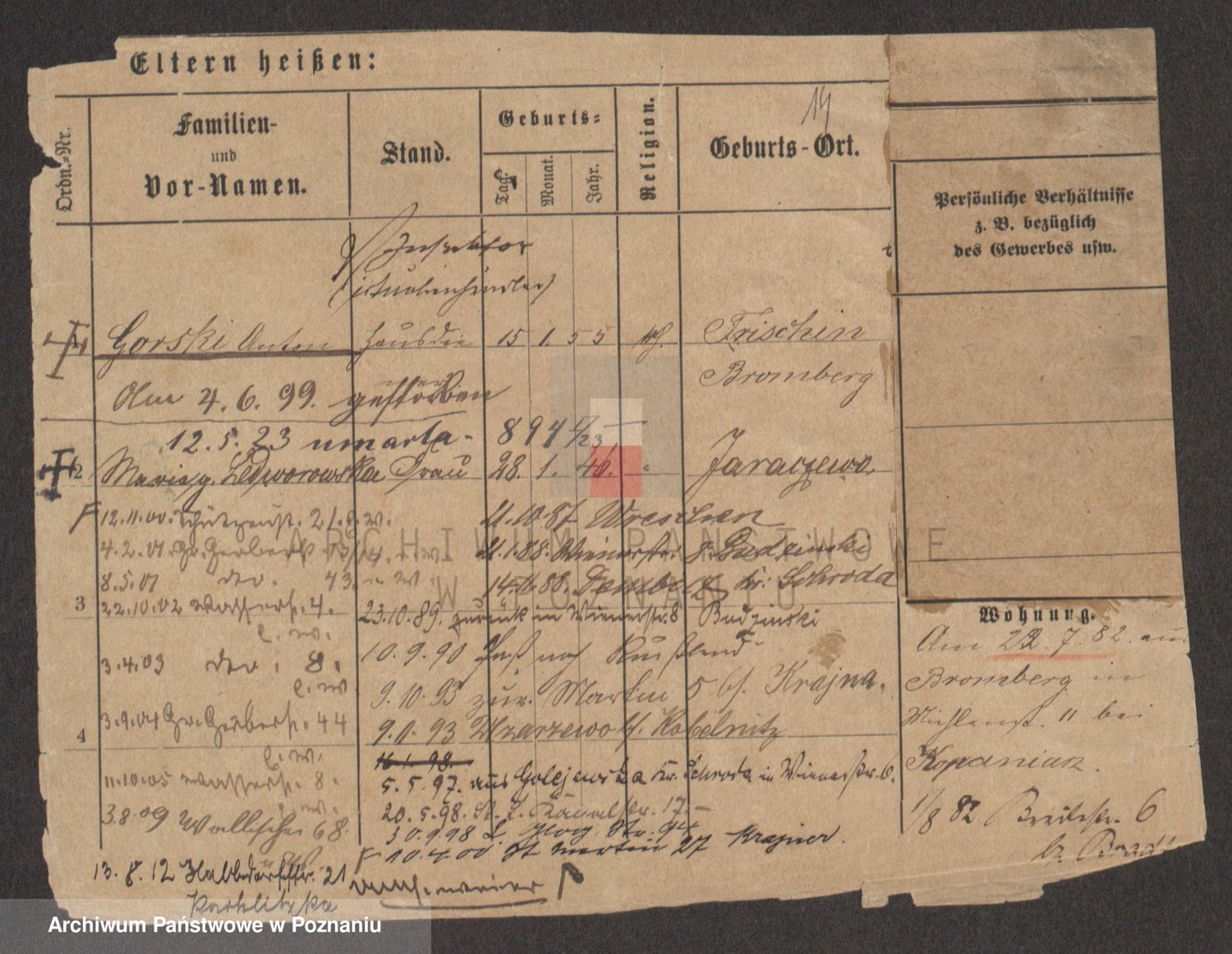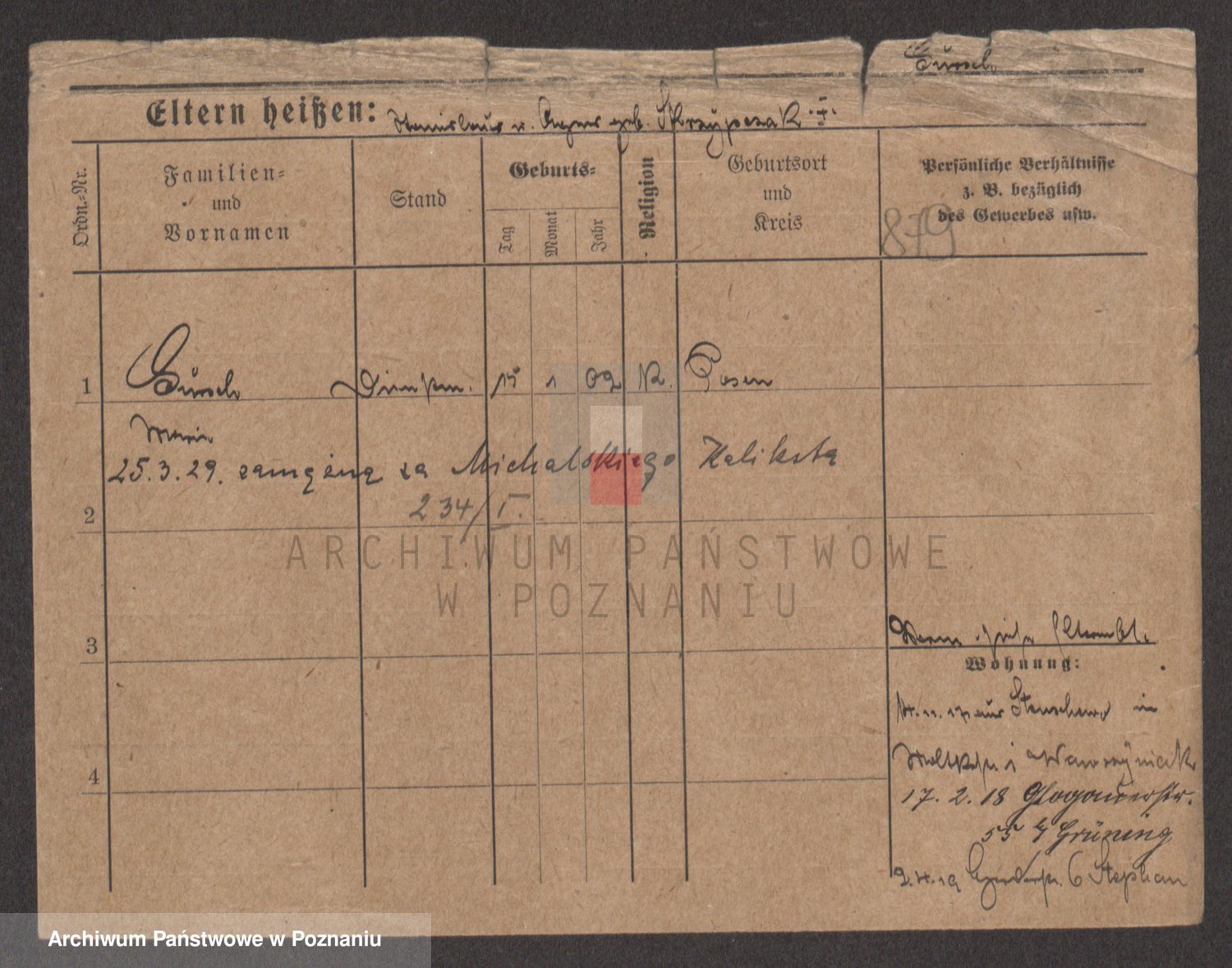 Podgląd karty osobowej dostępny jest po kliknięciu na nazwisko lub ikonkę karty. Można dokonywać powiększenia (ikony na górze) lub przechodzić między kolejnymi skanami (strzałki po bokach).