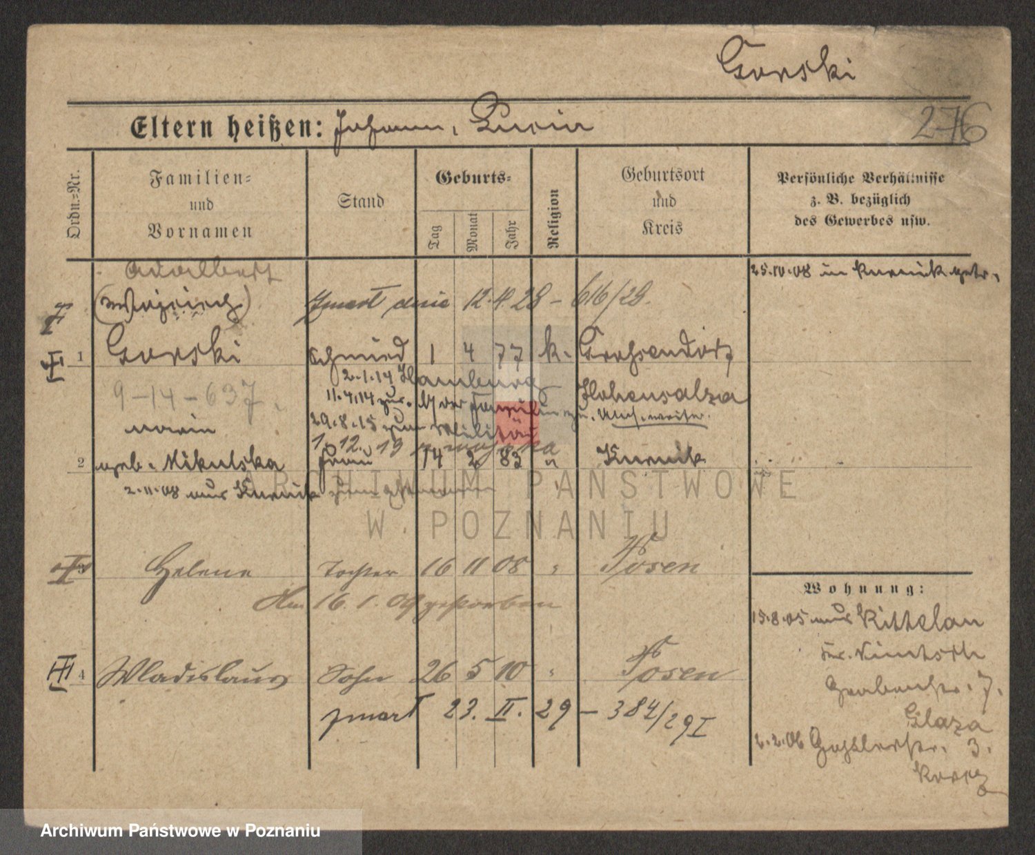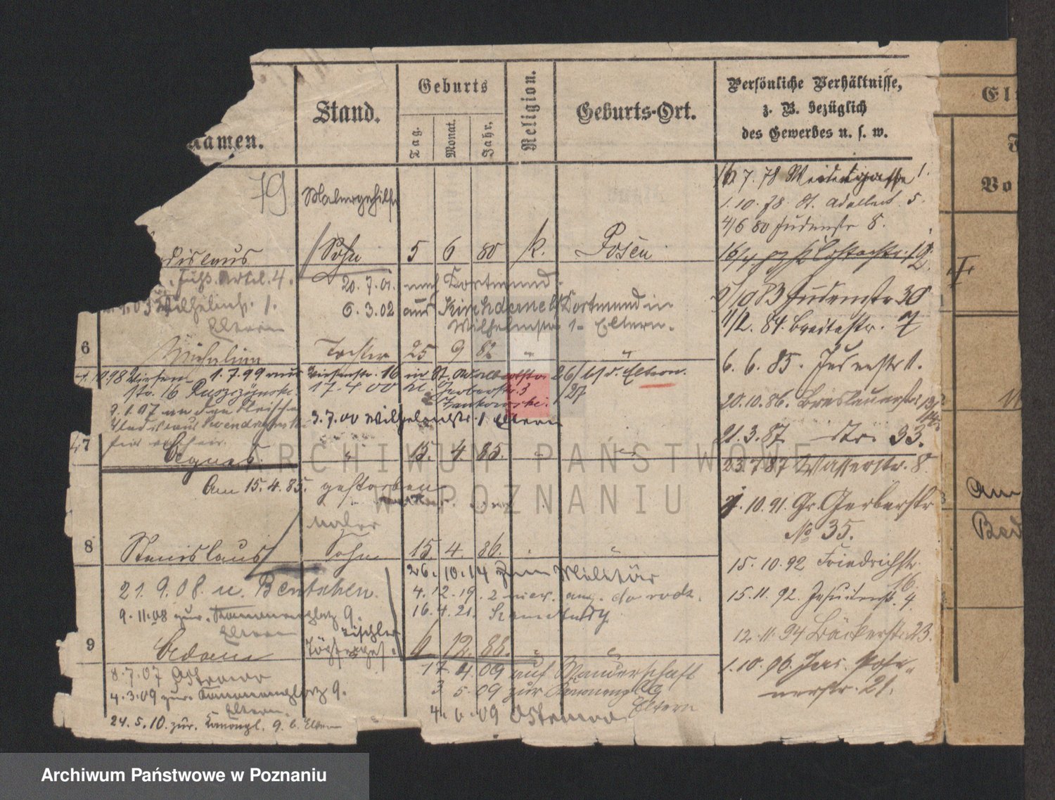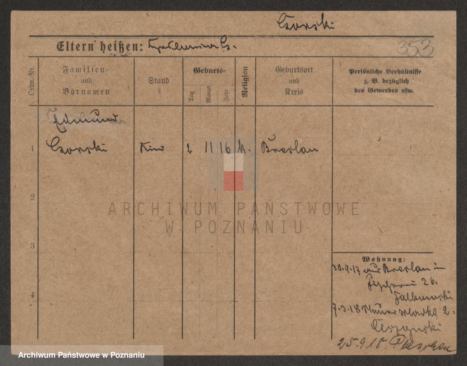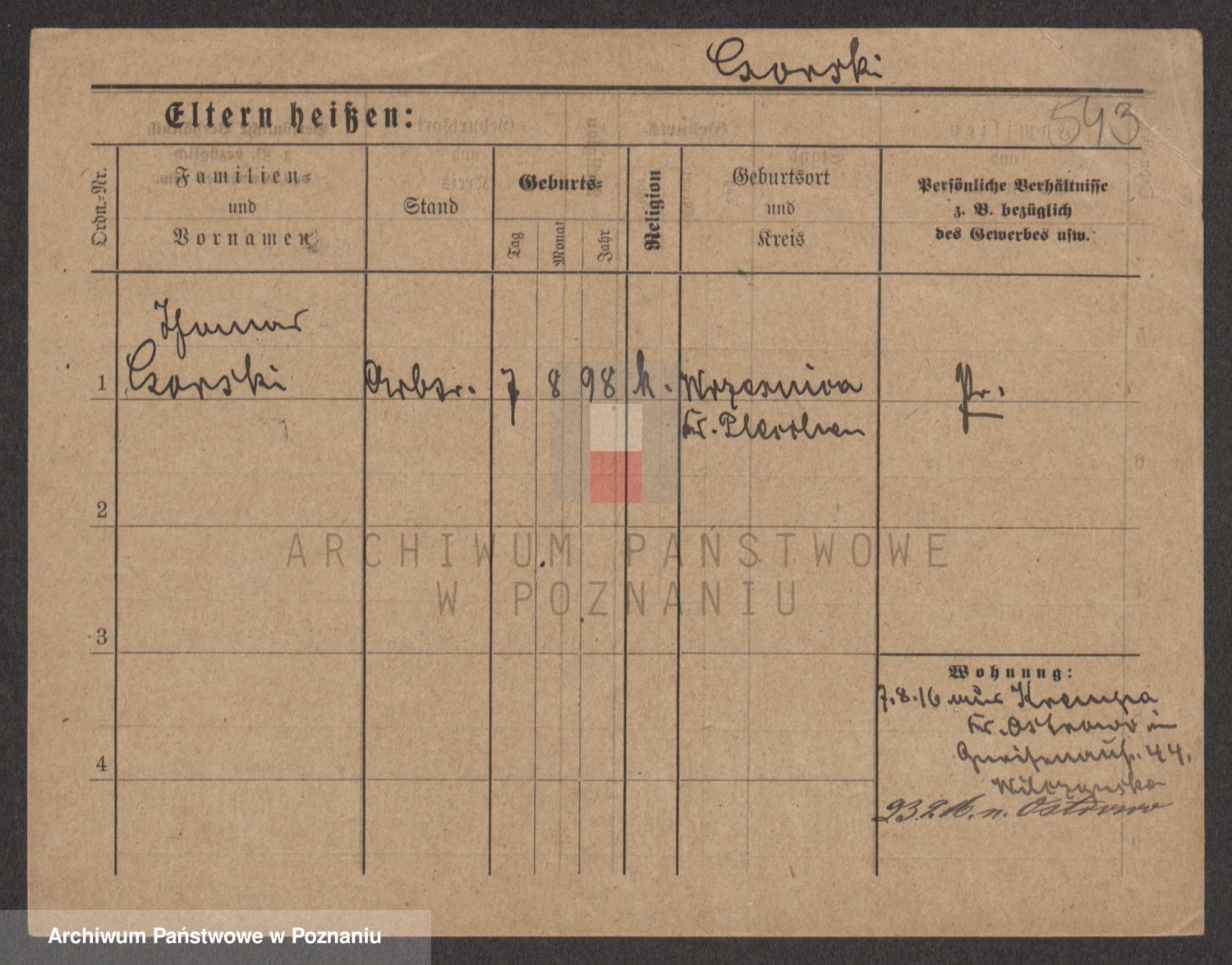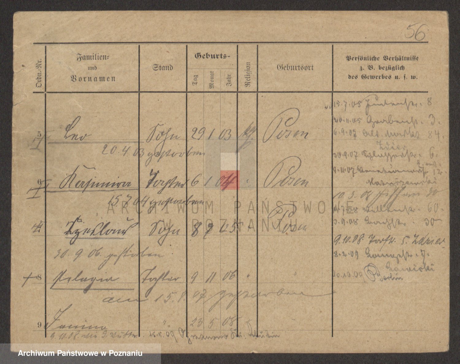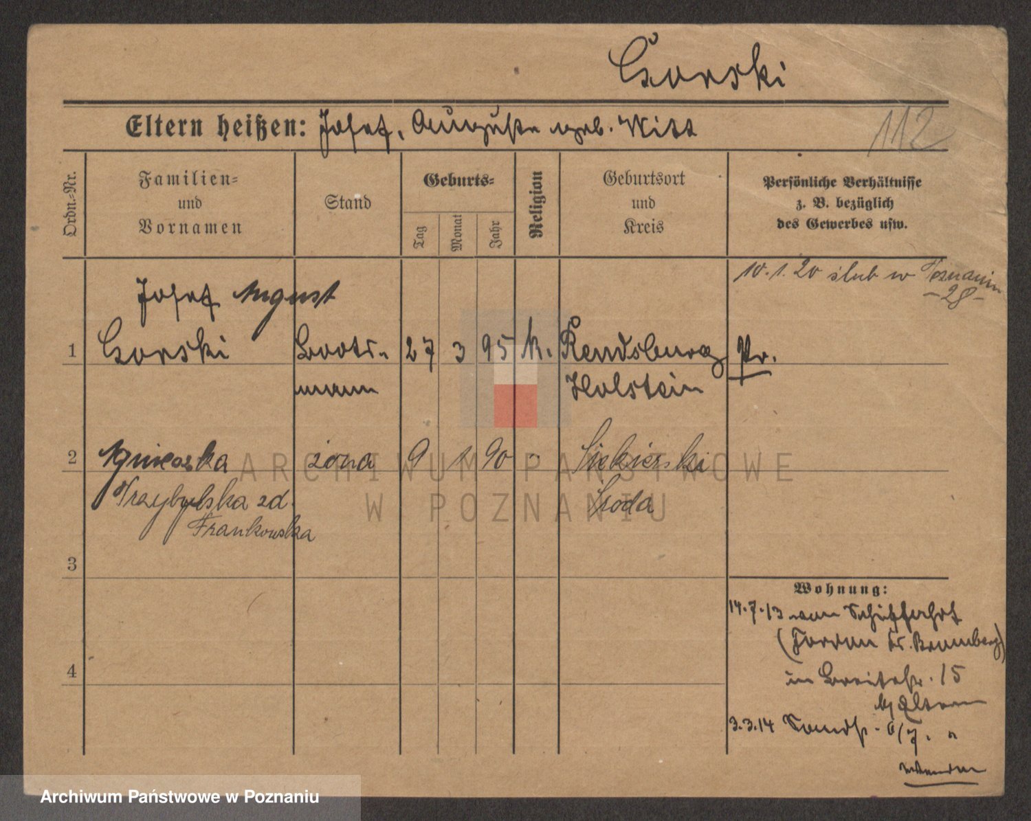 Podgląd karty osobowej dostępny jest po kliknięciu na nazwisko lub ikonkę karty. Można dokonywać powiększenia (ikony na górze) lub przechodzić między kolejnymi skanami (strzałki po bokach).