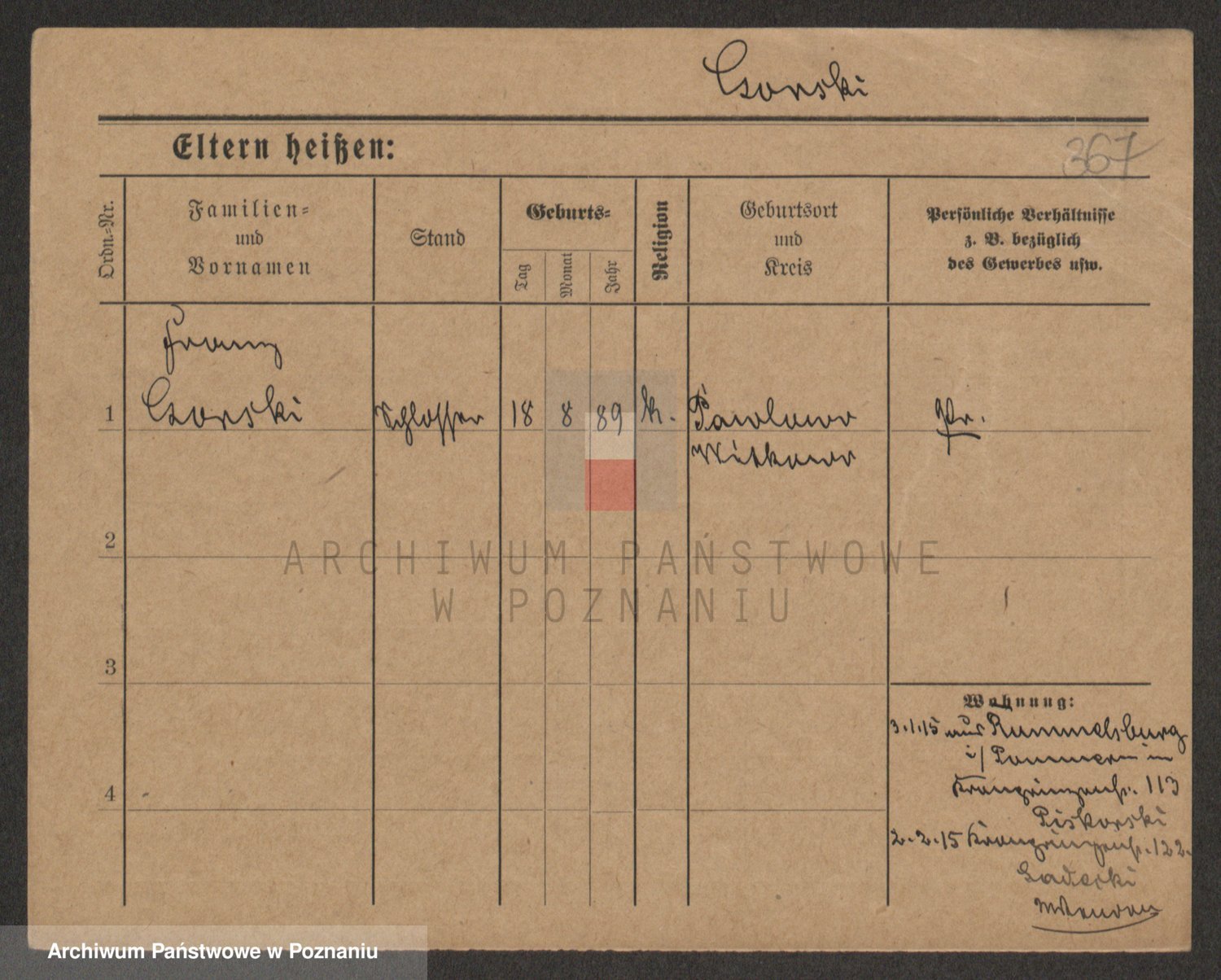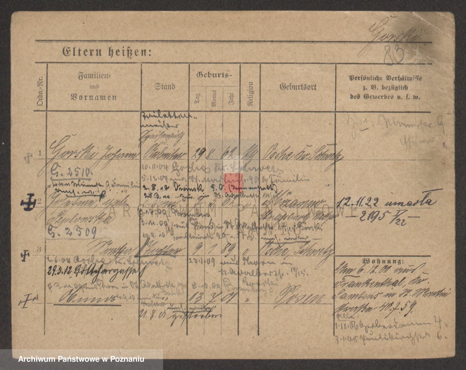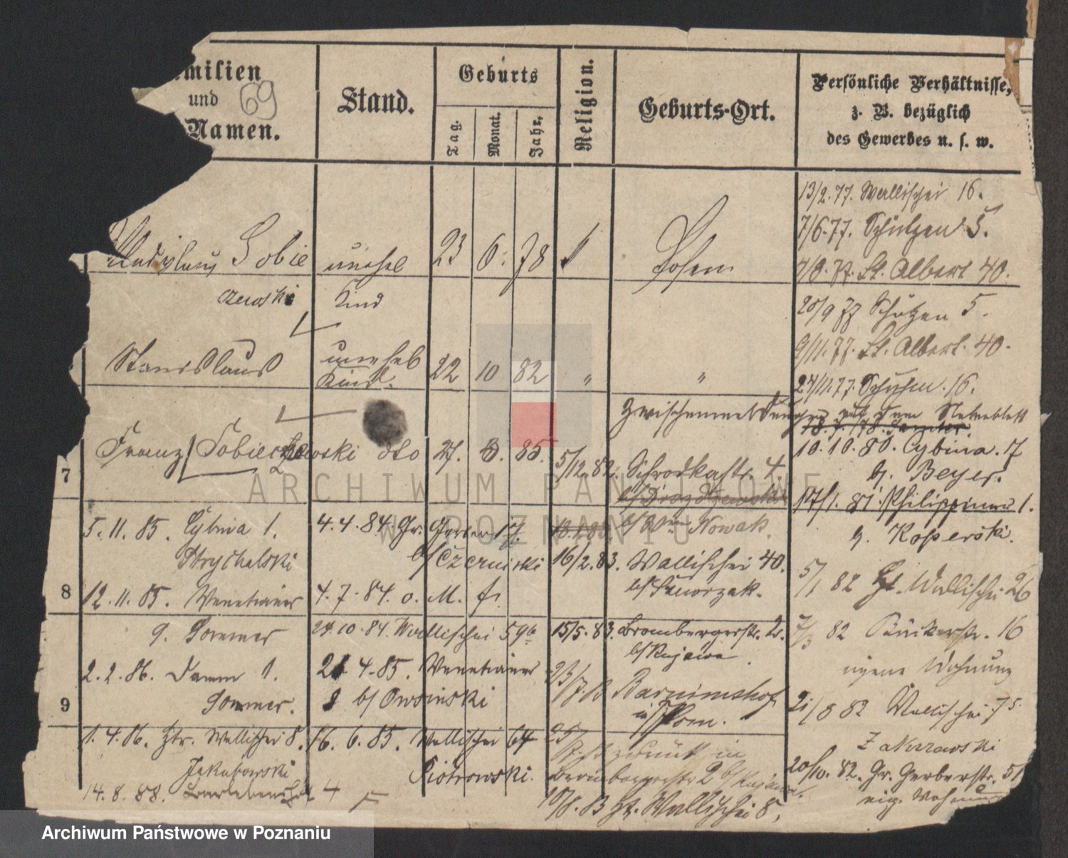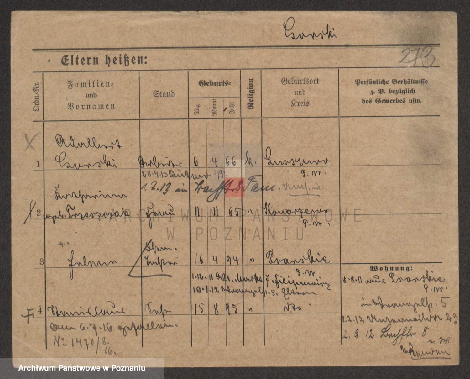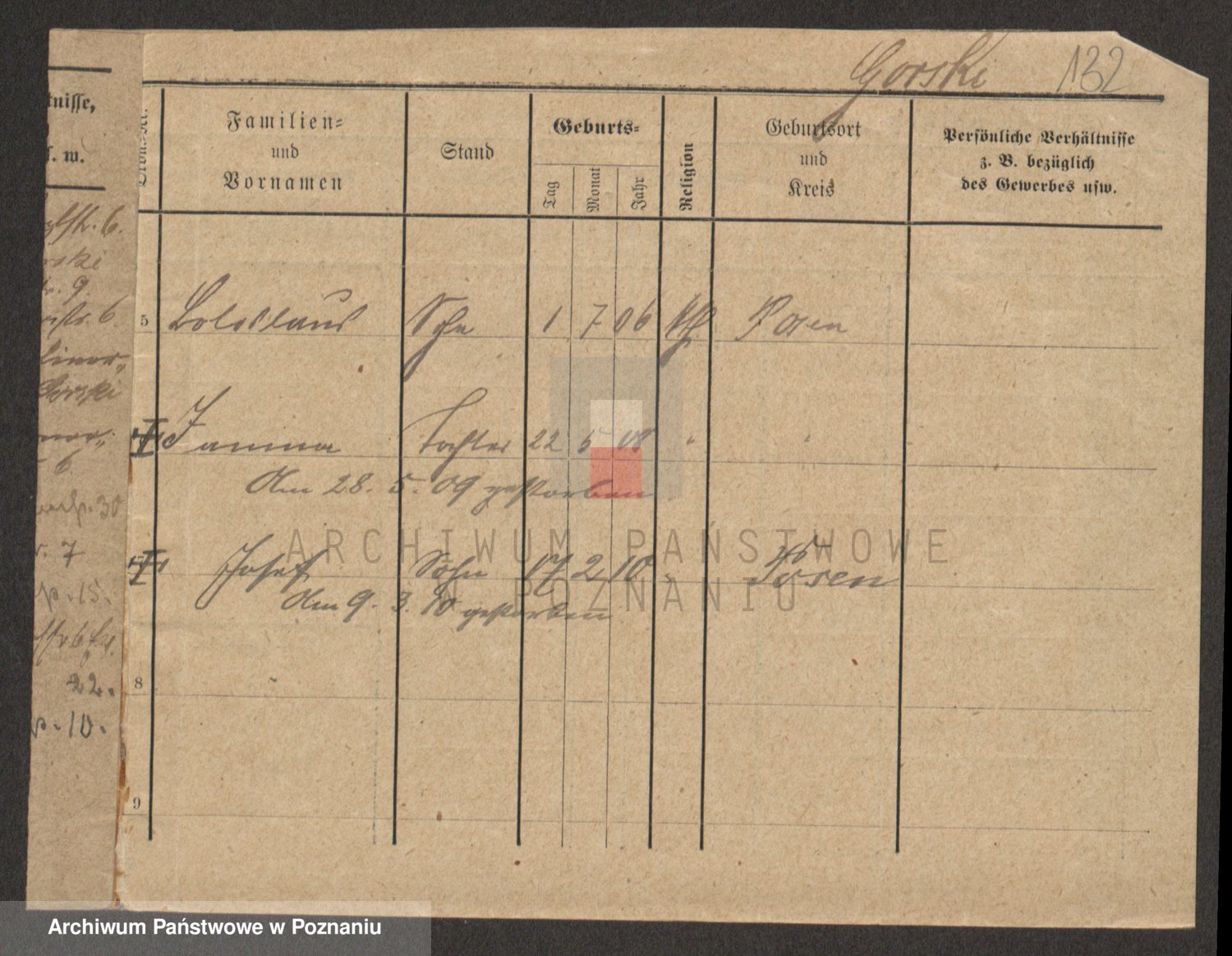 Podgląd karty osobowej dostępny jest po kliknięciu na nazwisko lub ikonkę karty. Można dokonywać powiększenia (ikony na górze) lub przechodzić między kolejnymi skanami (strzałki po bokach).