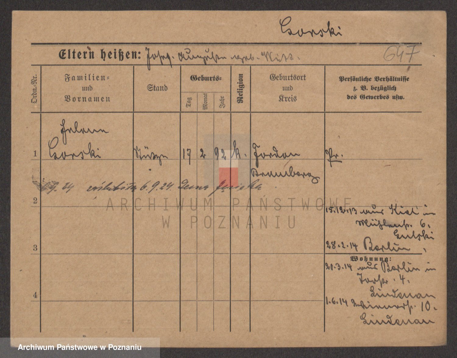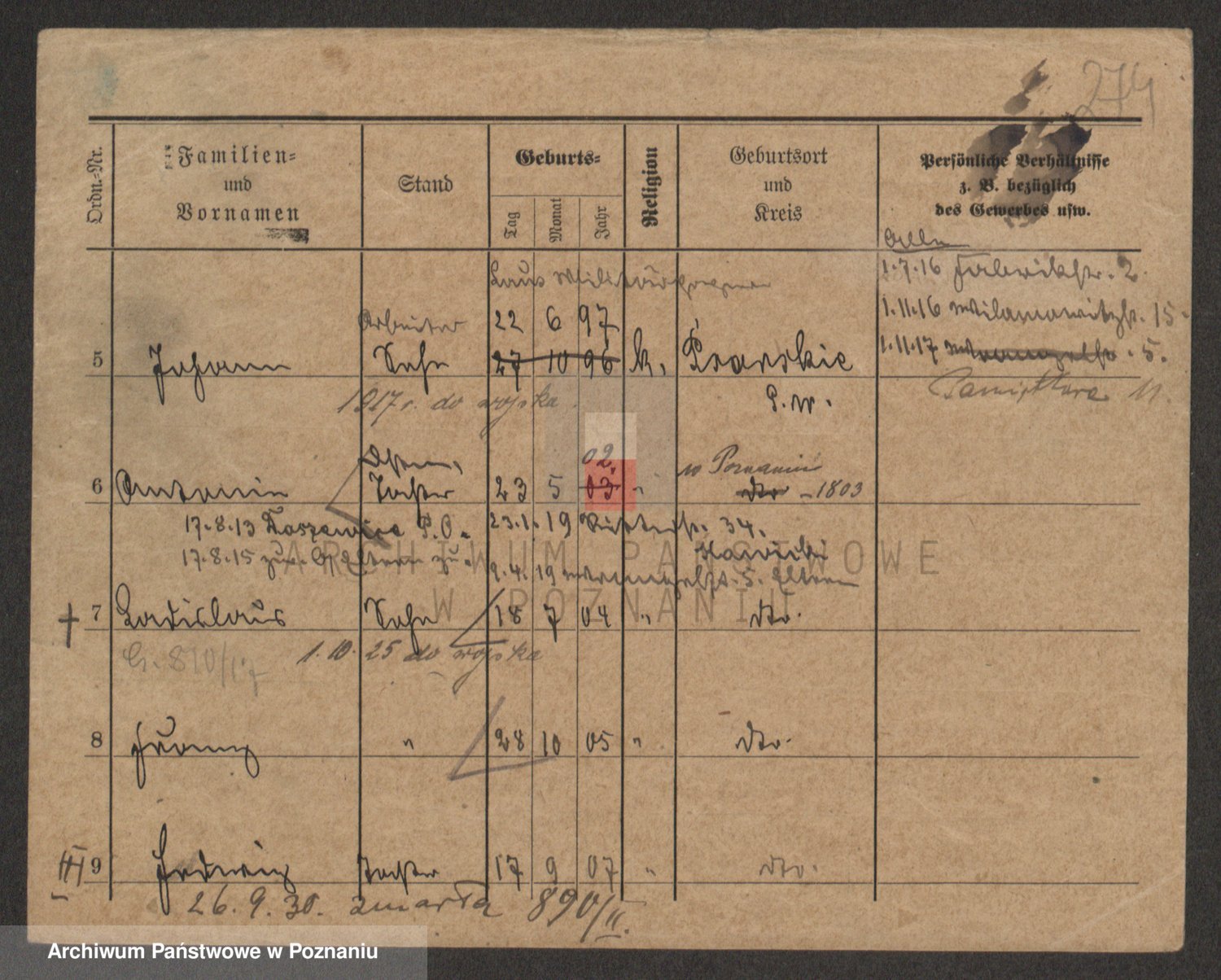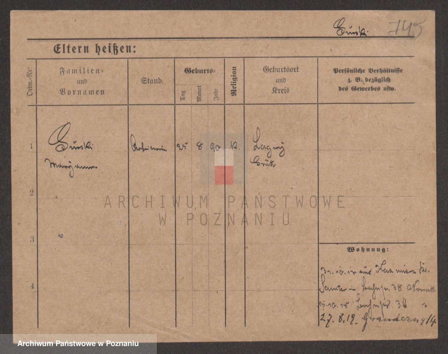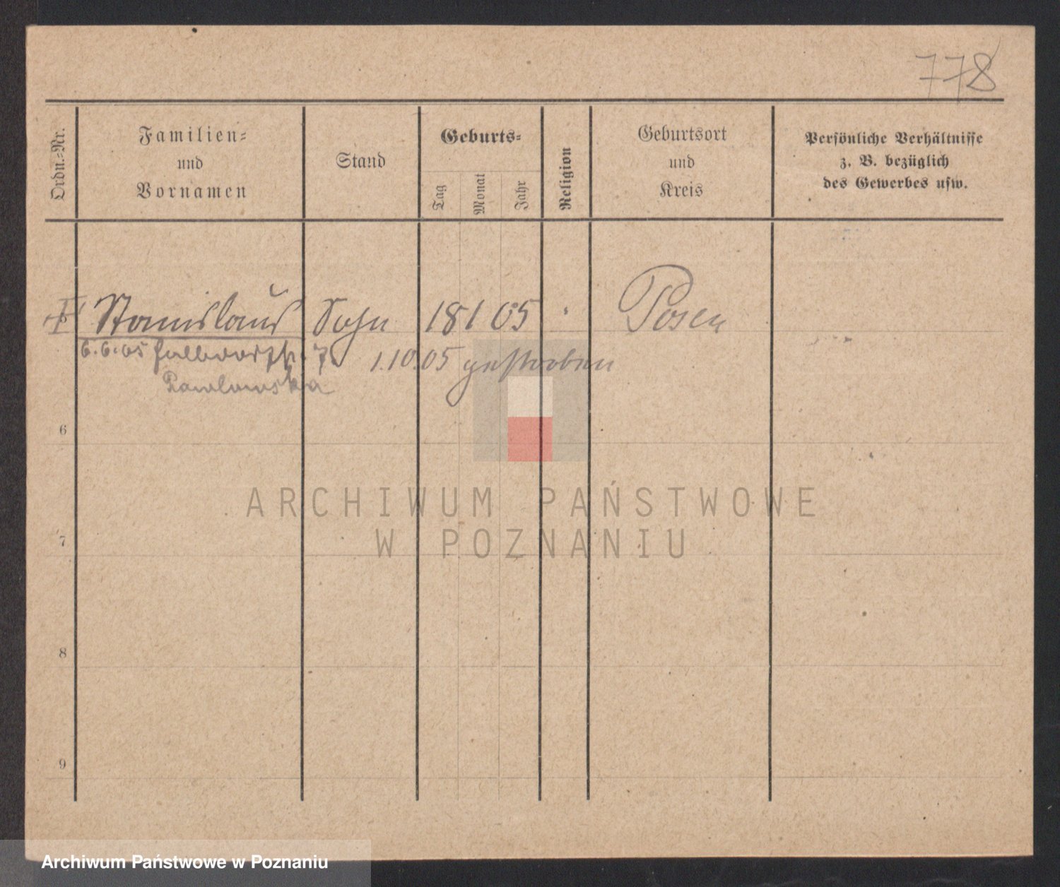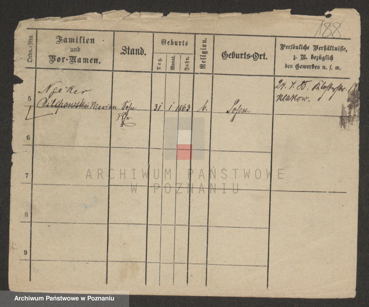 Podgląd karty osobowej dostępny jest po kliknięciu na nazwisko lub ikonkę karty. Można dokonywać powiększenia (ikony na górze) lub przechodzić między kolejnymi skanami (strzałki po bokach).