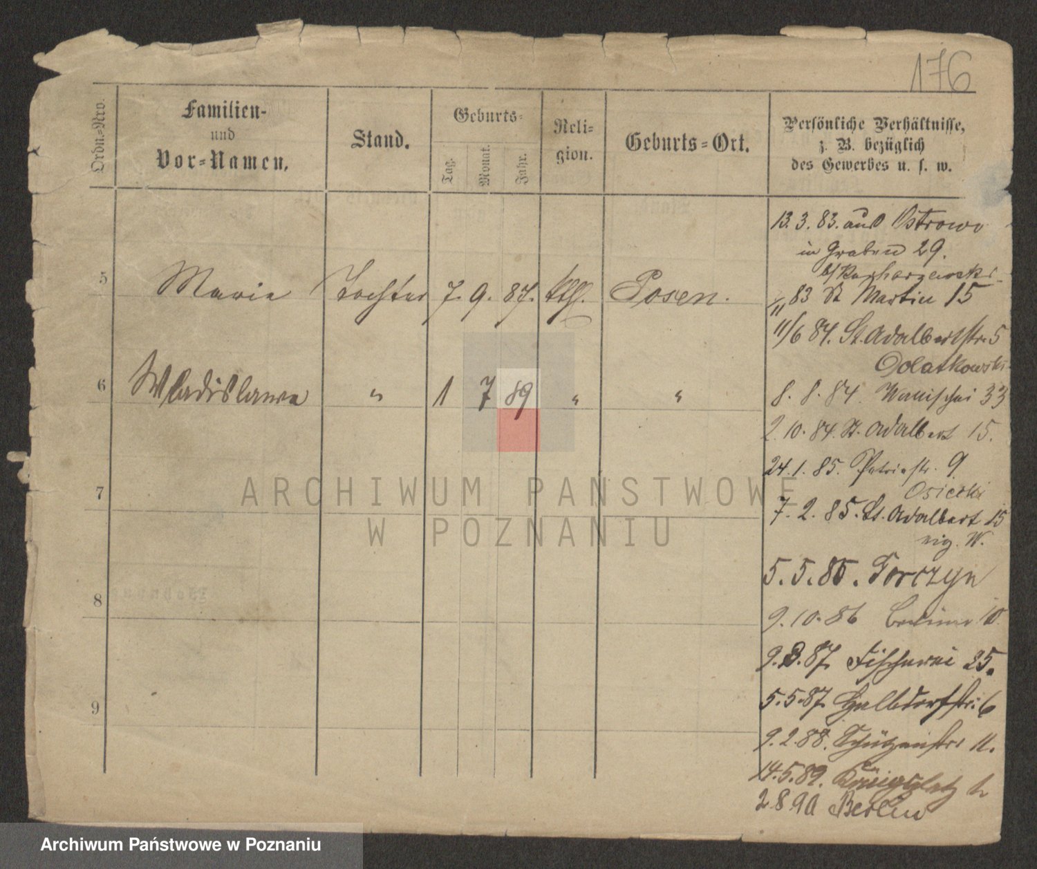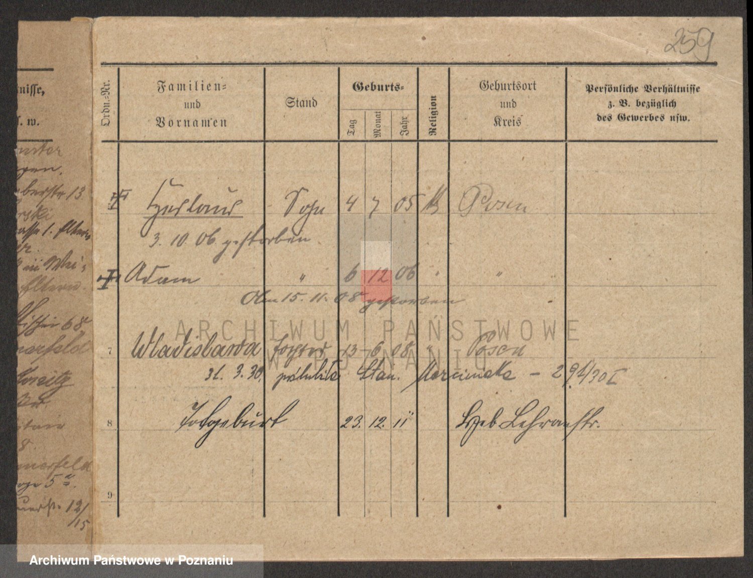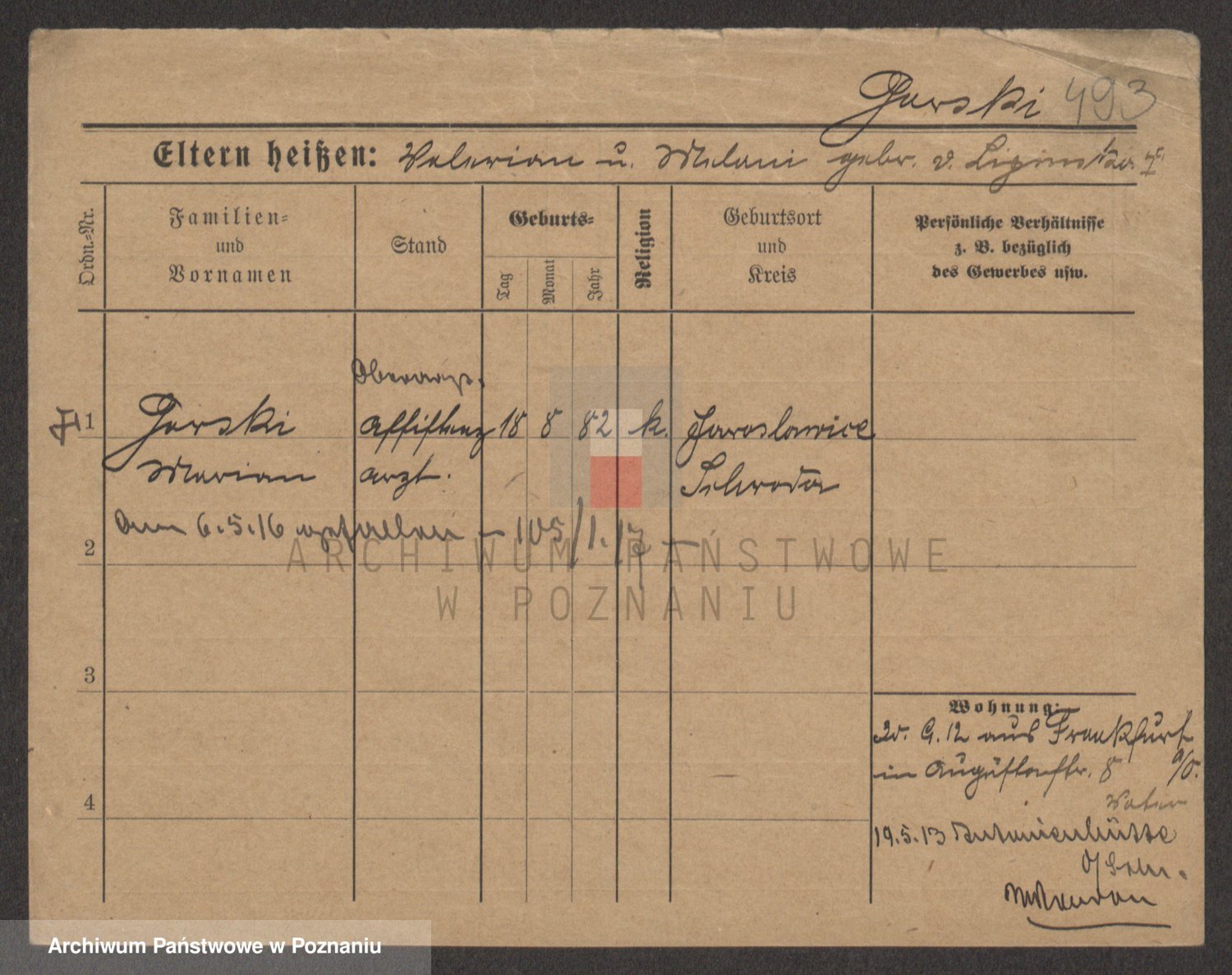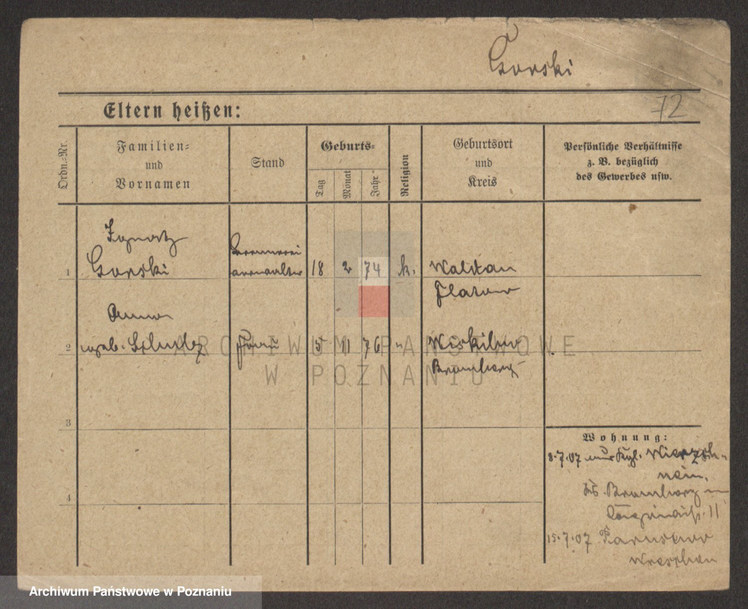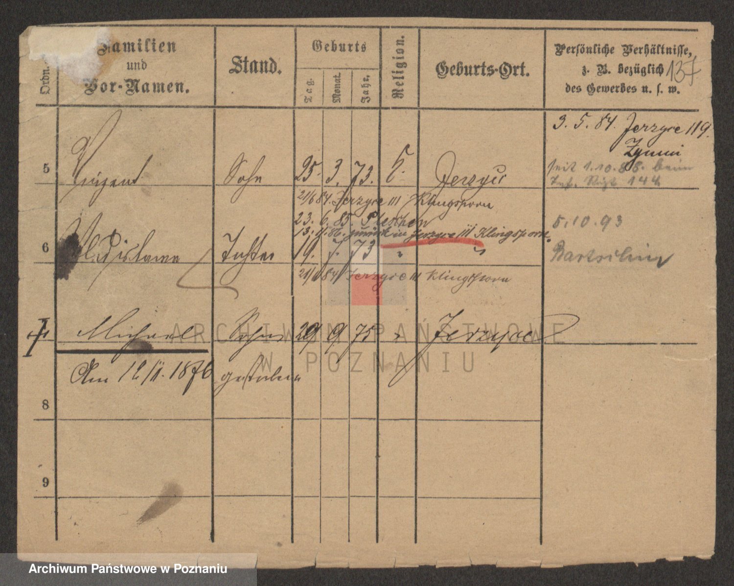 Podgląd karty osobowej dostępny jest po kliknięciu na nazwisko lub ikonkę karty. Można dokonywać powiększenia (ikony na górze) lub przechodzić między kolejnymi skanami (strzałki po bokach).