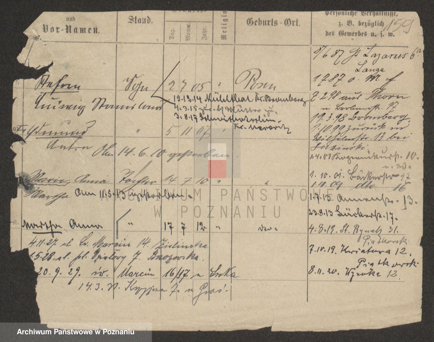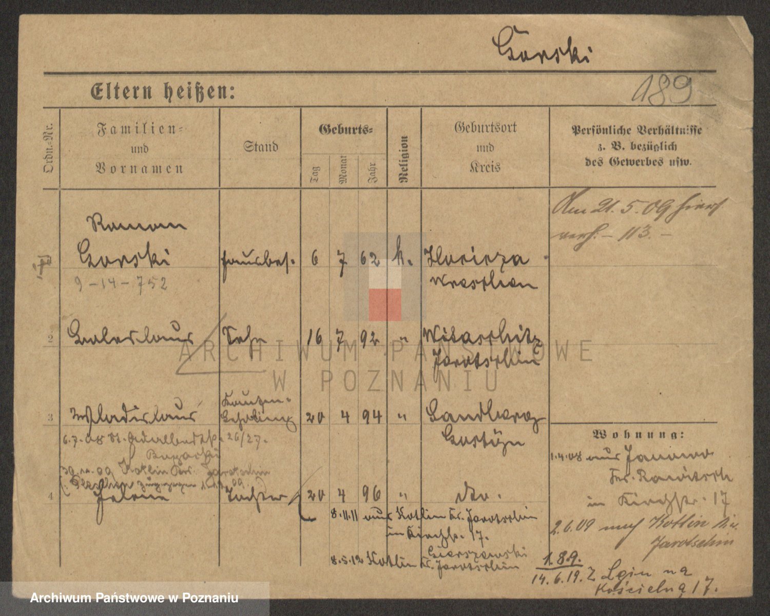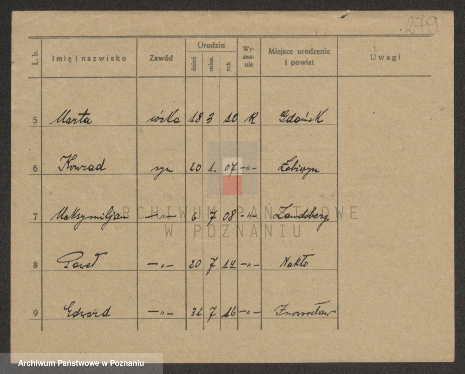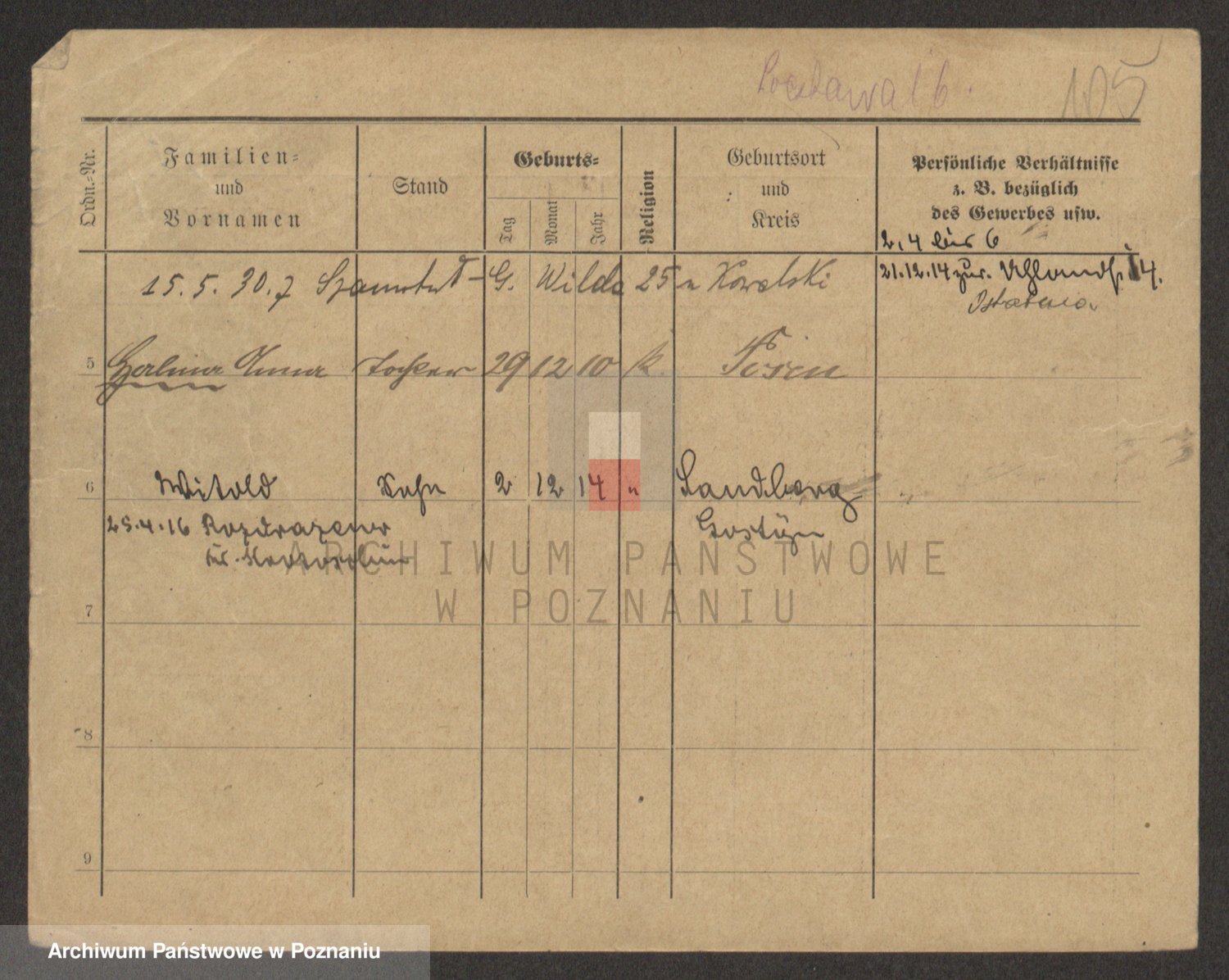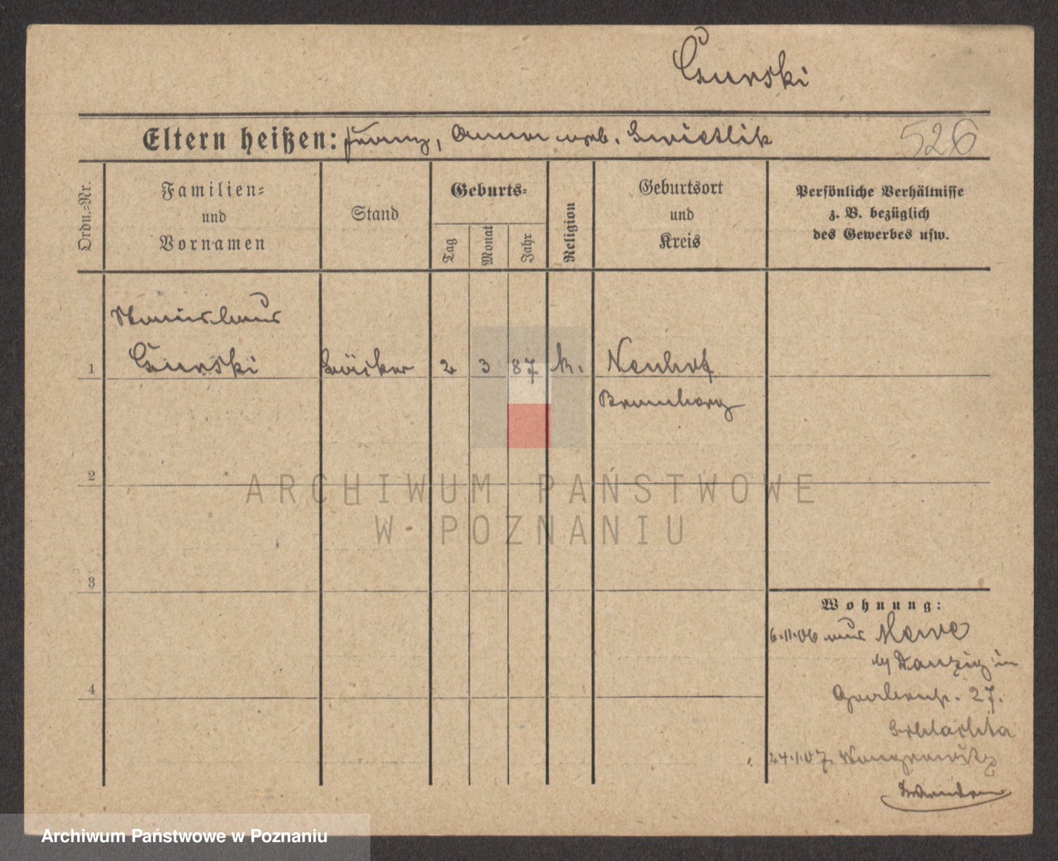Podgląd karty osobowej dostępny jest po kliknięciu na nazwisko lub ikonkę karty. Można dokonywać powiększenia (ikony na górze) lub przechodzić między kolejnymi skanami (strzałki po bokach).