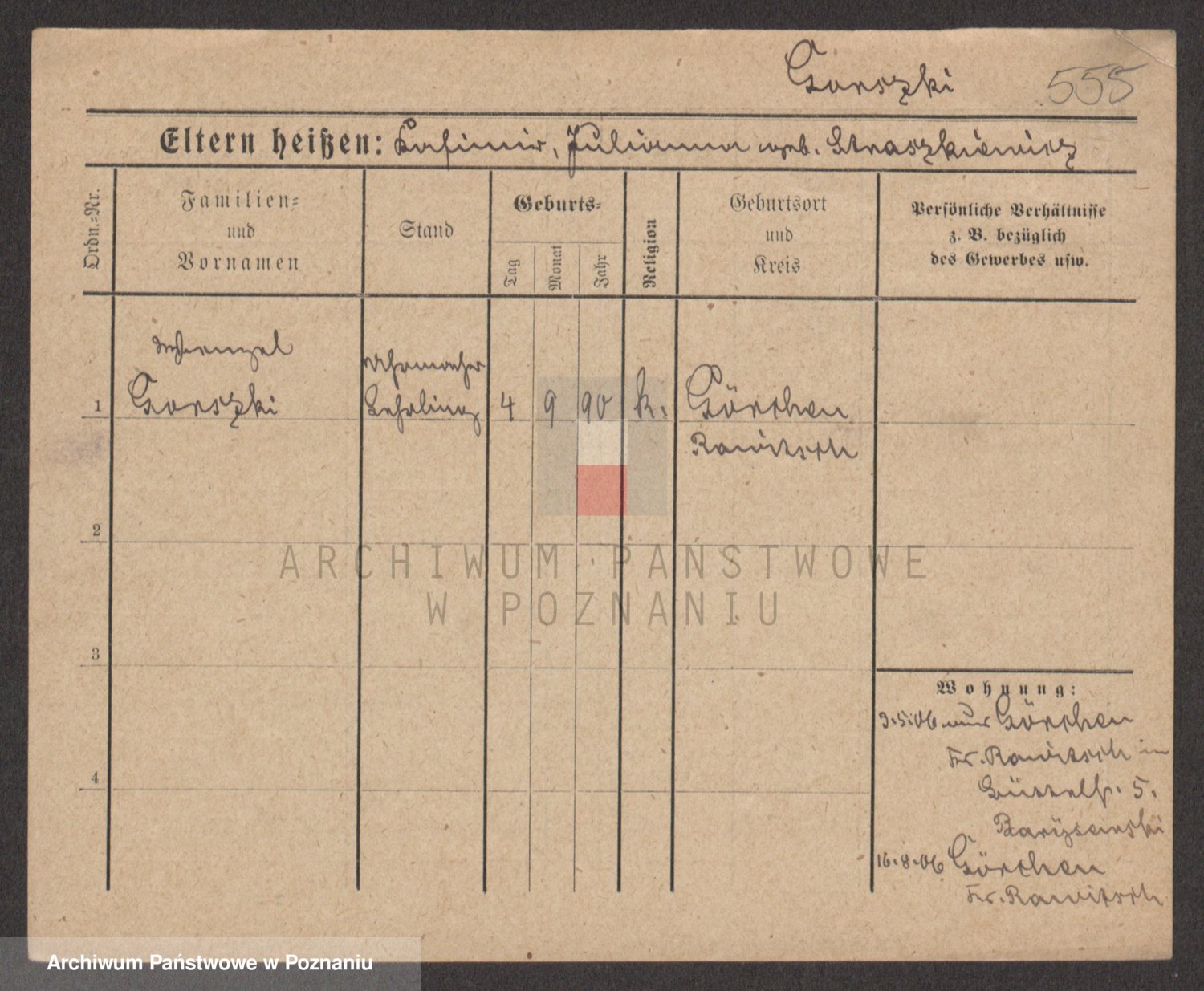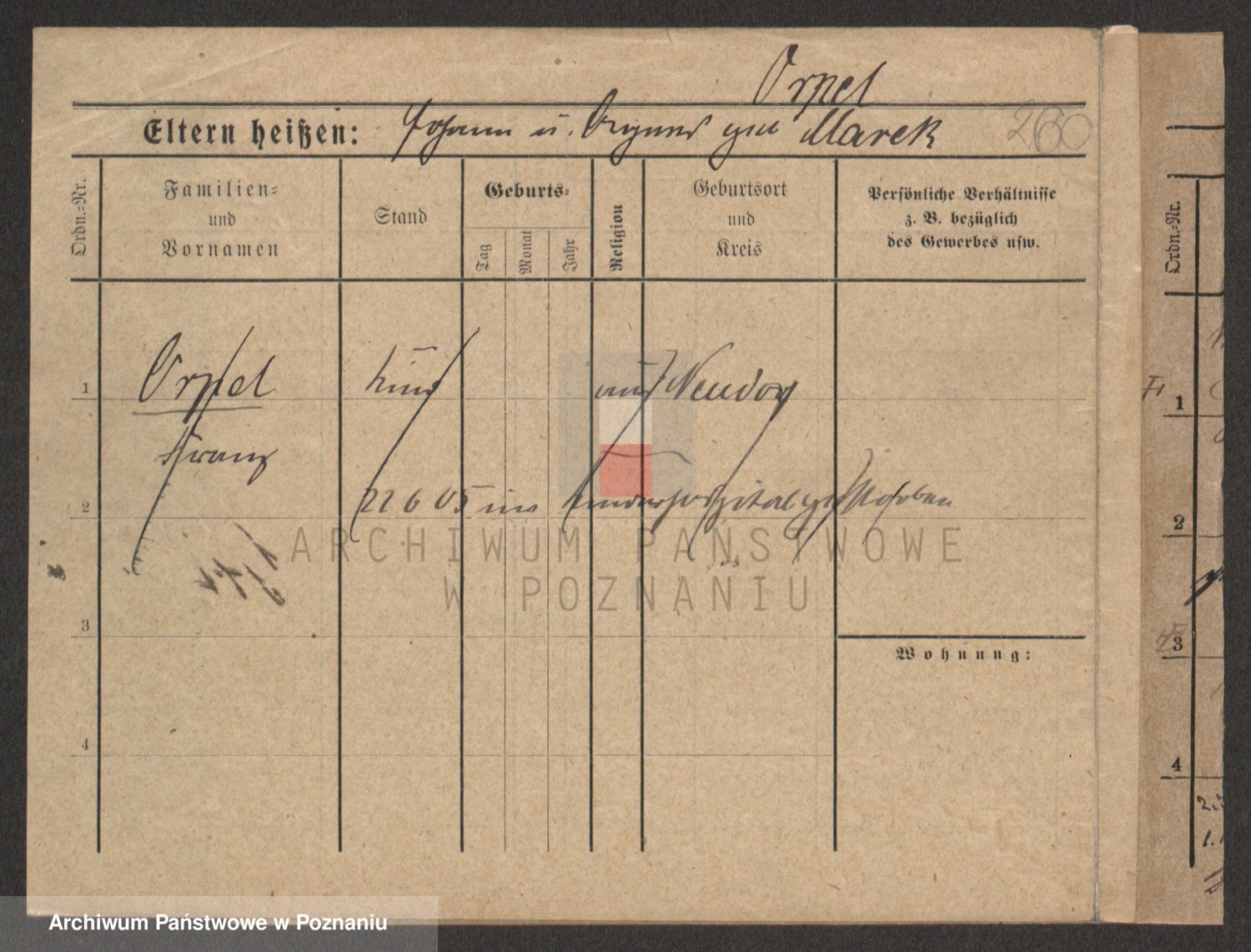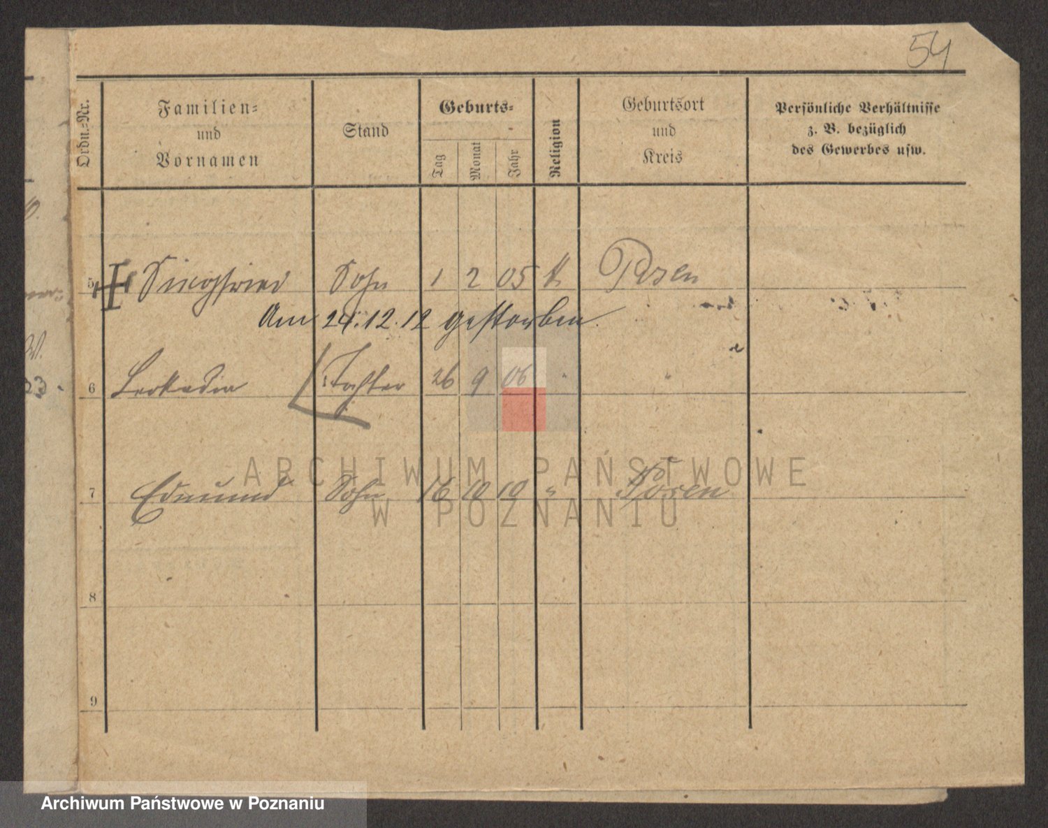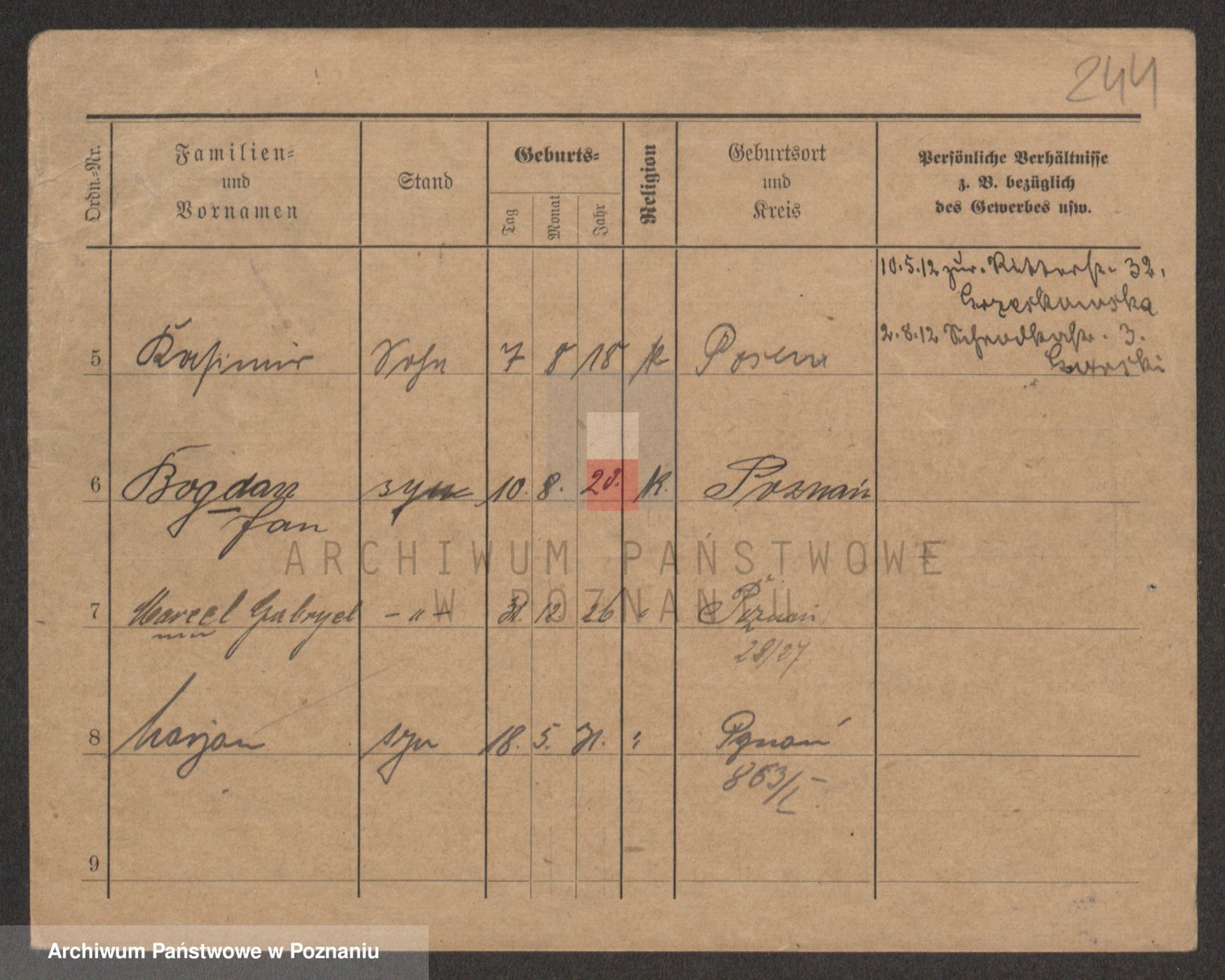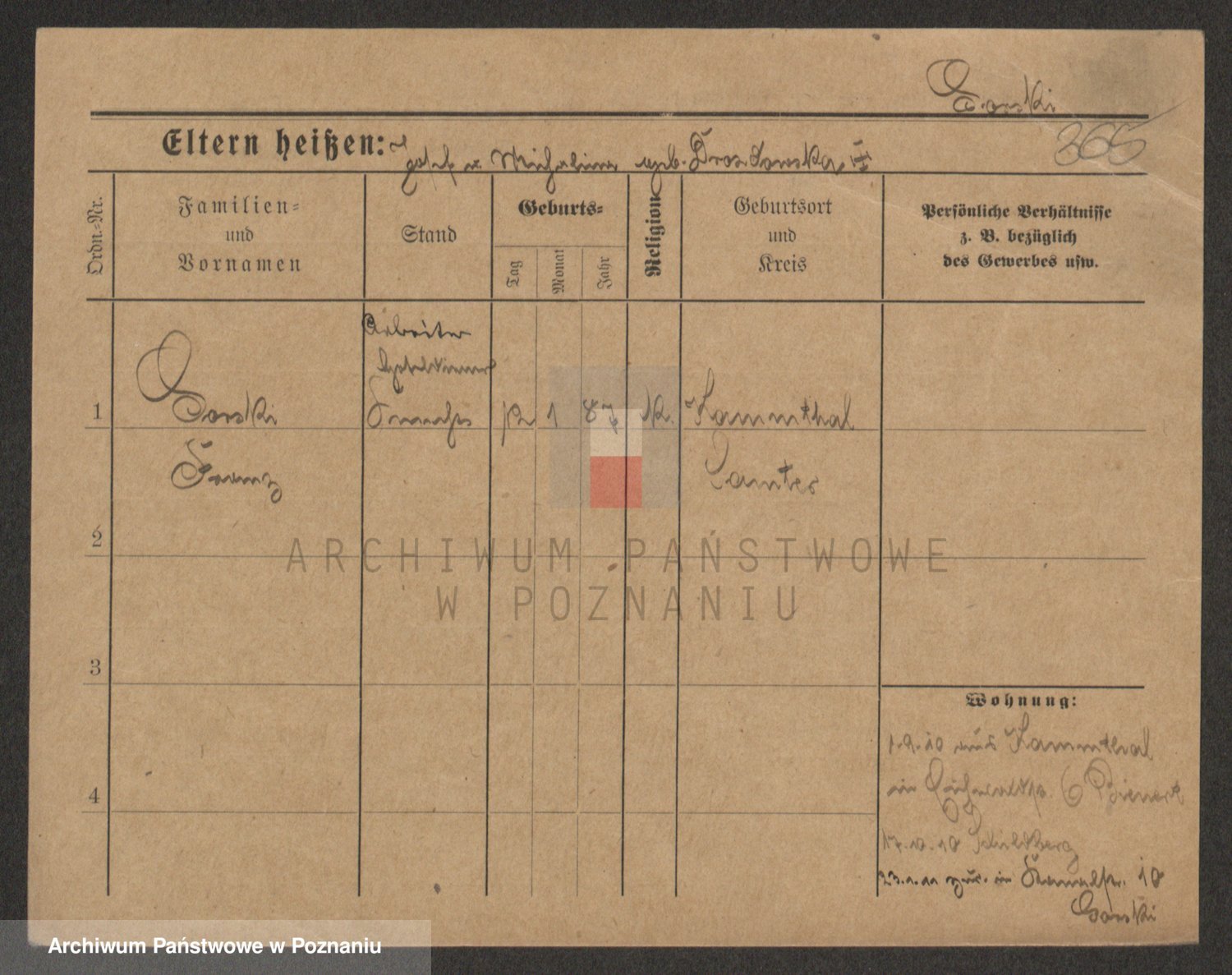 Podgląd karty osobowej dostępny jest po kliknięciu na nazwisko lub ikonkę karty. Można dokonywać powiększenia (ikony na górze) lub przechodzić między kolejnymi skanami (strzałki po bokach).
