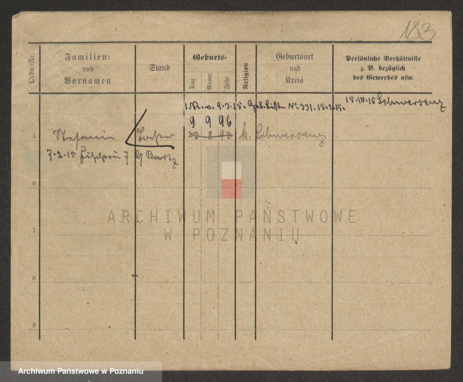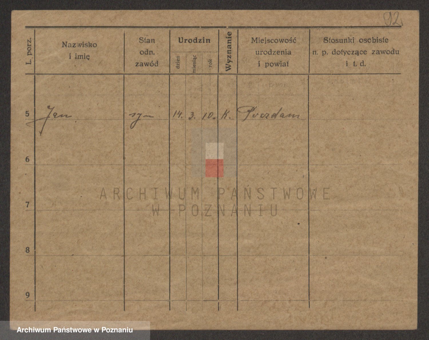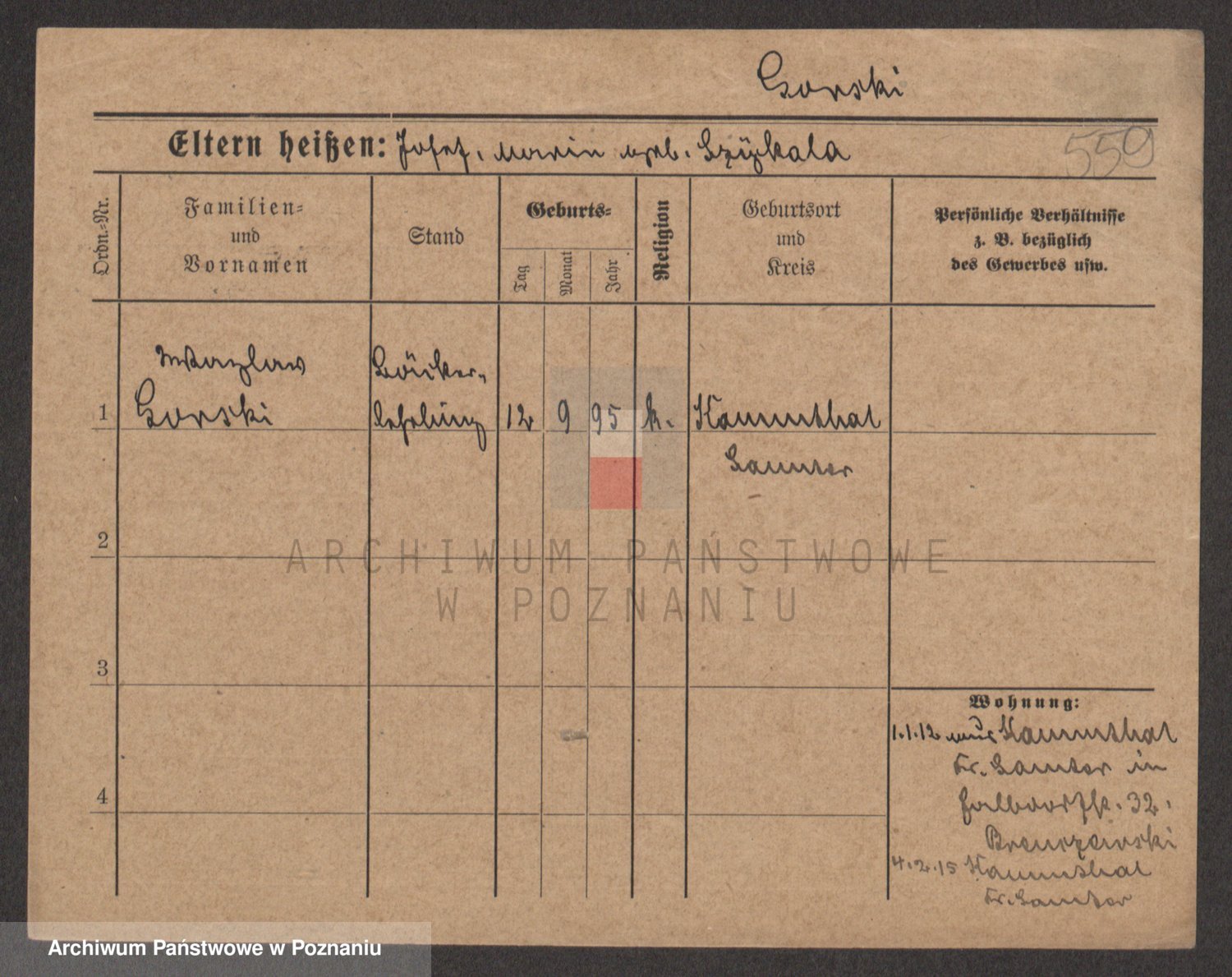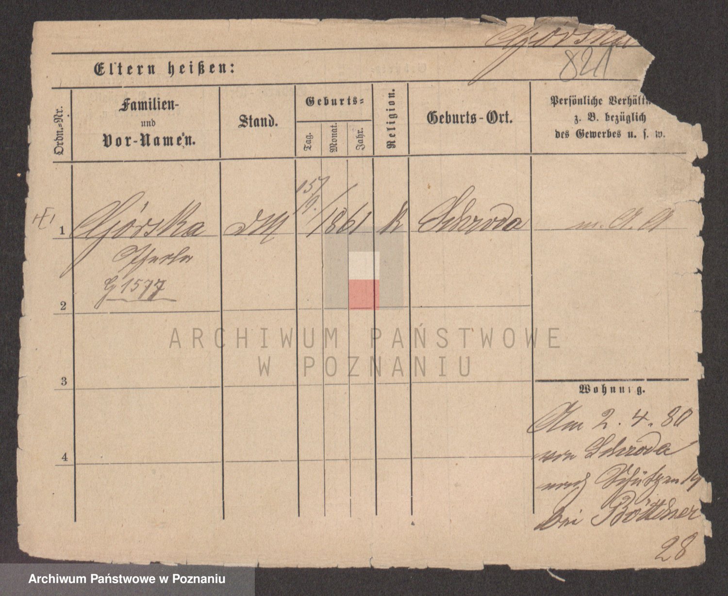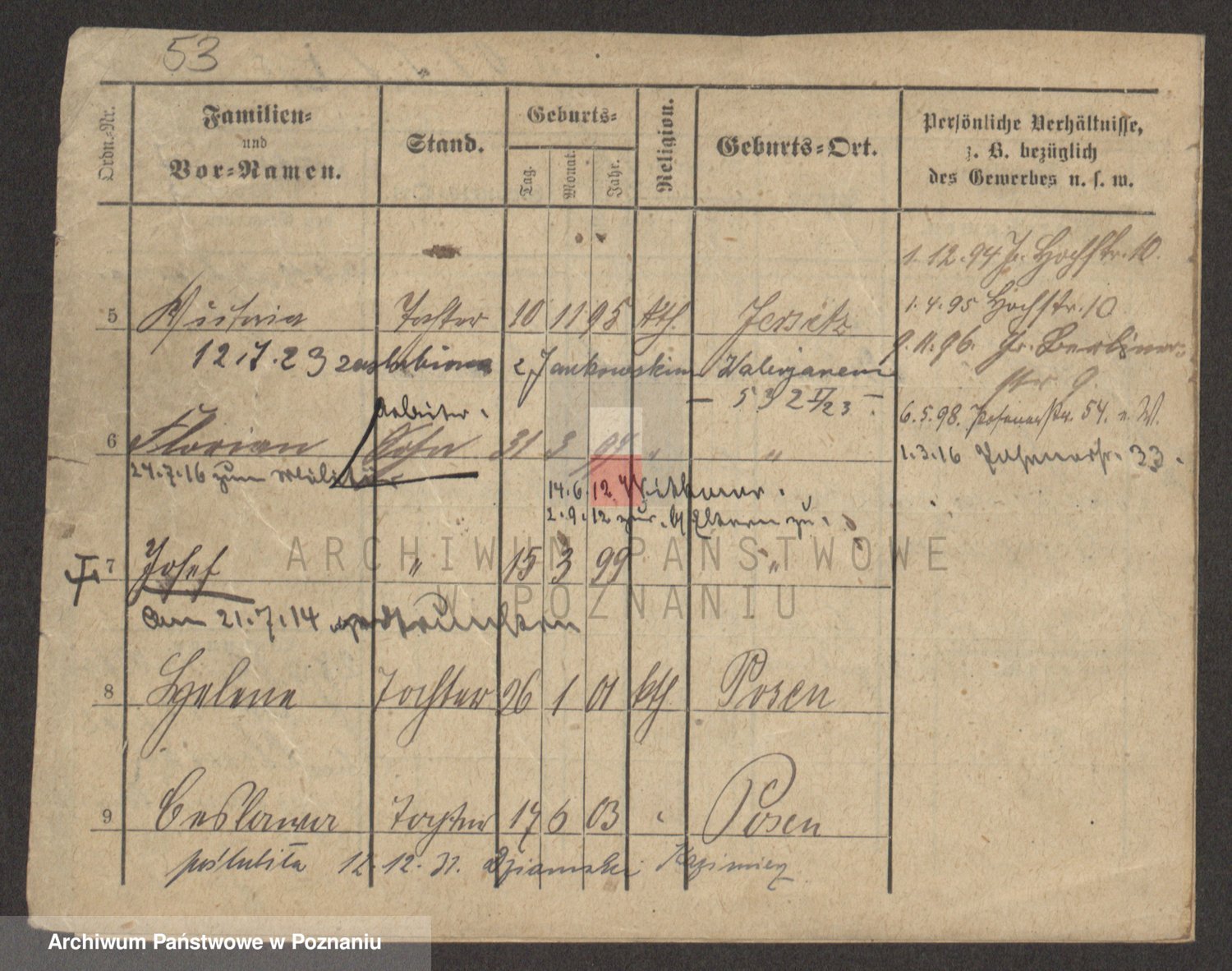 Podgląd karty osobowej dostępny jest po kliknięciu na nazwisko lub ikonkę karty. Można dokonywać powiększenia (ikony na górze) lub przechodzić między kolejnymi skanami (strzałki po bokach).