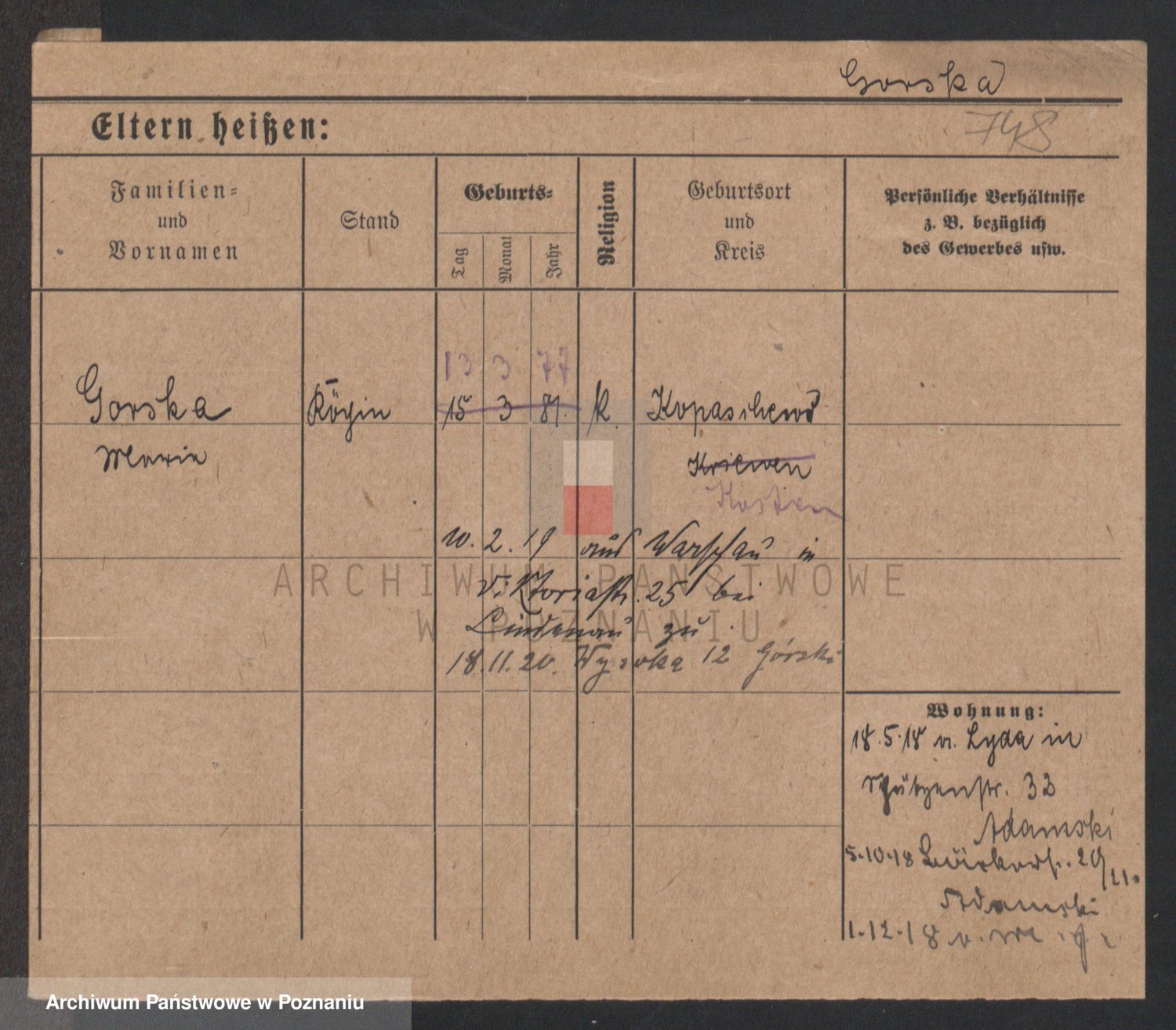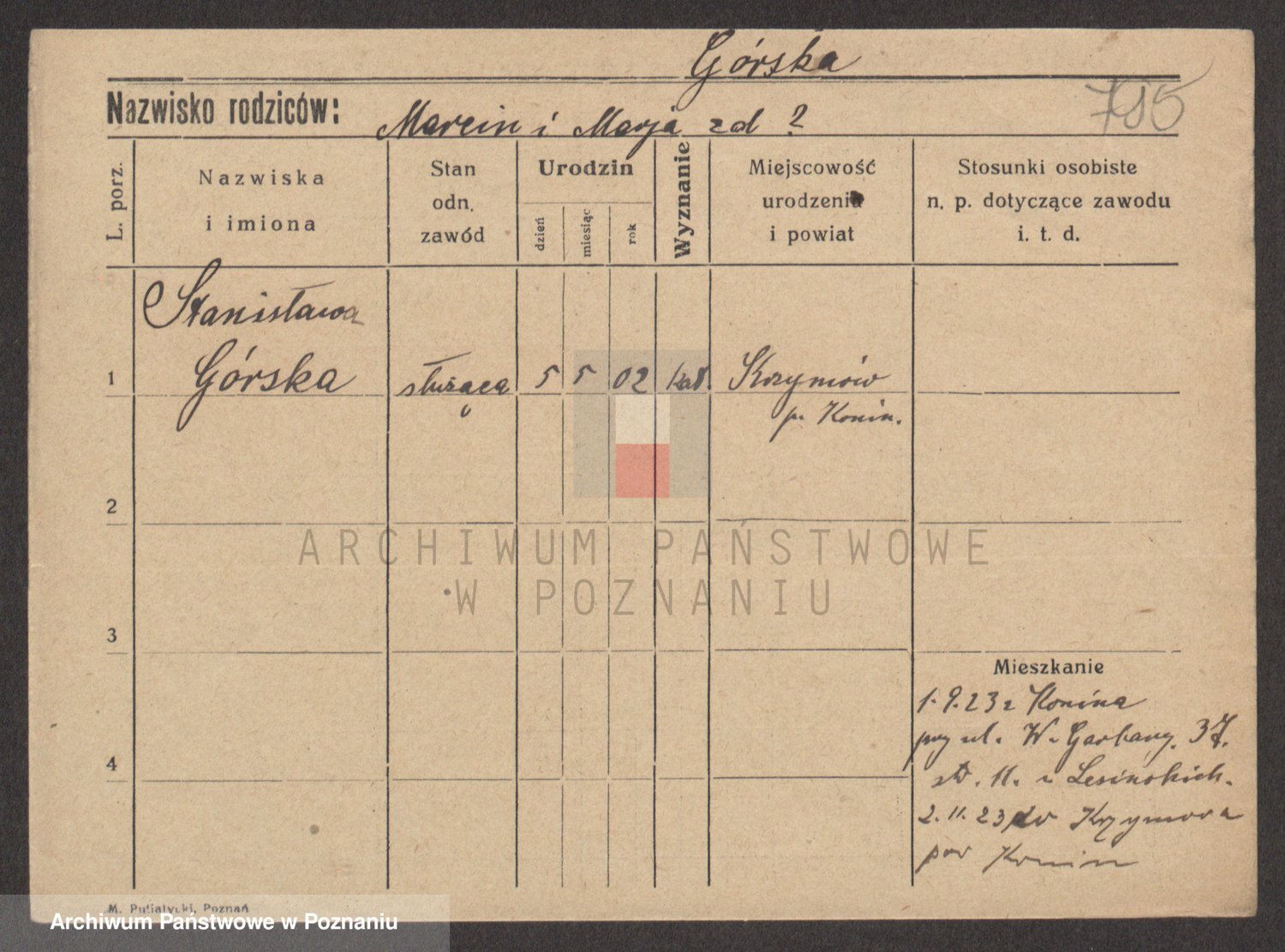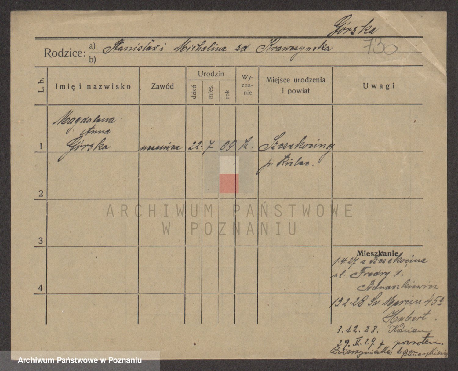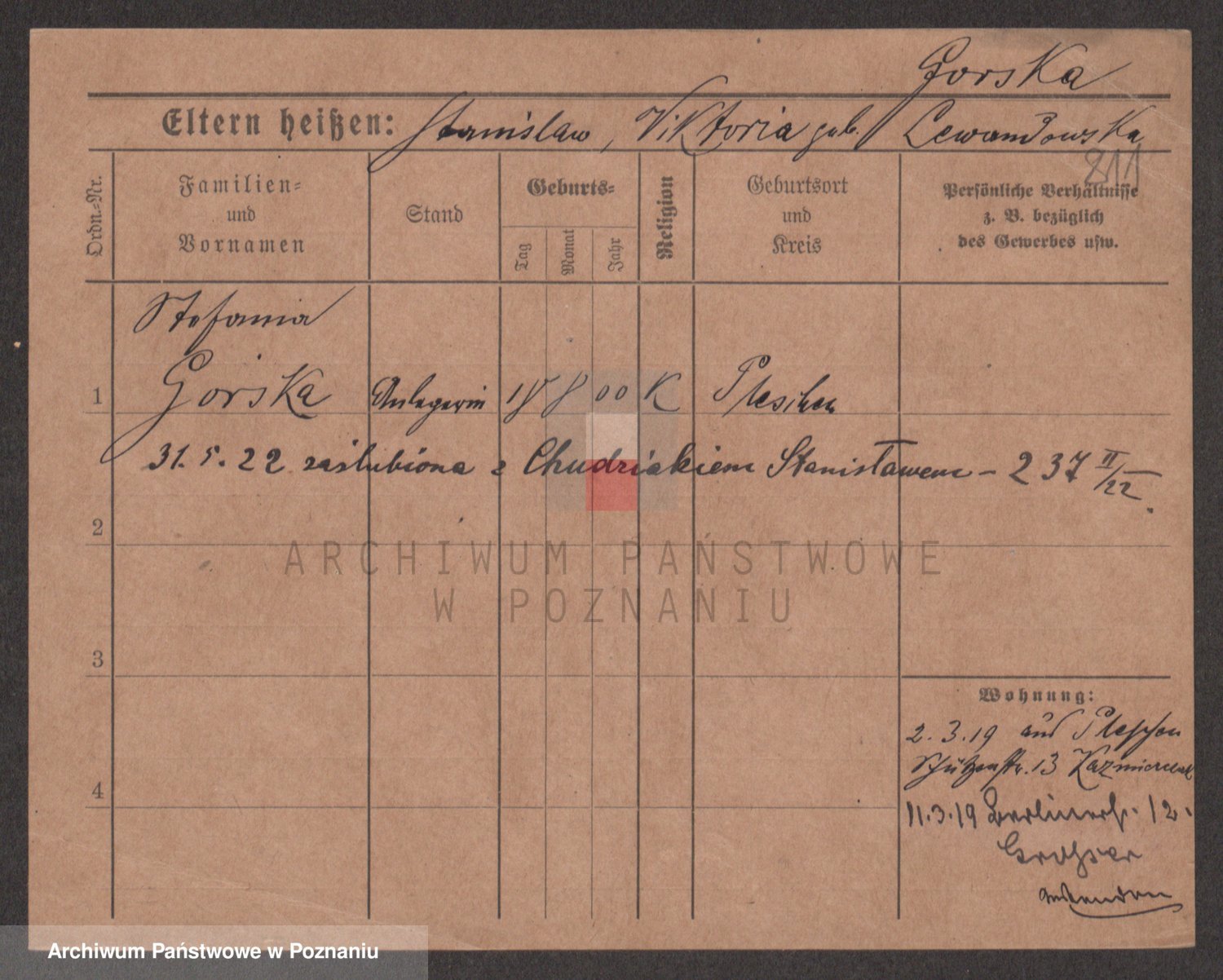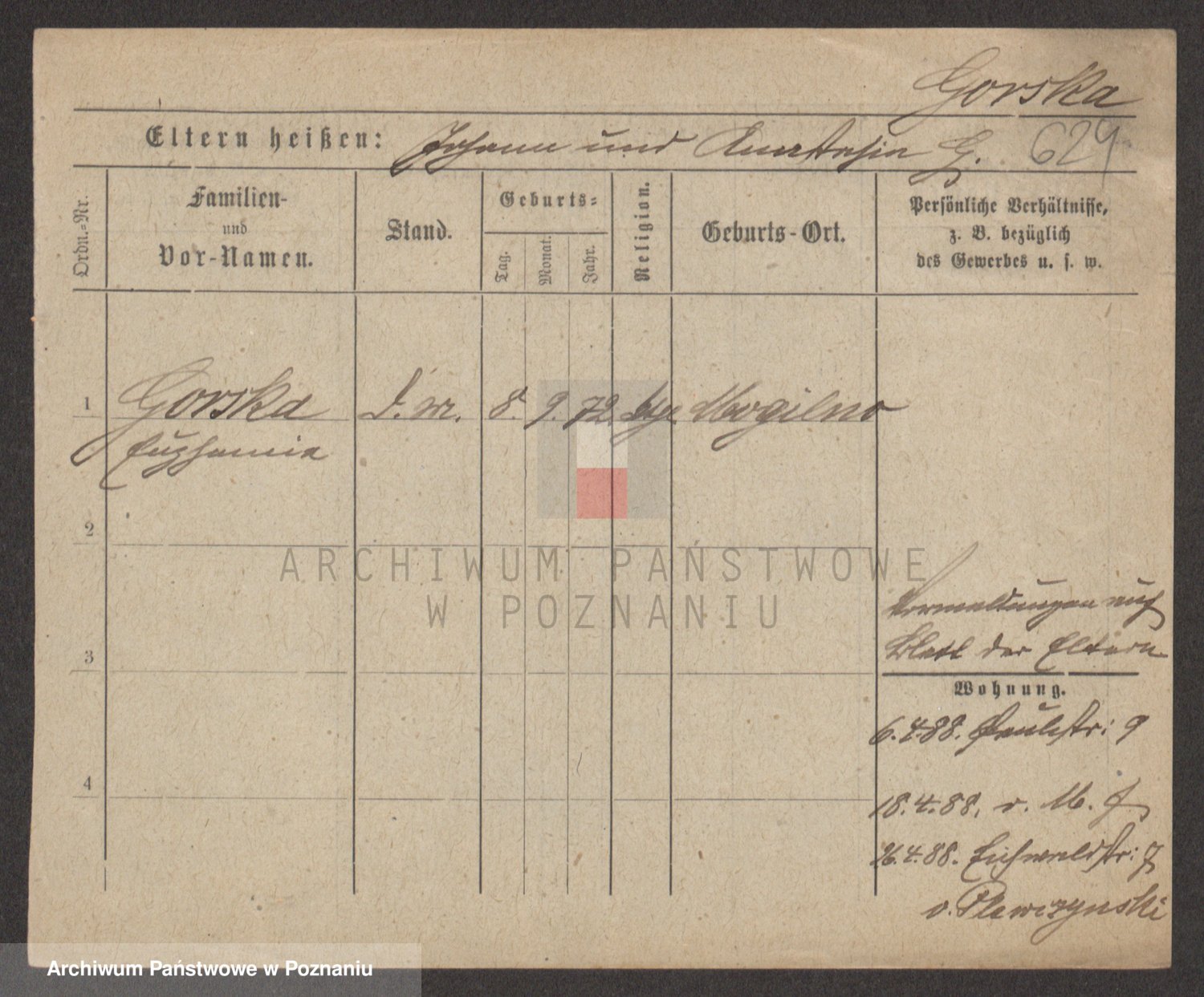 Gorski z d. Dzikowska v., Stanislawa
