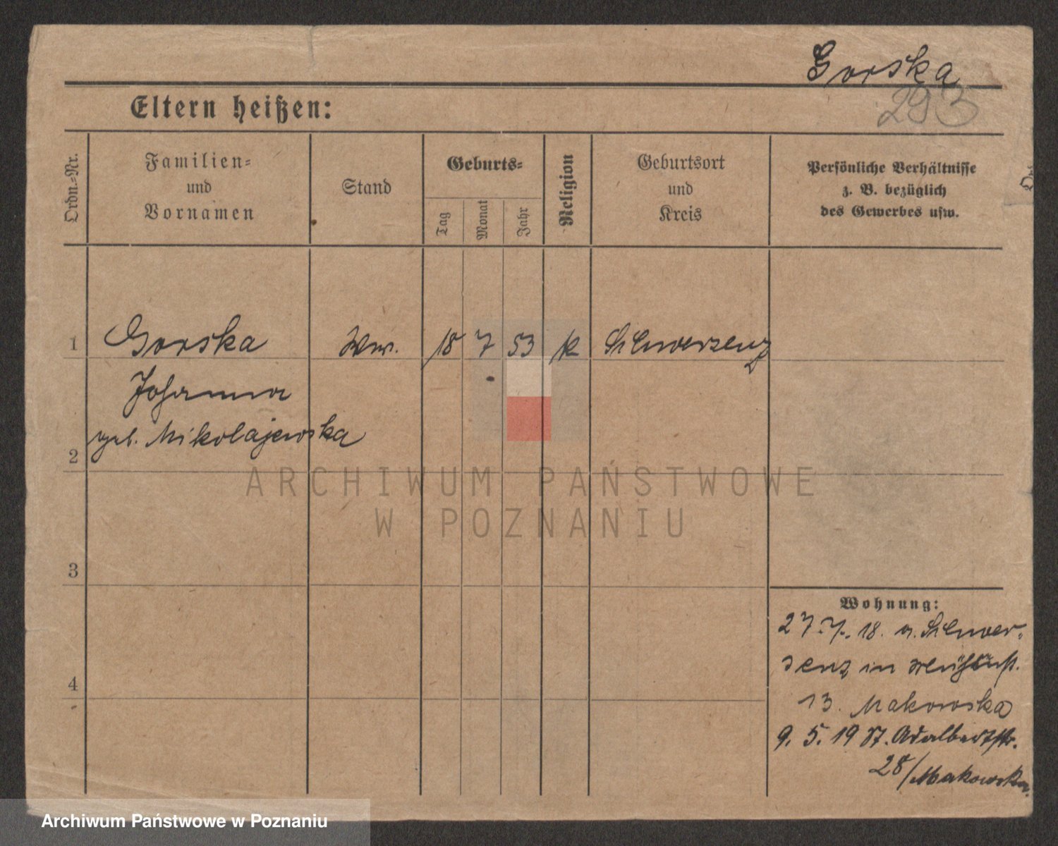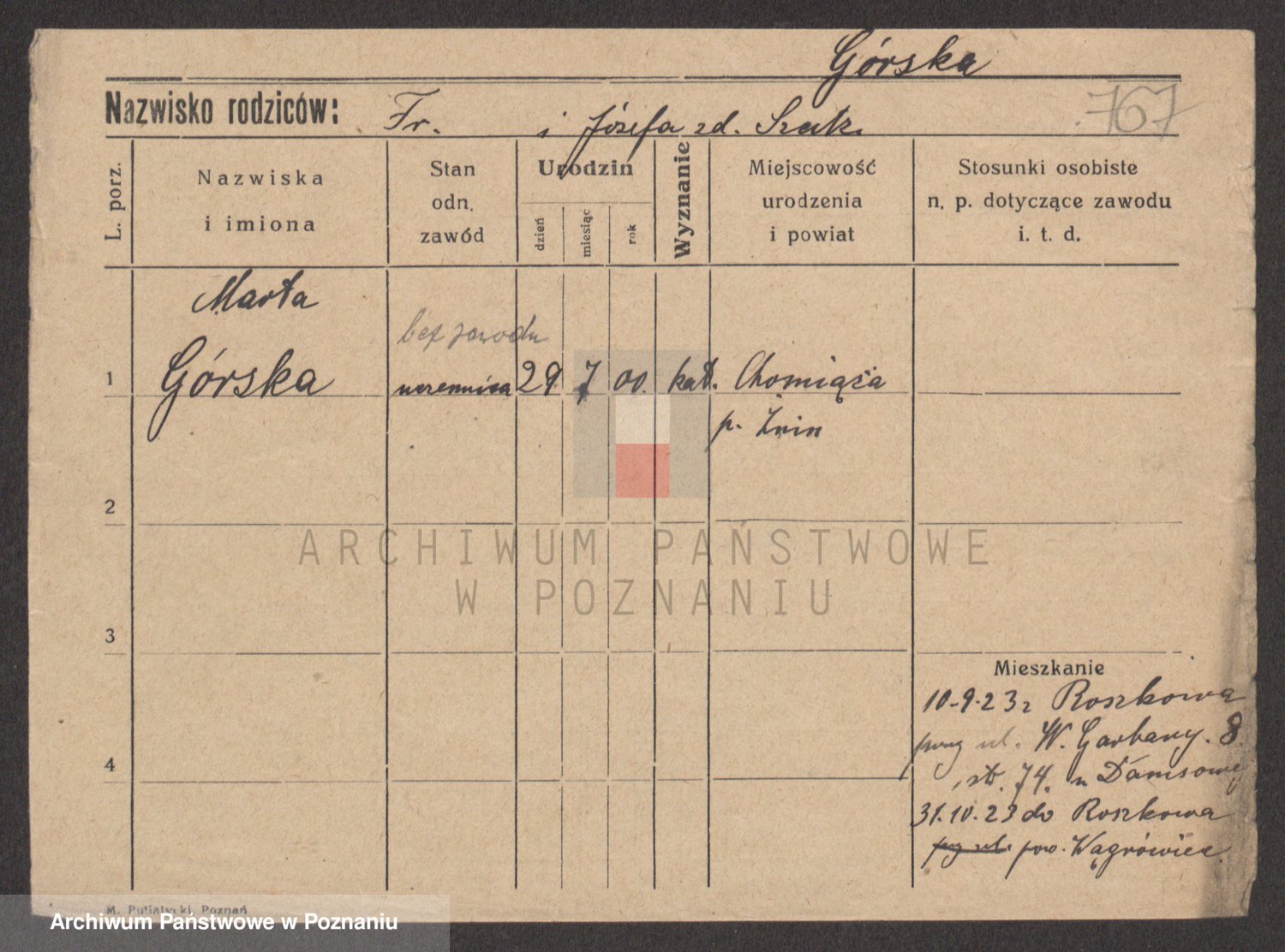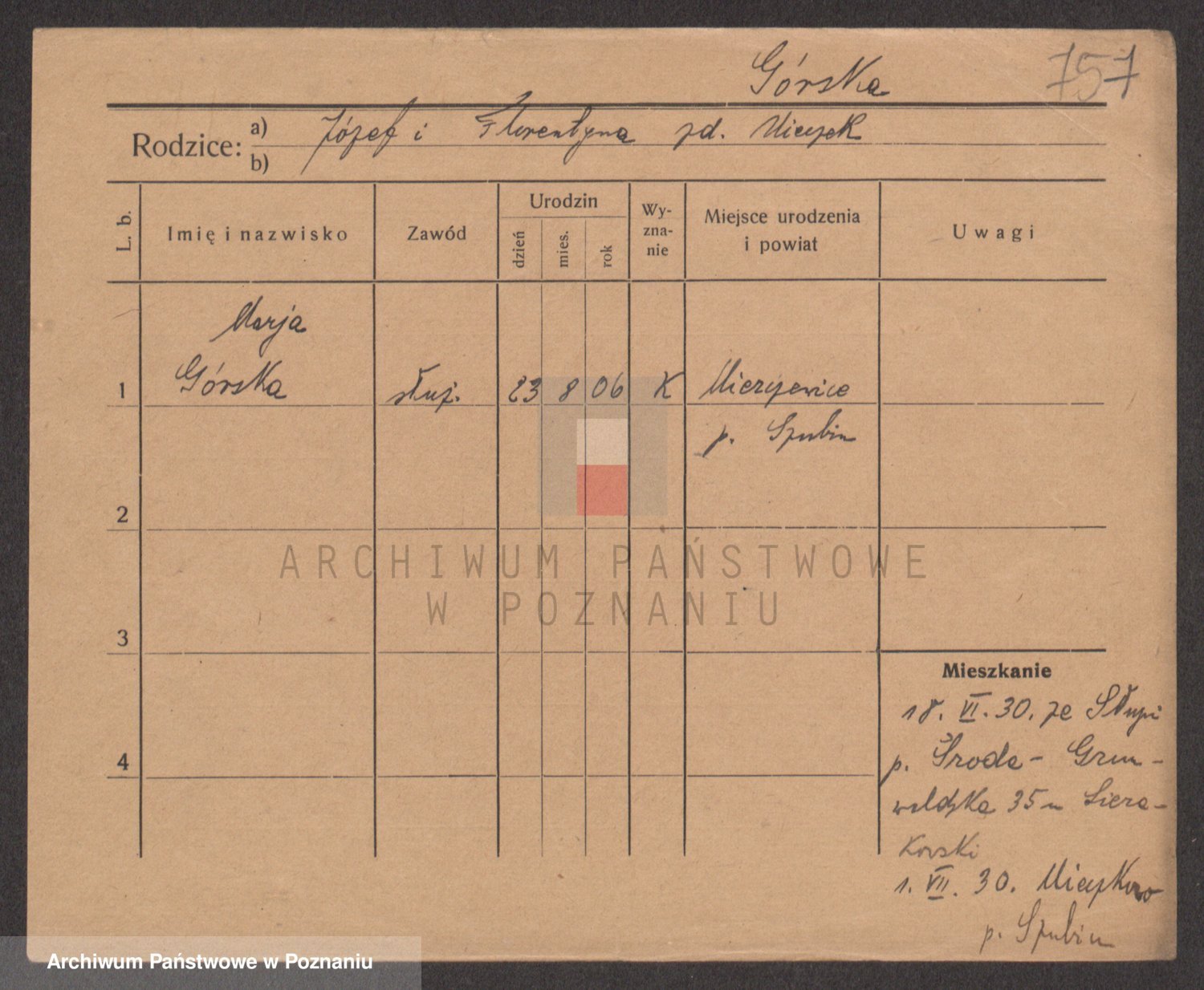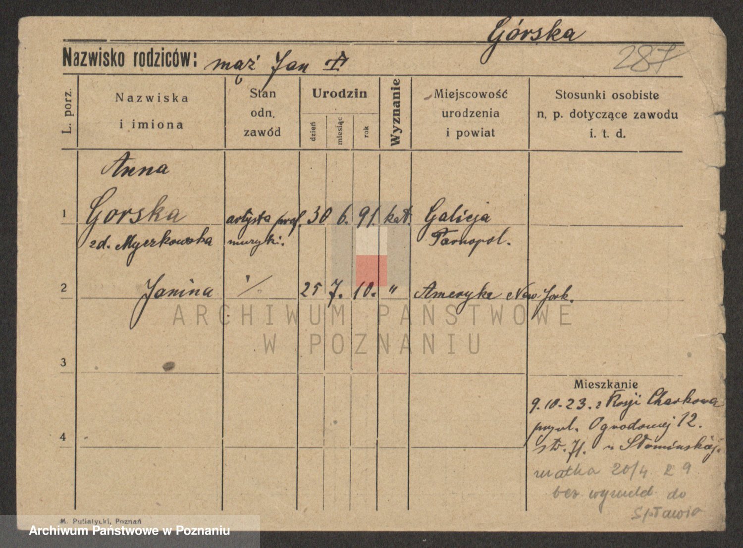 Gorski z d. Dzikowska v., Stanislawa