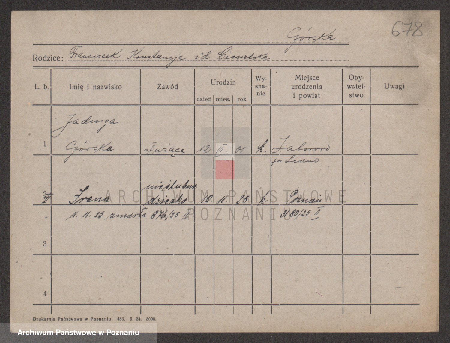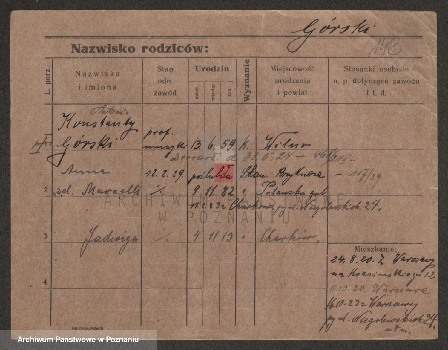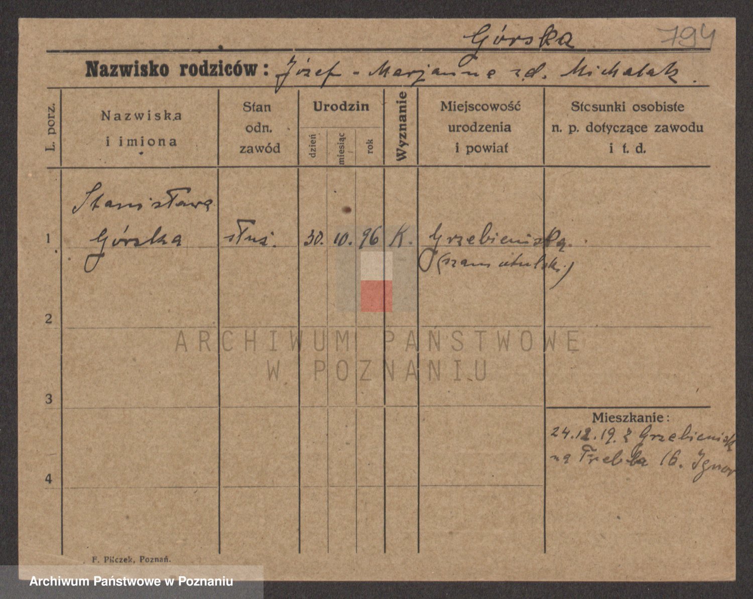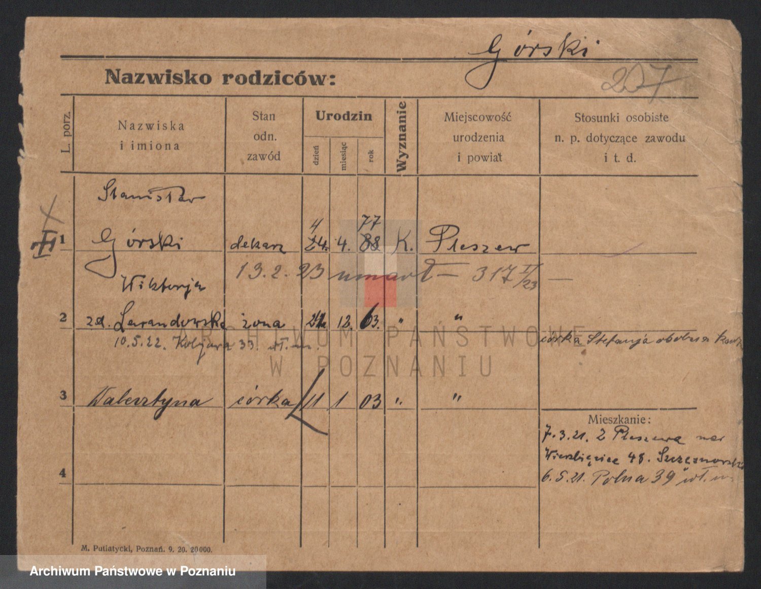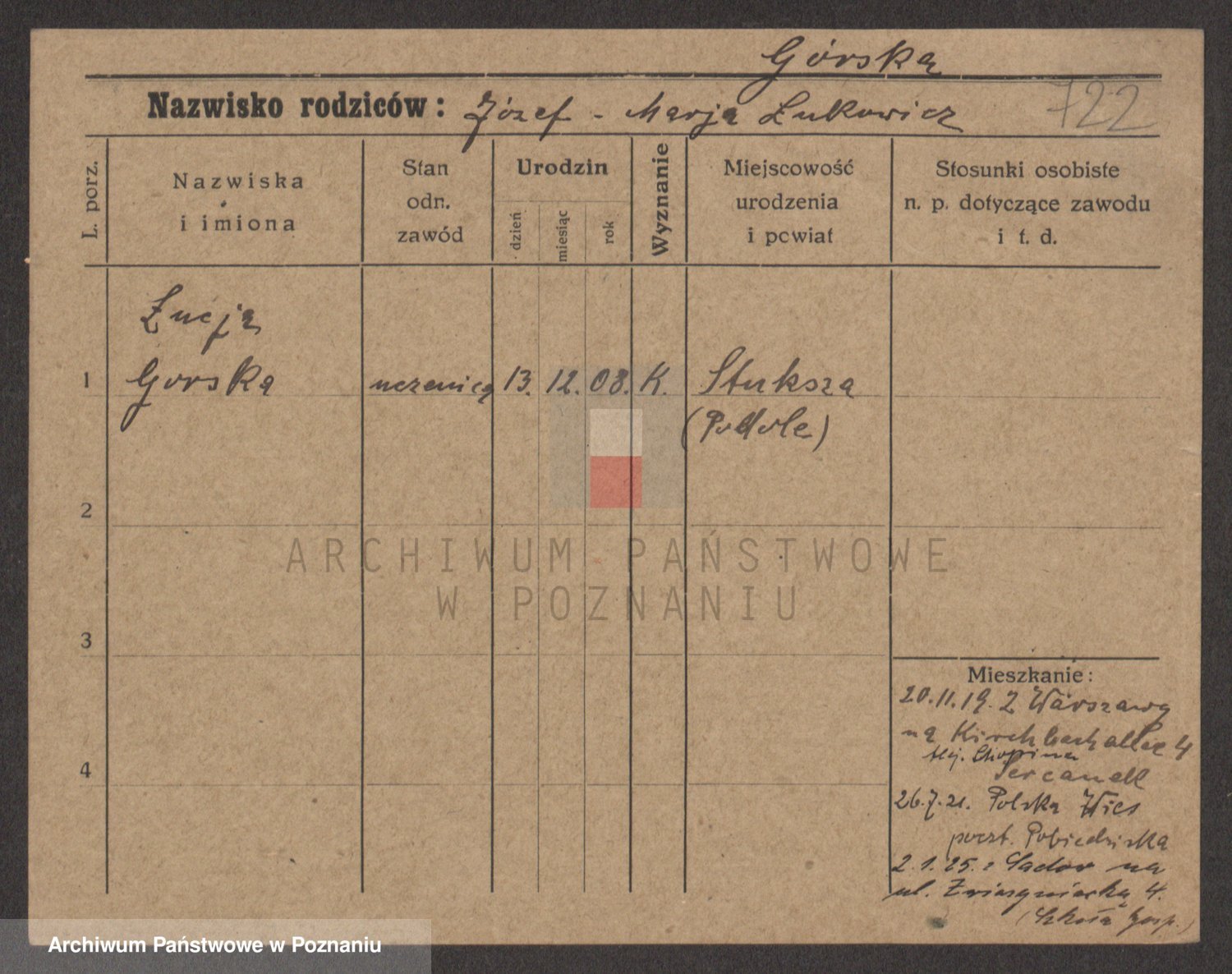 Gorski z d. Dzikowska v., Stanislawa