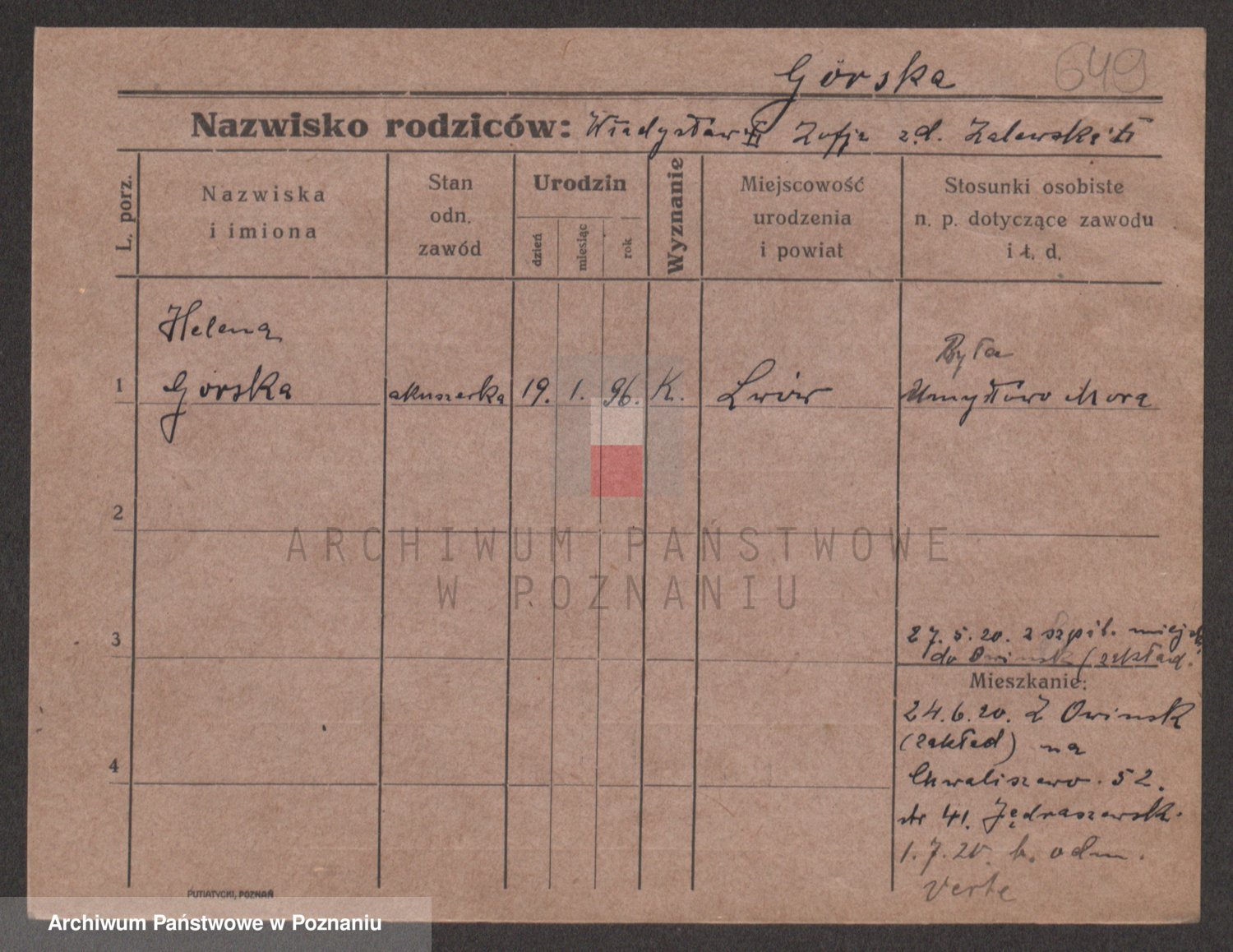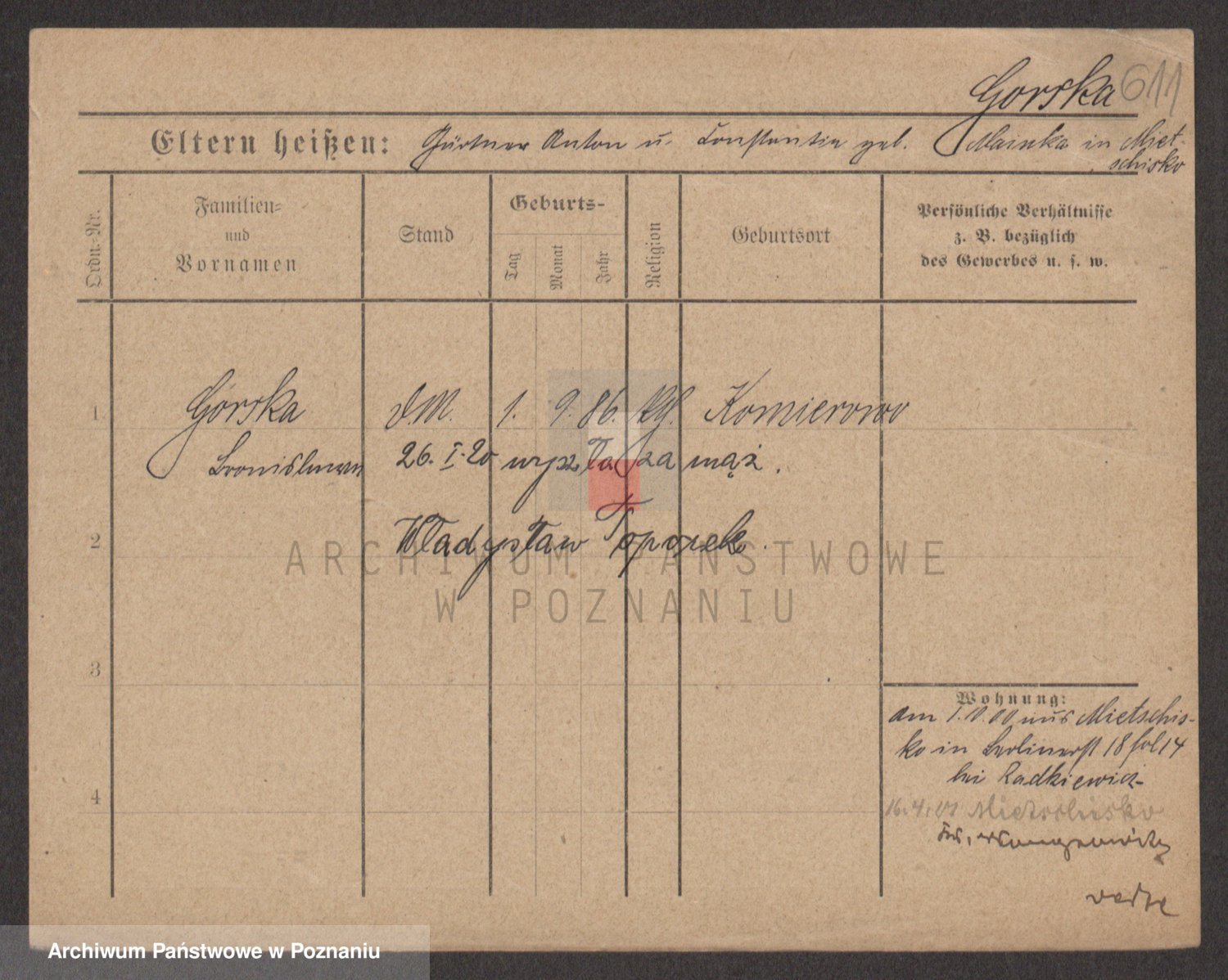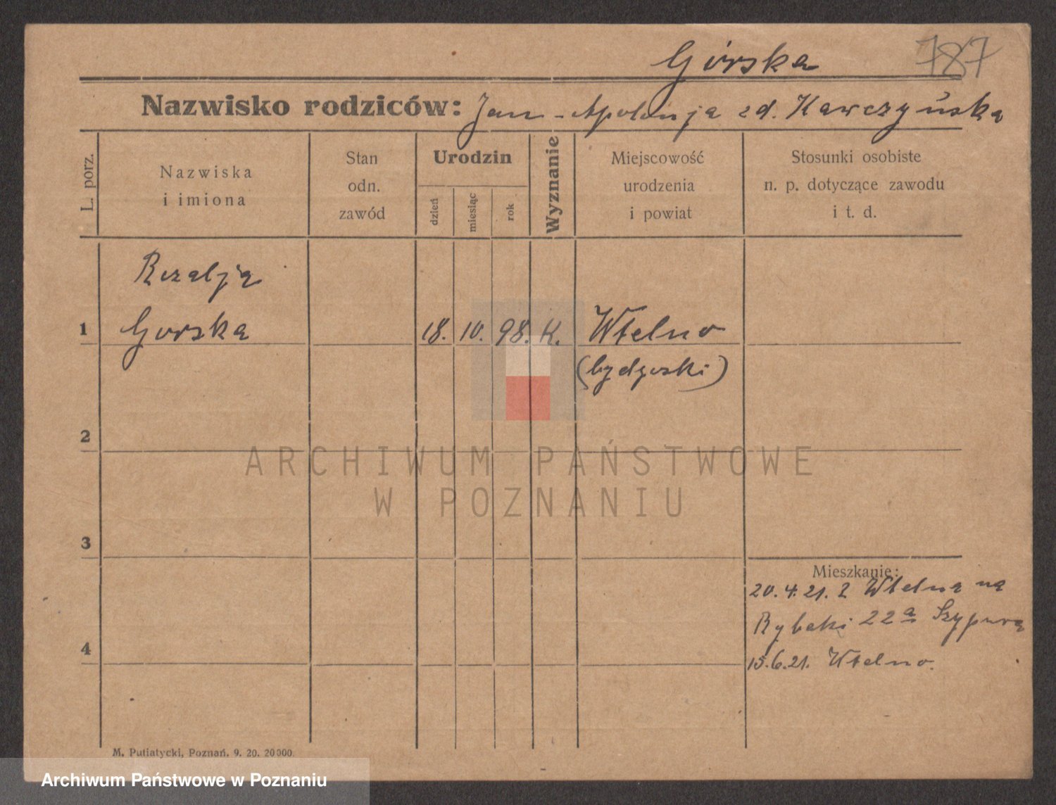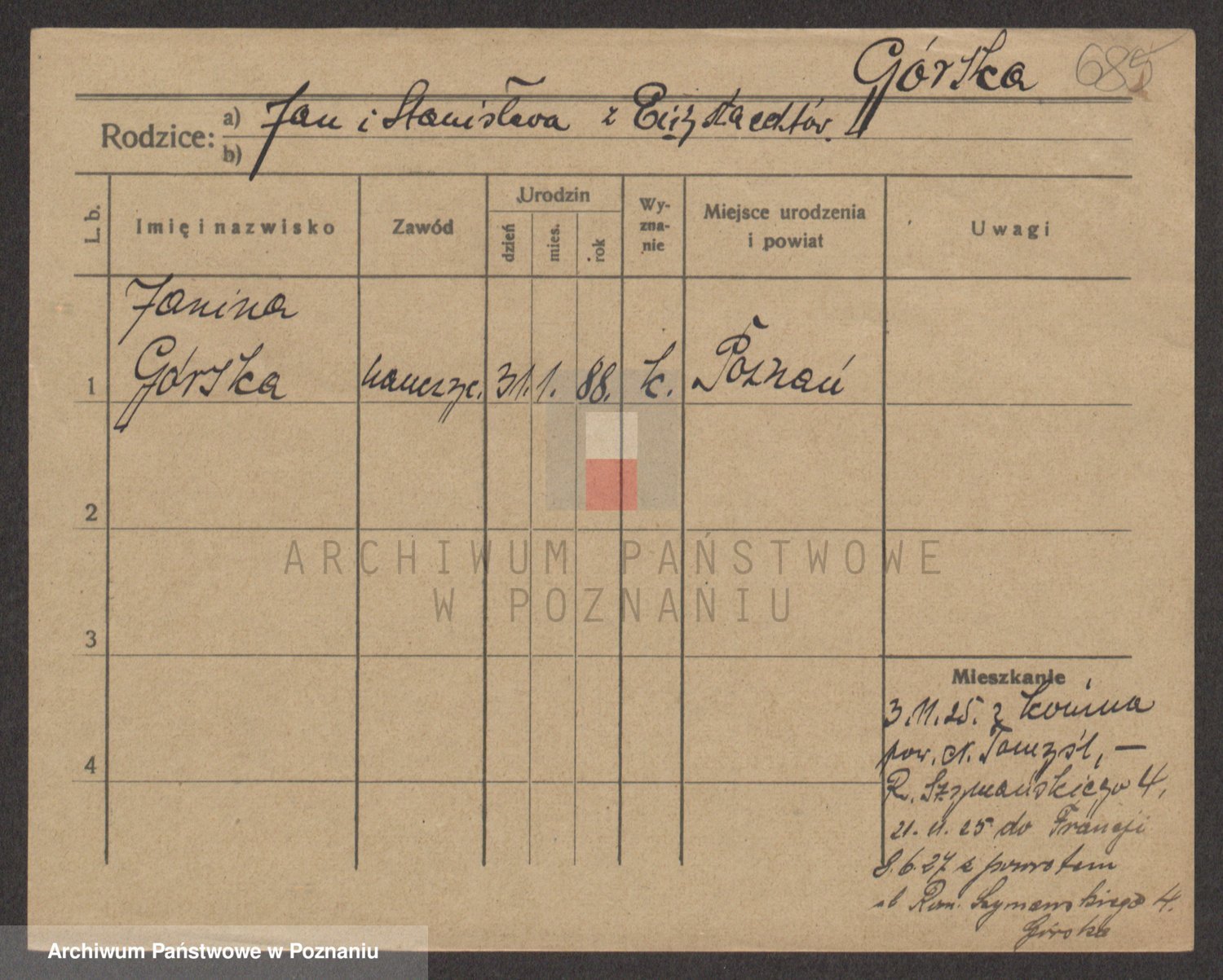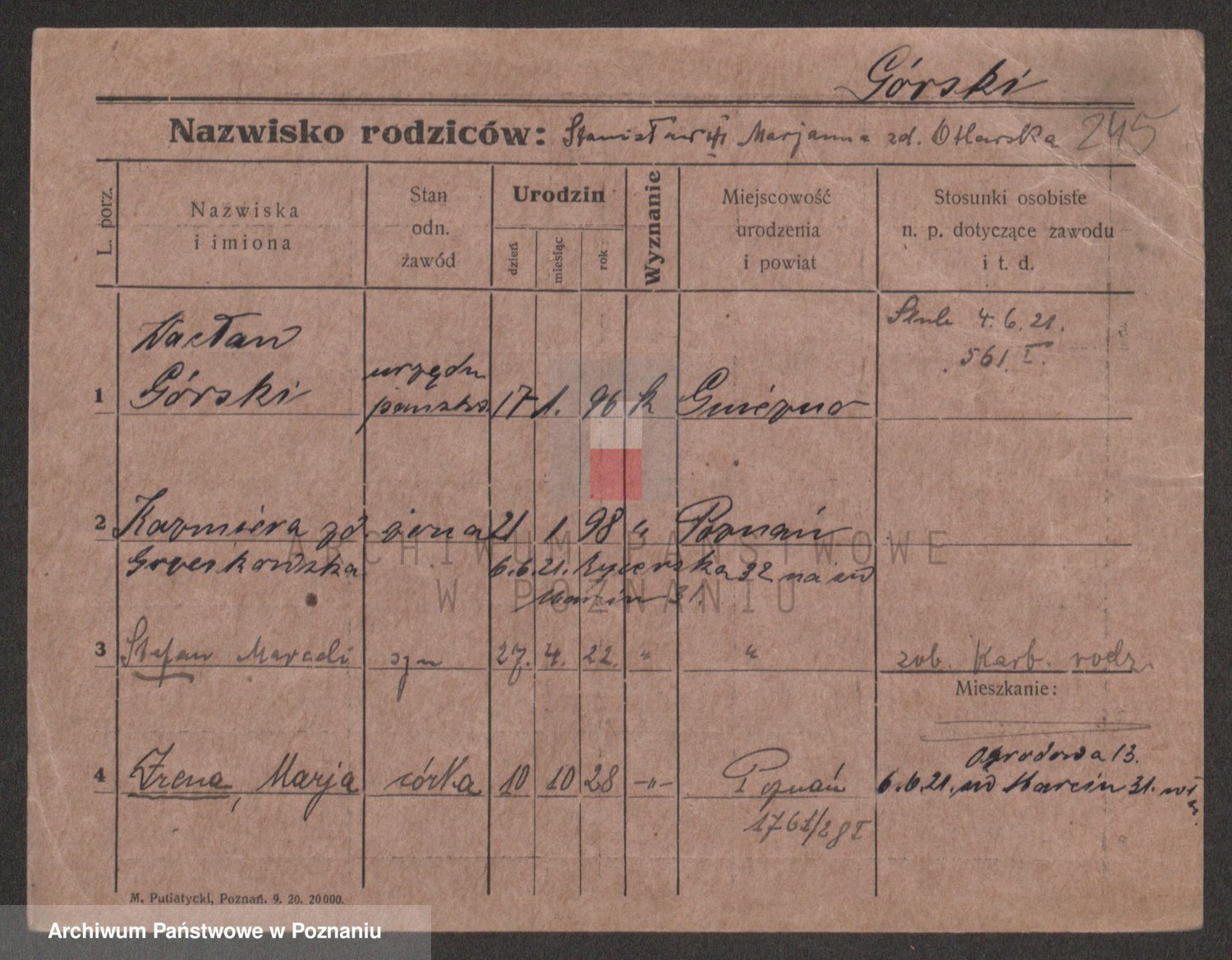 Gorski z d. Dzikowska v., Stanislawa
