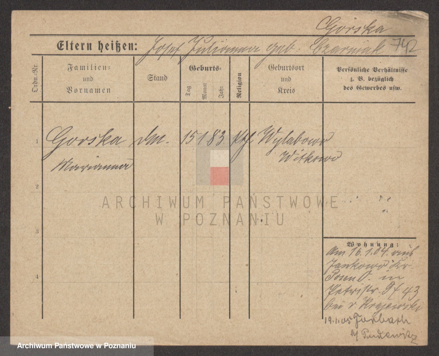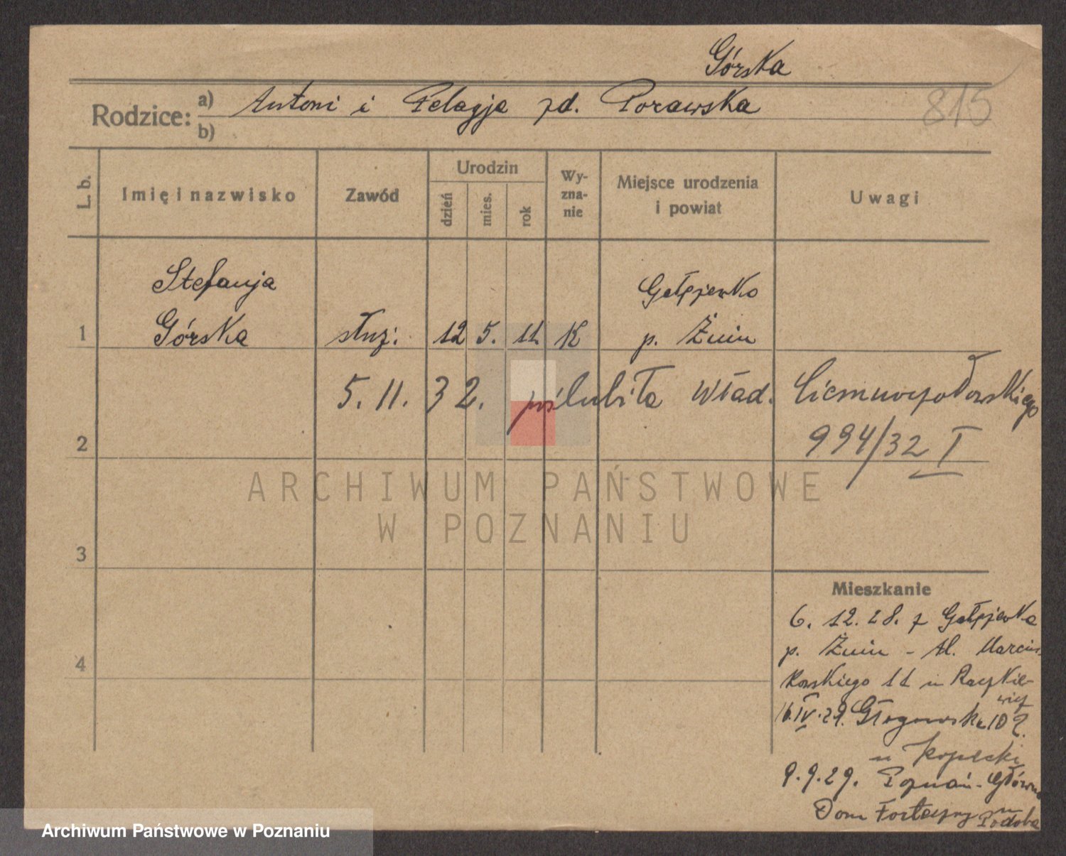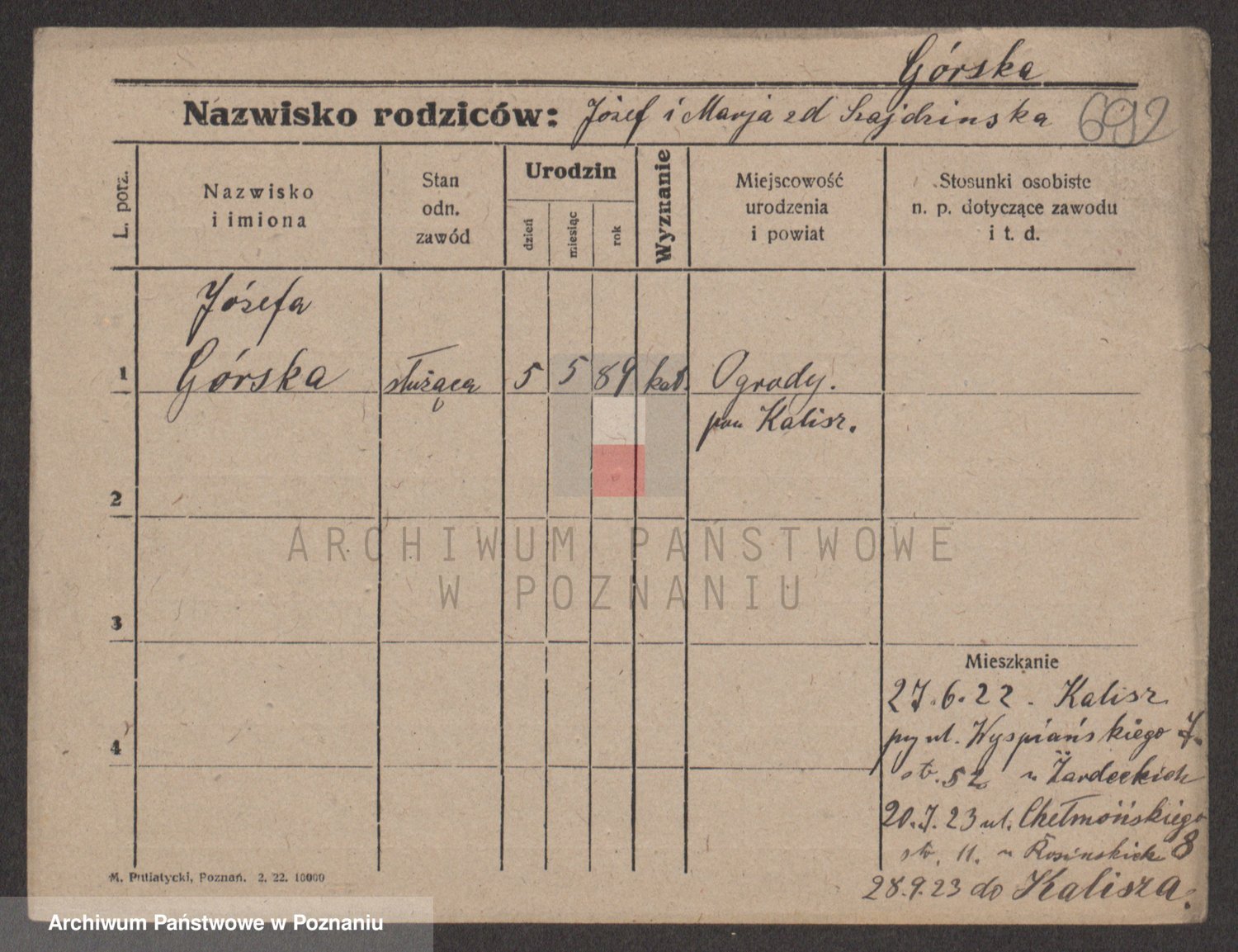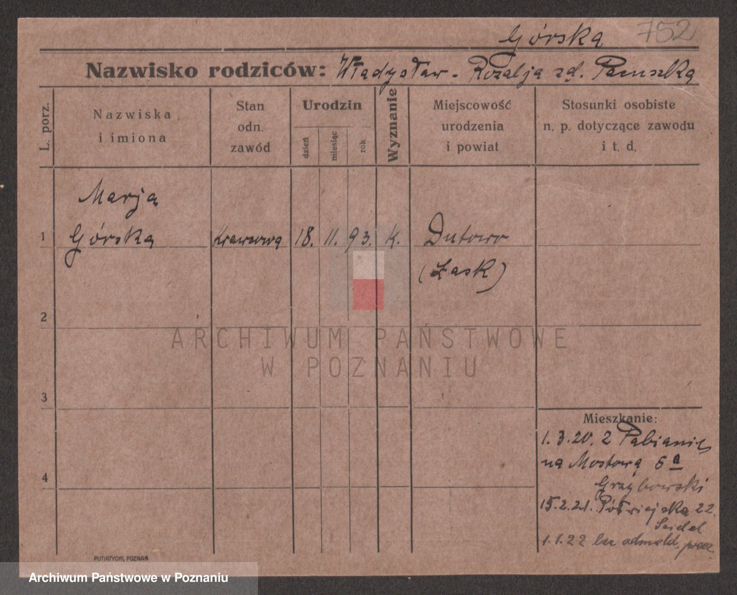 Gorski z d. Dzikowska v., Stanislawa