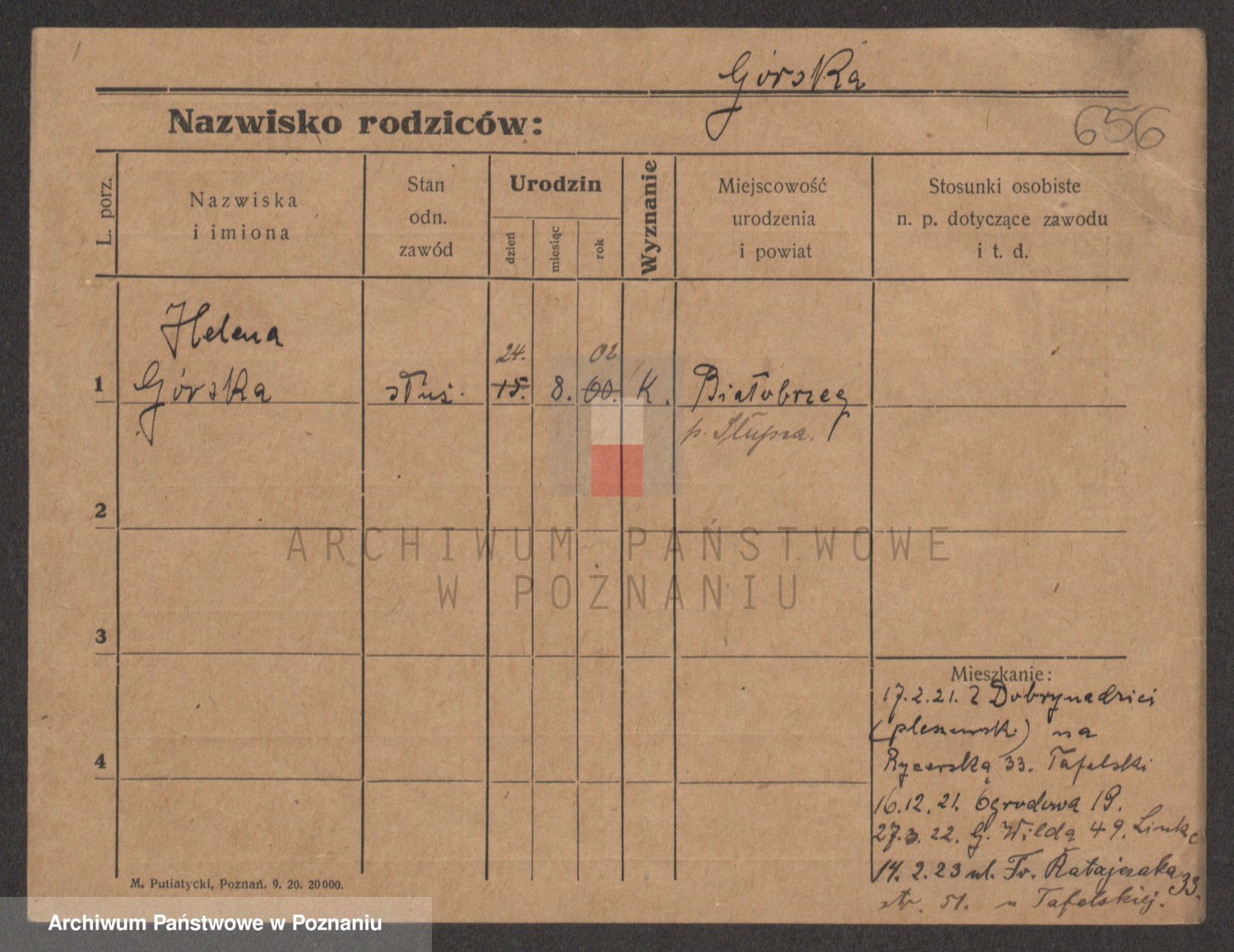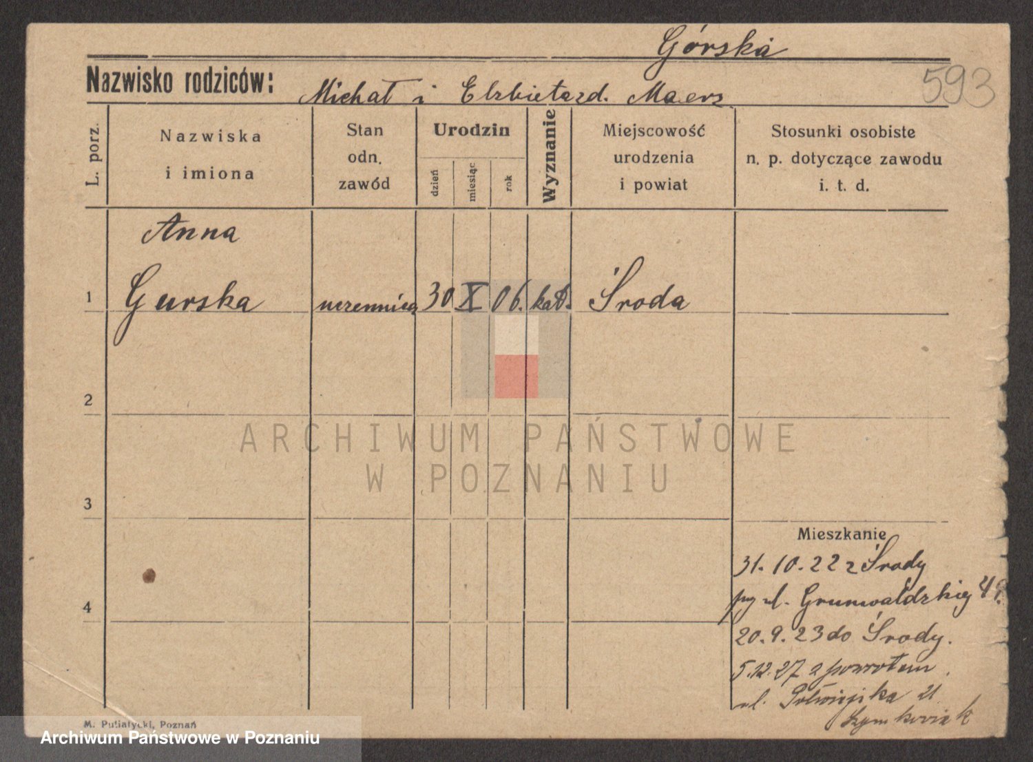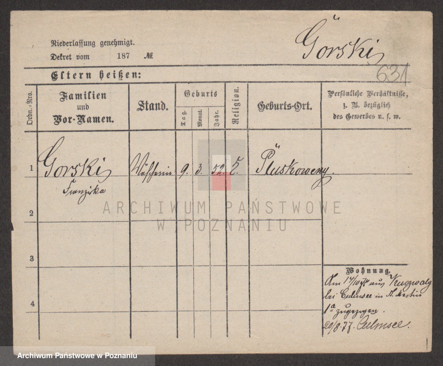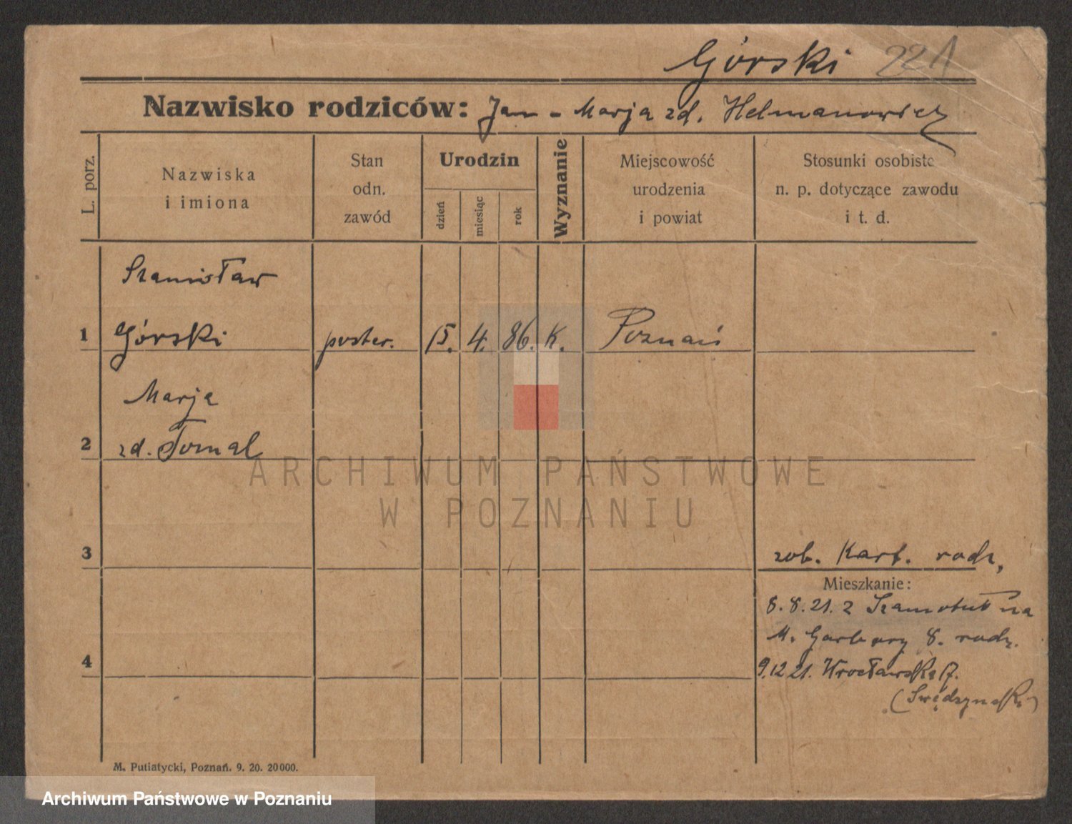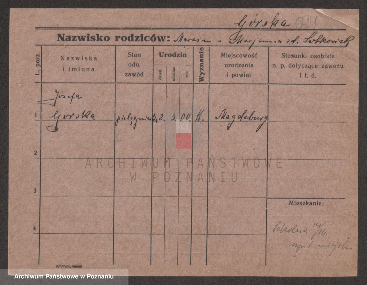 Gorski z d. Dzikowska v., Stanislawa