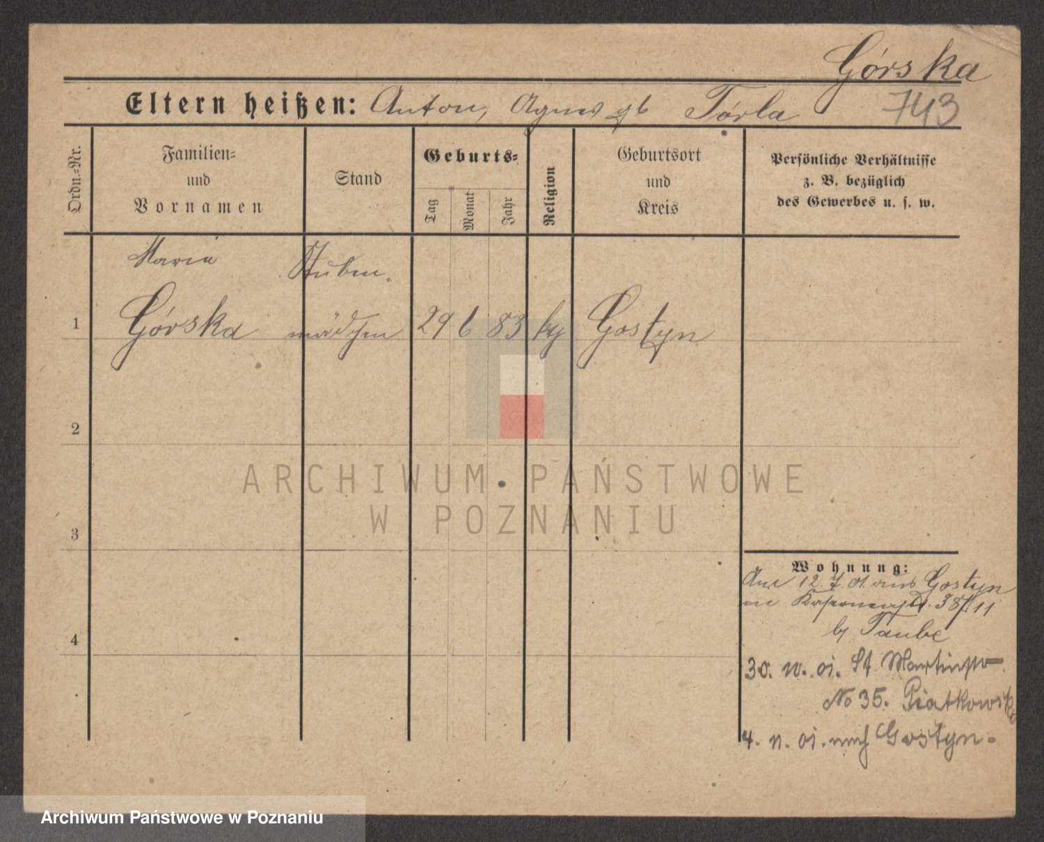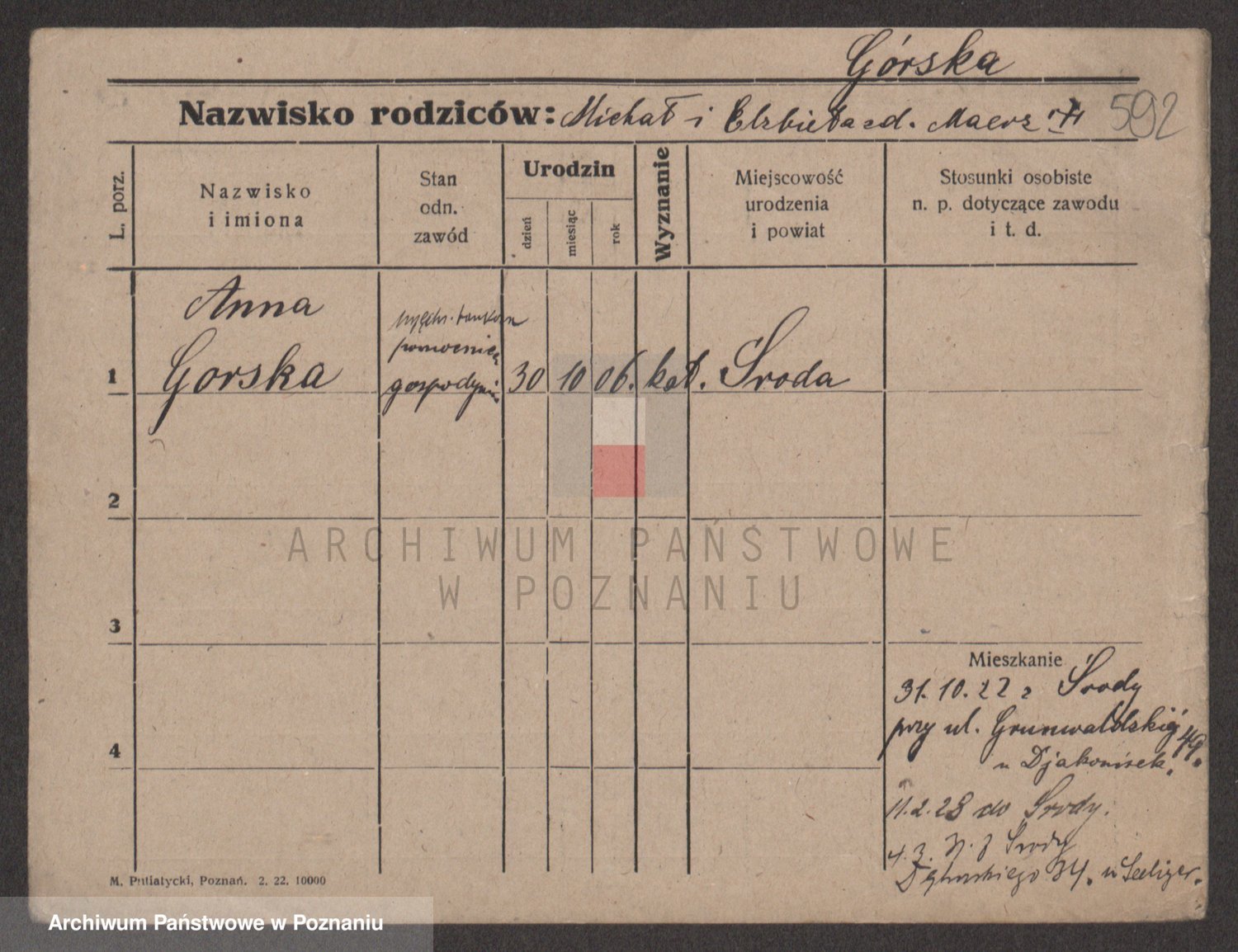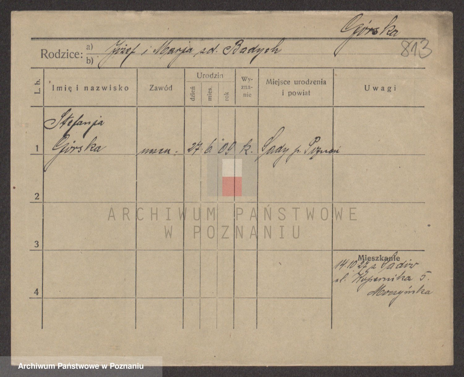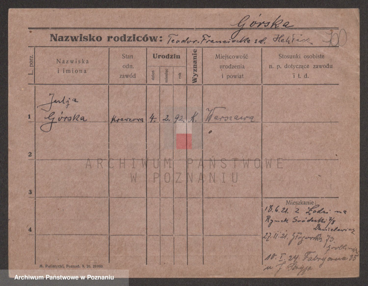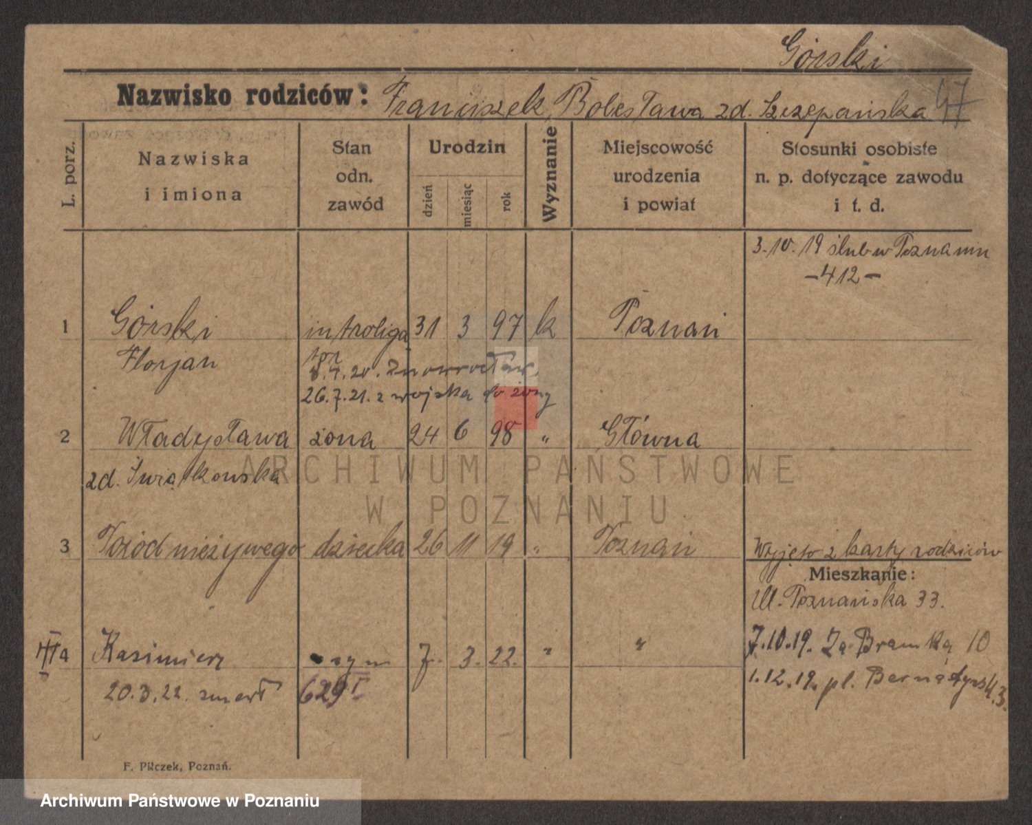 Gorski z d. Dzikowska v., Stanislawa