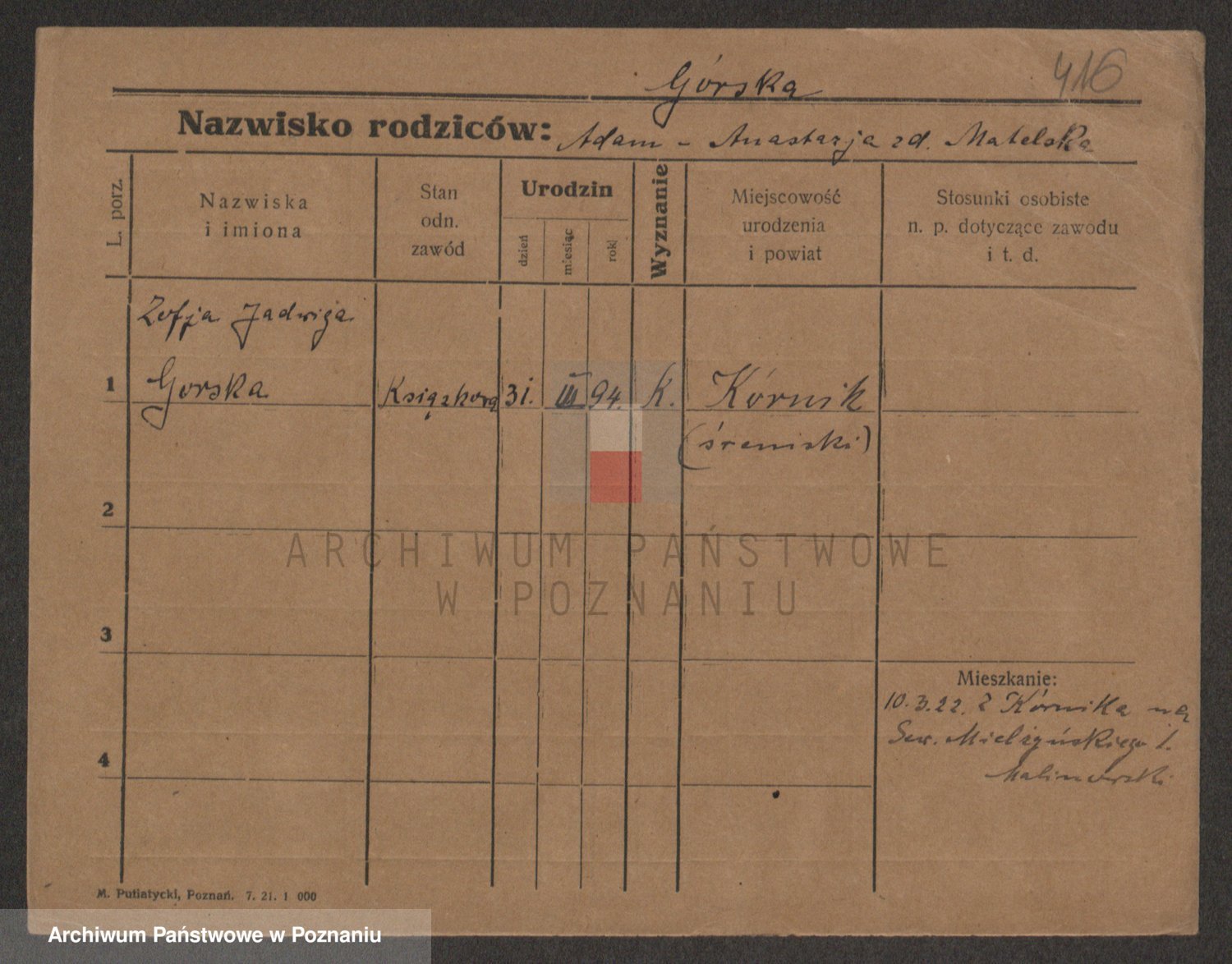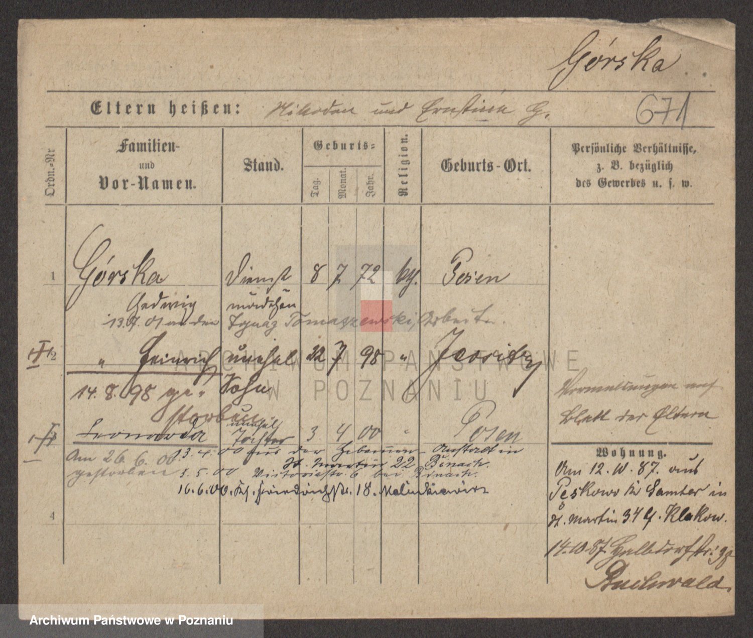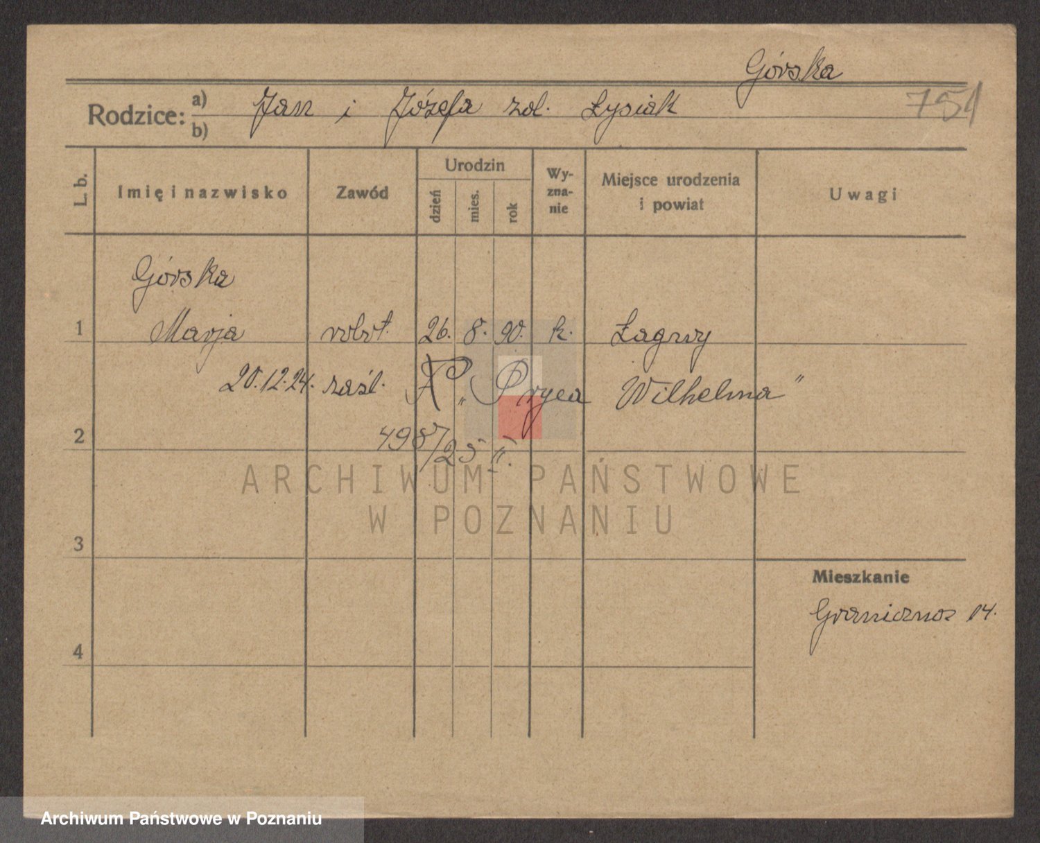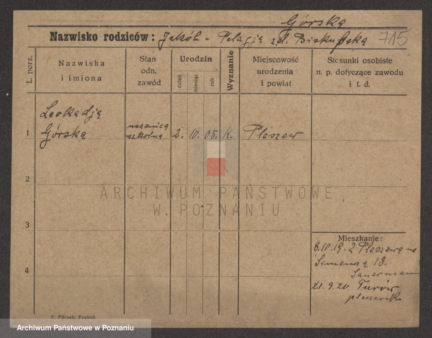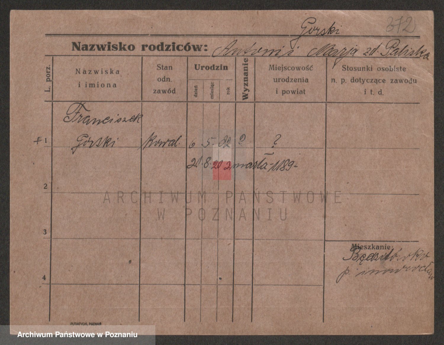 Gorski z d. Dzikowska v., Stanislawa