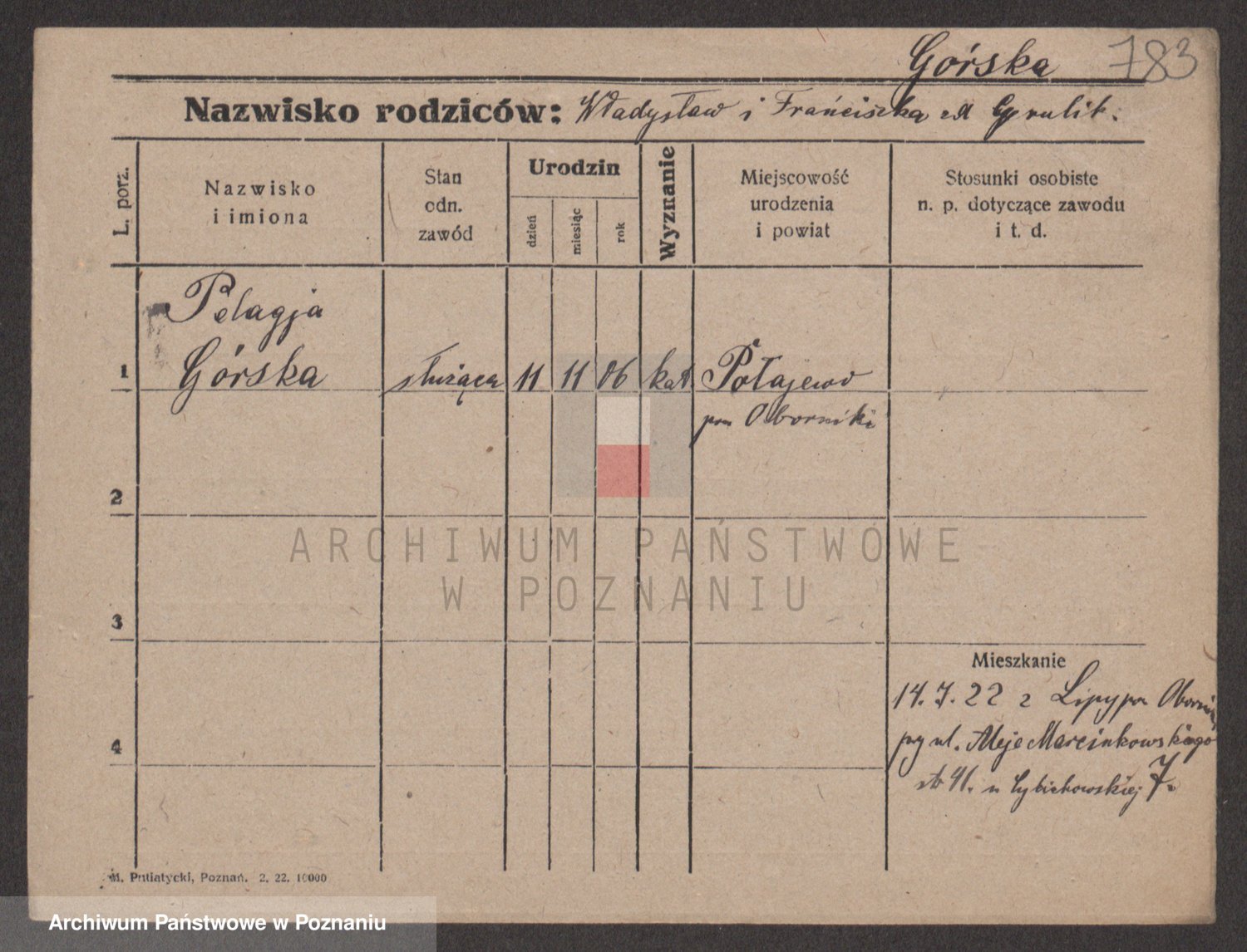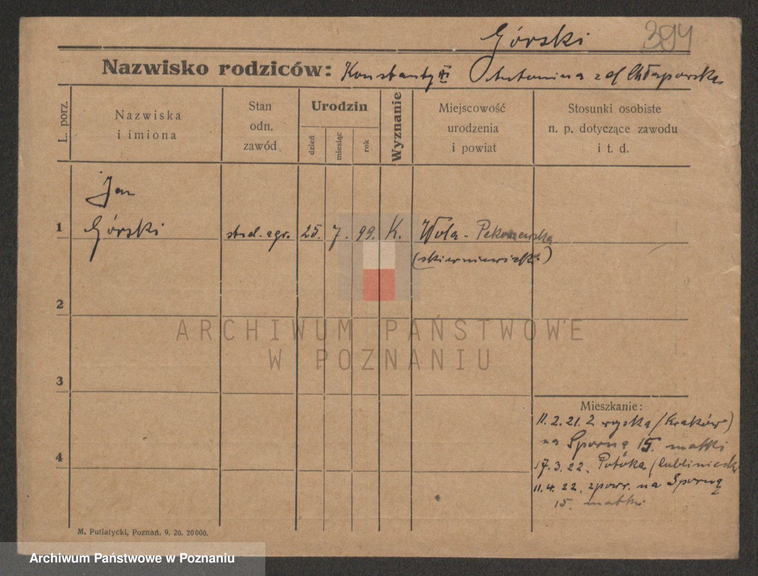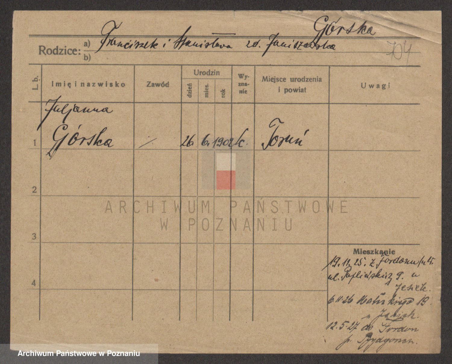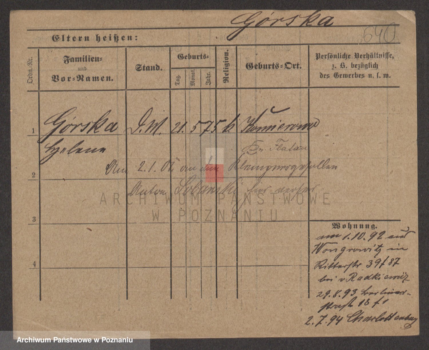 Gorski z d. Dzikowska v., Stanislawa