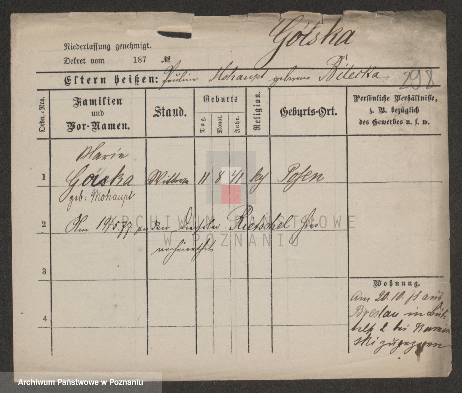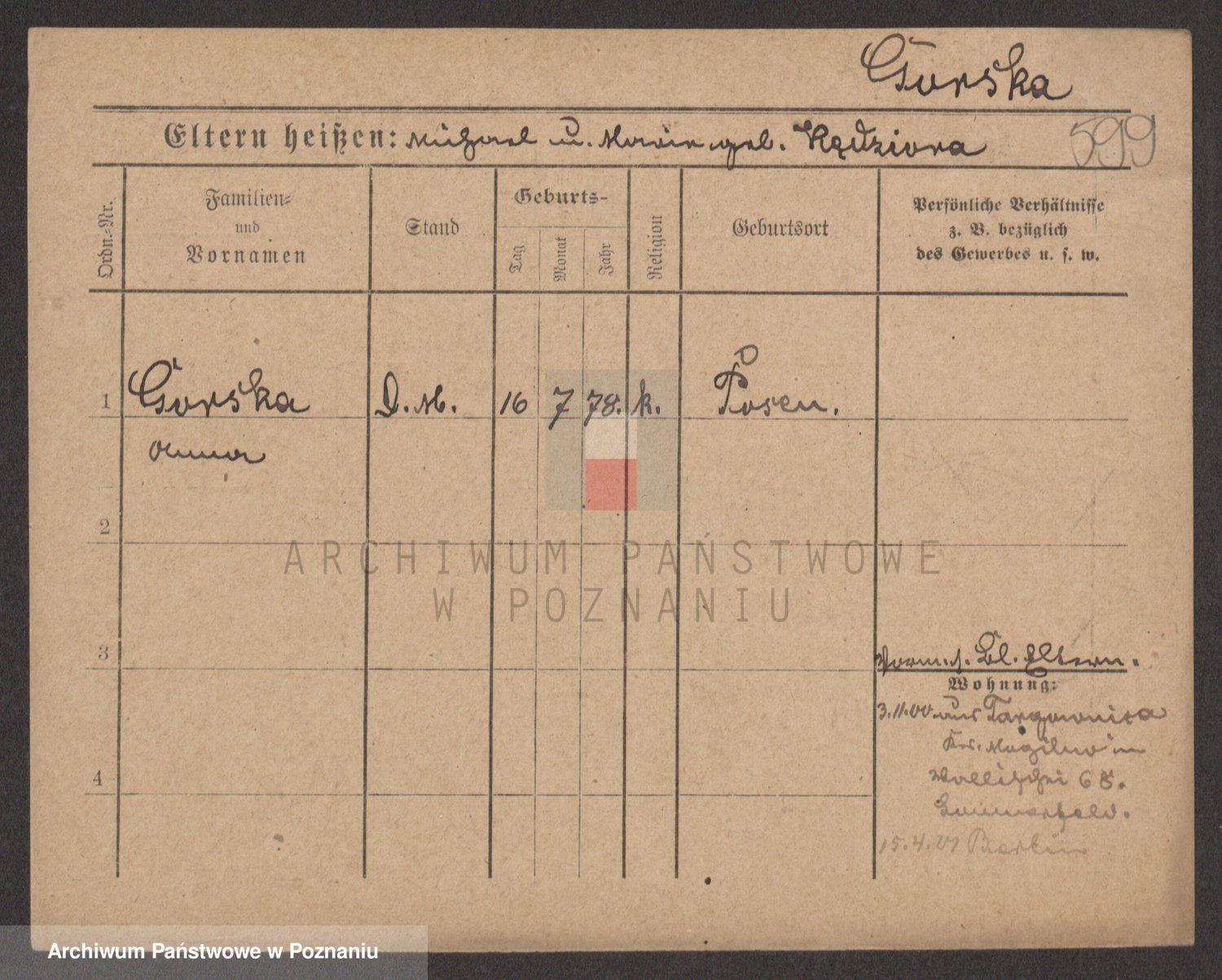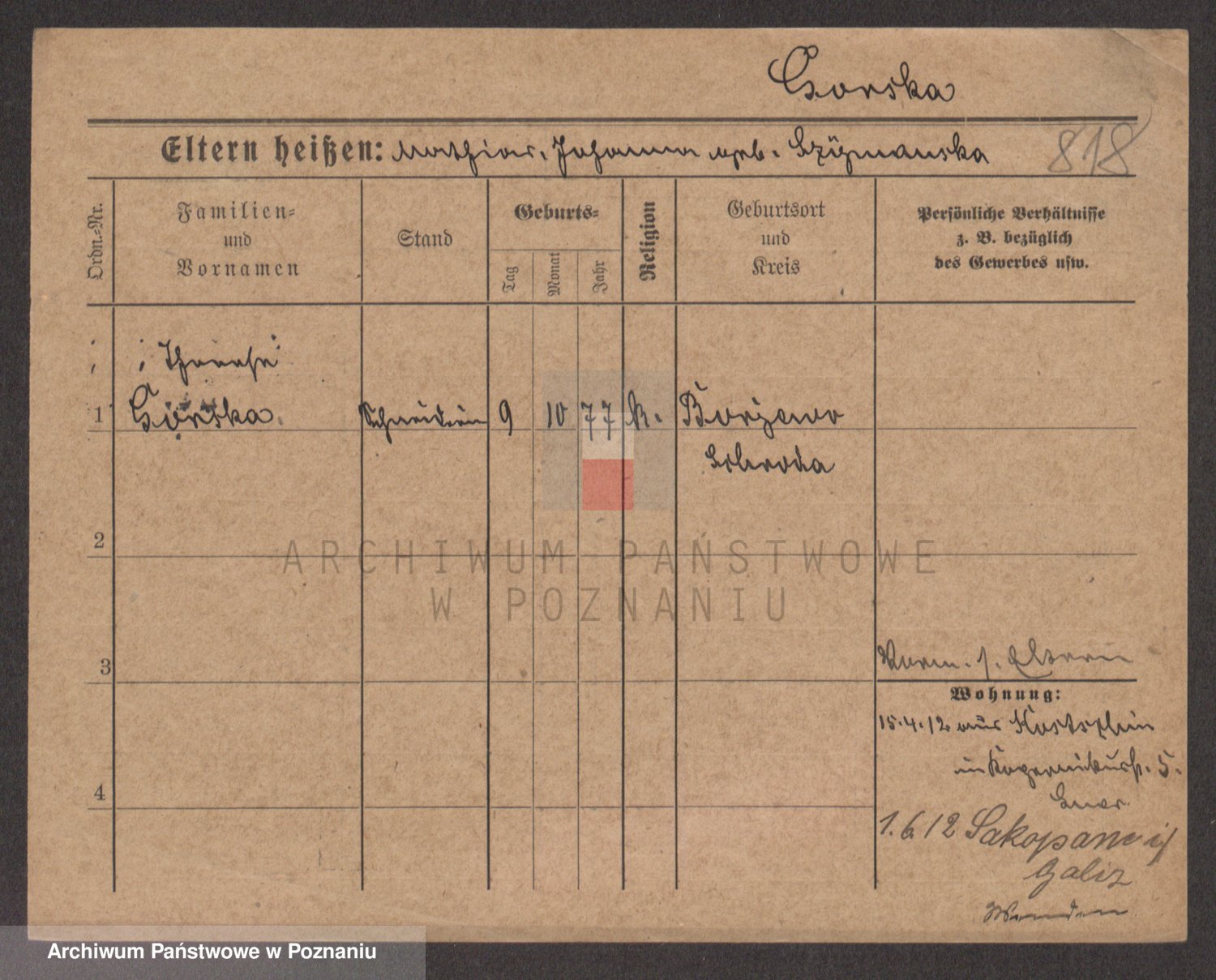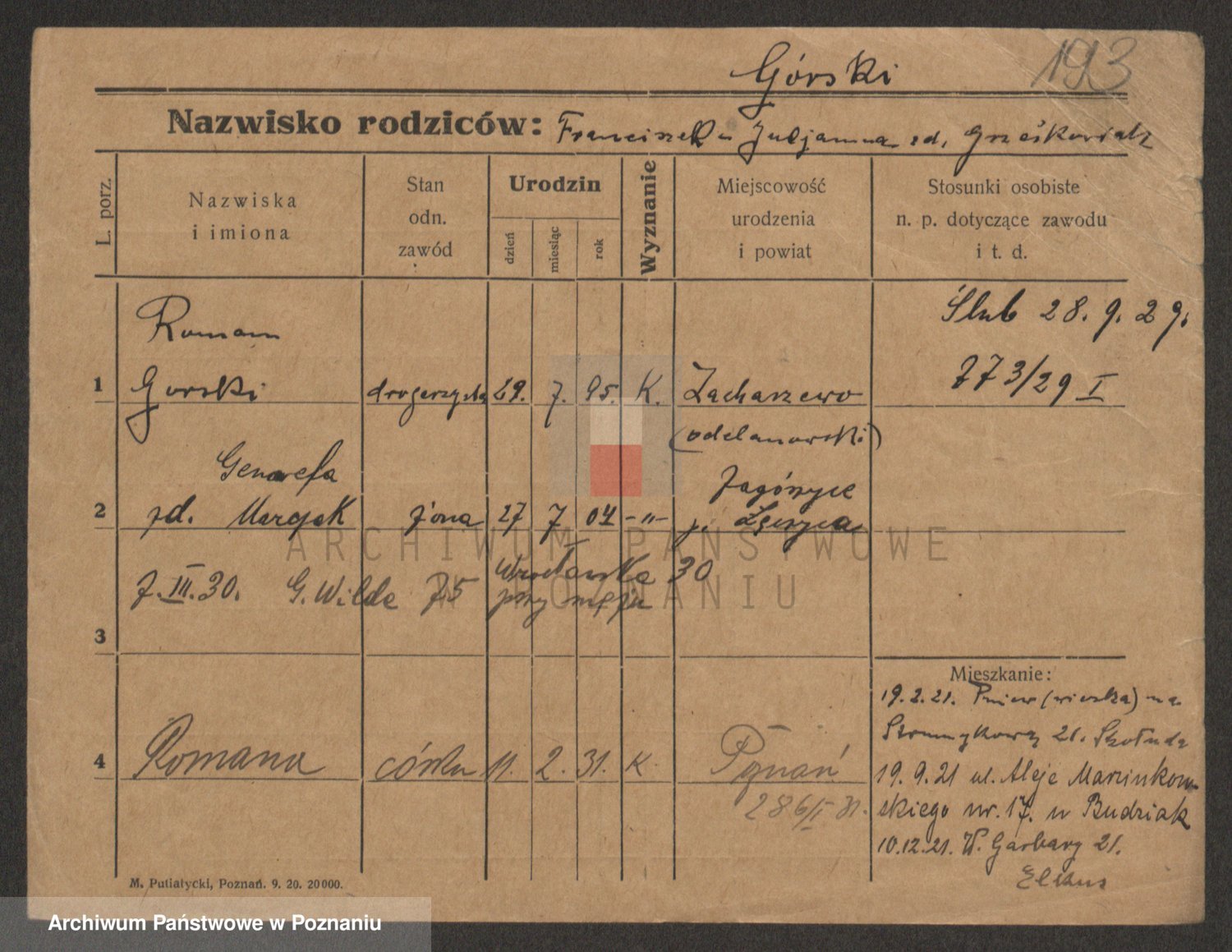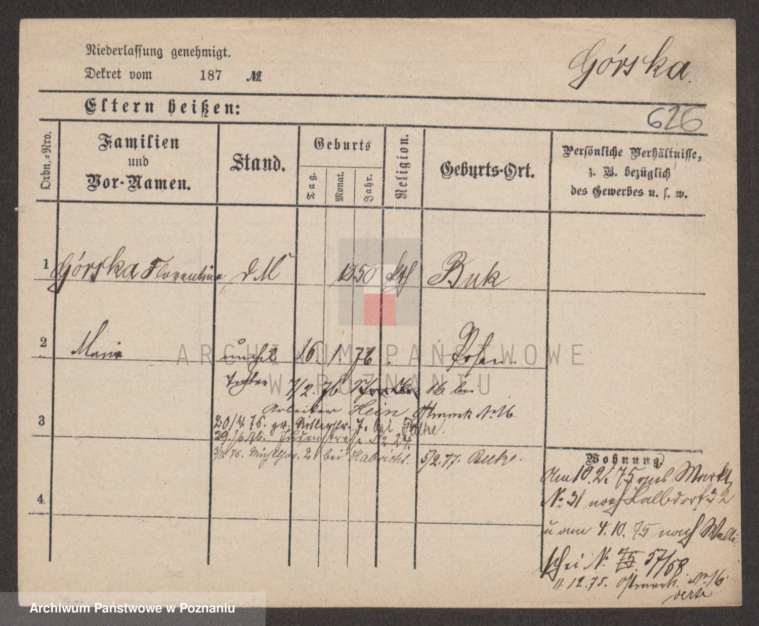 Gorski z d. Dzikowska v., Stanislawa