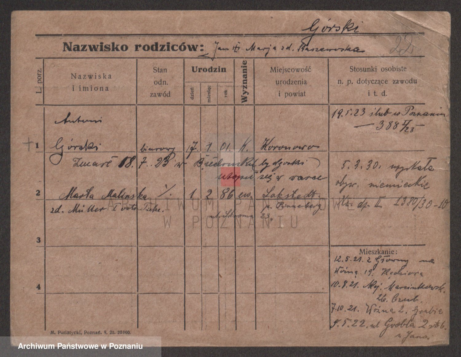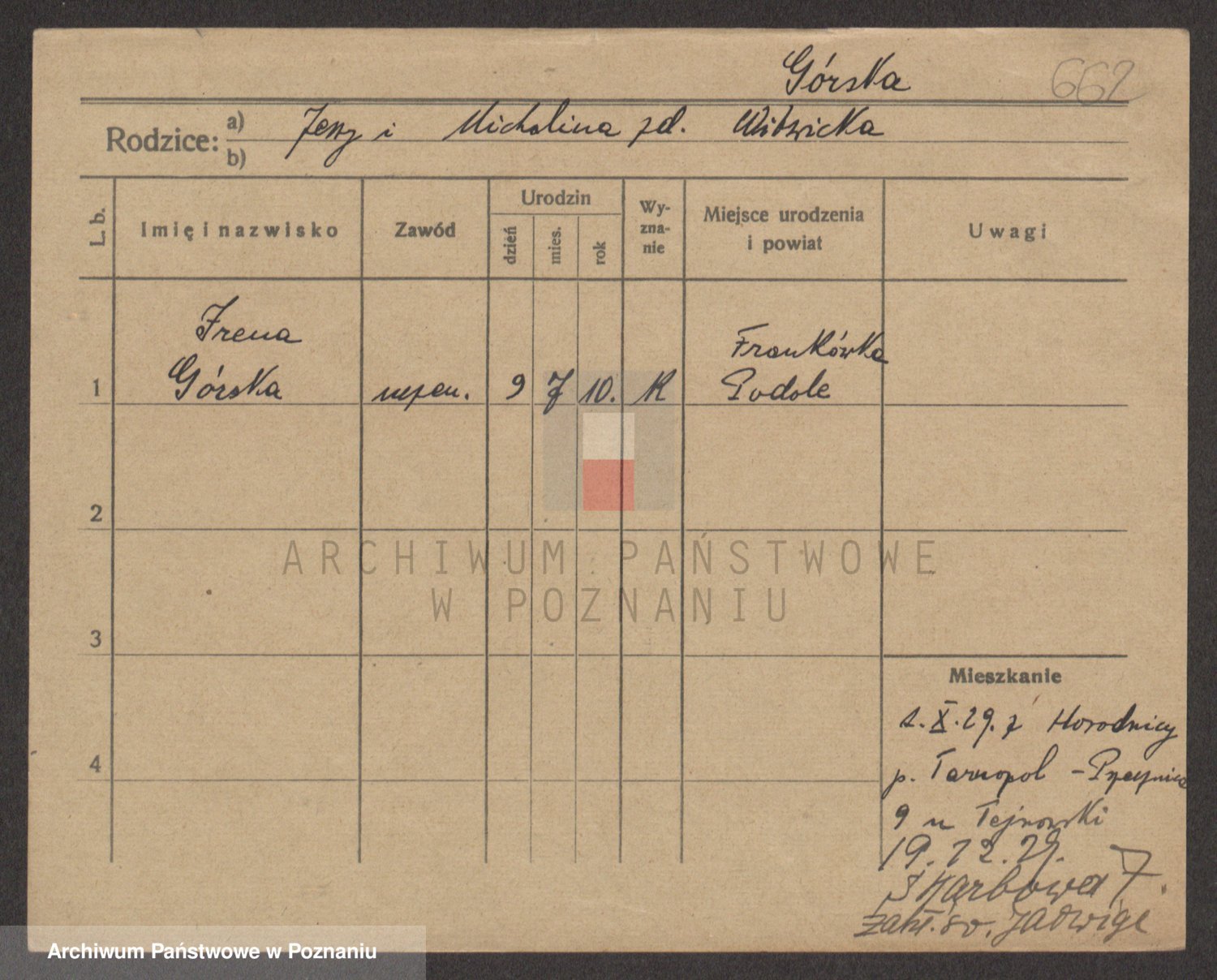 Górski Malinska z d. Müller I voto Ticke, Marta