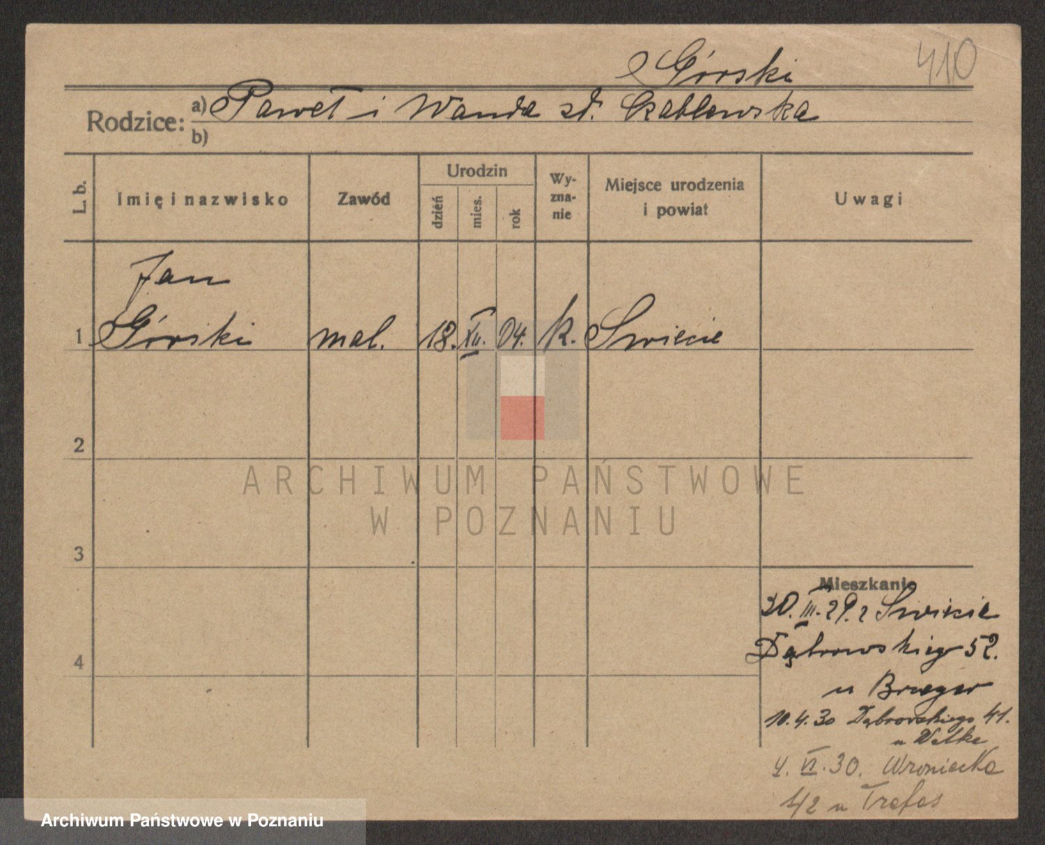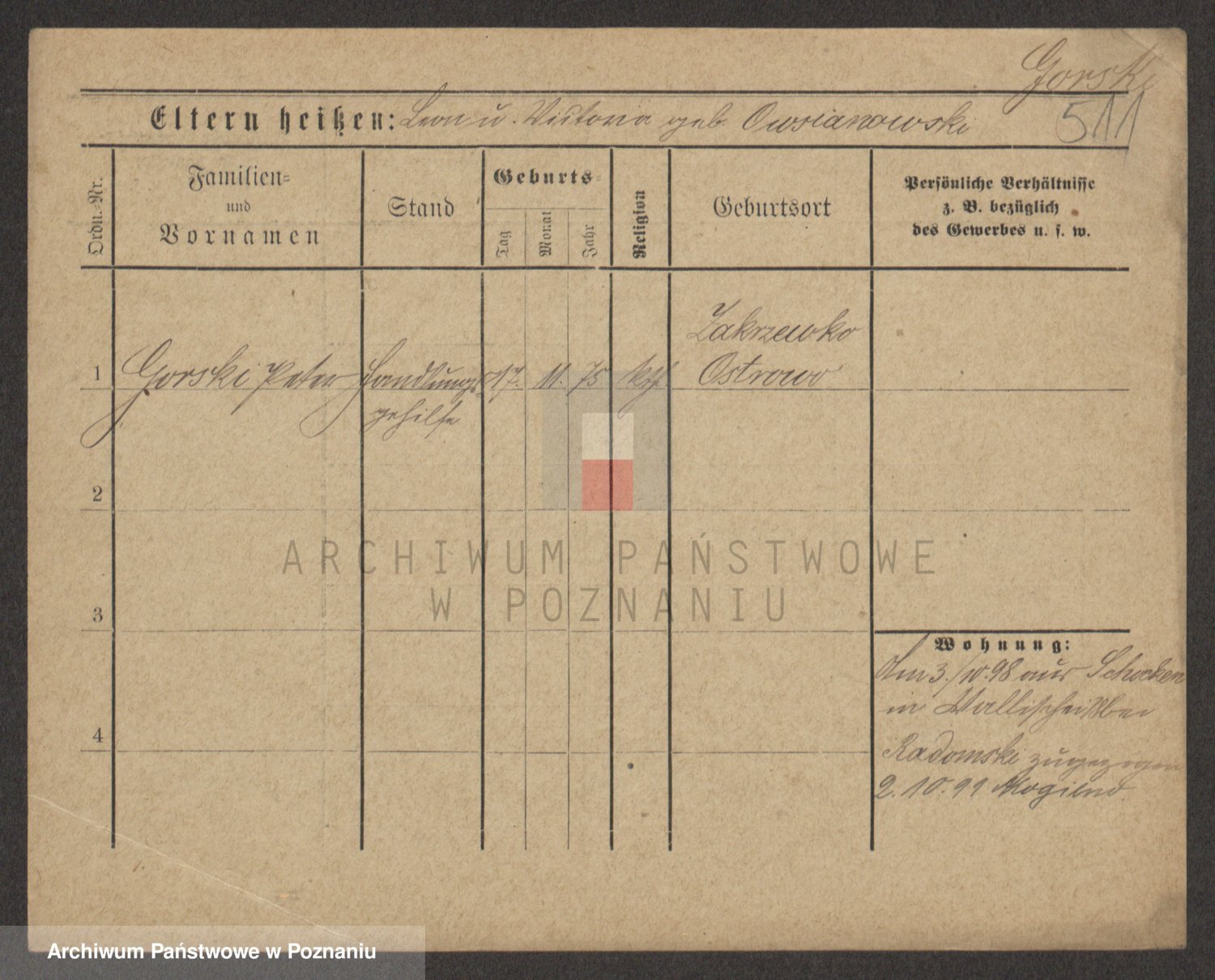 Gorski, Zdzislaus Johann