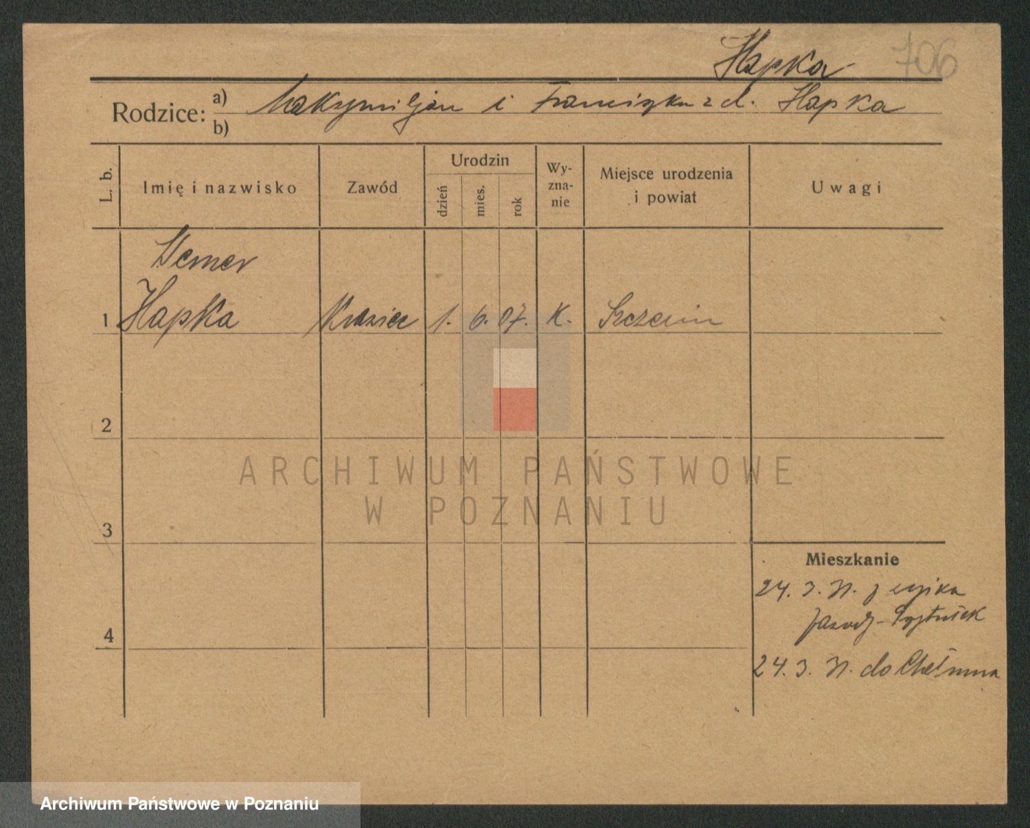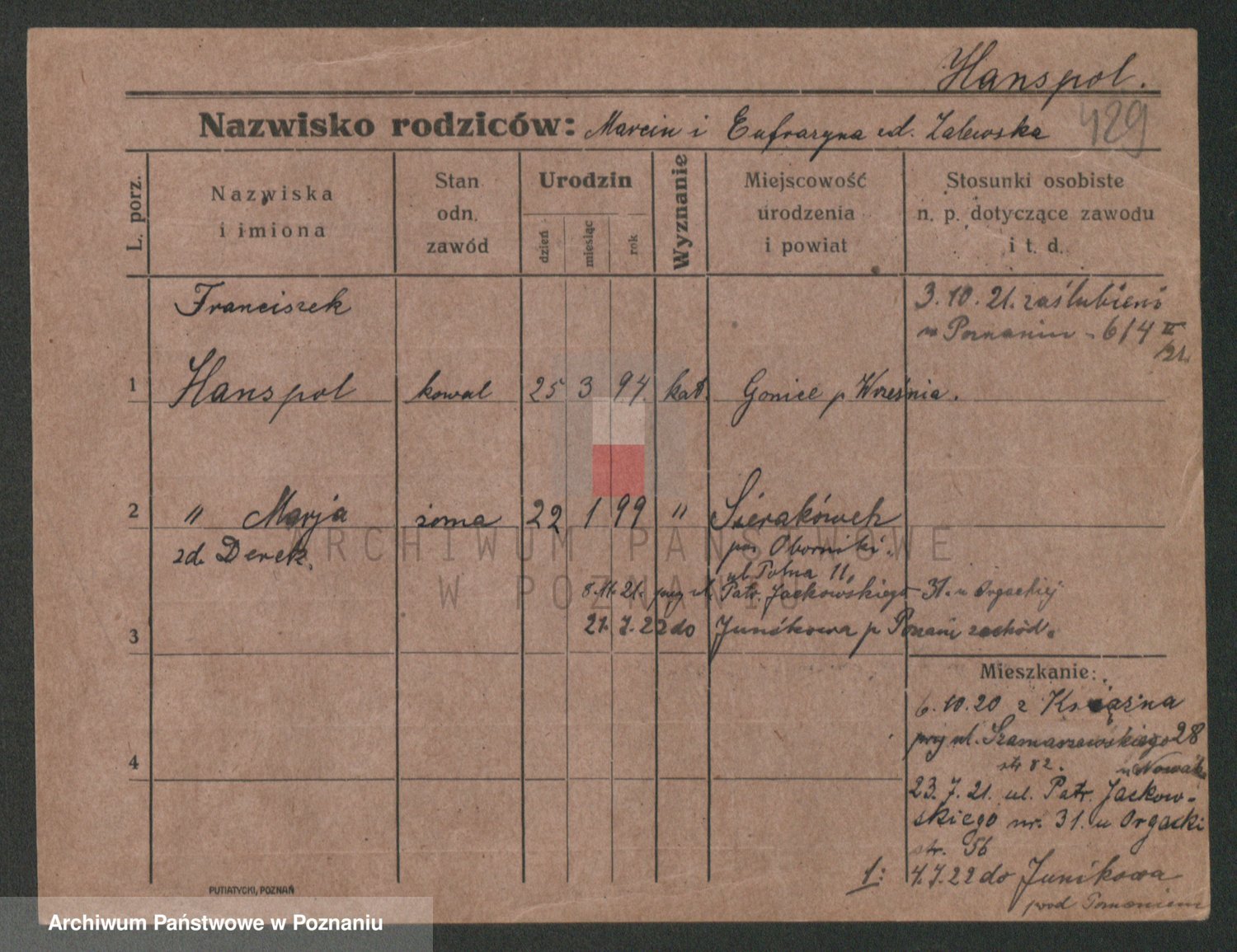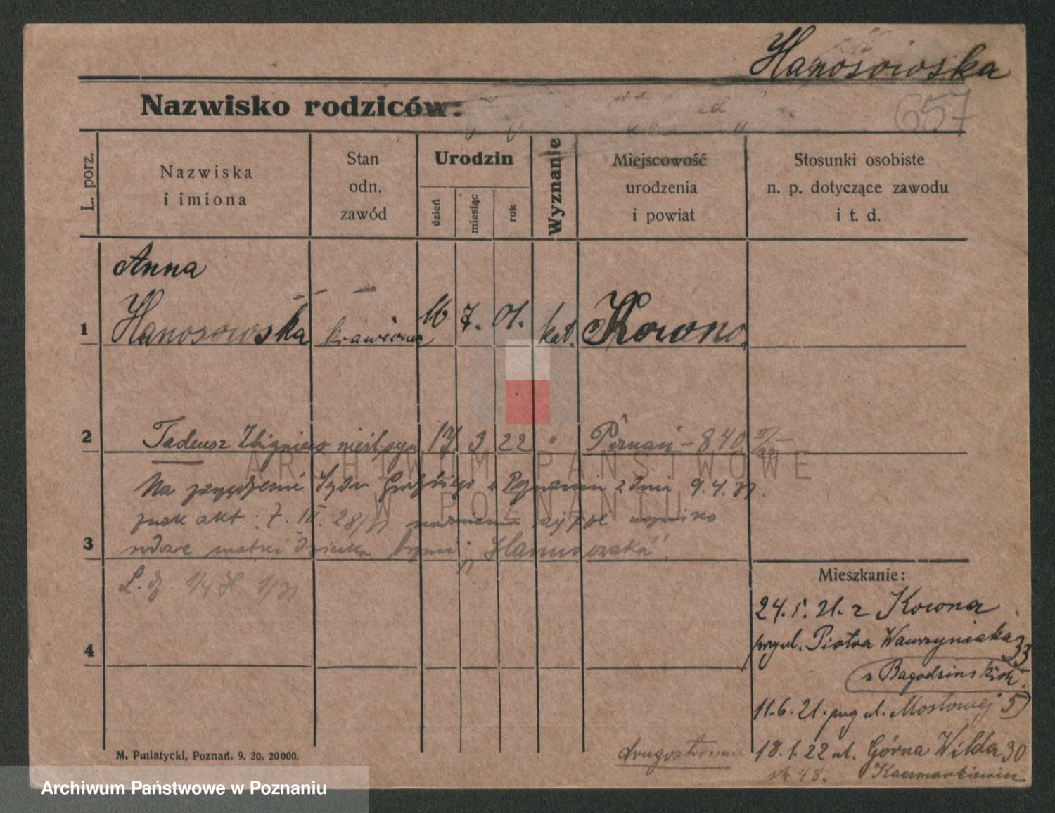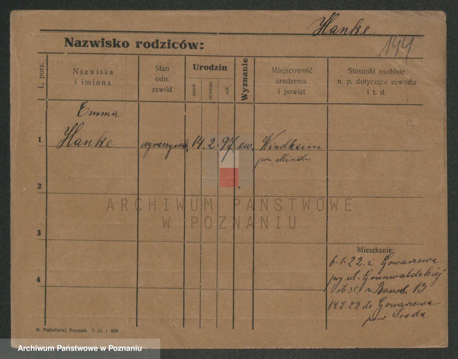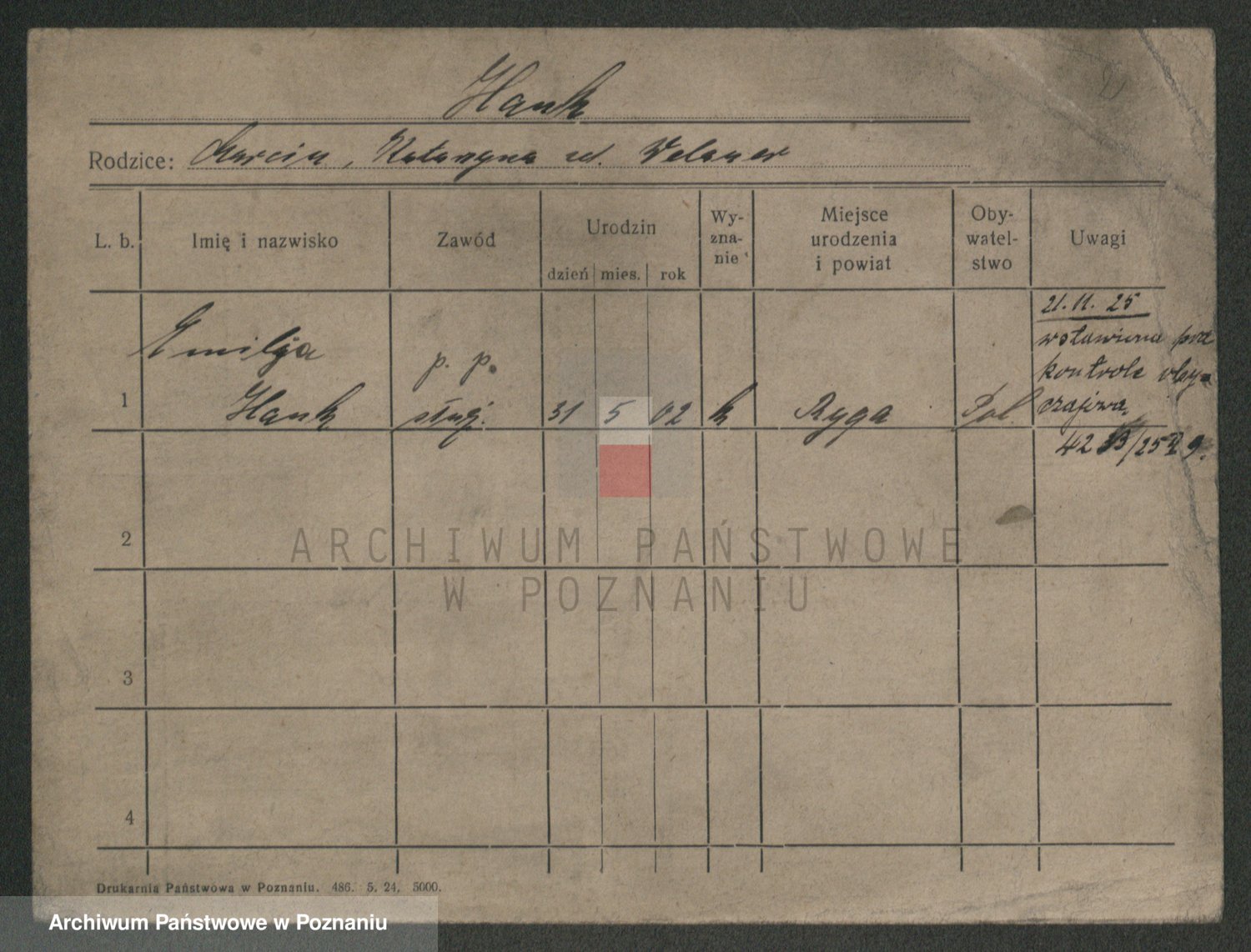 Podgląd karty osobowej dostępny jest po kliknięciu na nazwisko lub ikonkę karty. Można dokonywać powiększenia (ikony na górze) lub przechodzić między kolejnymi skanami (strzałki po bokach).