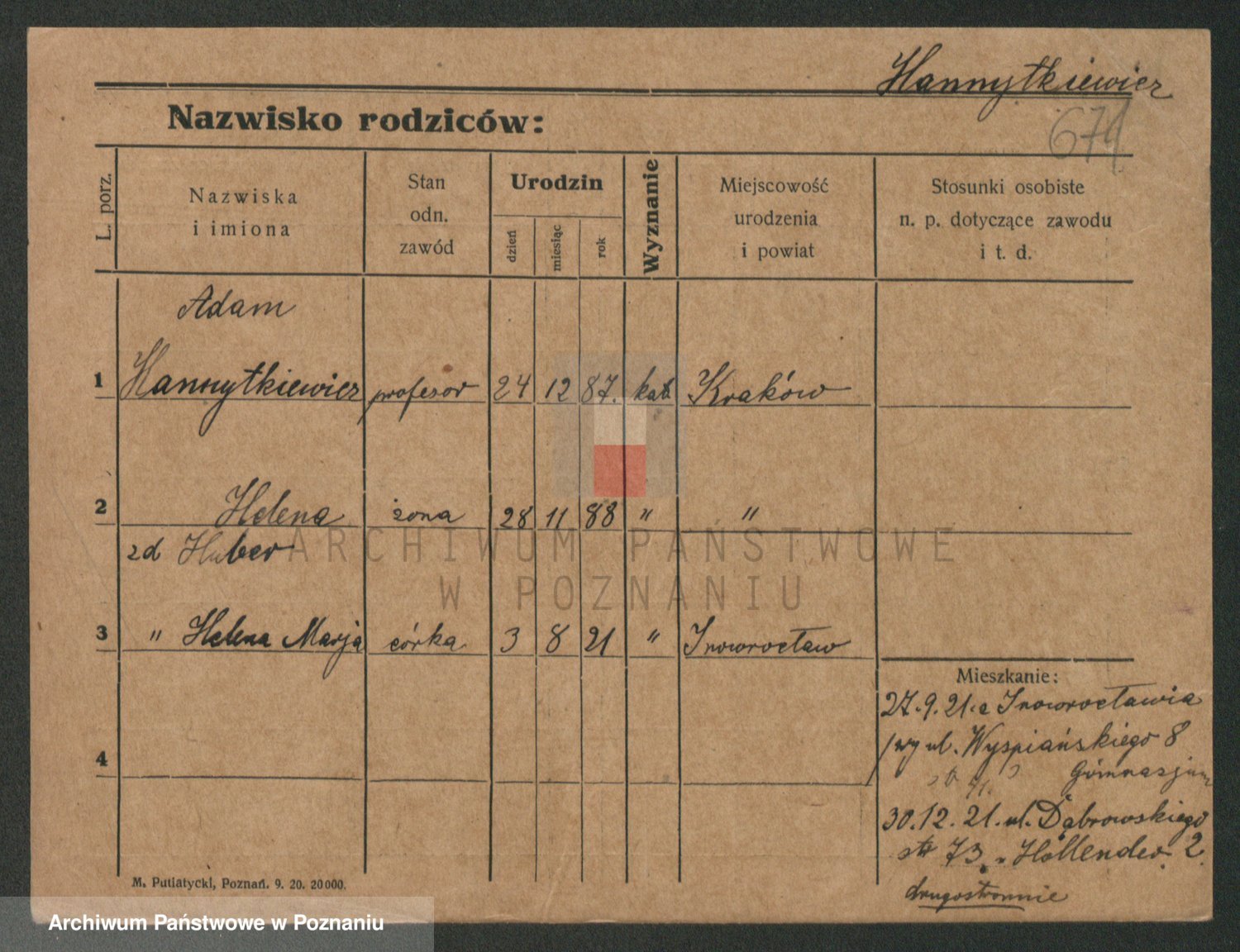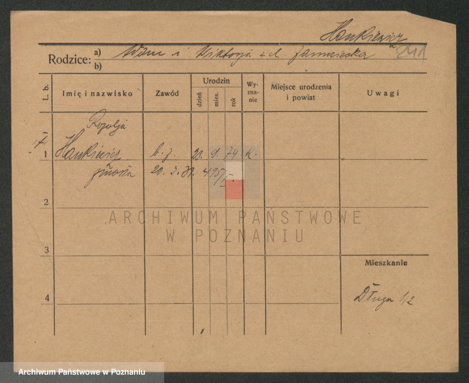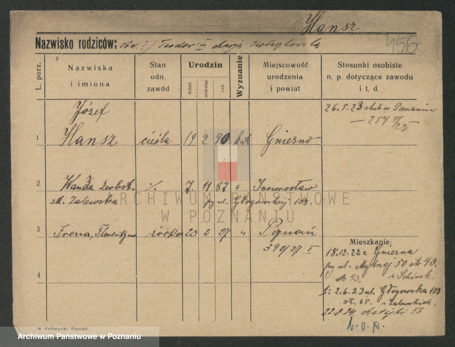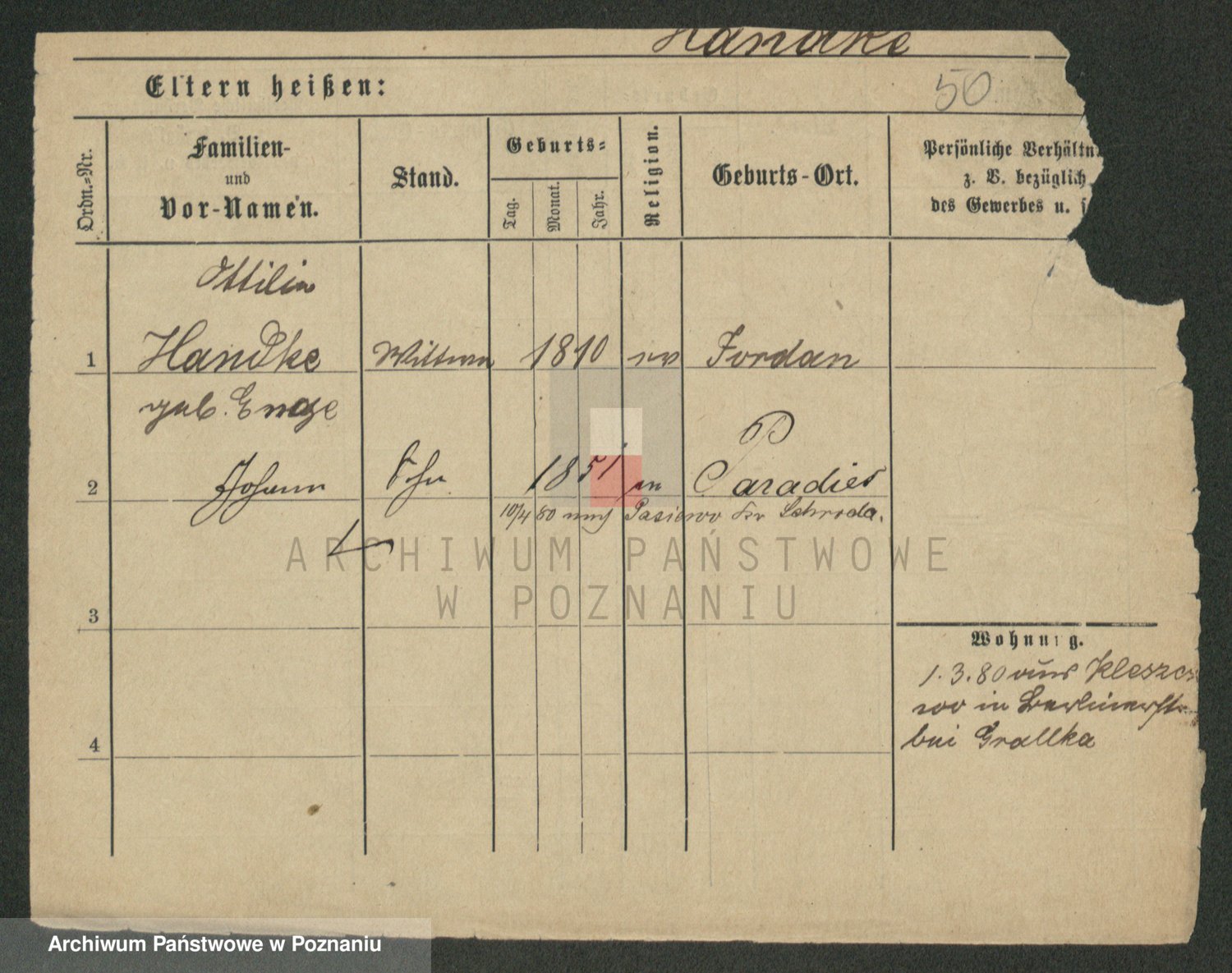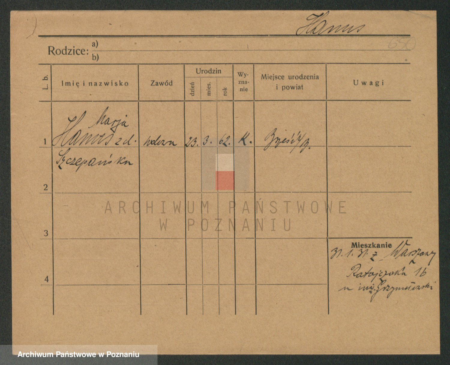 Podgląd karty osobowej dostępny jest po kliknięciu na nazwisko lub ikonkę karty. Można dokonywać powiększenia (ikony na górze) lub przechodzić między kolejnymi skanami (strzałki po bokach).