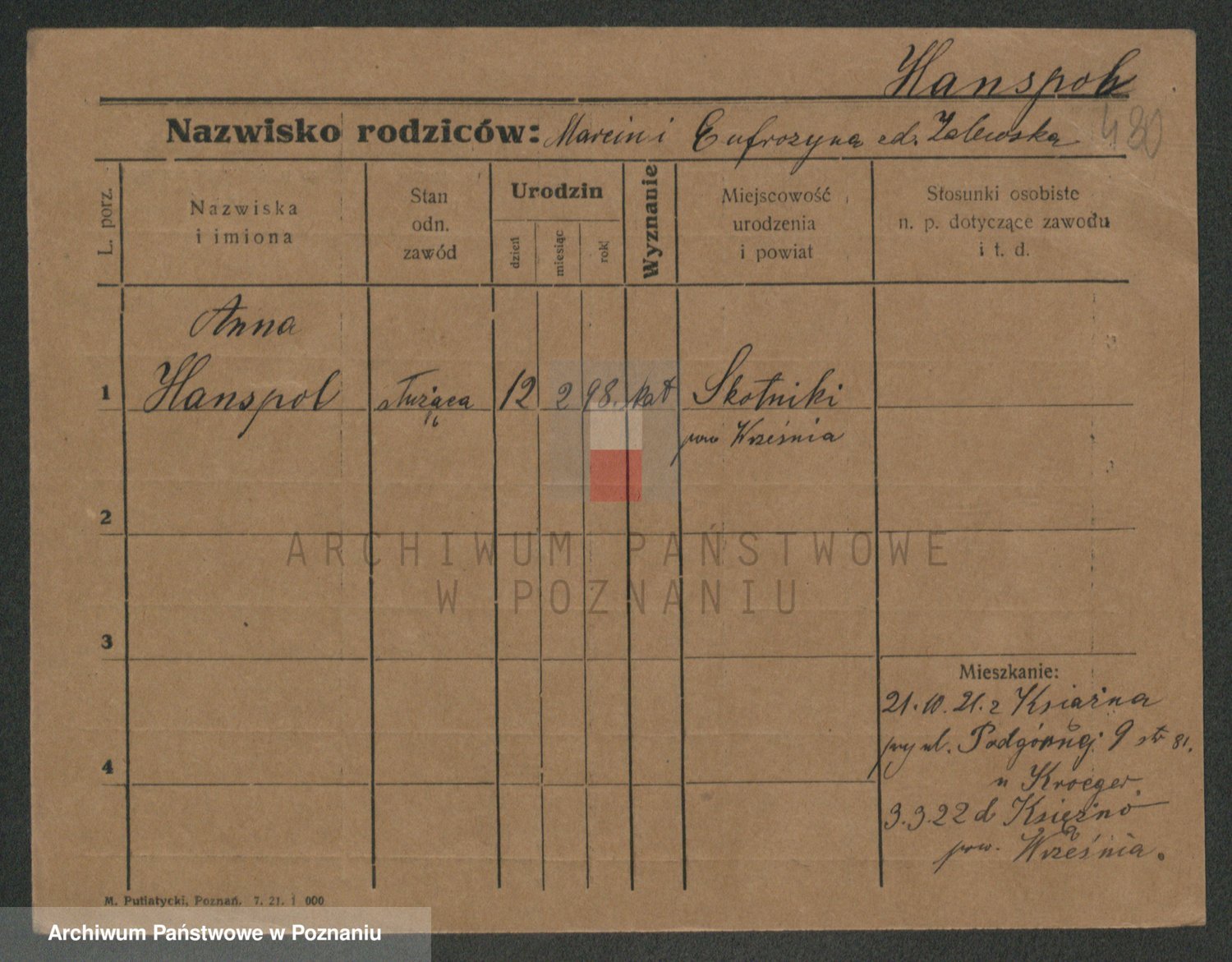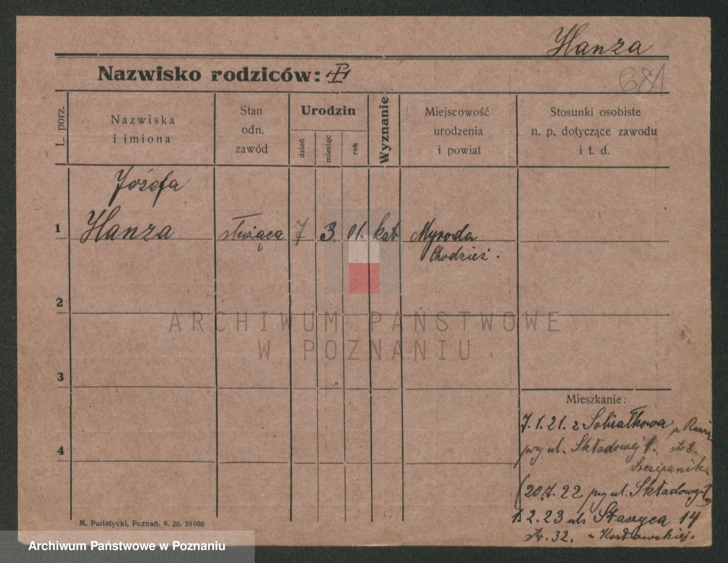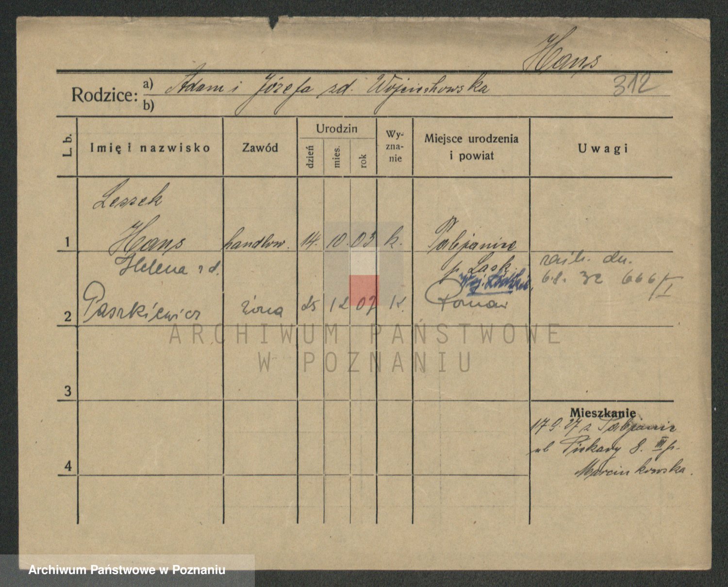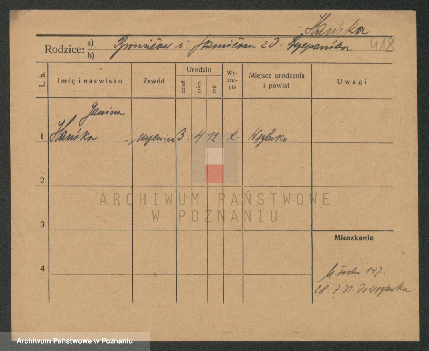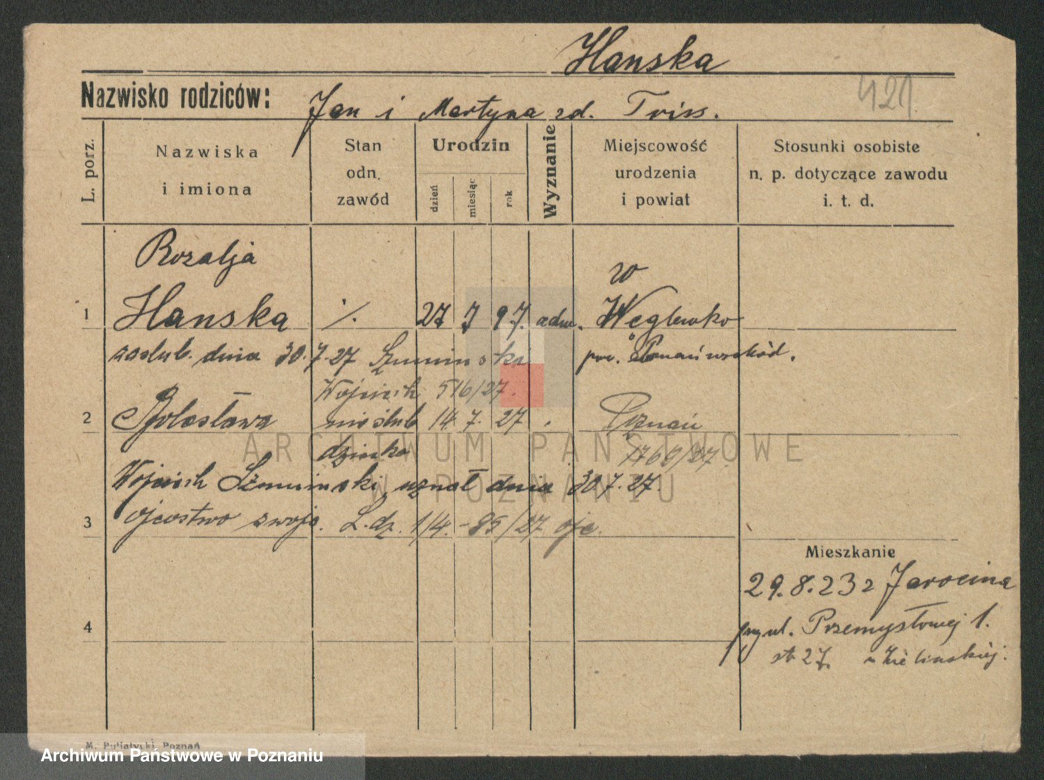 Podgląd karty osobowej dostępny jest po kliknięciu na nazwisko lub ikonkę karty. Można dokonywać powiększenia (ikony na górze) lub przechodzić między kolejnymi skanami (strzałki po bokach).