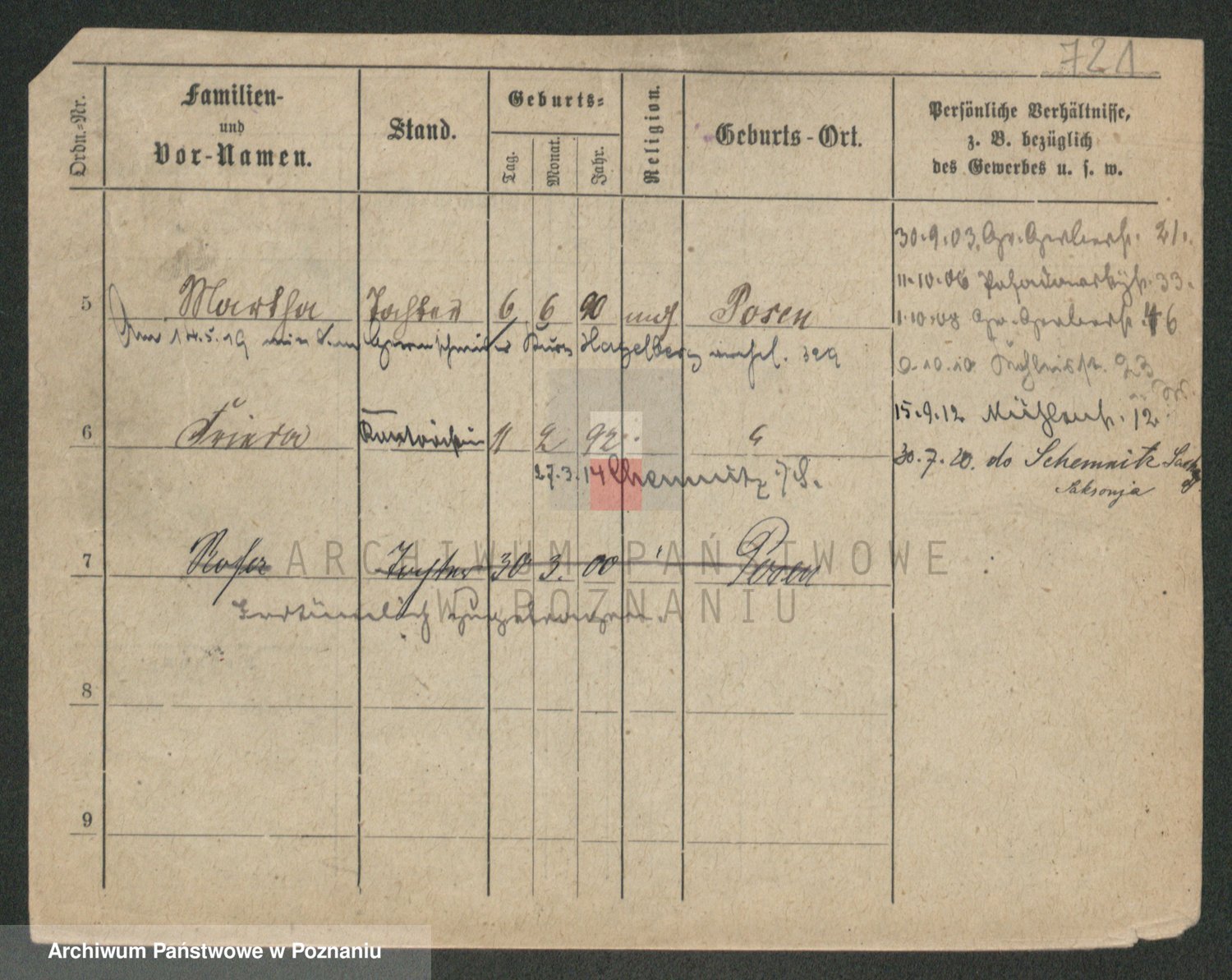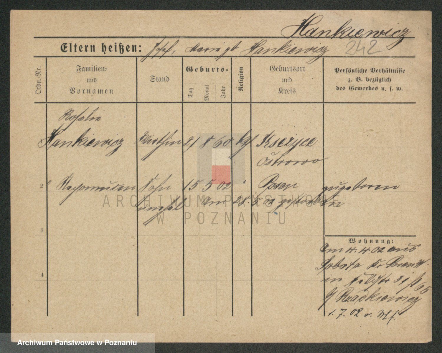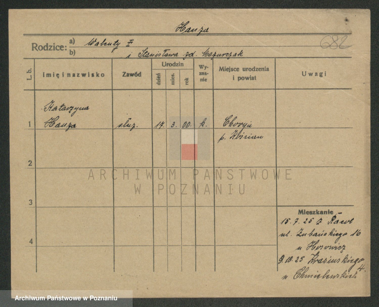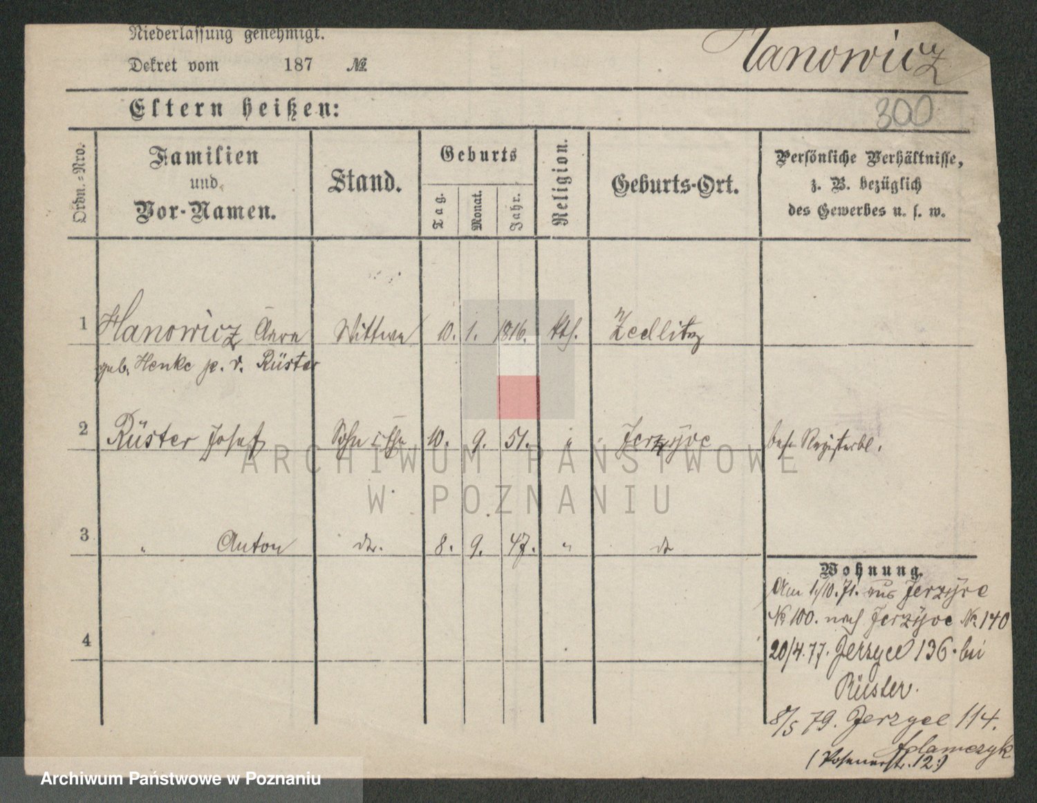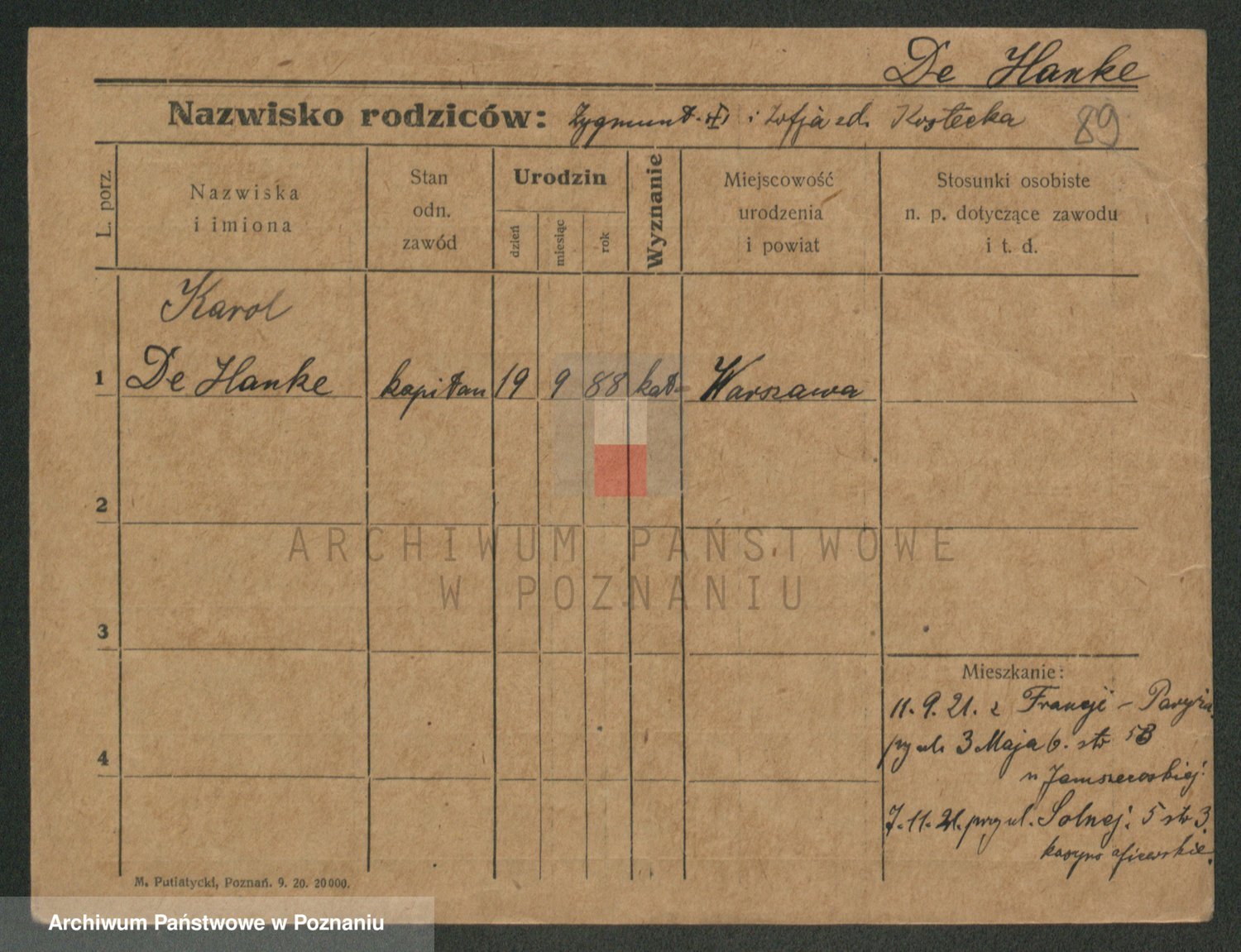 Podgląd karty osobowej dostępny jest po kliknięciu na nazwisko lub ikonkę karty. Można dokonywać powiększenia (ikony na górze) lub przechodzić między kolejnymi skanami (strzałki po bokach).