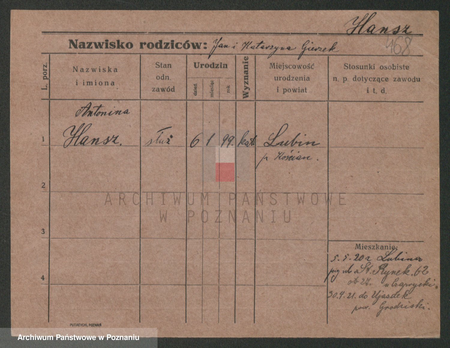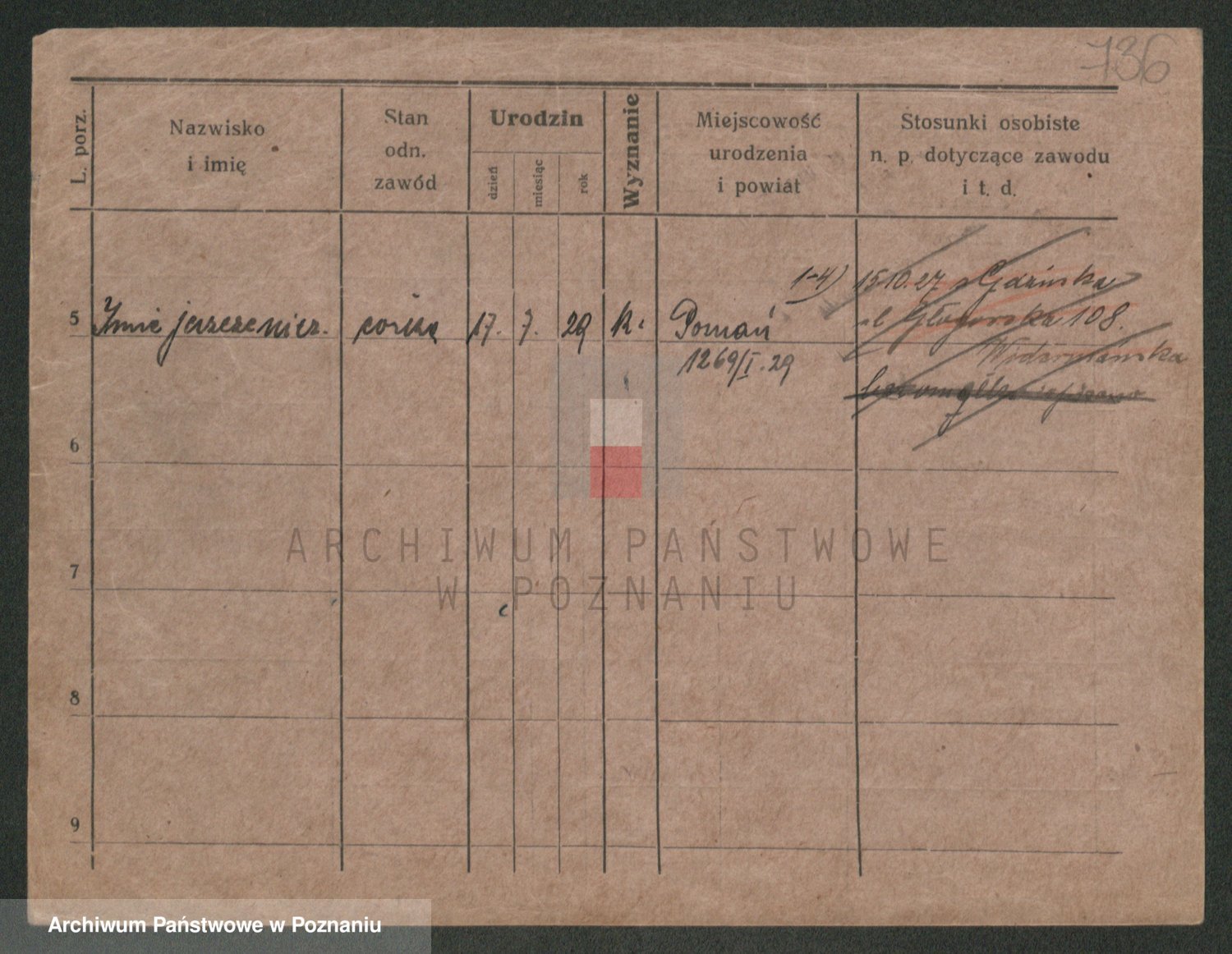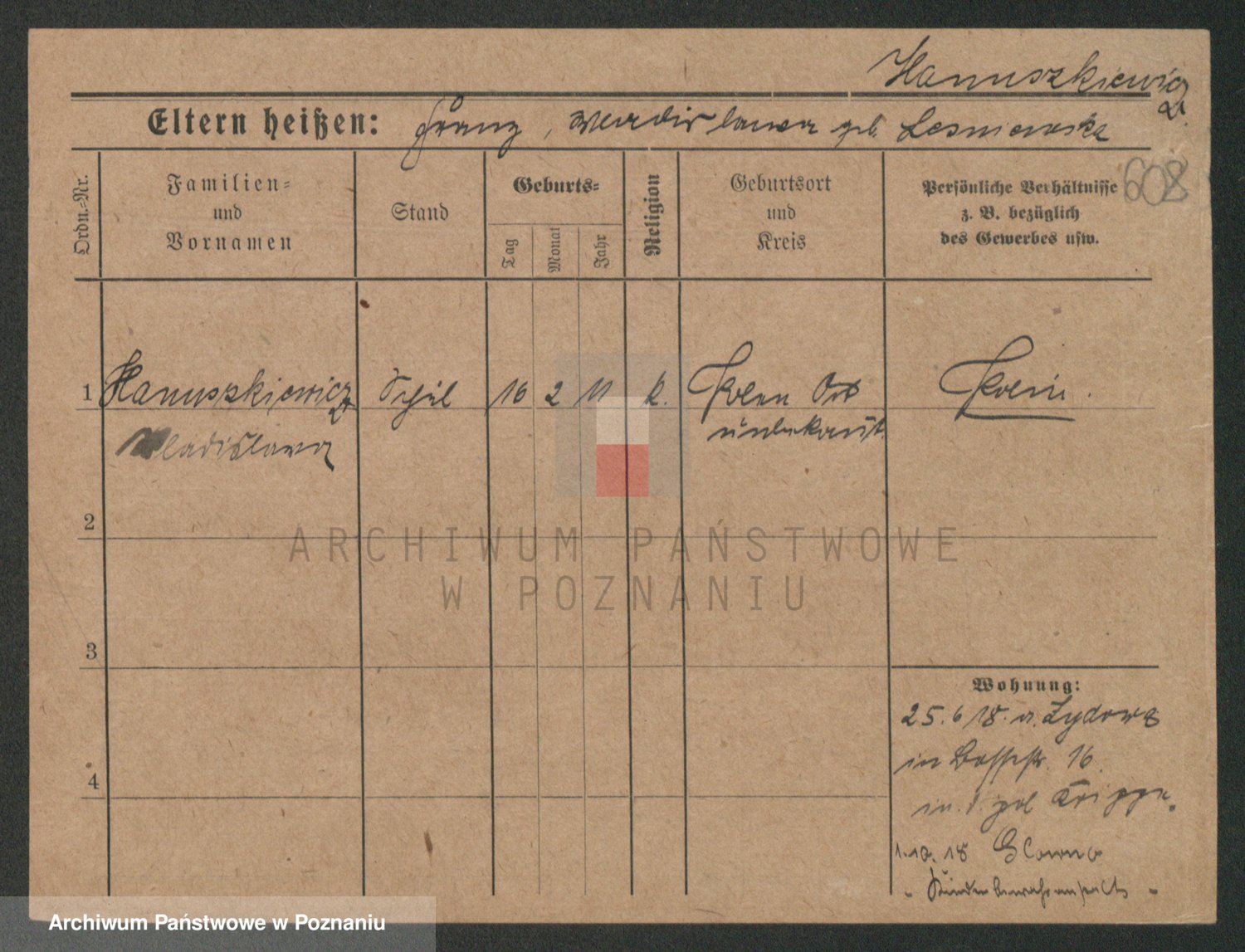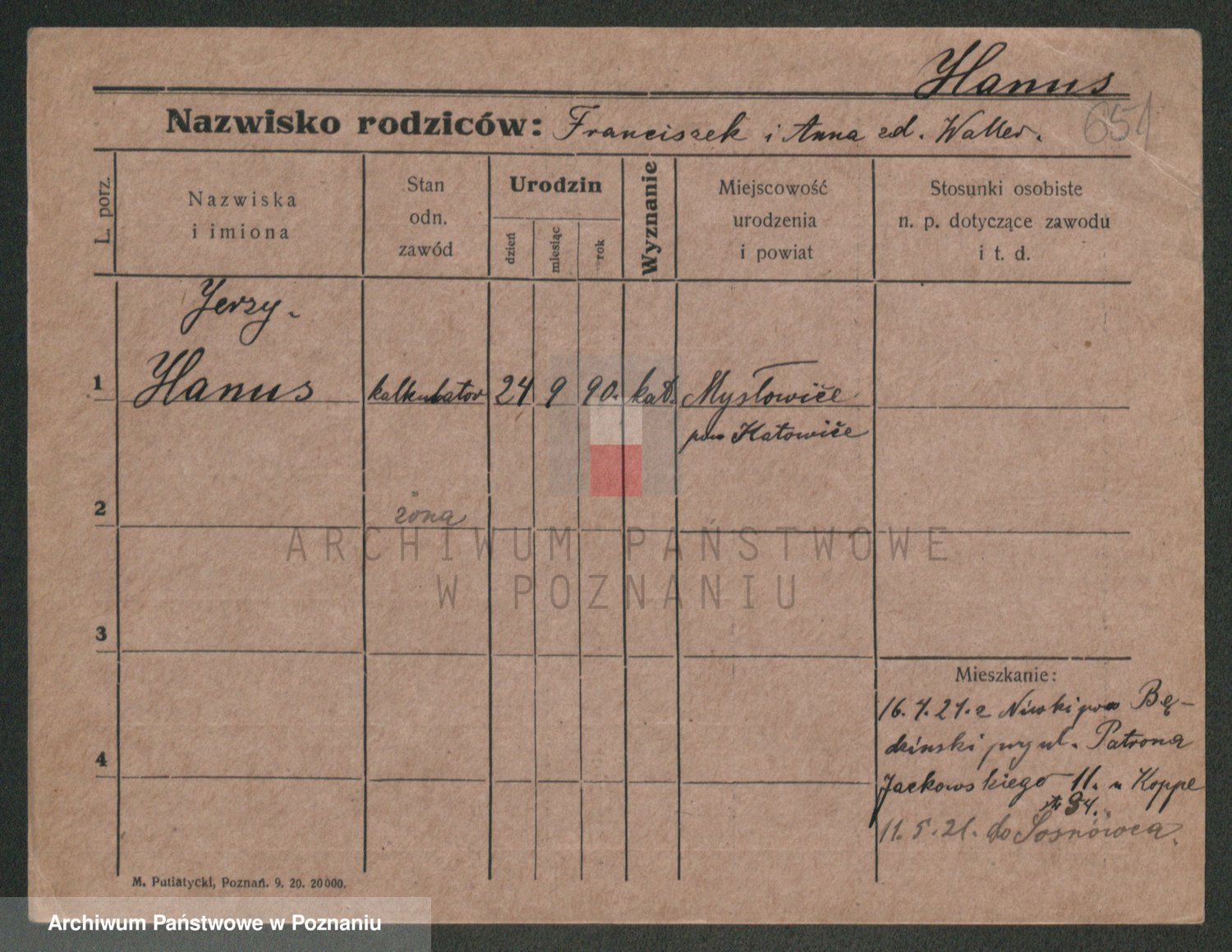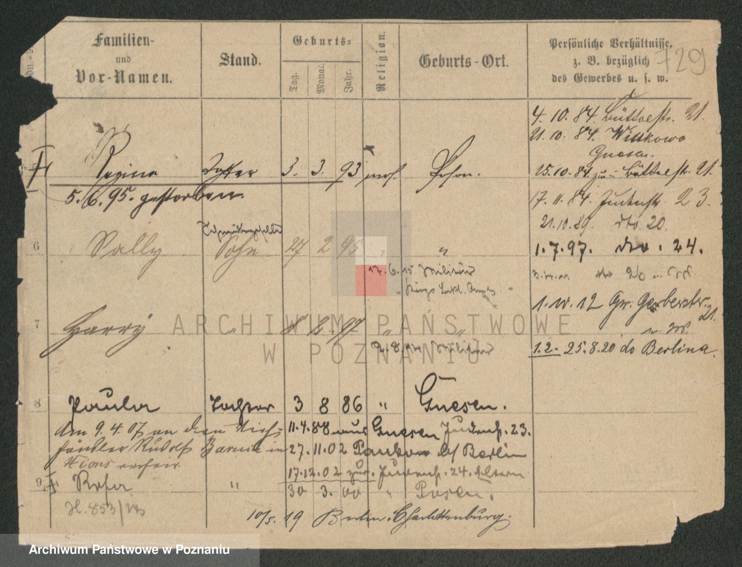 Podgląd karty osobowej dostępny jest po kliknięciu na nazwisko lub ikonkę karty. Można dokonywać powiększenia (ikony na górze) lub przechodzić między kolejnymi skanami (strzałki po bokach).