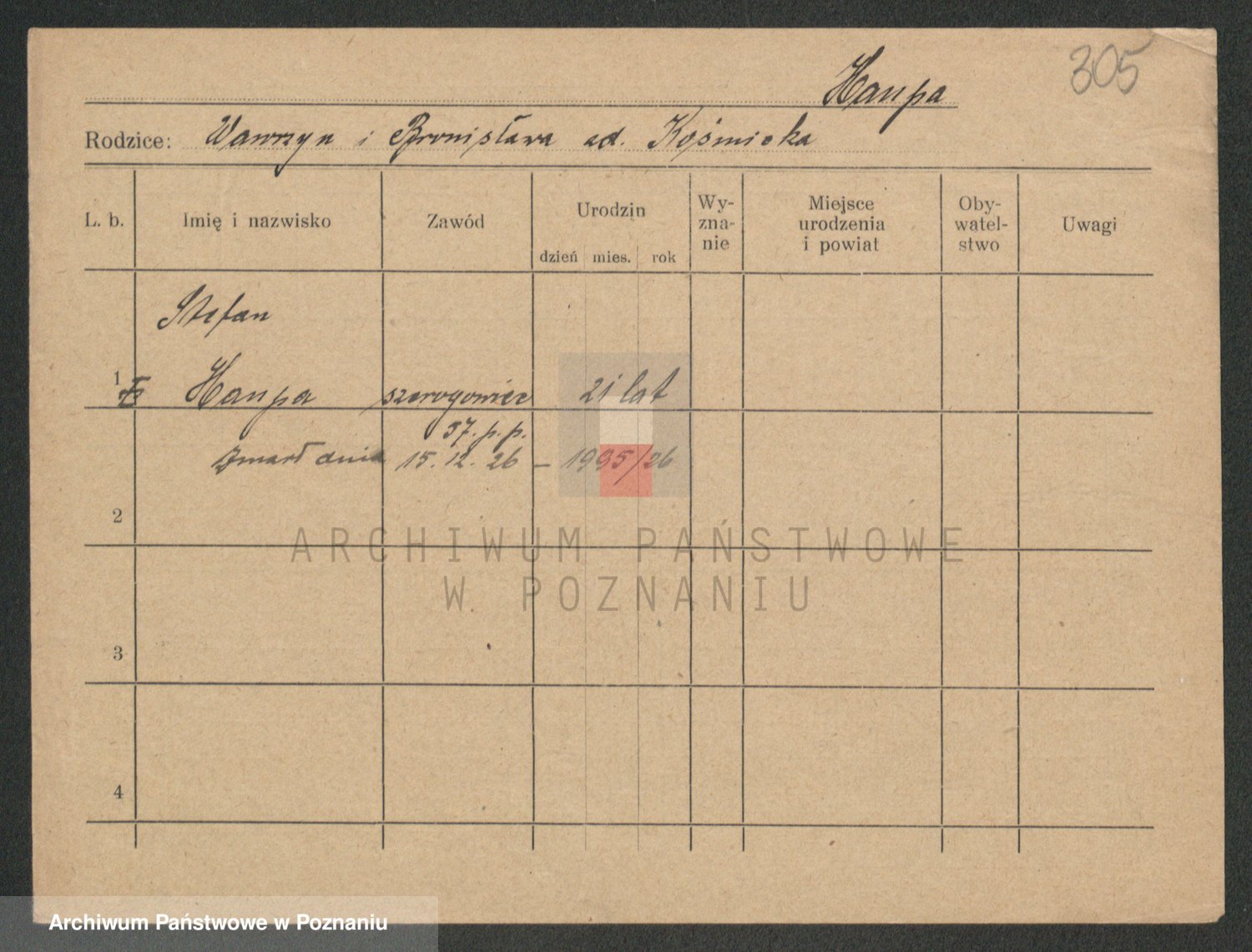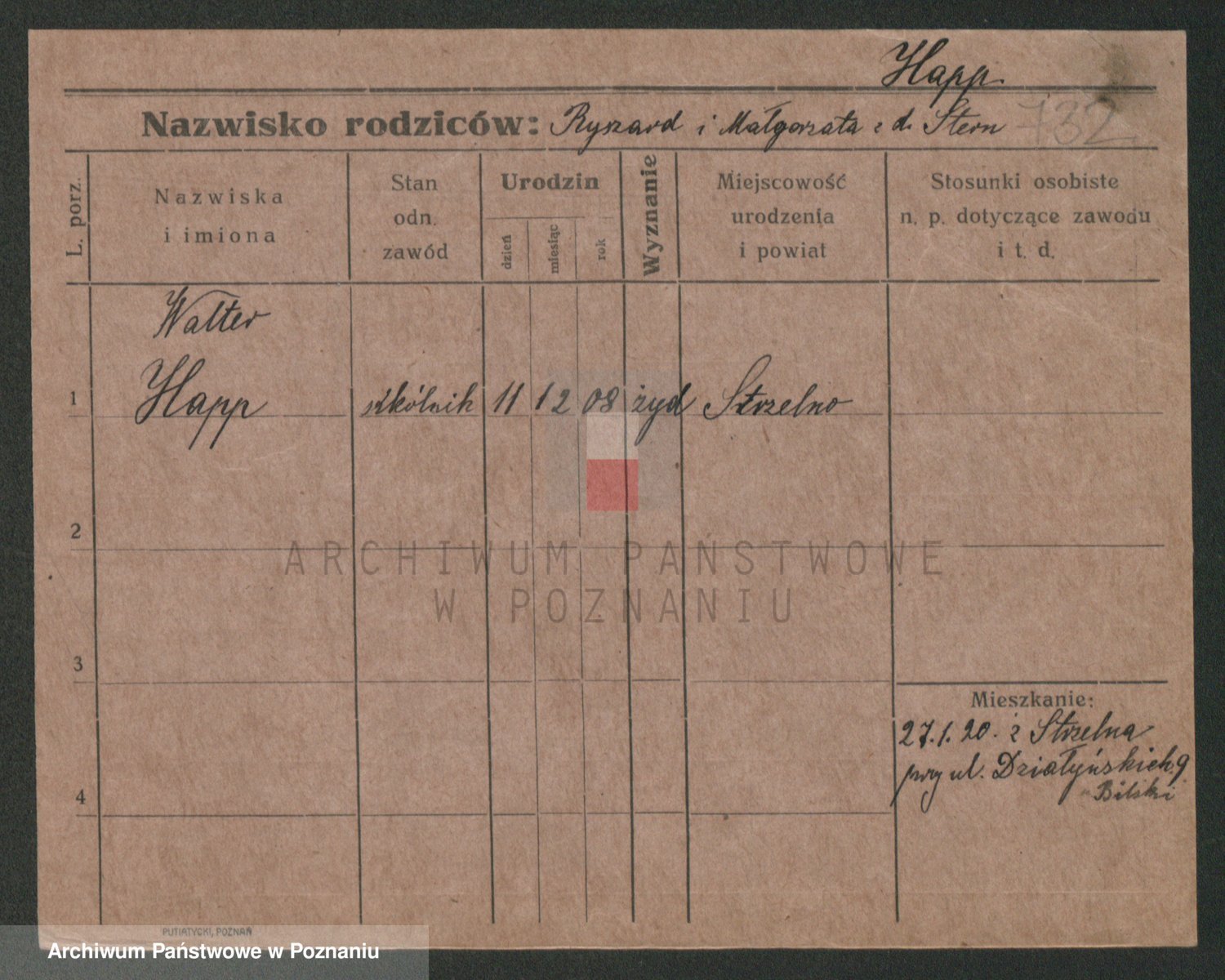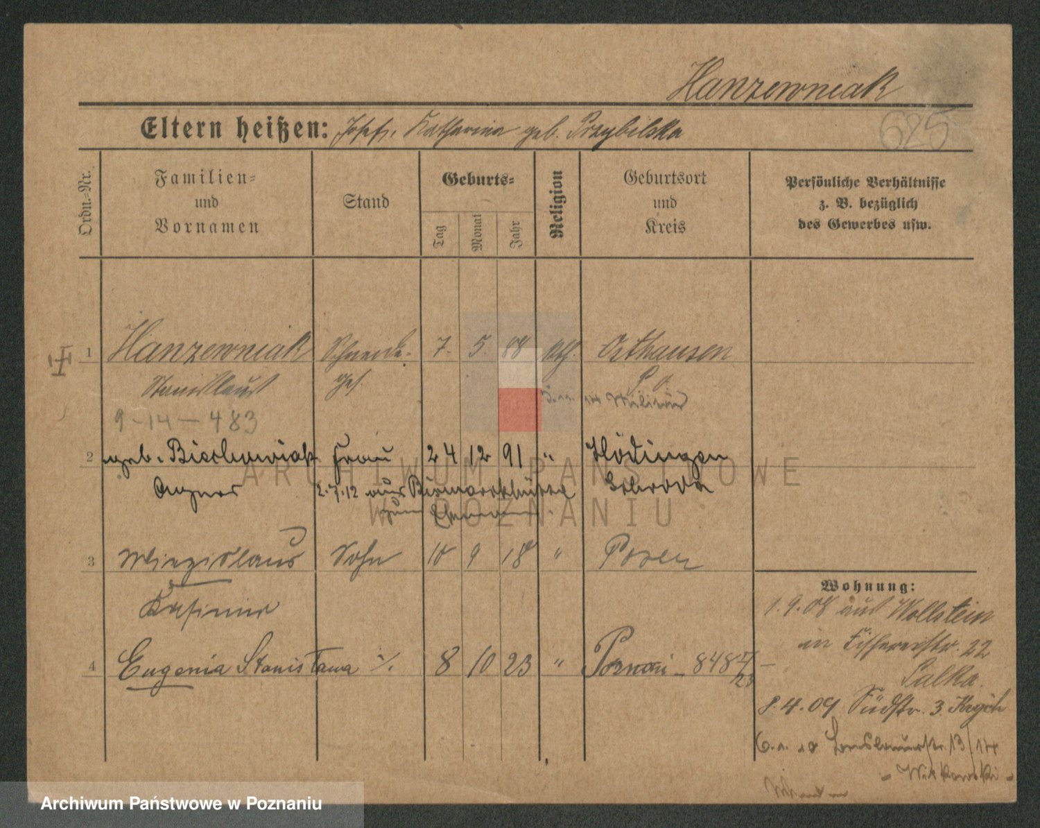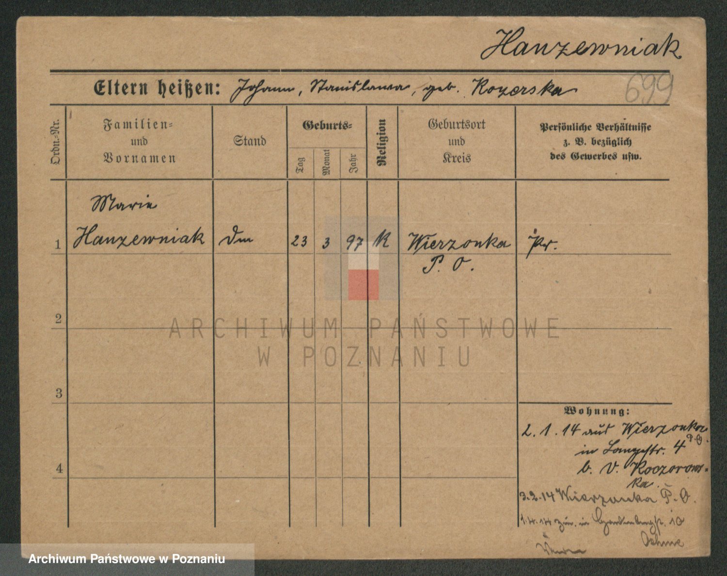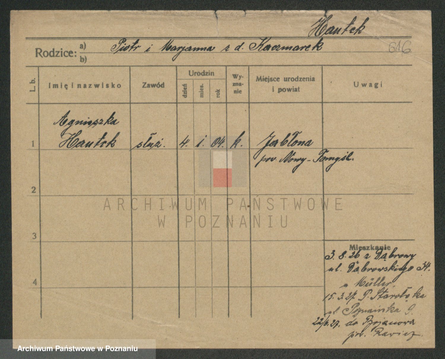 Podgląd karty osobowej dostępny jest po kliknięciu na nazwisko lub ikonkę karty. Można dokonywać powiększenia (ikony na górze) lub przechodzić między kolejnymi skanami (strzałki po bokach).