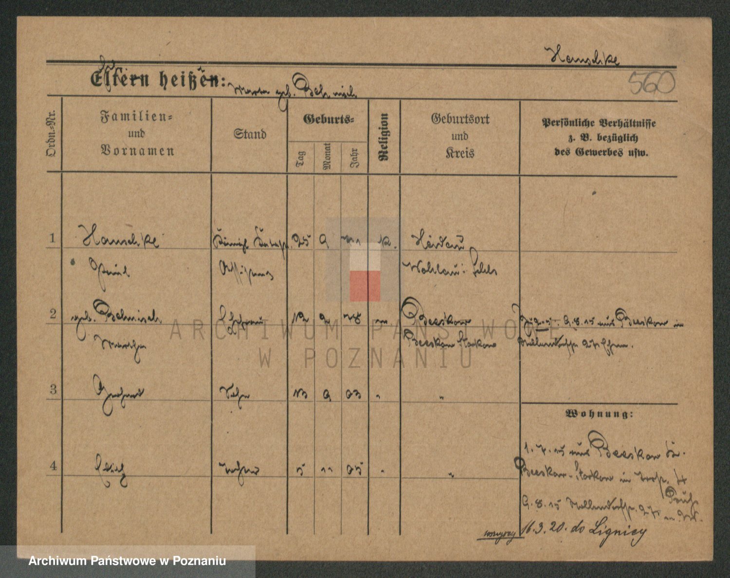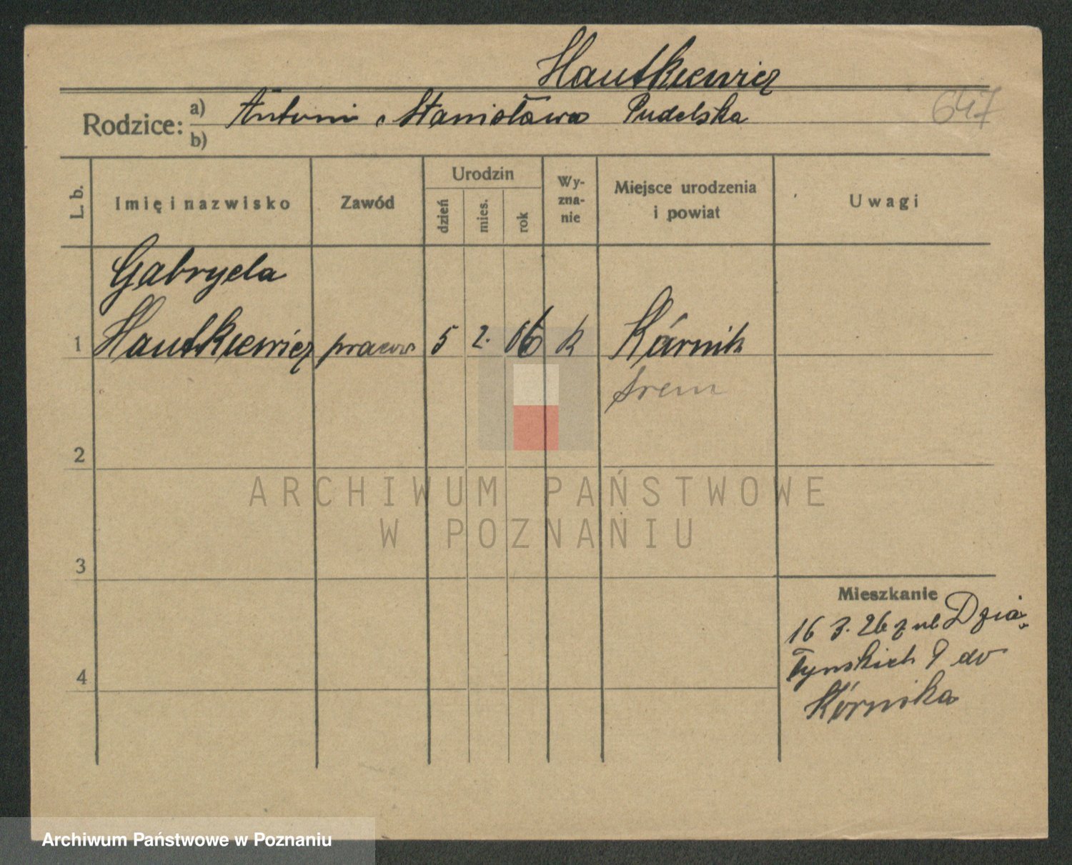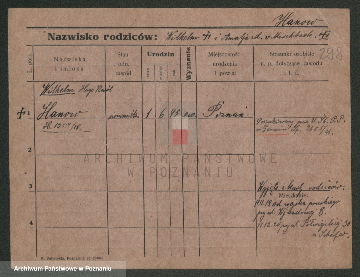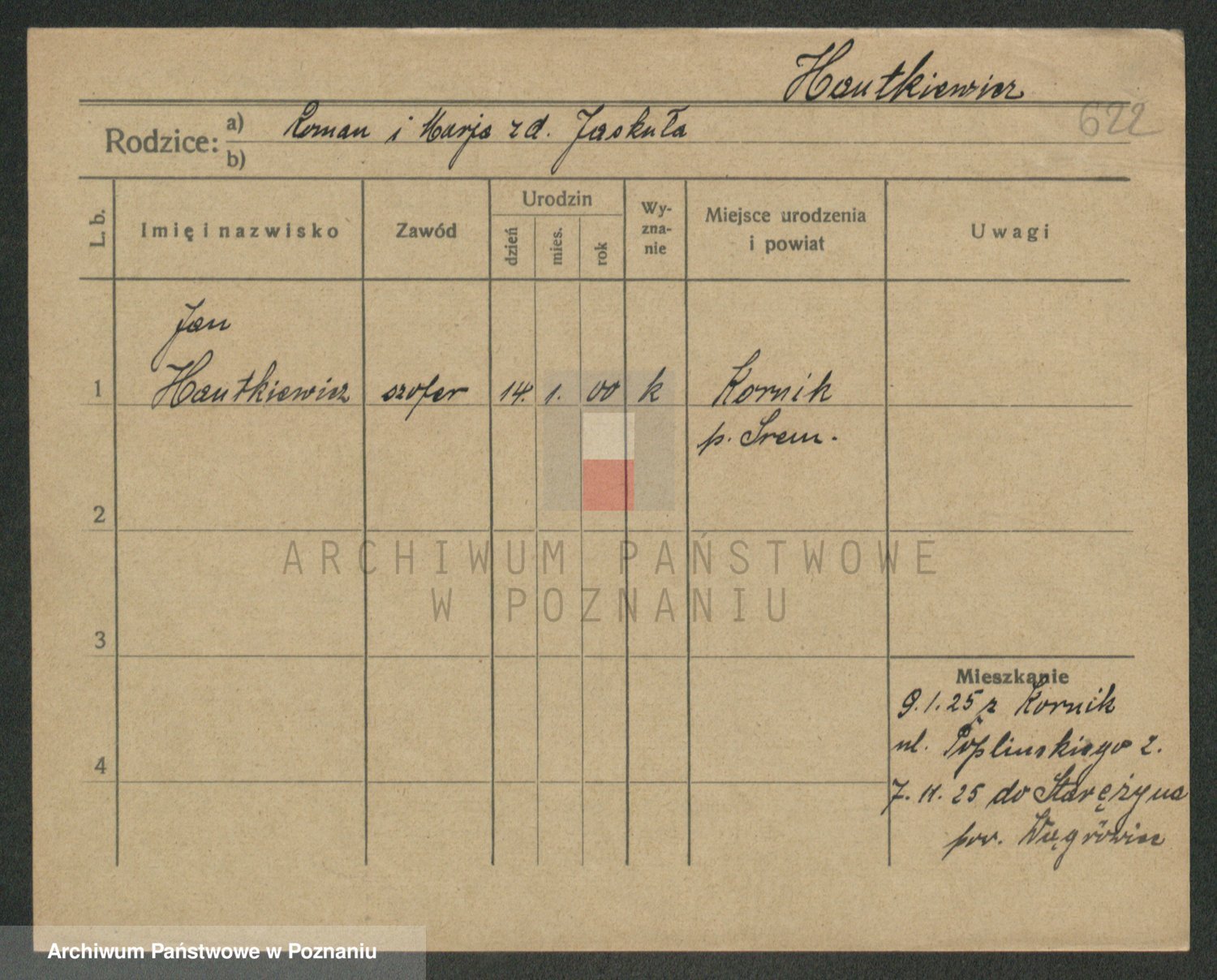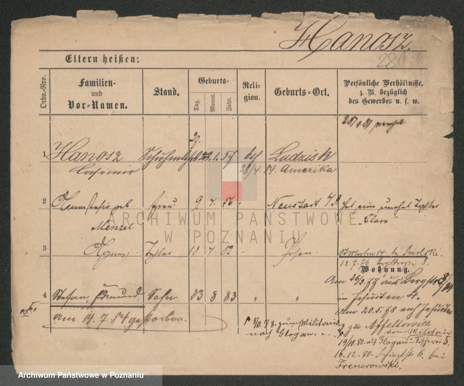Podgląd karty osobowej dostępny jest po kliknięciu na nazwisko lub ikonkę karty. Można dokonywać powiększenia (ikony na górze) lub przechodzić między kolejnymi skanami (strzałki po bokach).