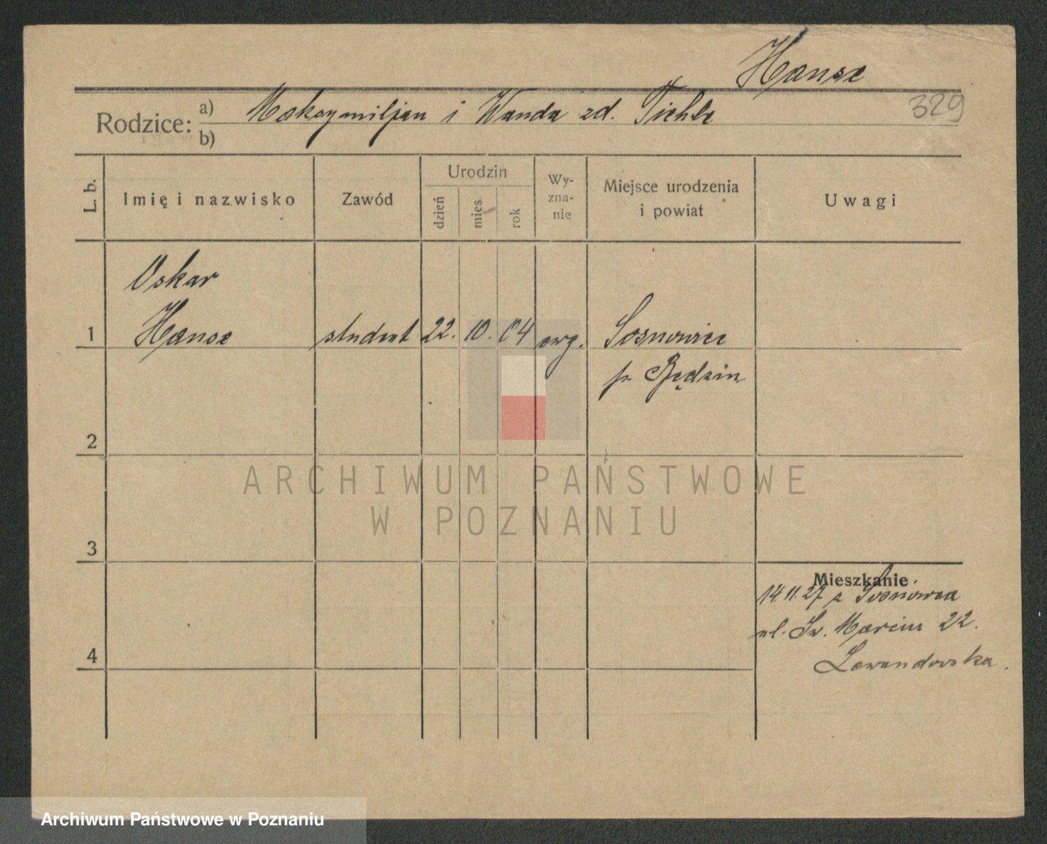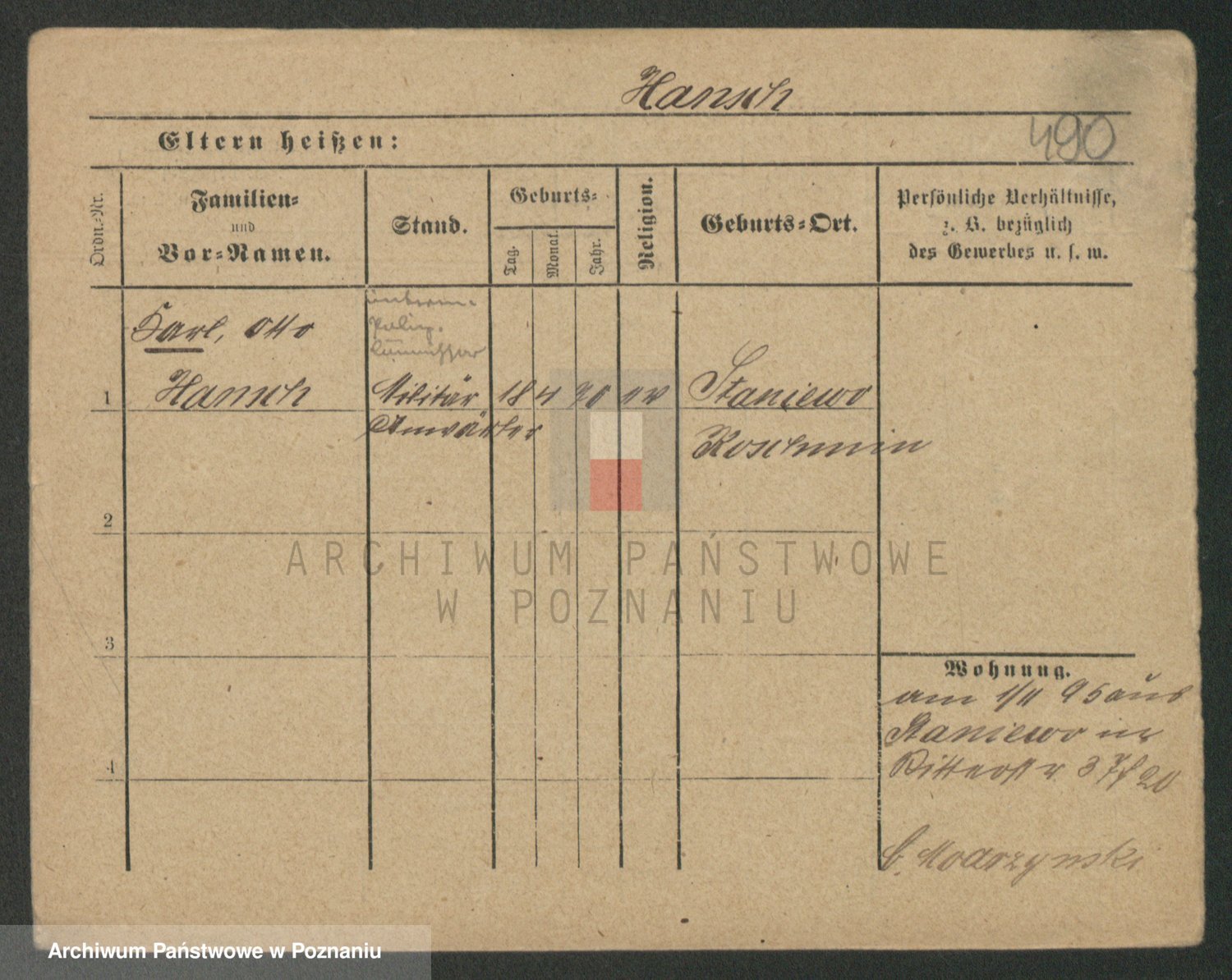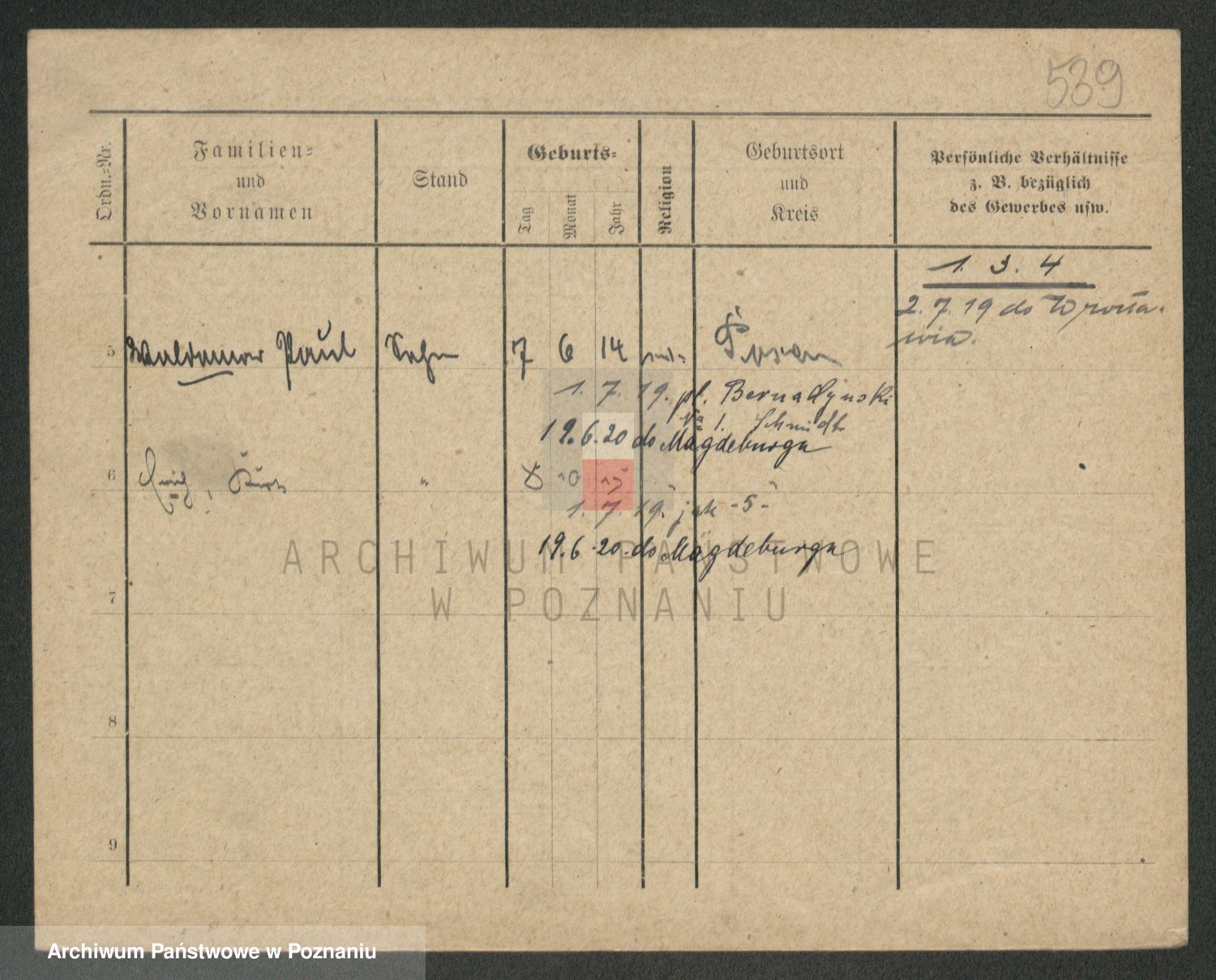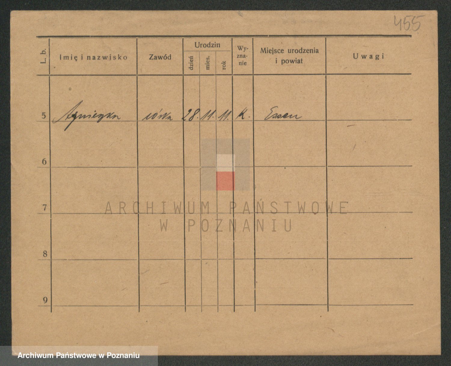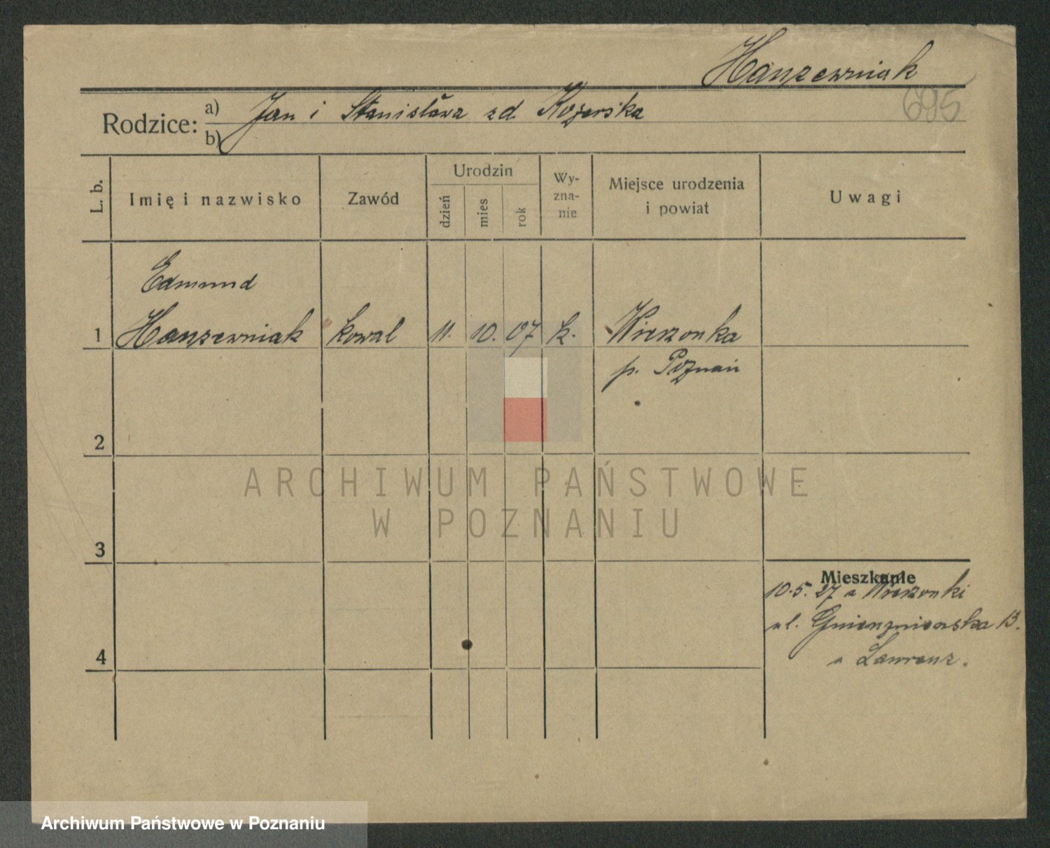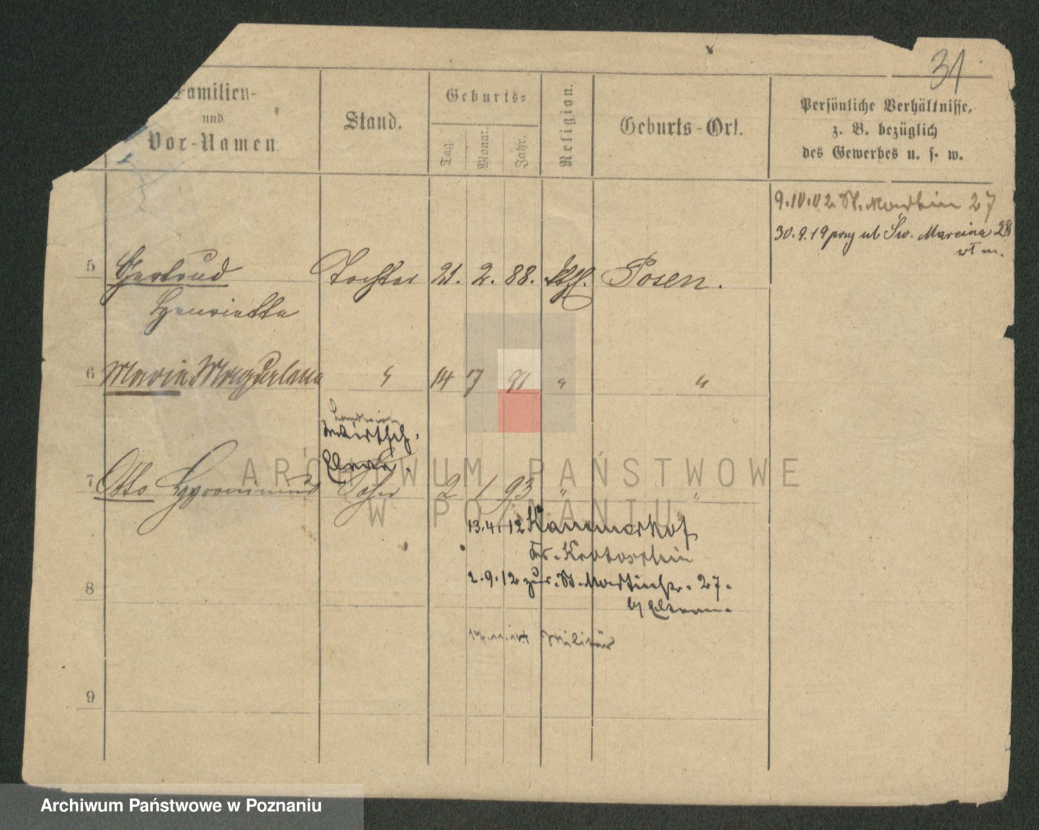 Podgląd karty osobowej dostępny jest po kliknięciu na nazwisko lub ikonkę karty. Można dokonywać powiększenia (ikony na górze) lub przechodzić między kolejnymi skanami (strzałki po bokach).