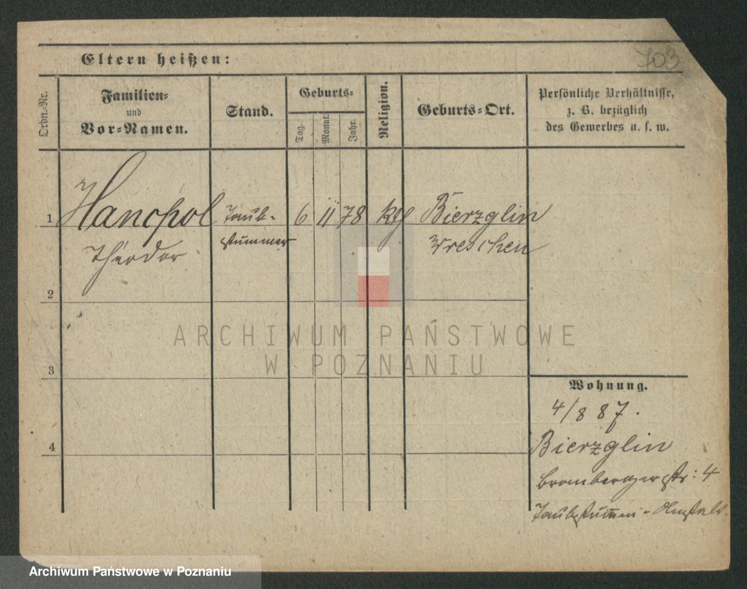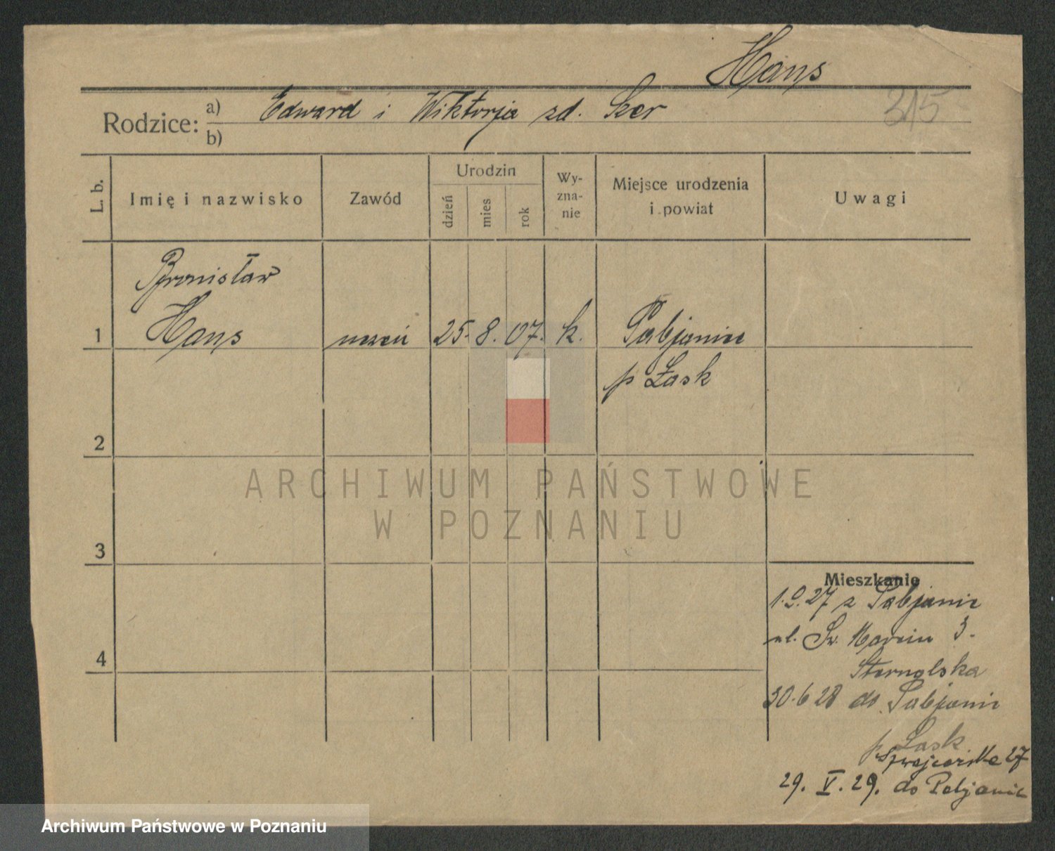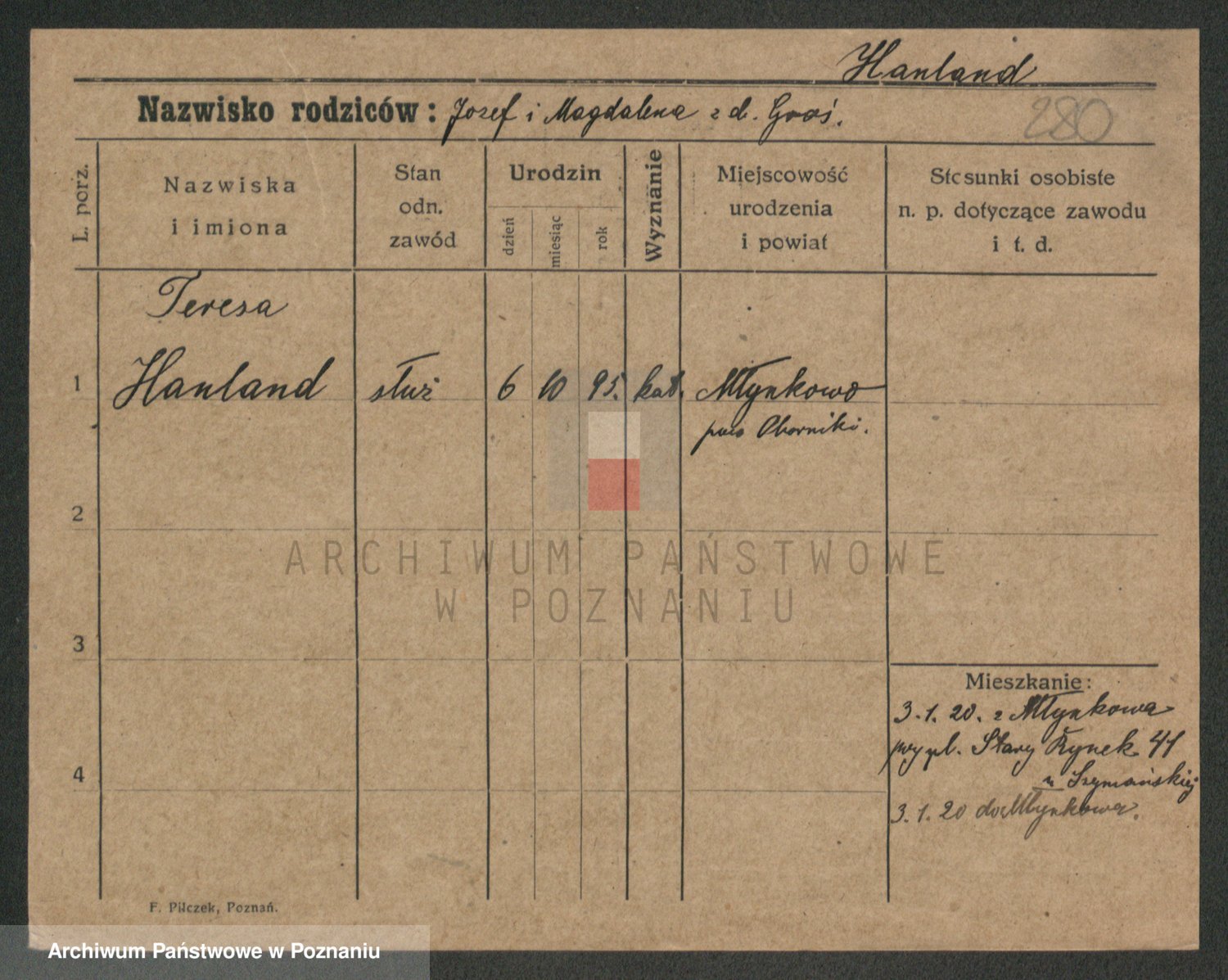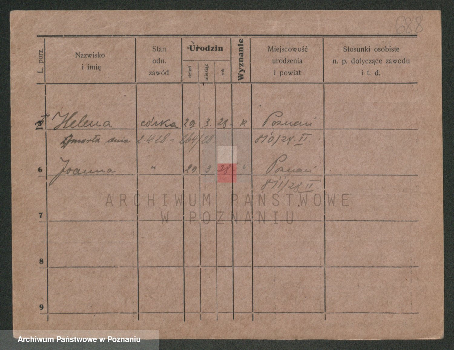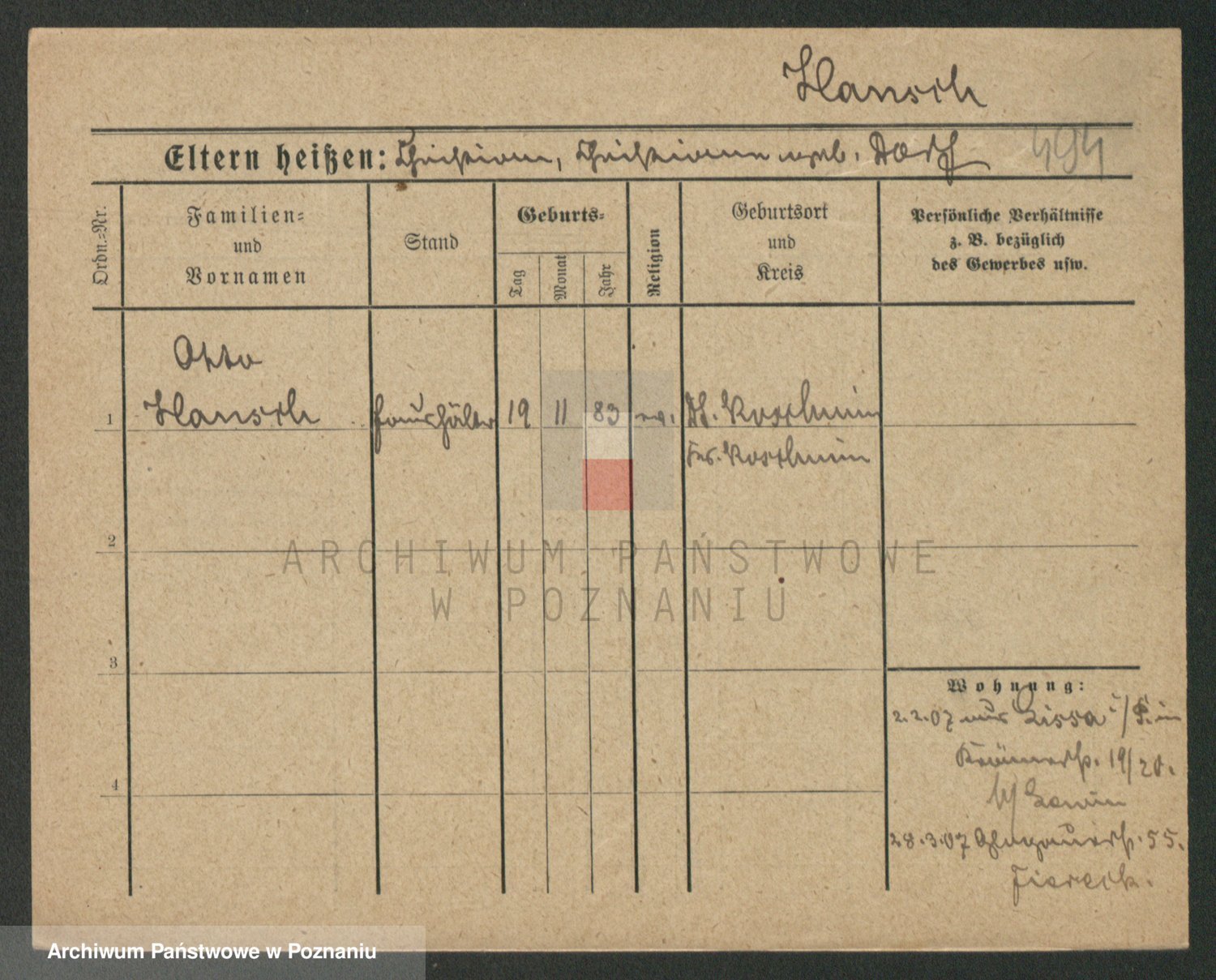 Podgląd karty osobowej dostępny jest po kliknięciu na nazwisko lub ikonkę karty. Można dokonywać powiększenia (ikony na górze) lub przechodzić między kolejnymi skanami (strzałki po bokach).