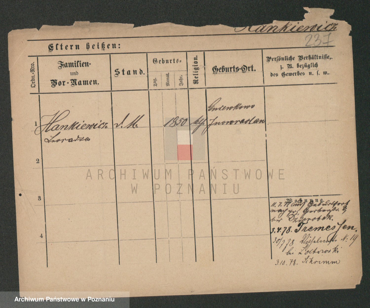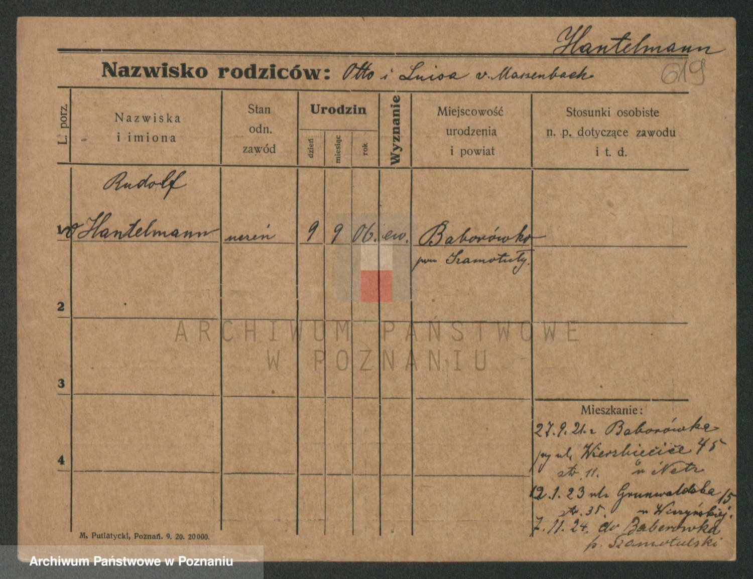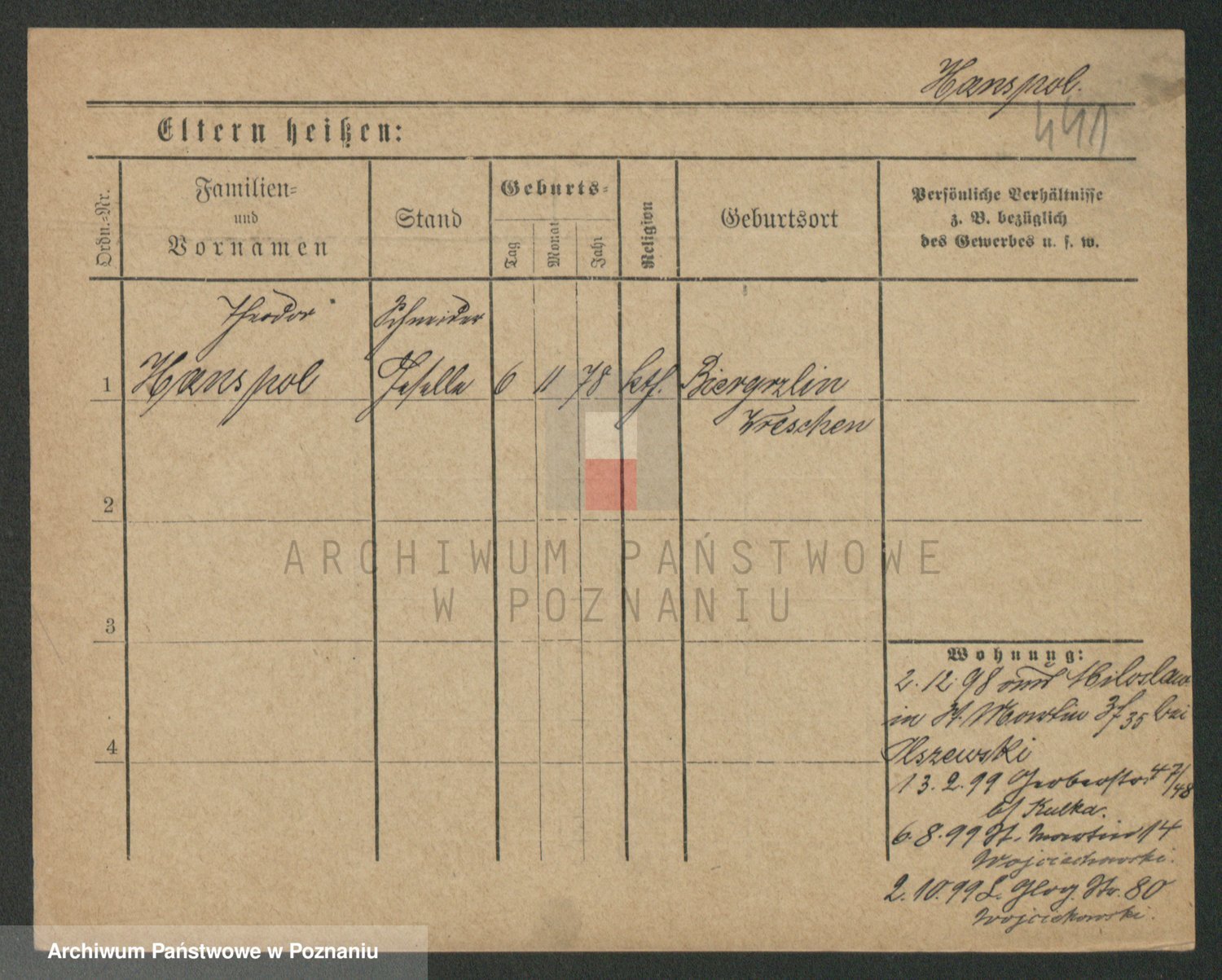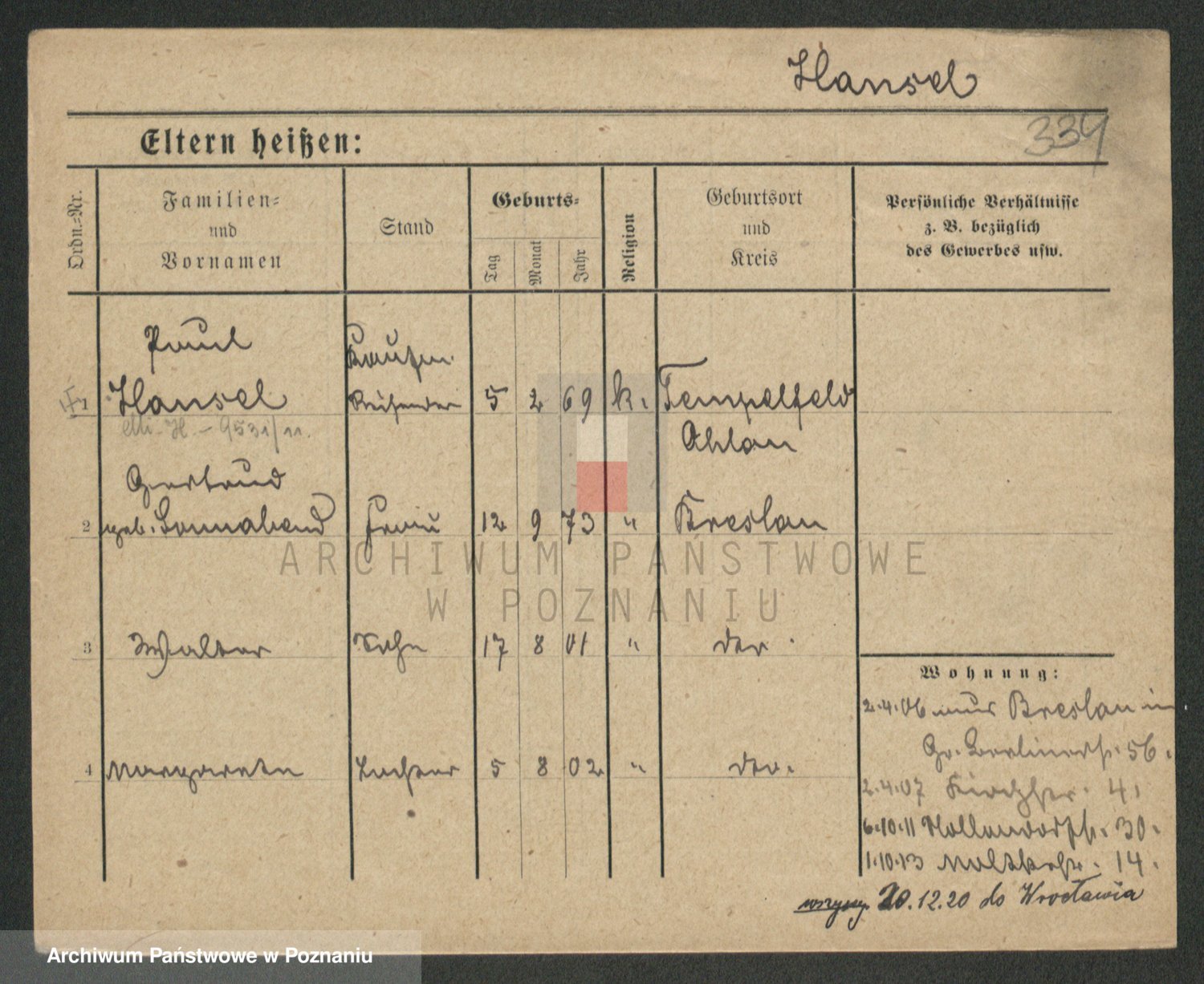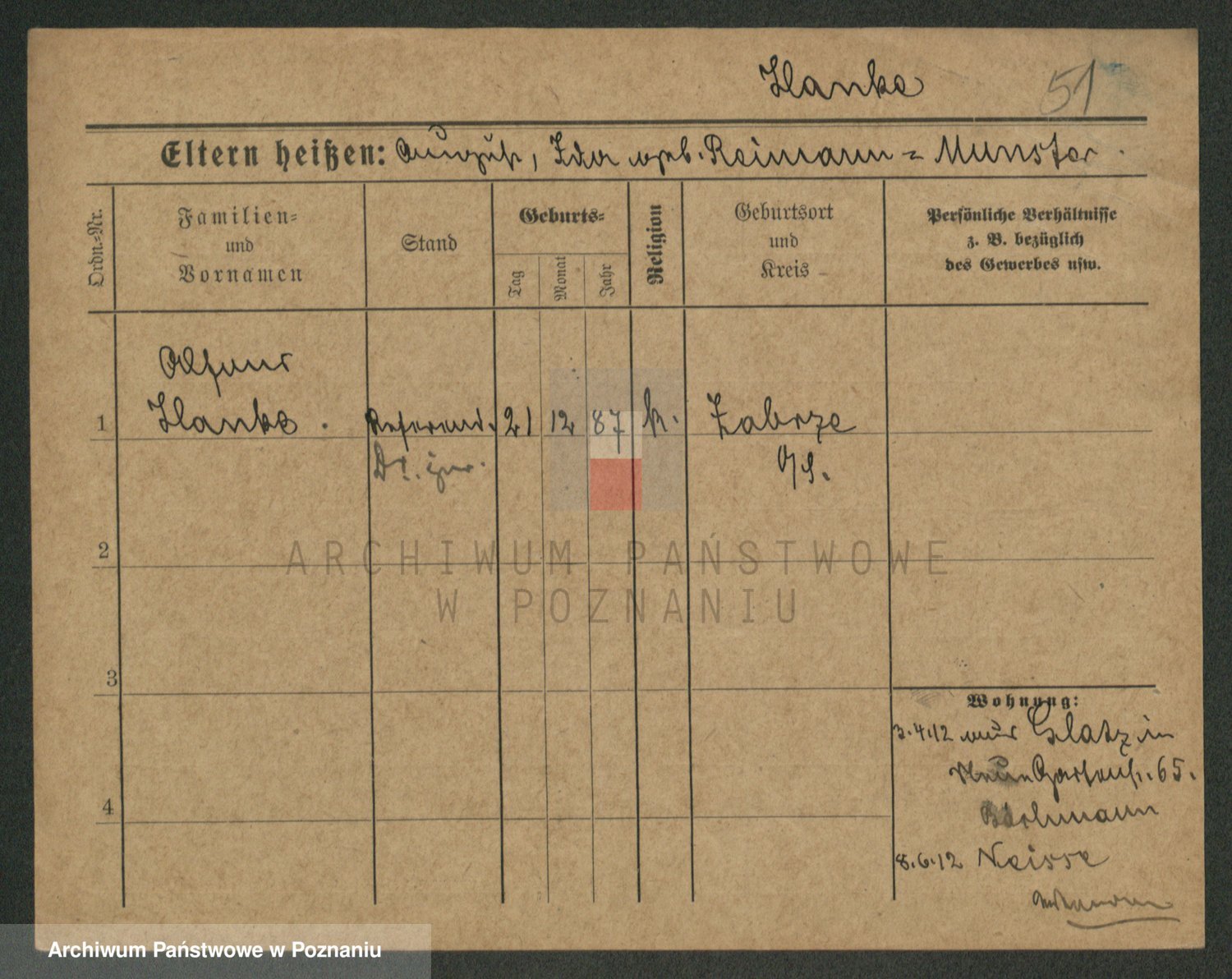 Podgląd karty osobowej dostępny jest po kliknięciu na nazwisko lub ikonkę karty. Można dokonywać powiększenia (ikony na górze) lub przechodzić między kolejnymi skanami (strzałki po bokach).