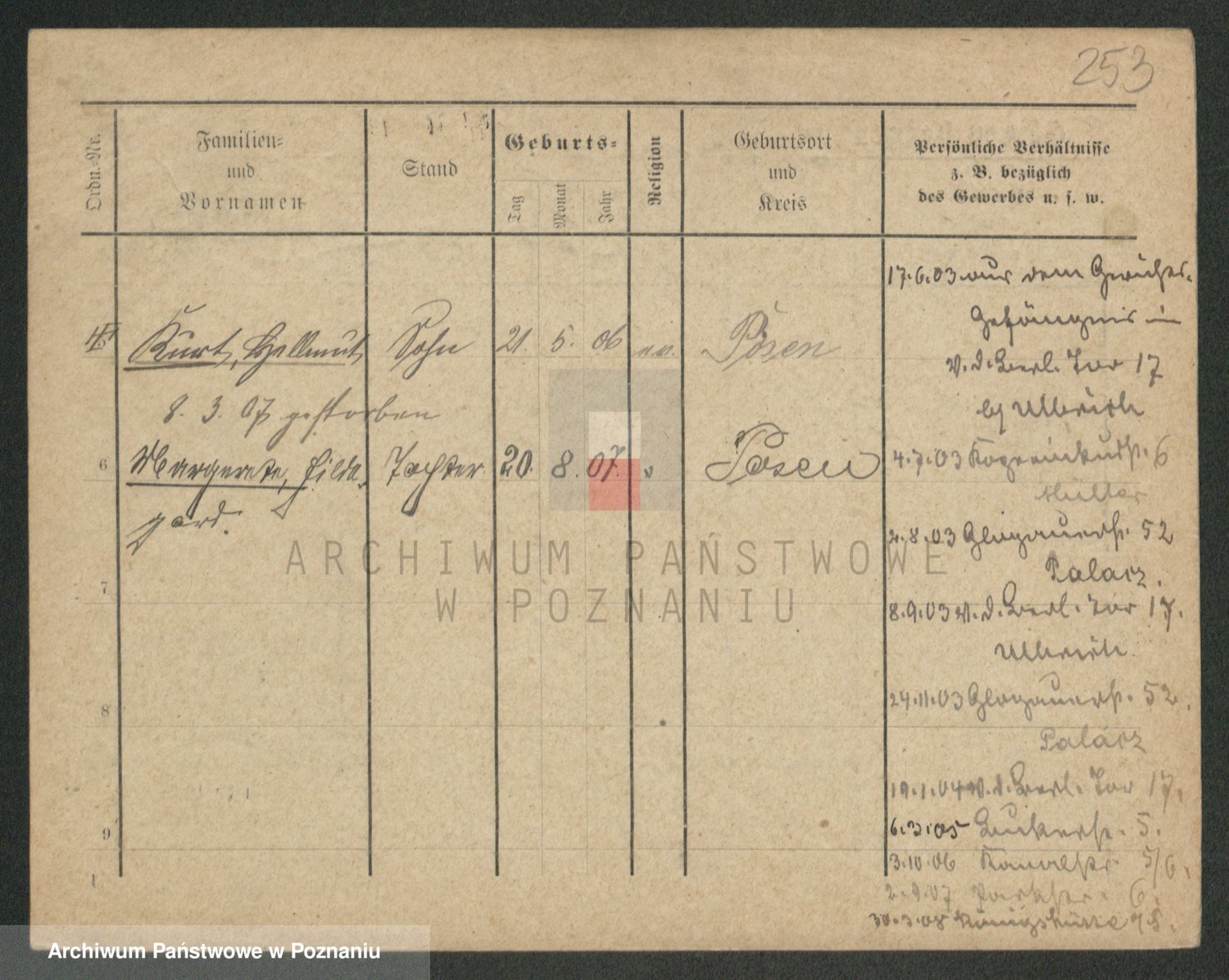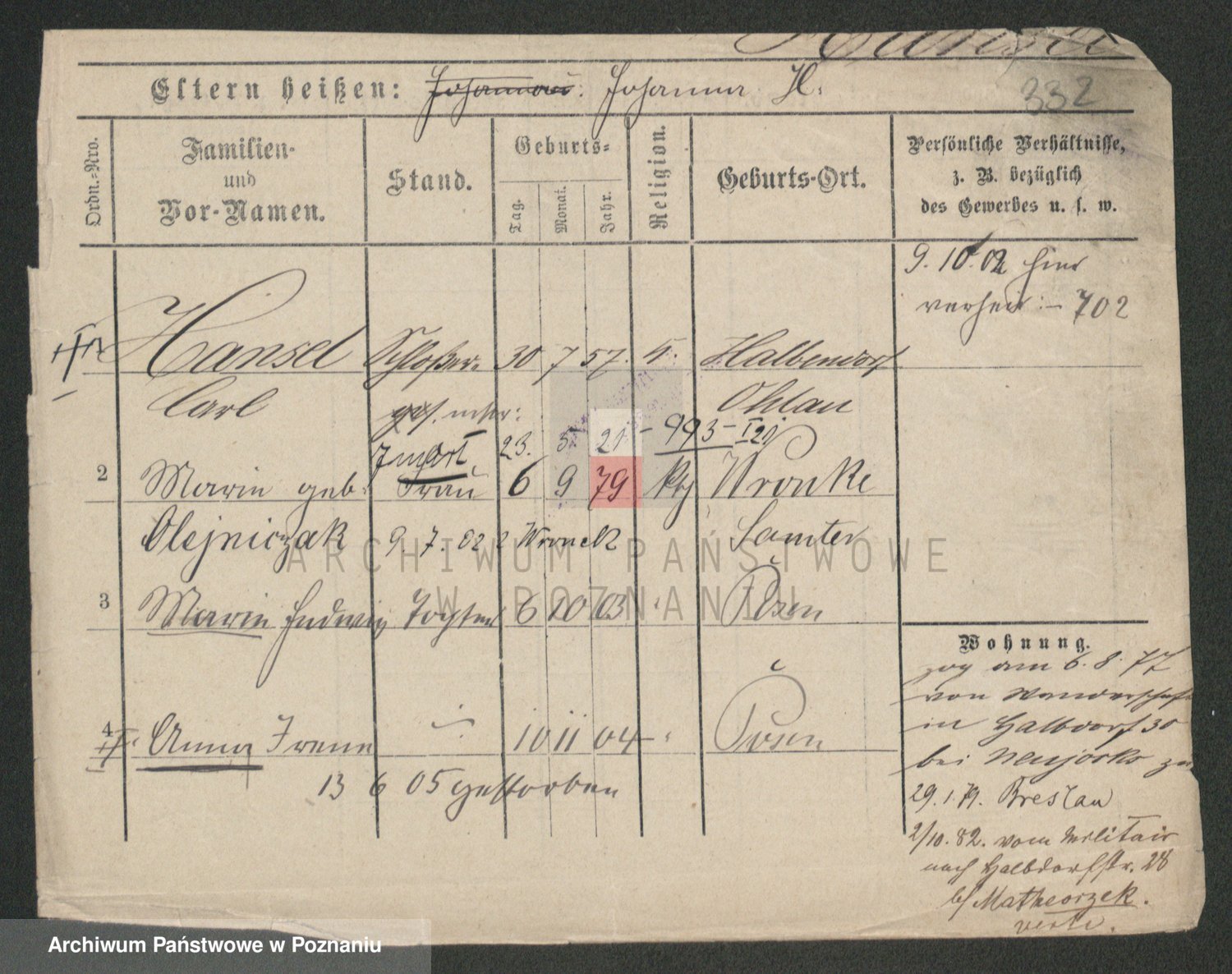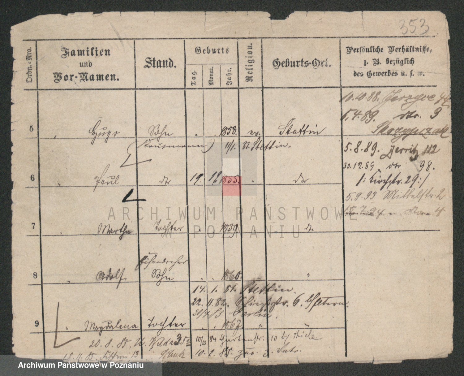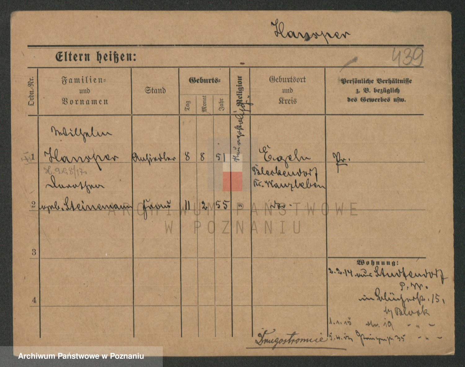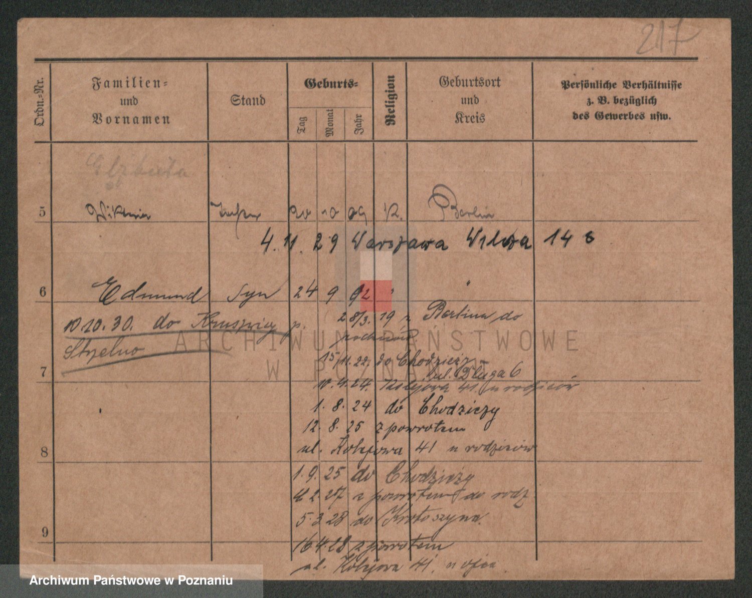 Podgląd karty osobowej dostępny jest po kliknięciu na nazwisko lub ikonkę karty. Można dokonywać powiększenia (ikony na górze) lub przechodzić między kolejnymi skanami (strzałki po bokach).
