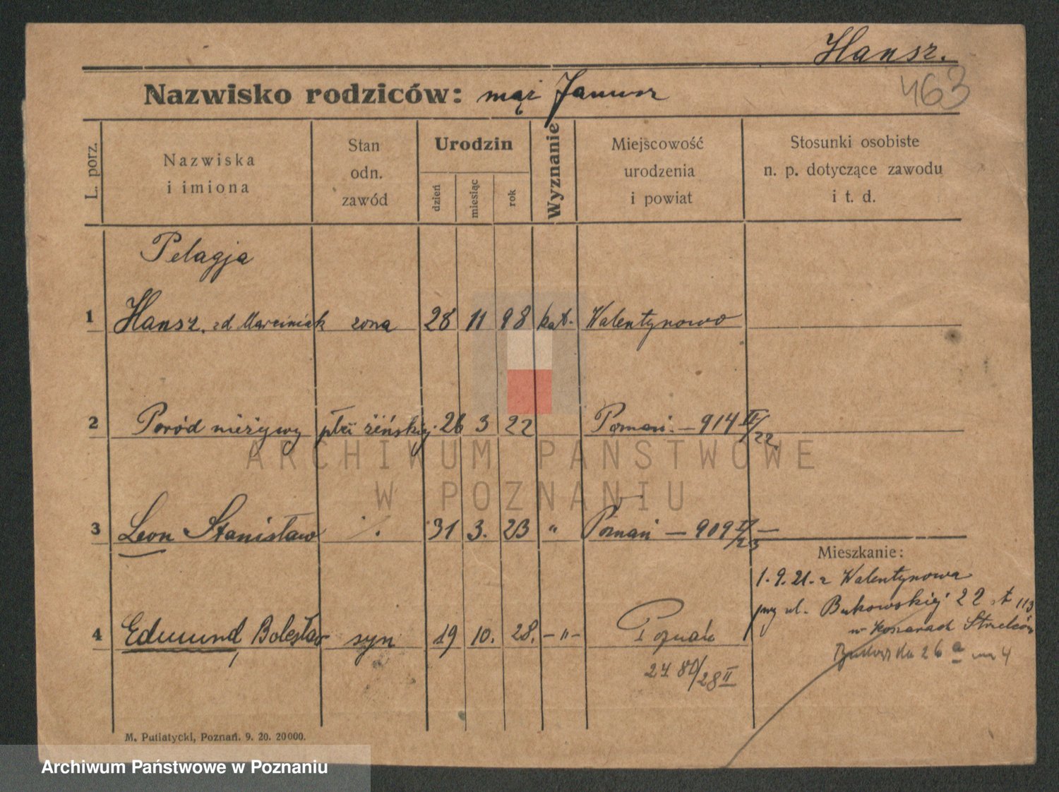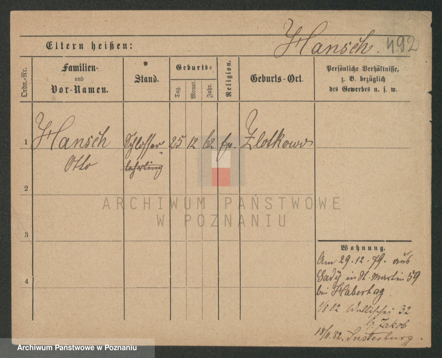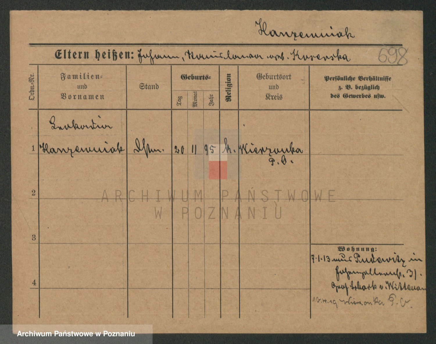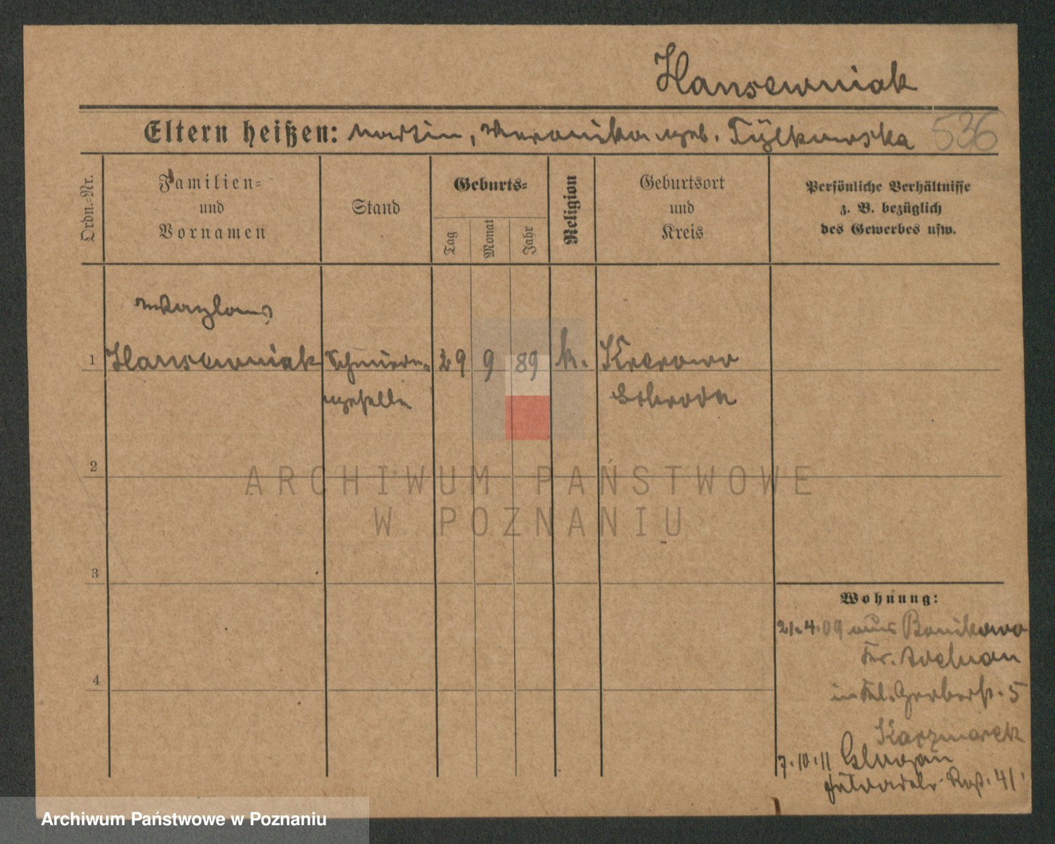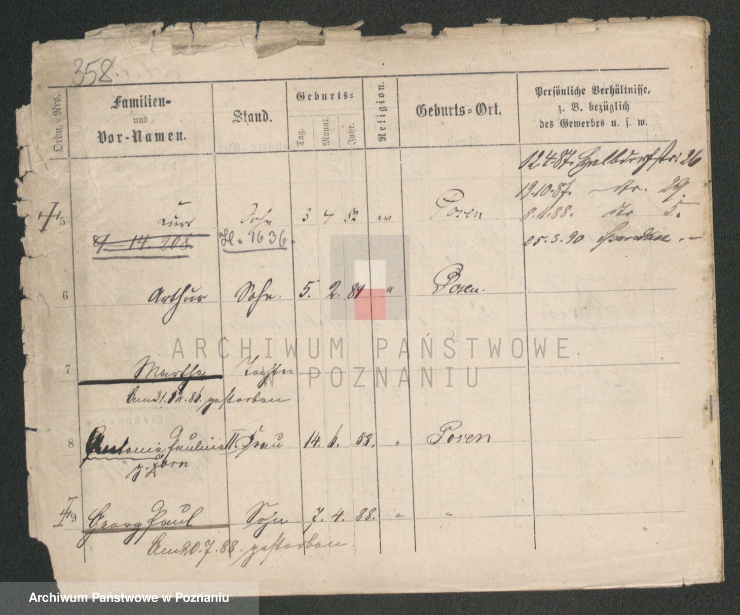 Podgląd karty osobowej dostępny jest po kliknięciu na nazwisko lub ikonkę karty. Można dokonywać powiększenia (ikony na górze) lub przechodzić między kolejnymi skanami (strzałki po bokach).