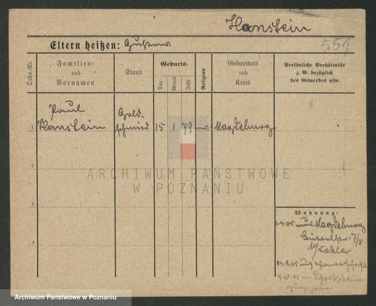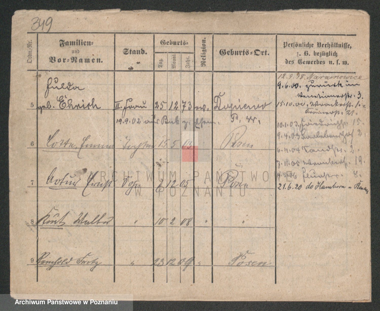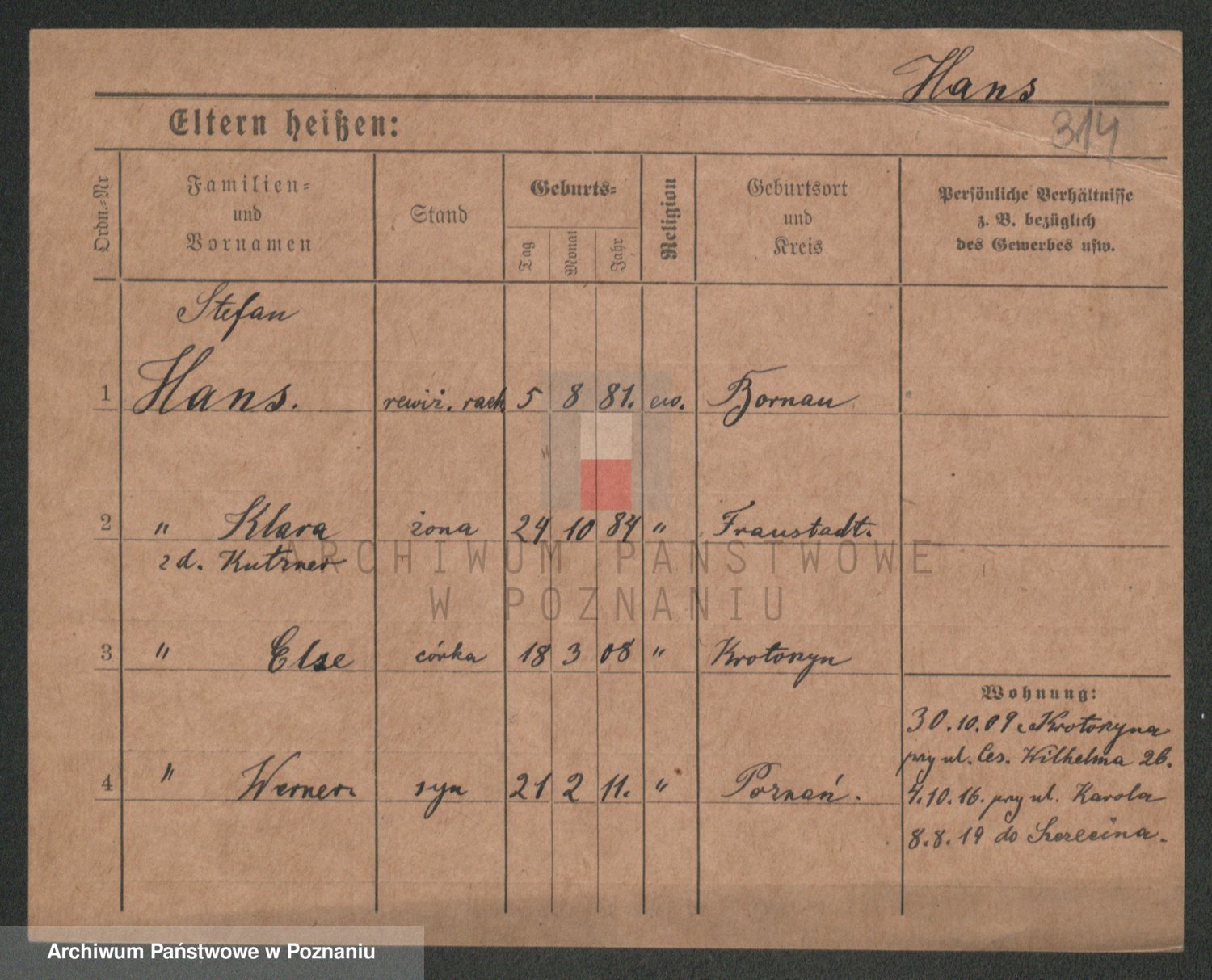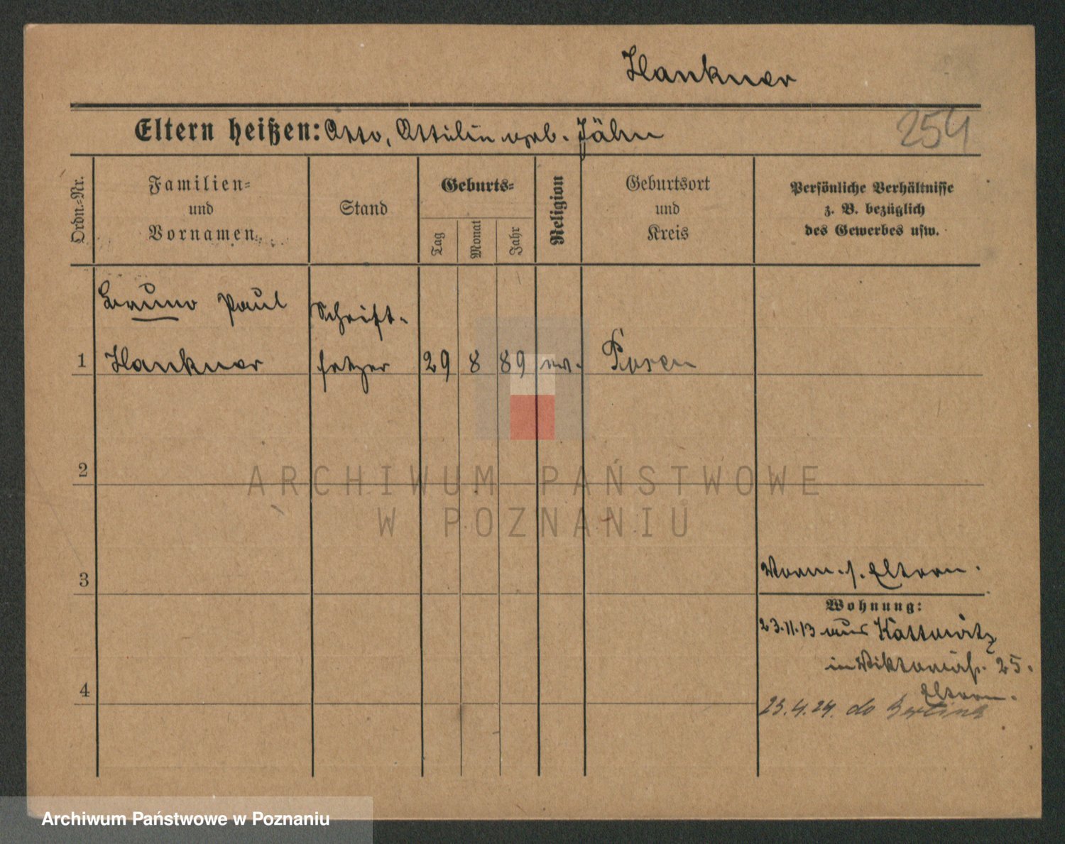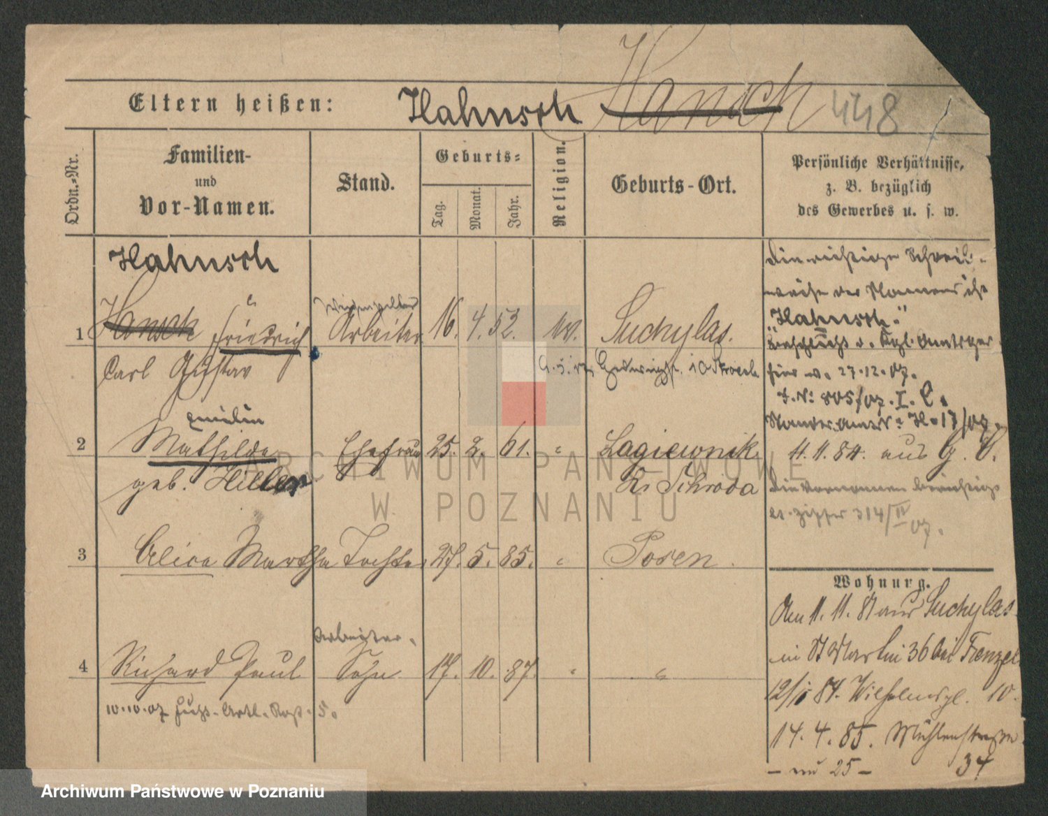 Podgląd karty osobowej dostępny jest po kliknięciu na nazwisko lub ikonkę karty. Można dokonywać powiększenia (ikony na górze) lub przechodzić między kolejnymi skanami (strzałki po bokach).
