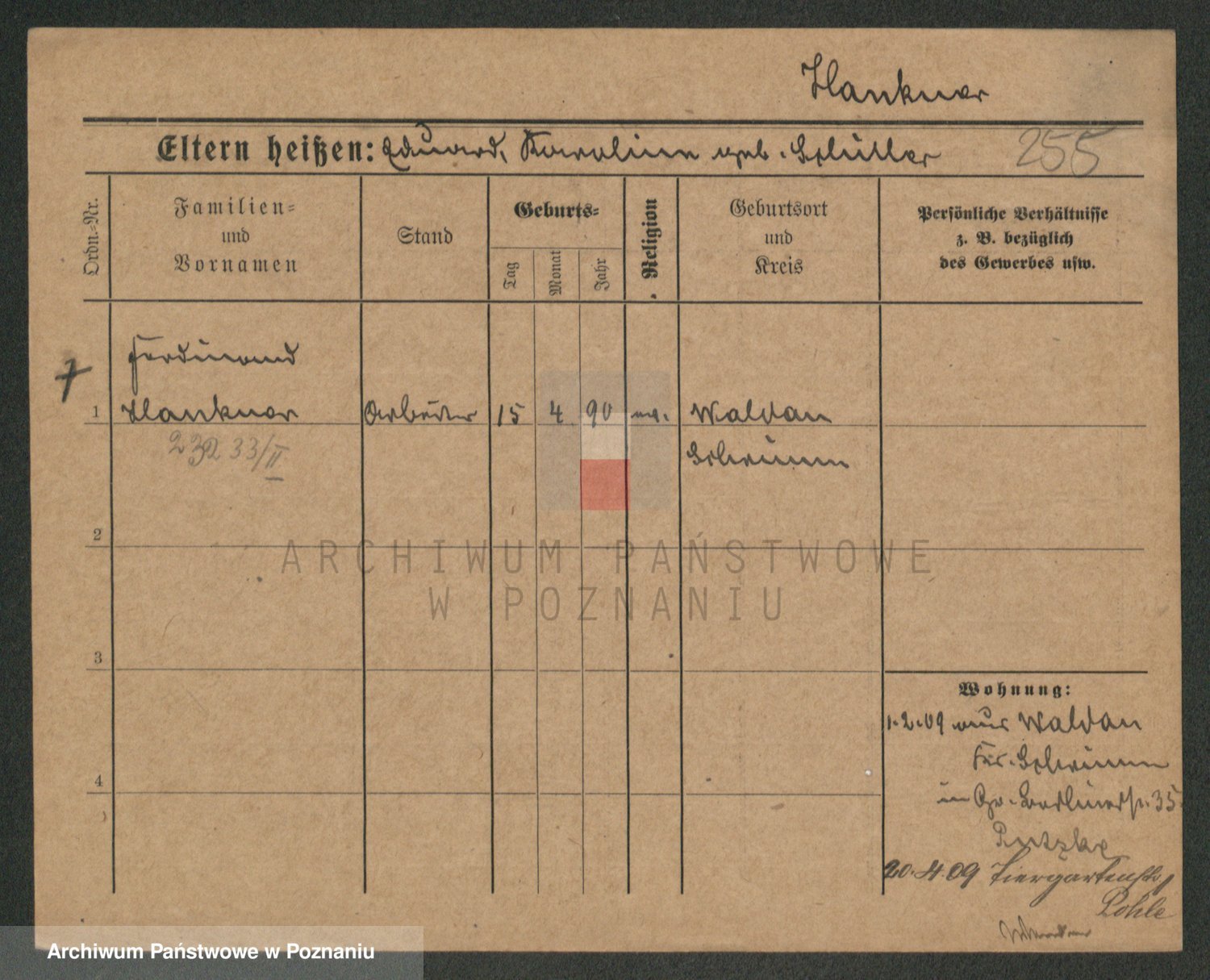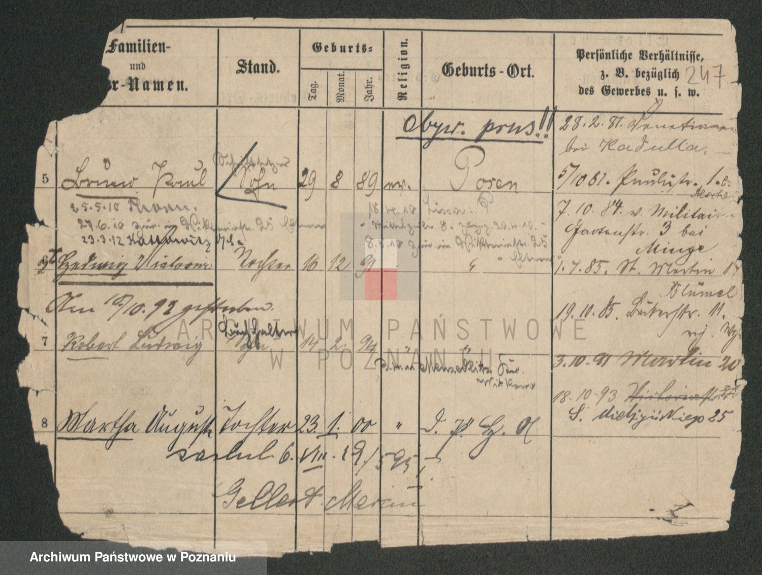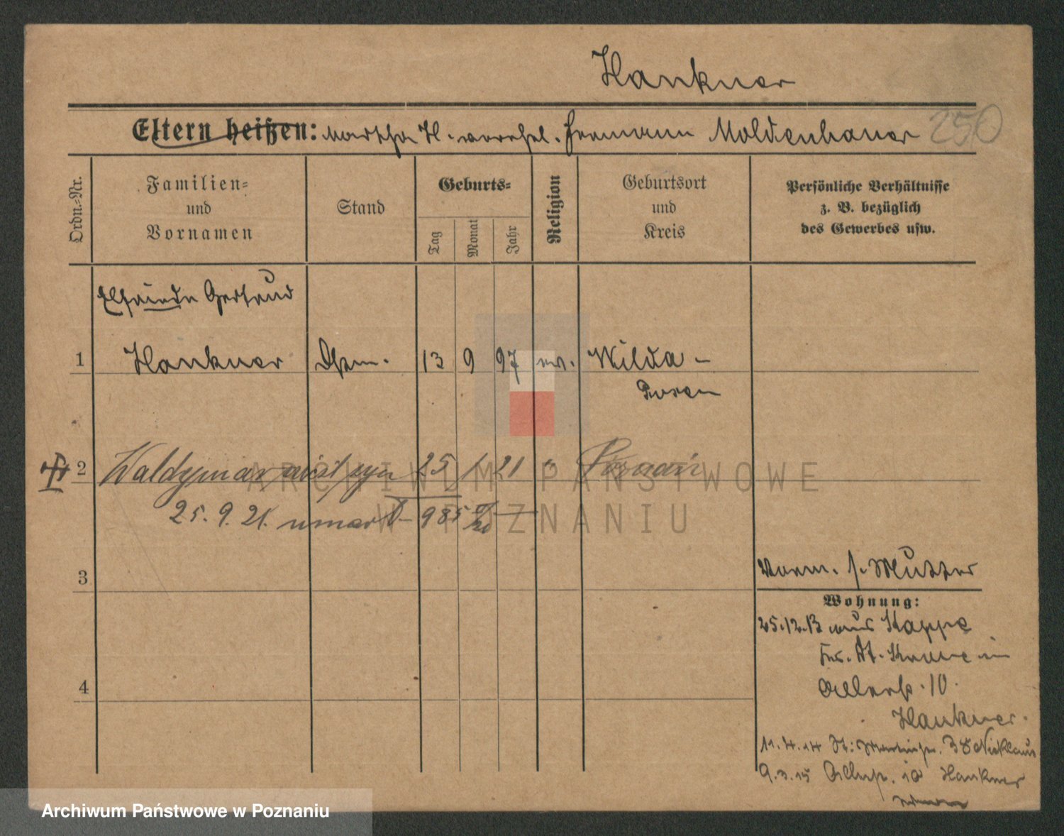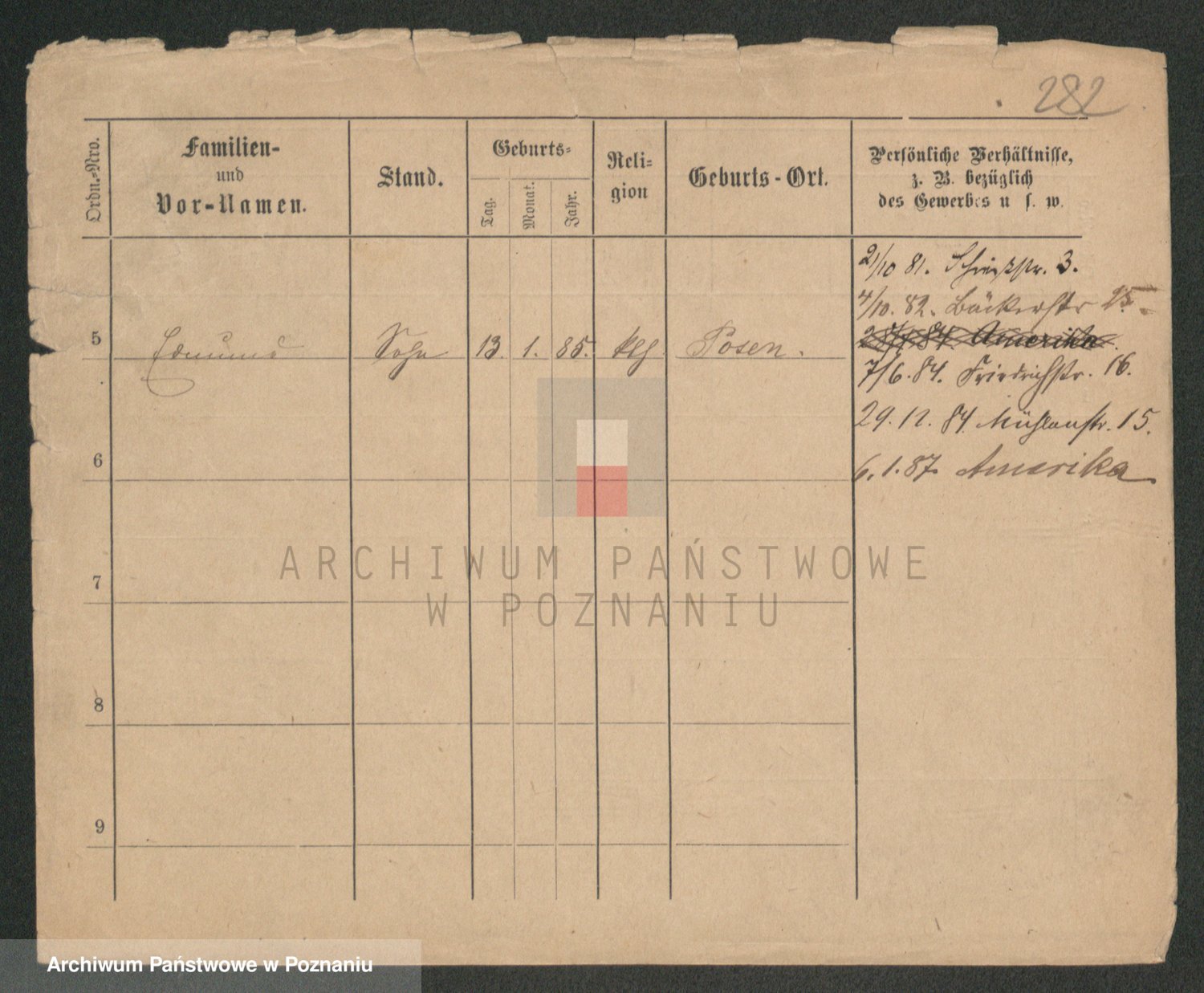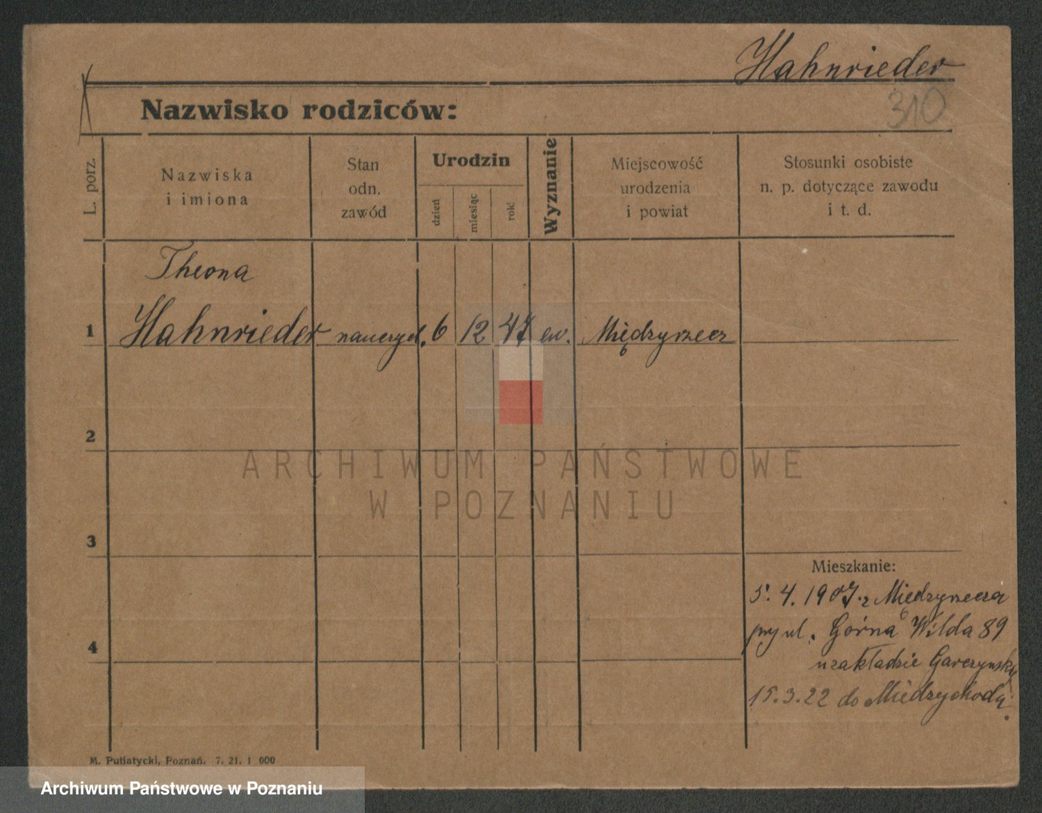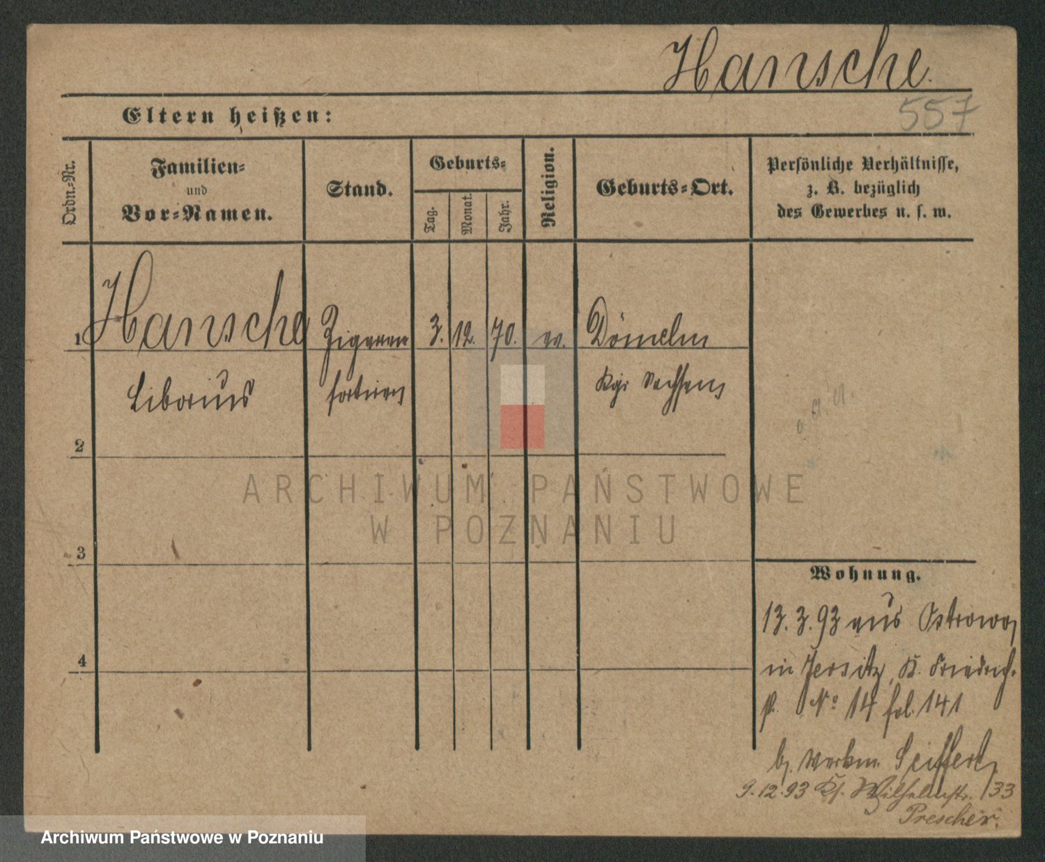 Podgląd karty osobowej dostępny jest po kliknięciu na nazwisko lub ikonkę karty. Można dokonywać powiększenia (ikony na górze) lub przechodzić między kolejnymi skanami (strzałki po bokach).