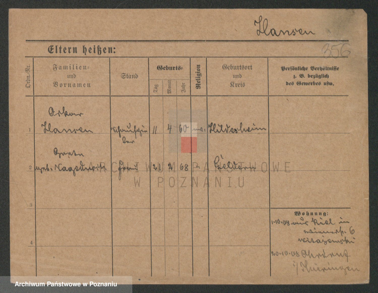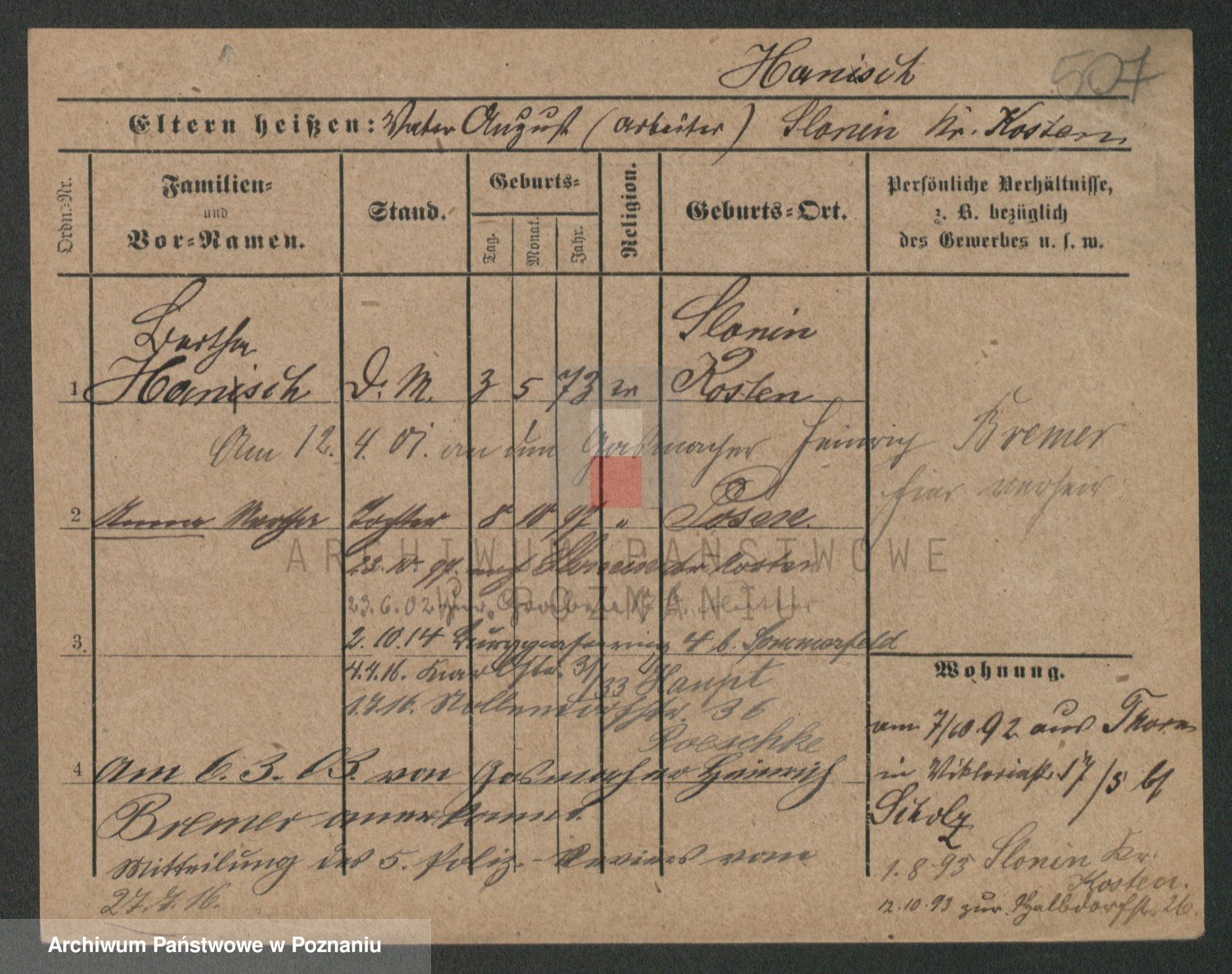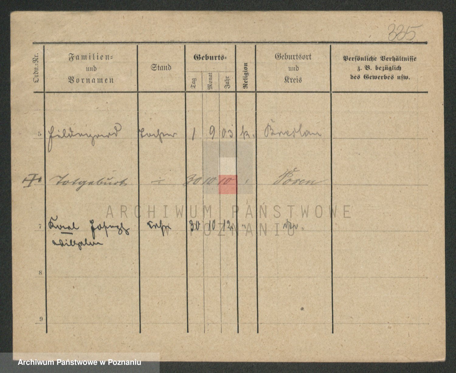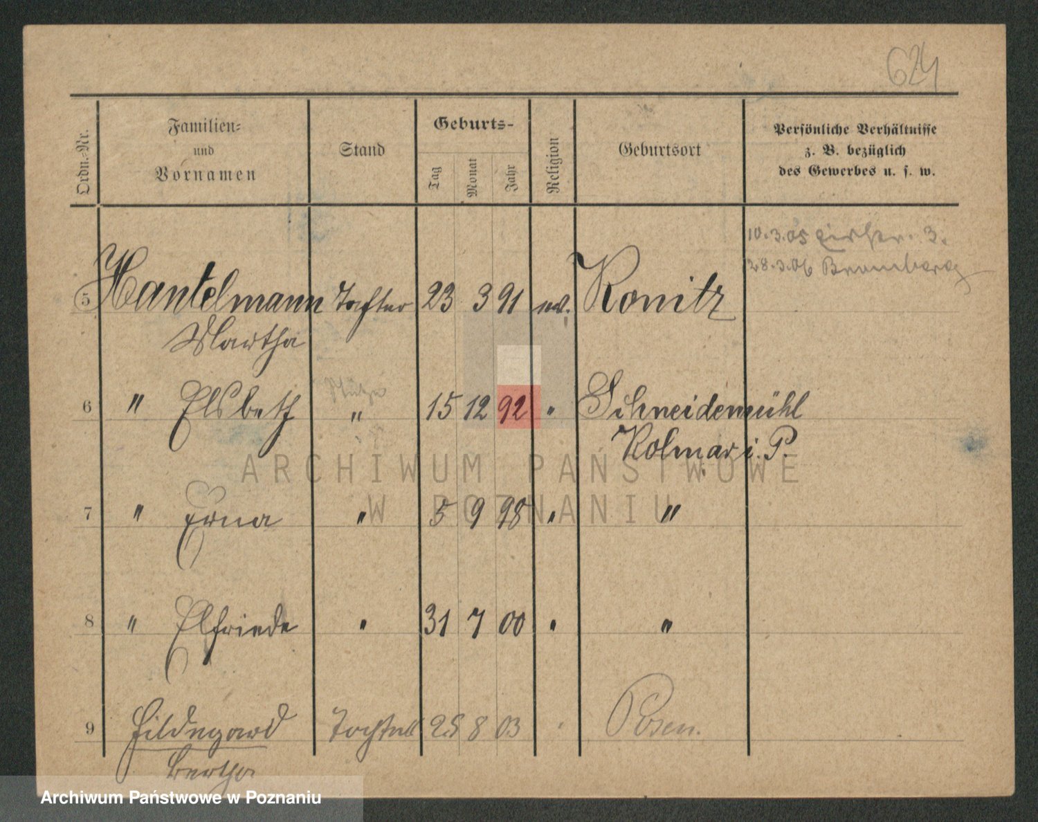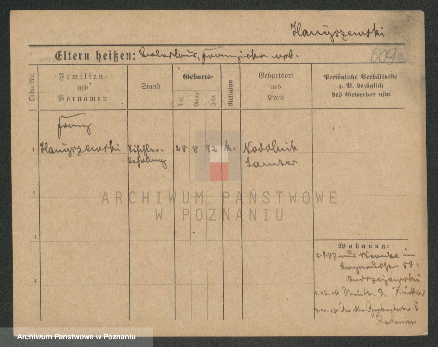 Podgląd karty osobowej dostępny jest po kliknięciu na nazwisko lub ikonkę karty. Można dokonywać powiększenia (ikony na górze) lub przechodzić między kolejnymi skanami (strzałki po bokach).