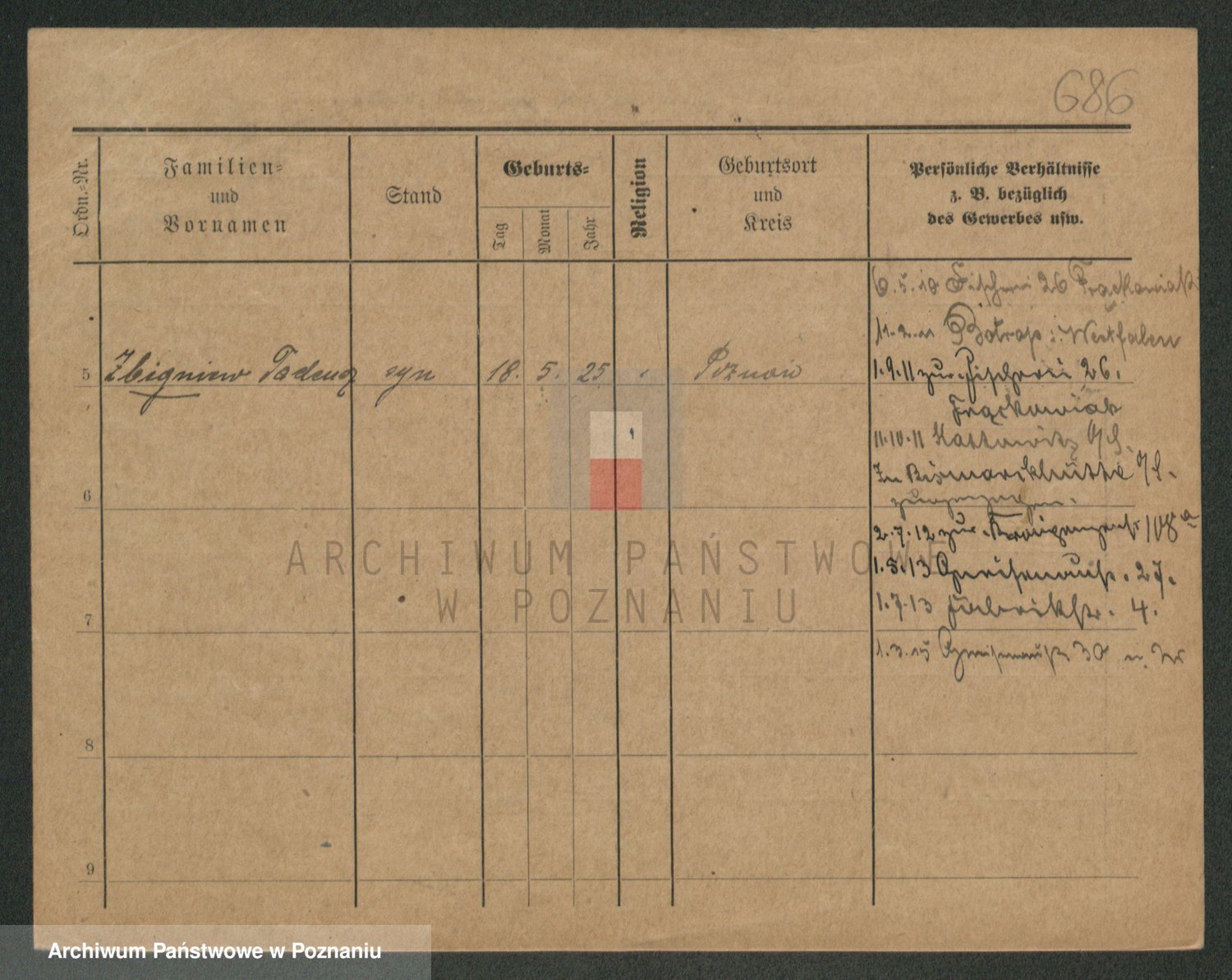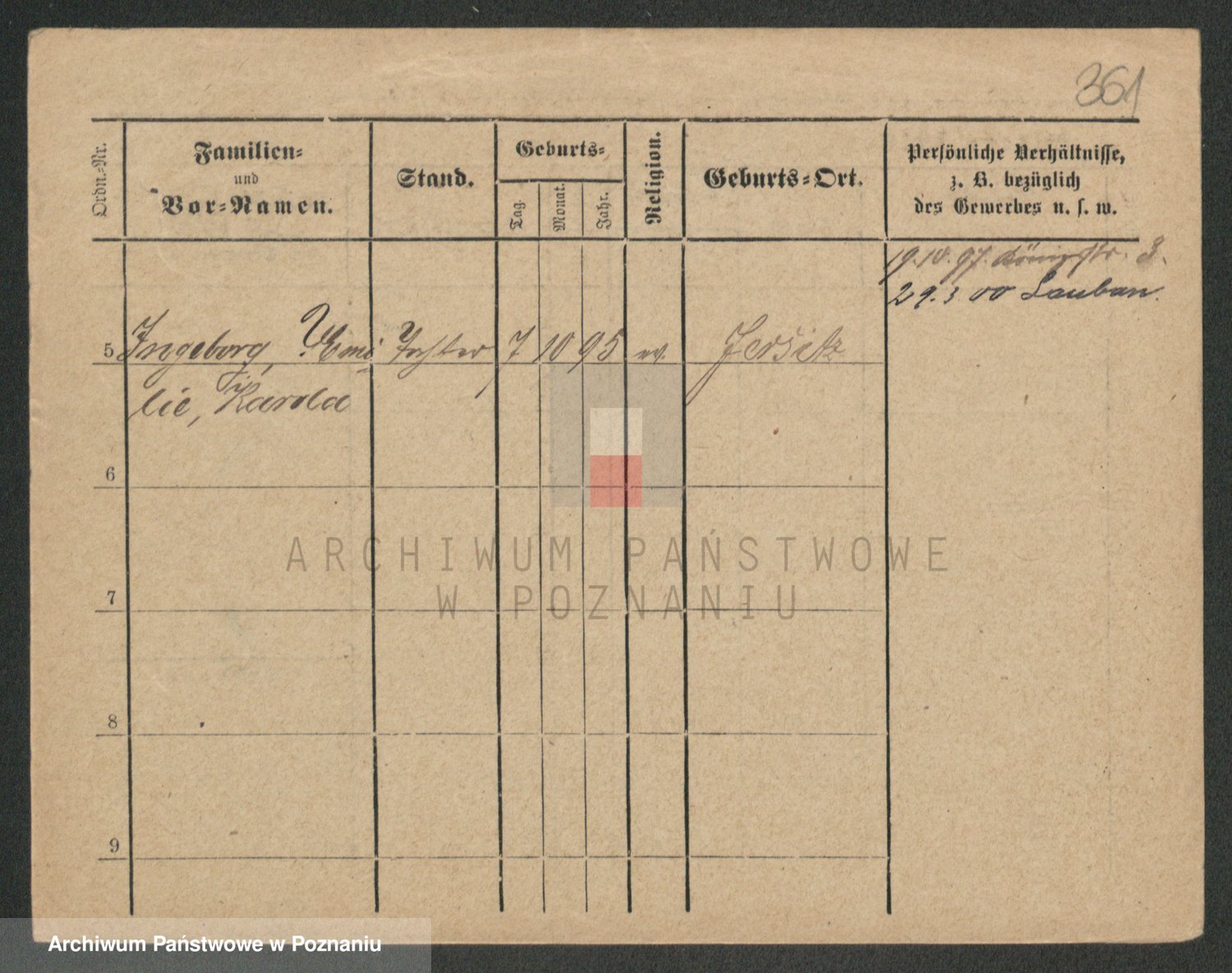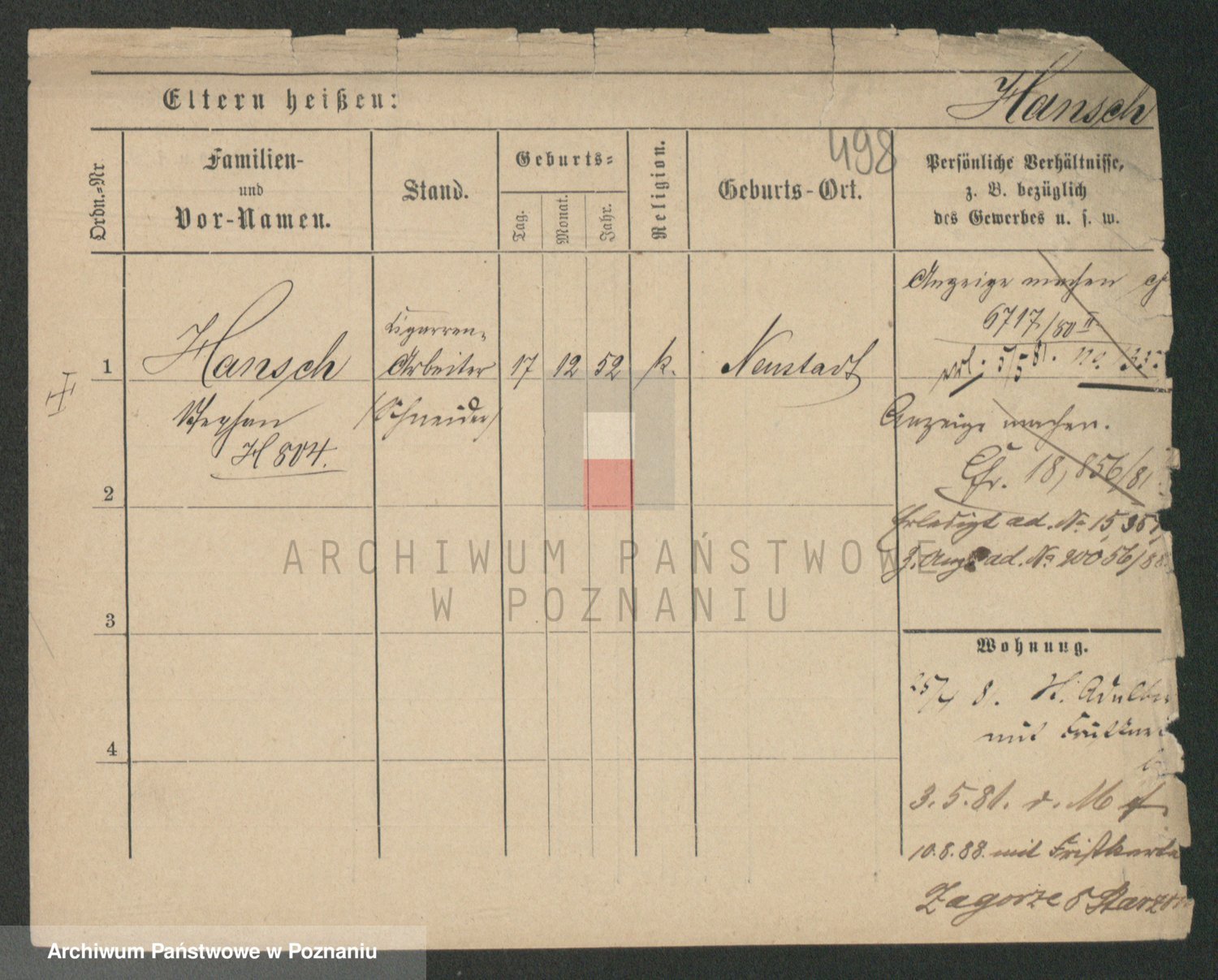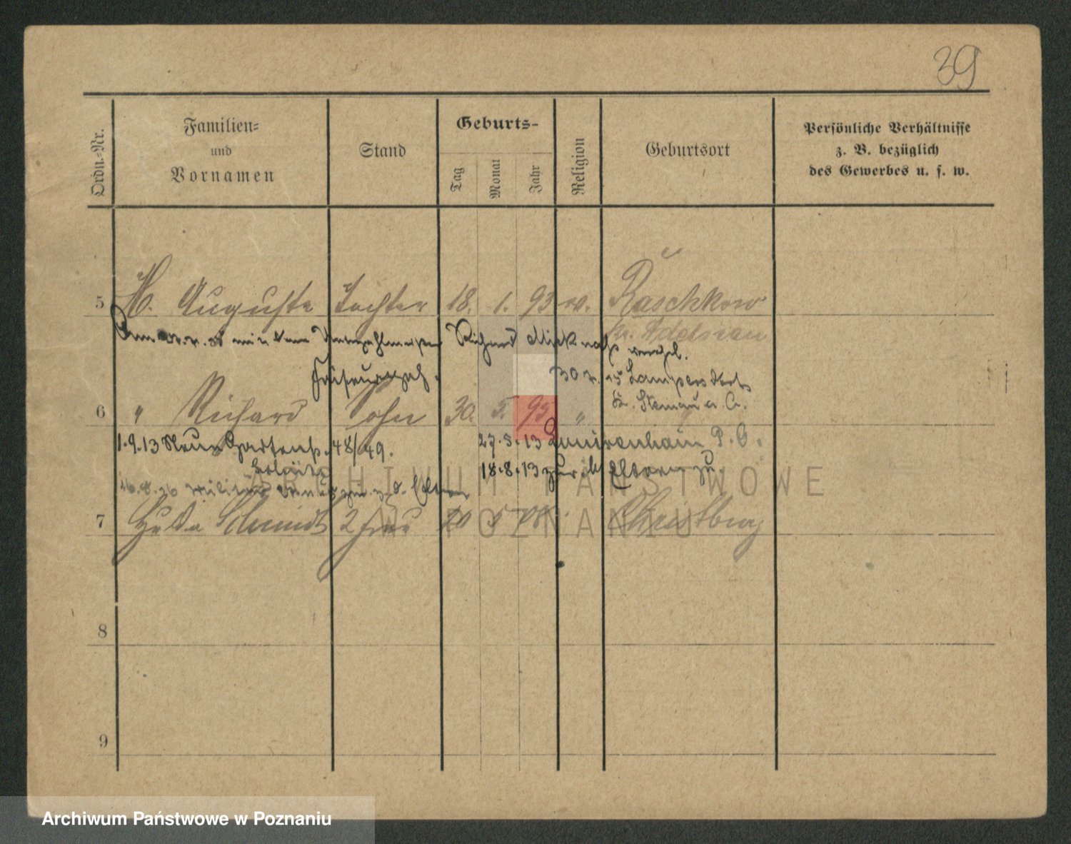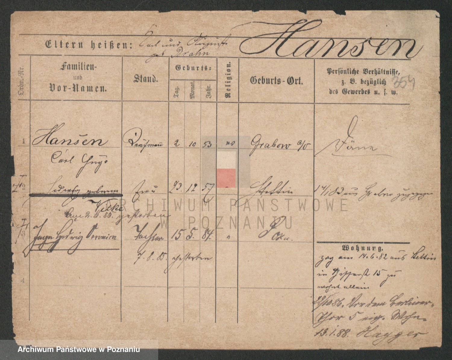 Podgląd karty osobowej dostępny jest po kliknięciu na nazwisko lub ikonkę karty. Można dokonywać powiększenia (ikony na górze) lub przechodzić między kolejnymi skanami (strzałki po bokach).