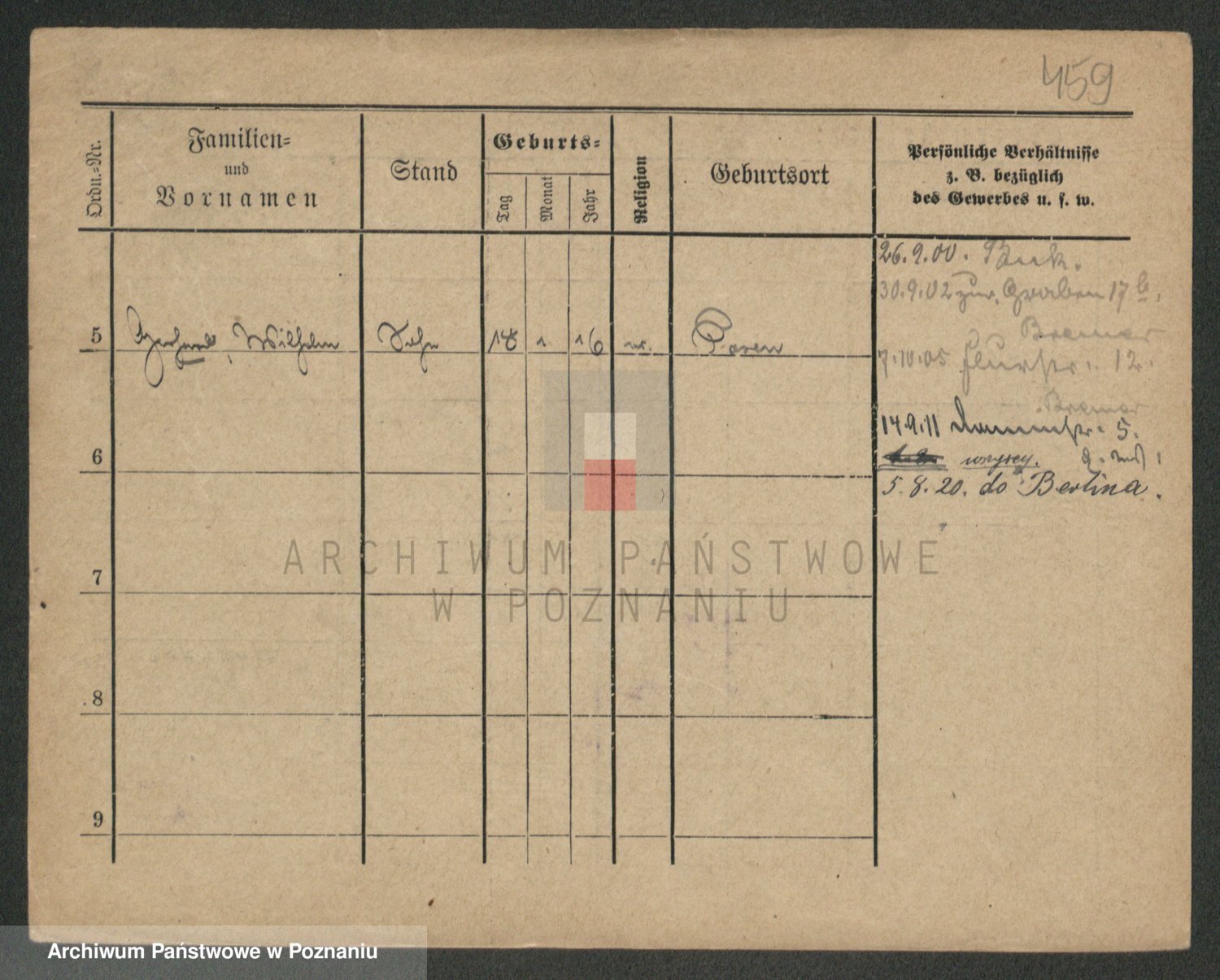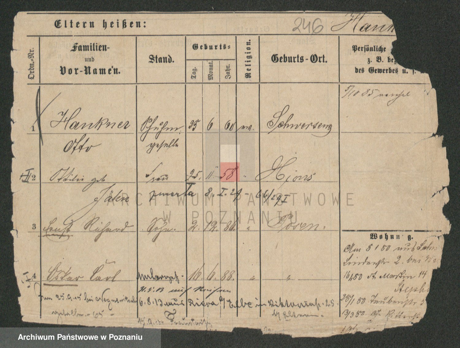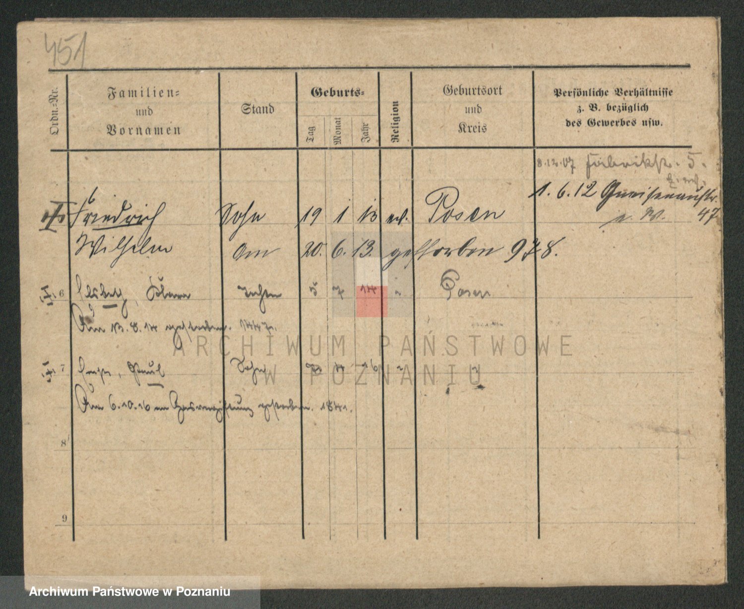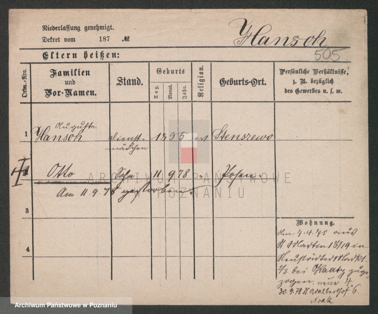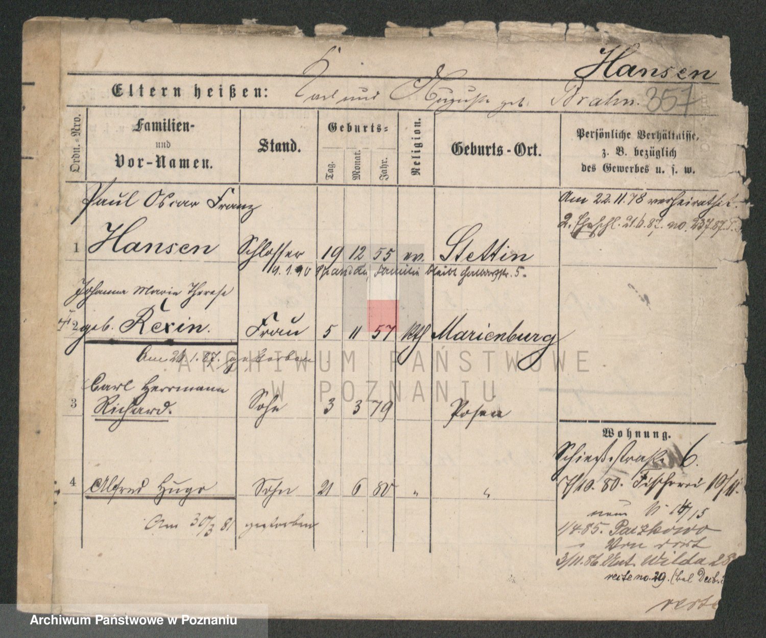 Podgląd karty osobowej dostępny jest po kliknięciu na nazwisko lub ikonkę karty. Można dokonywać powiększenia (ikony na górze) lub przechodzić między kolejnymi skanami (strzałki po bokach).