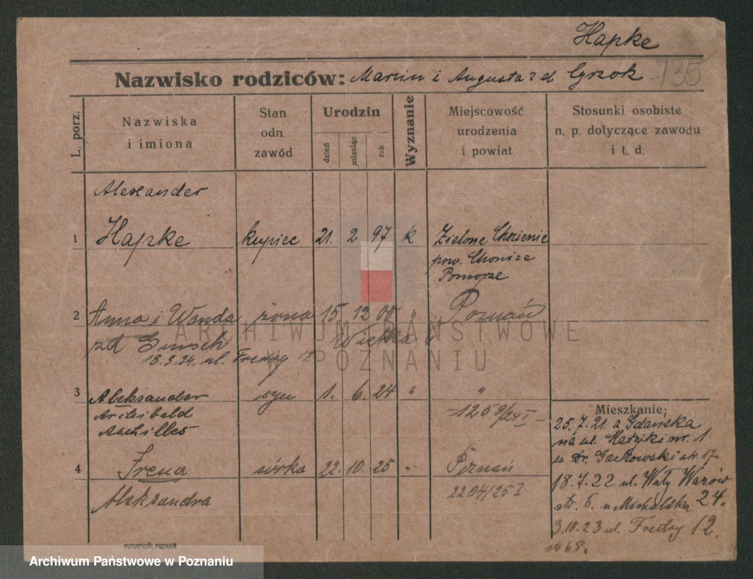 Hapke, Aleksander Archibald Aschilles