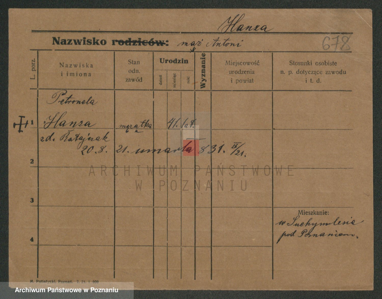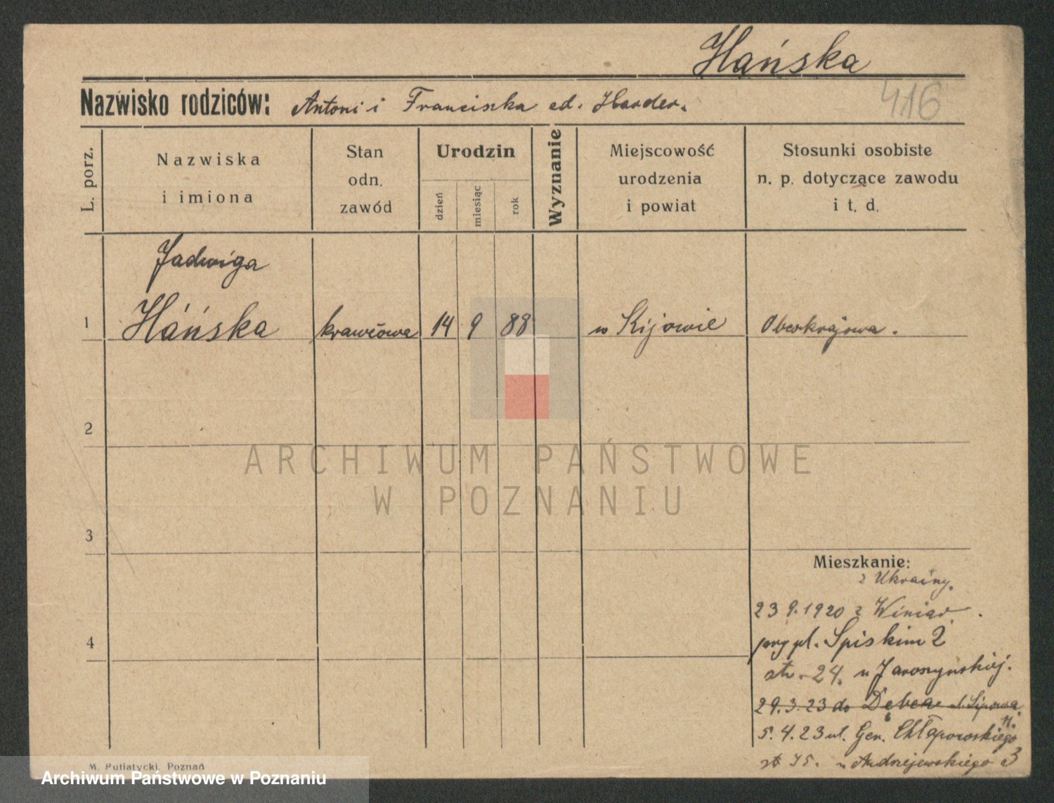 Hanke z d. Hetmanek, Zofja
