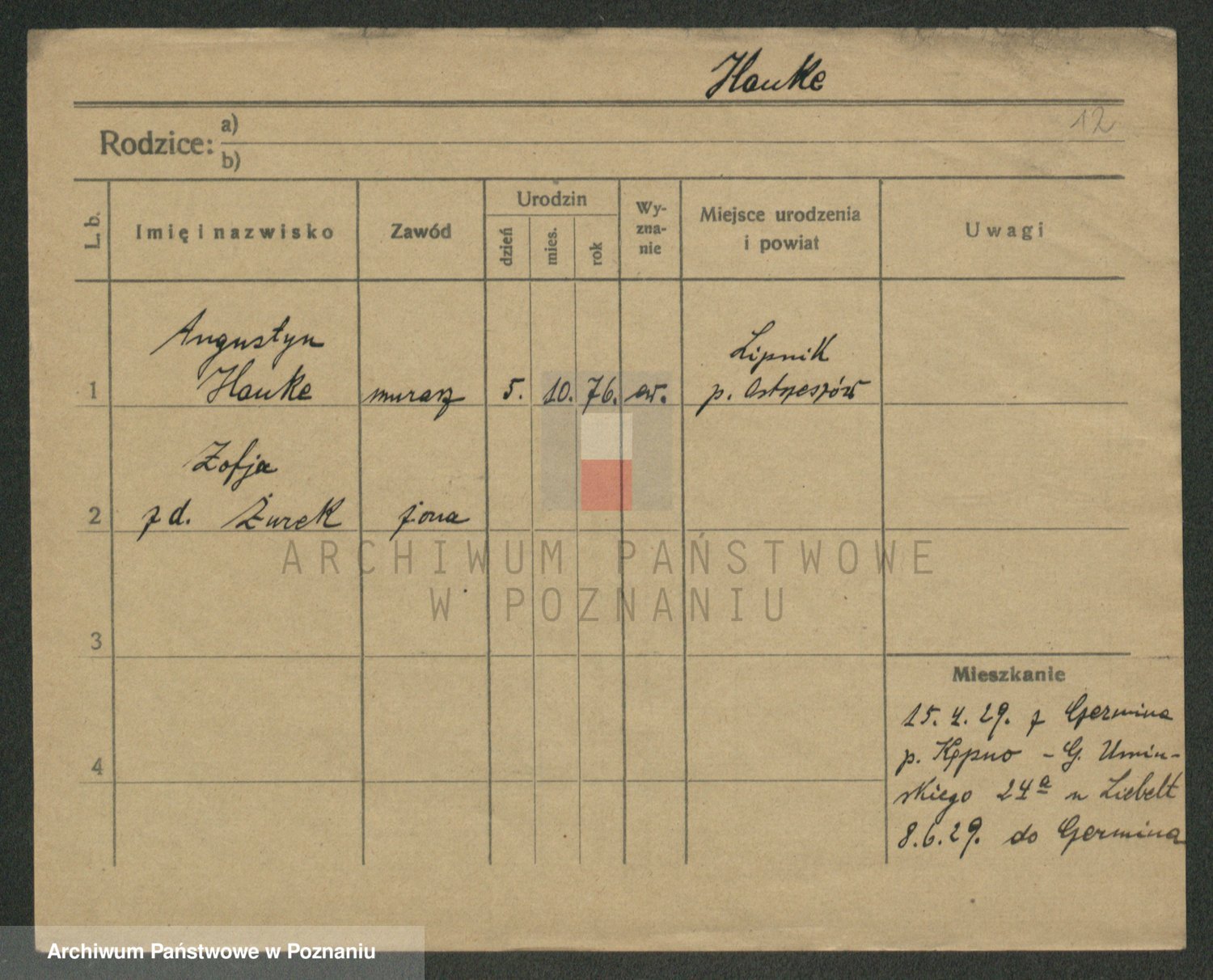 Hanke z d. Żurek, Zofja