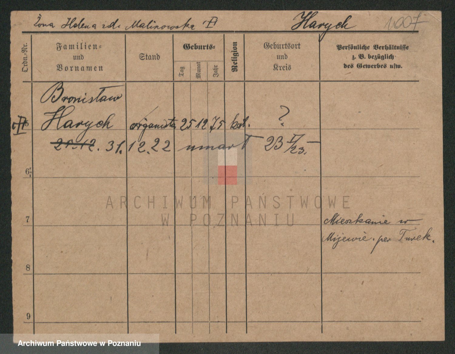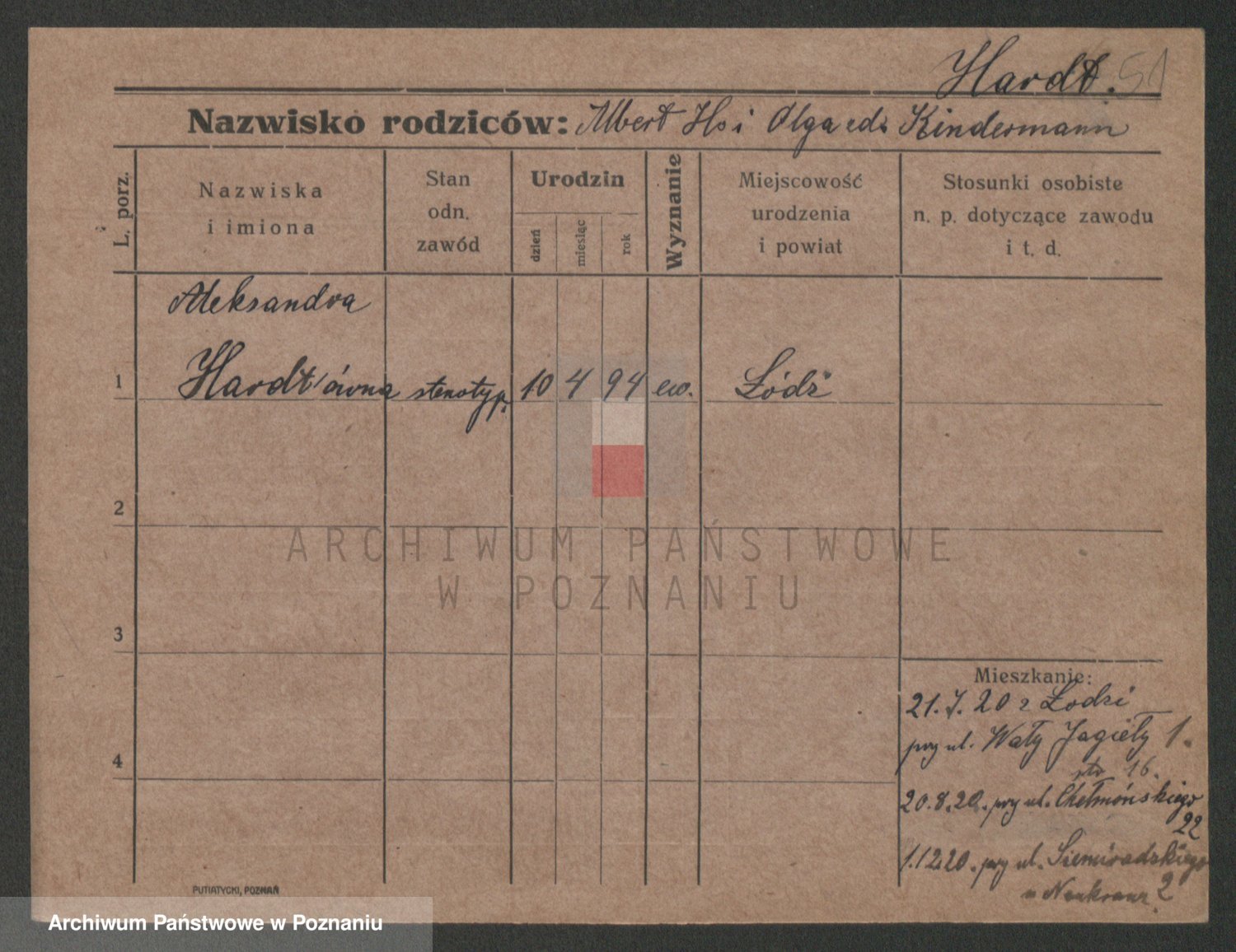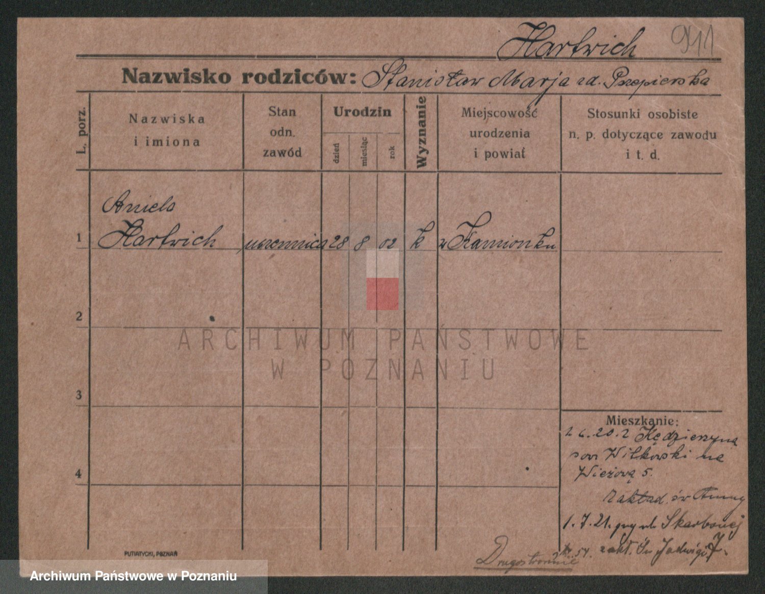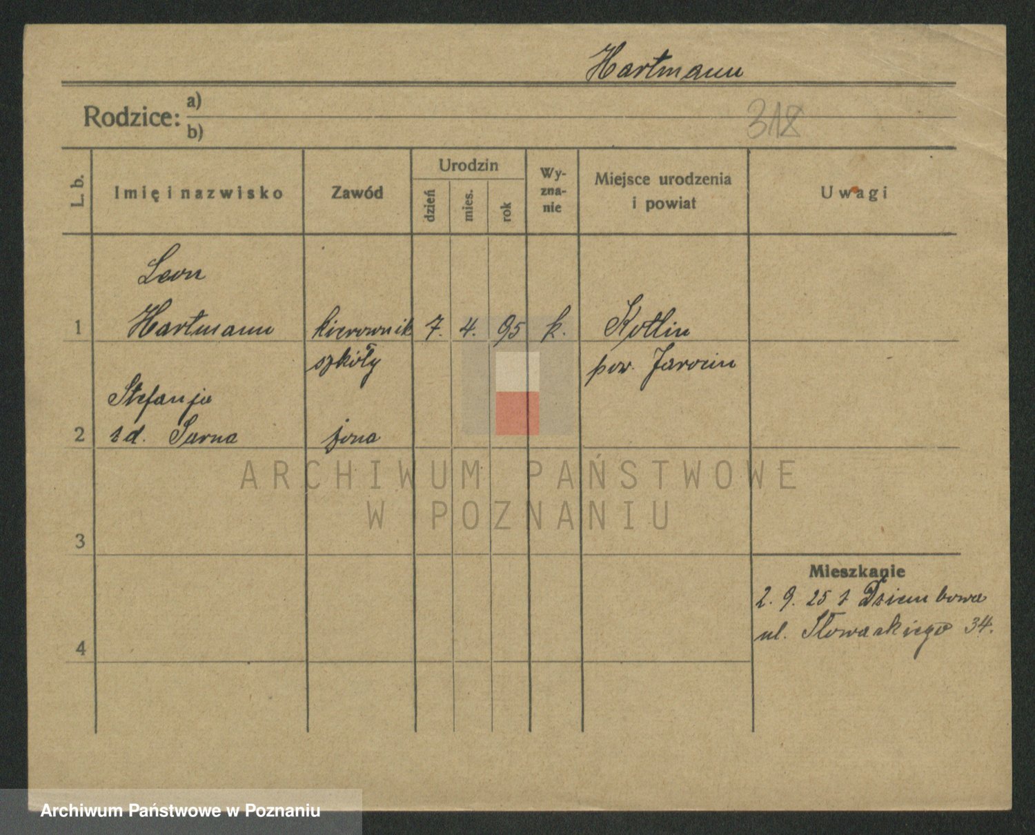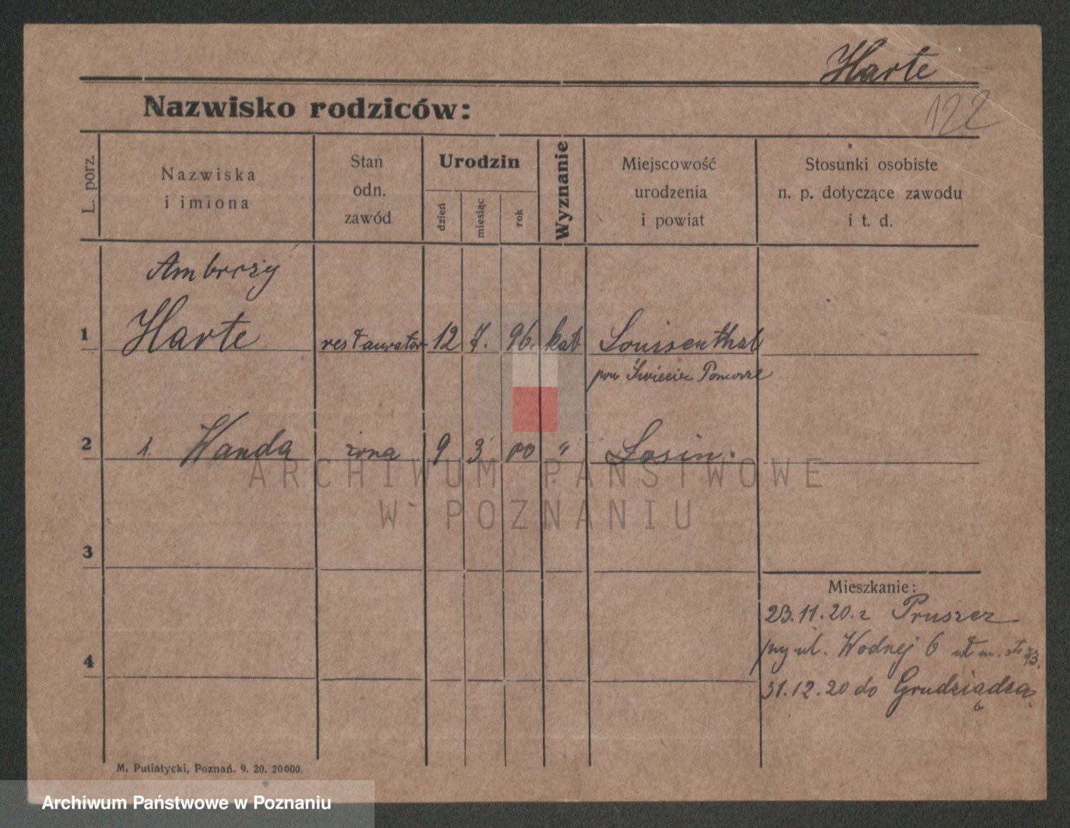 Podgląd karty osobowej dostępny jest po kliknięciu na nazwisko lub ikonkę karty. Można dokonywać powiększenia (ikony na górze) lub przechodzić między kolejnymi skanami (strzałki po bokach).