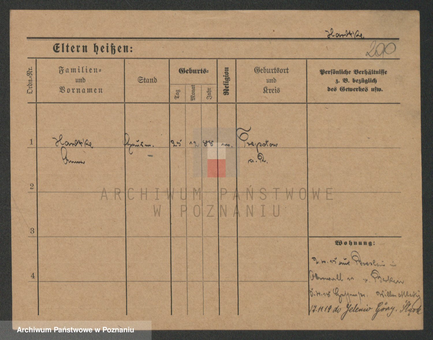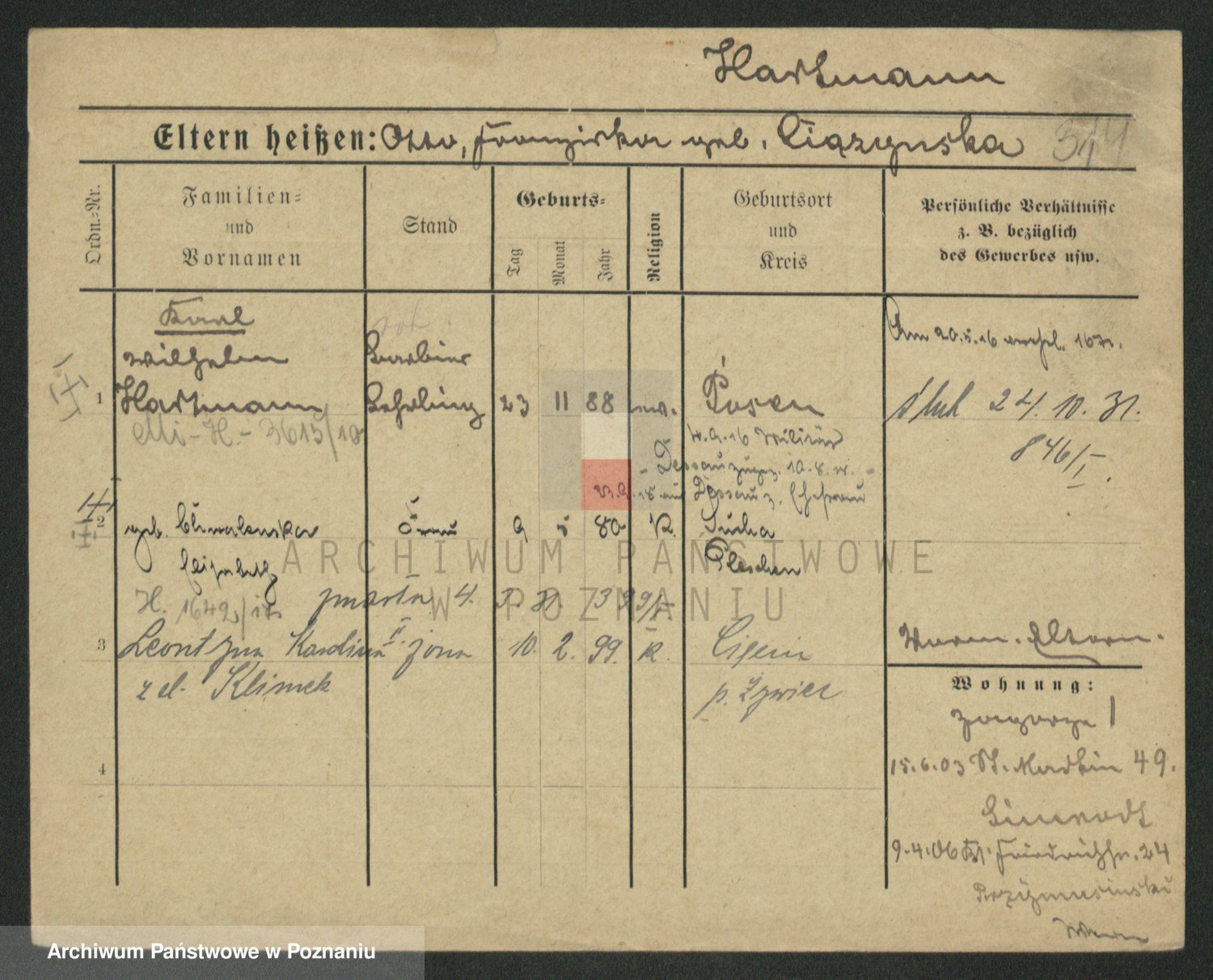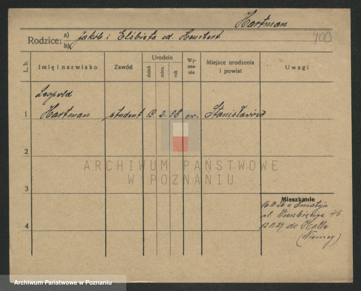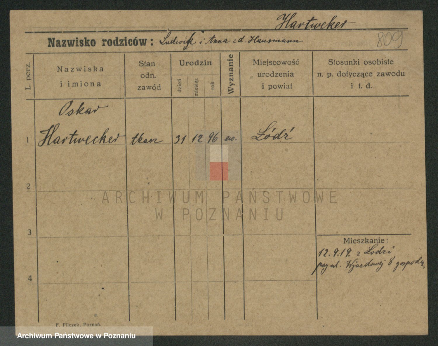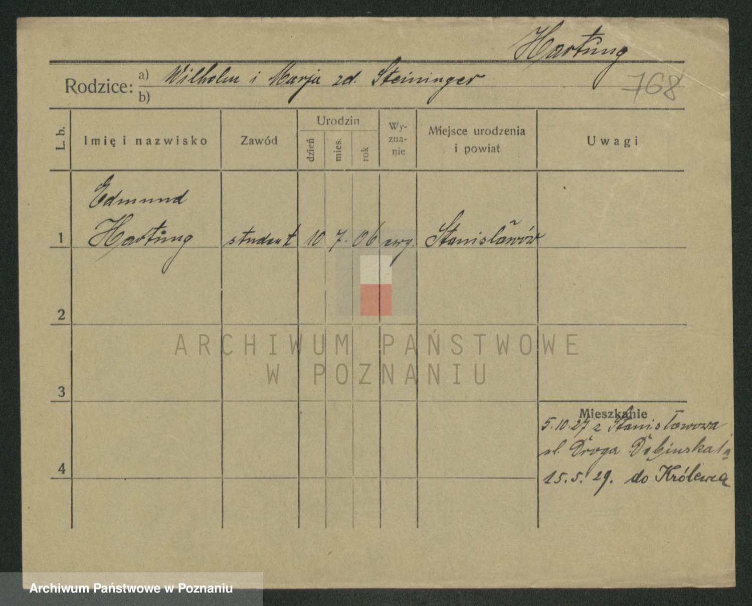 Podgląd karty osobowej dostępny jest po kliknięciu na nazwisko lub ikonkę karty. Można dokonywać powiększenia (ikony na górze) lub przechodzić między kolejnymi skanami (strzałki po bokach).