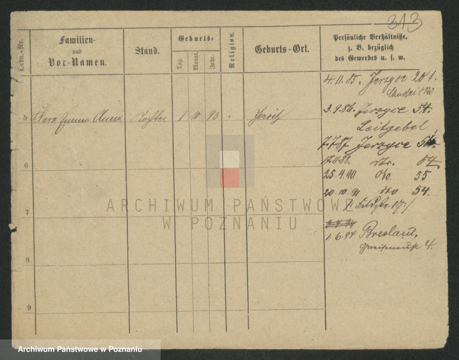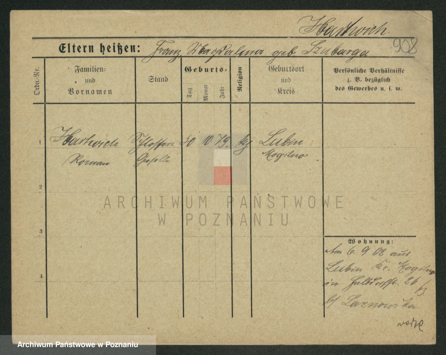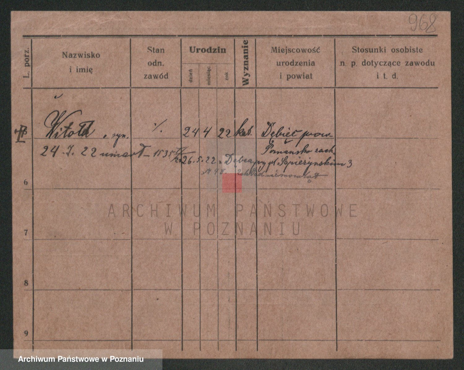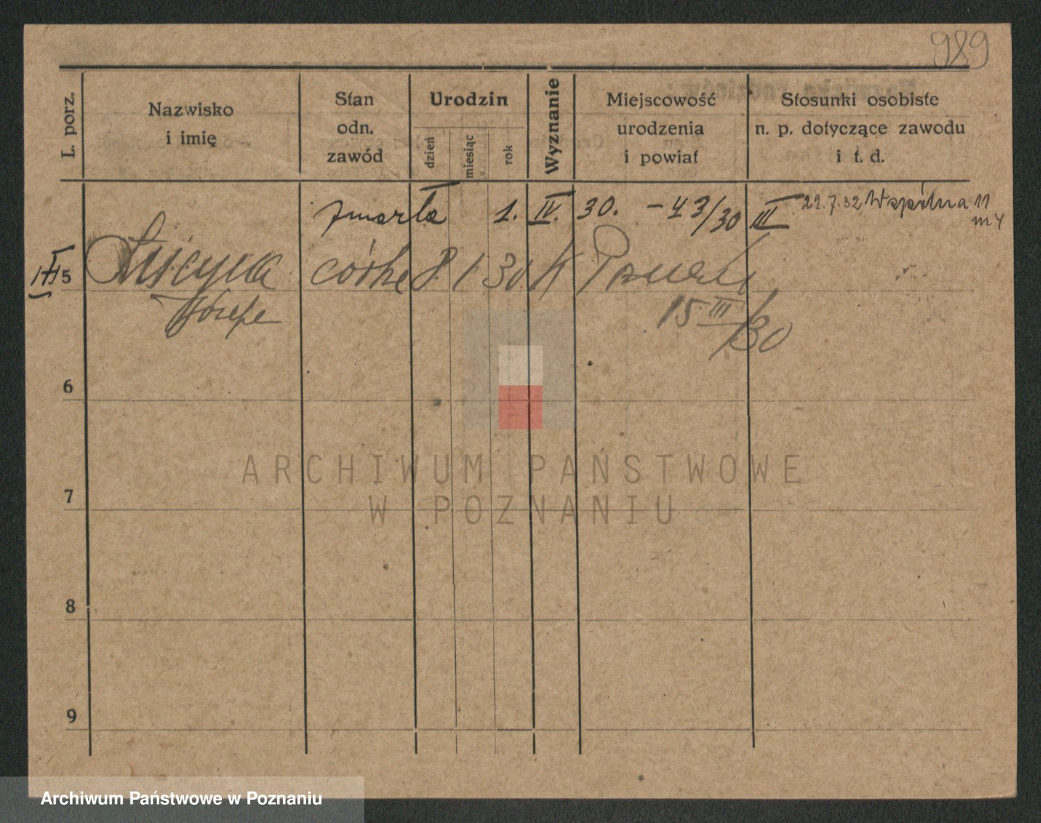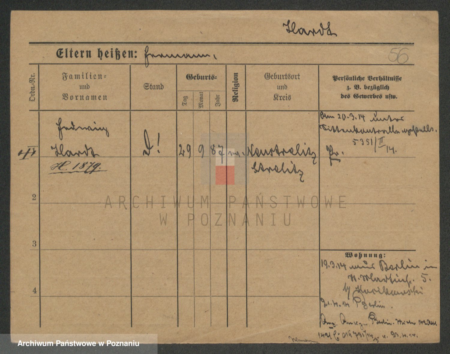 Podgląd karty osobowej dostępny jest po kliknięciu na nazwisko lub ikonkę karty. Można dokonywać powiększenia (ikony na górze) lub przechodzić między kolejnymi skanami (strzałki po bokach).