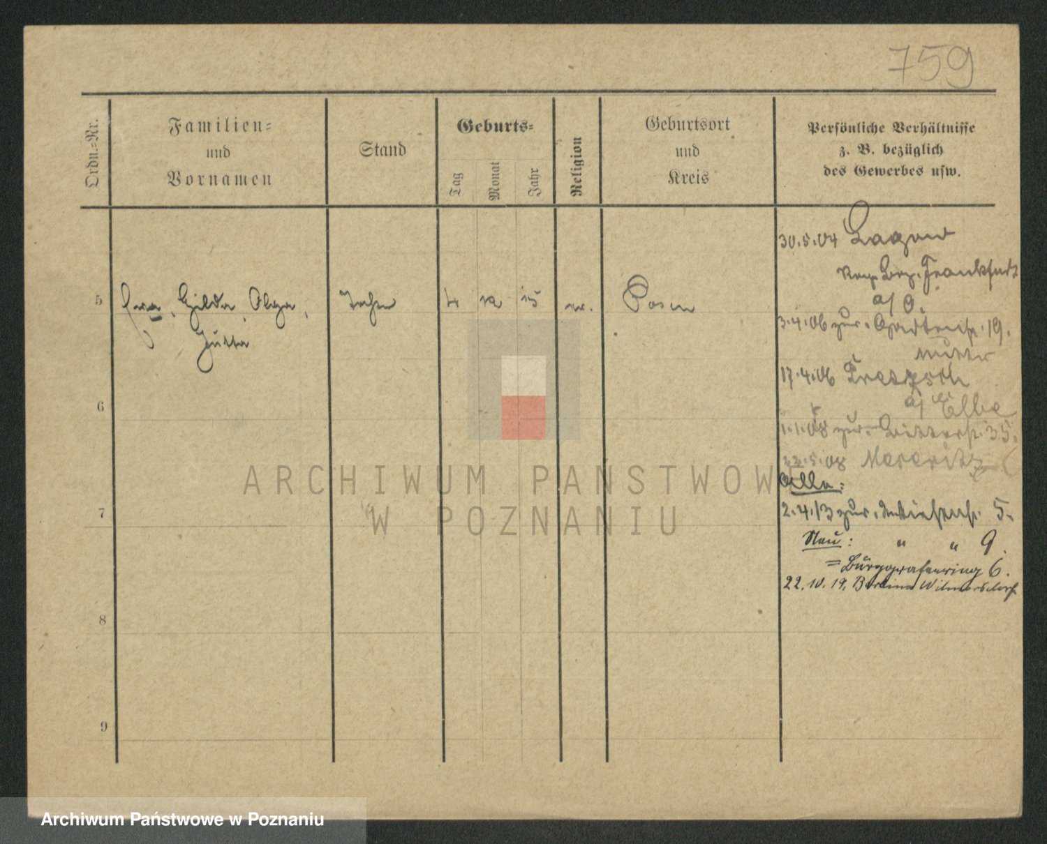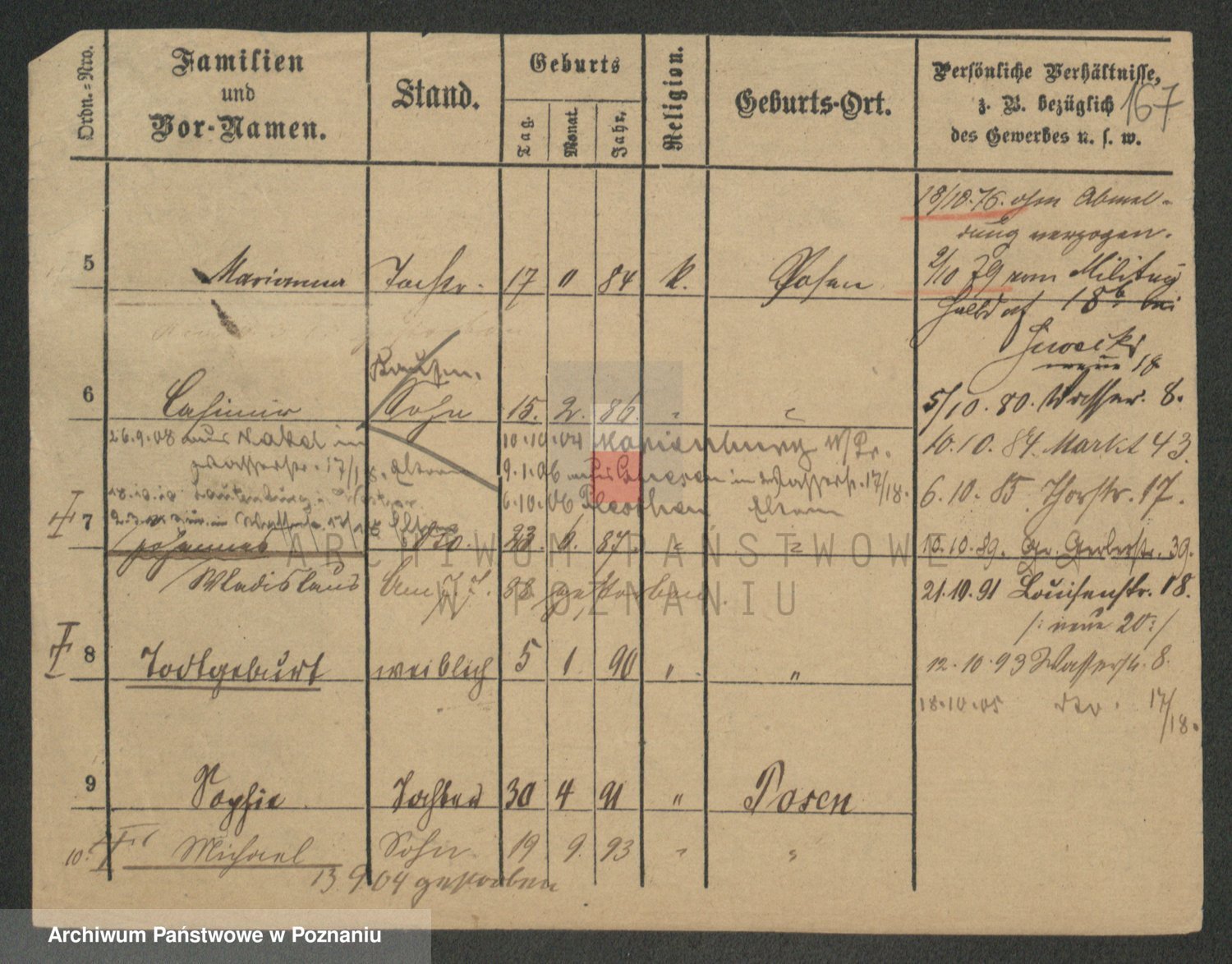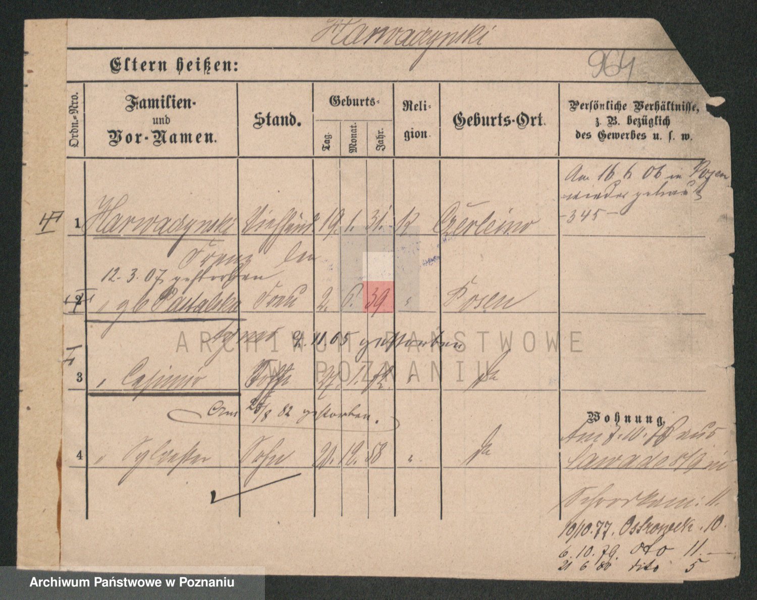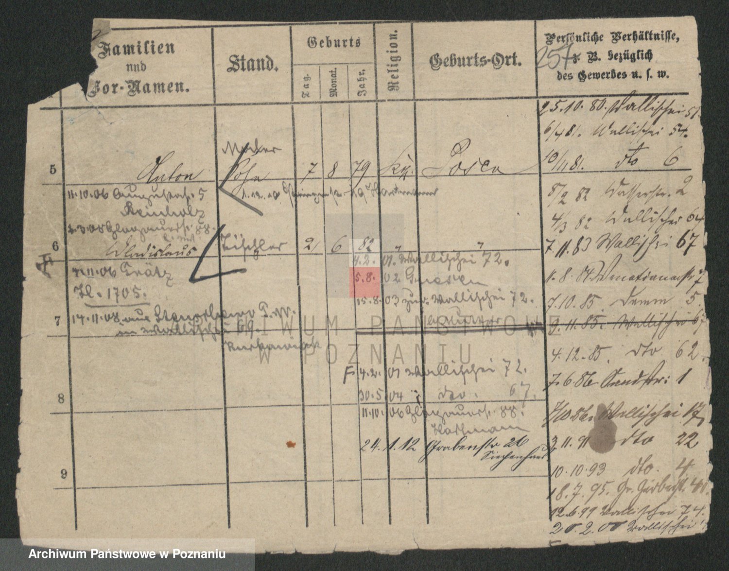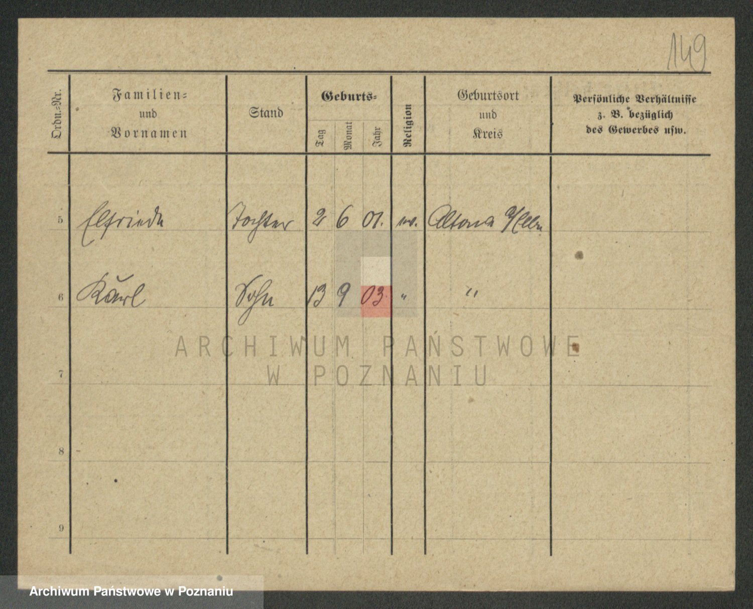 Podgląd karty osobowej dostępny jest po kliknięciu na nazwisko lub ikonkę karty. Można dokonywać powiększenia (ikony na górze) lub przechodzić między kolejnymi skanami (strzałki po bokach).